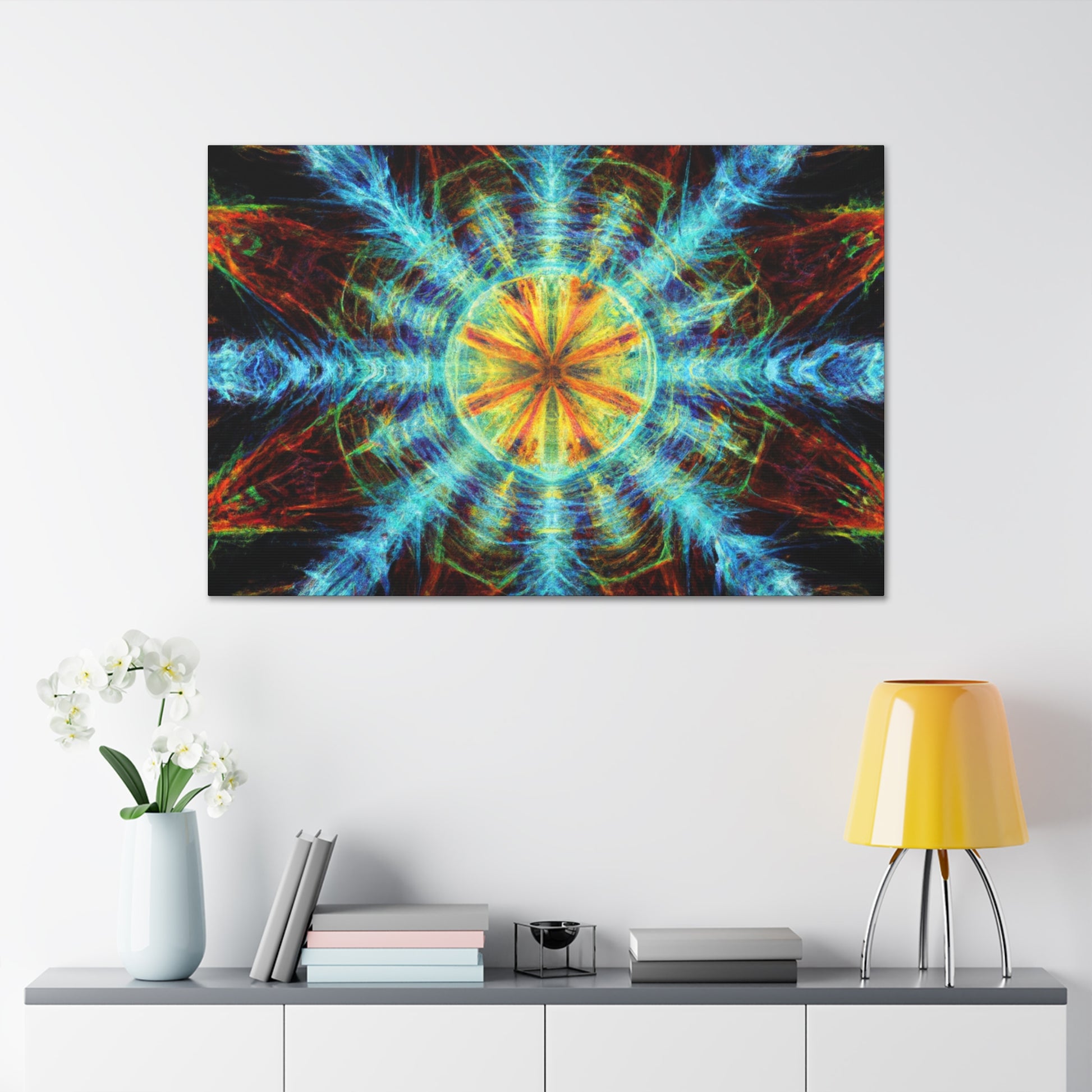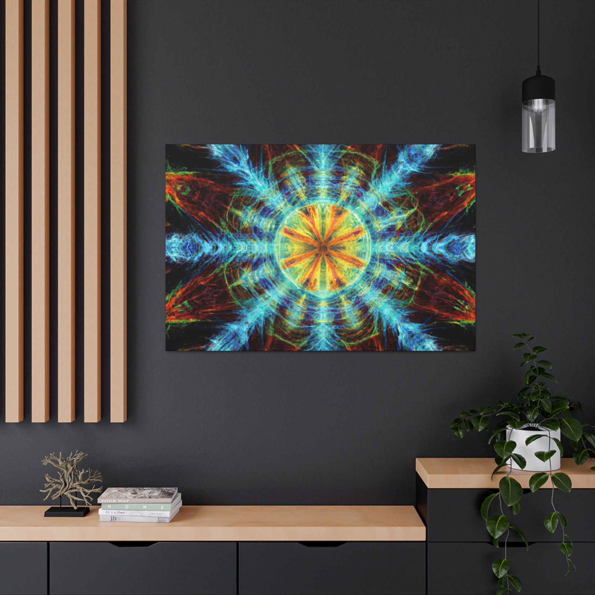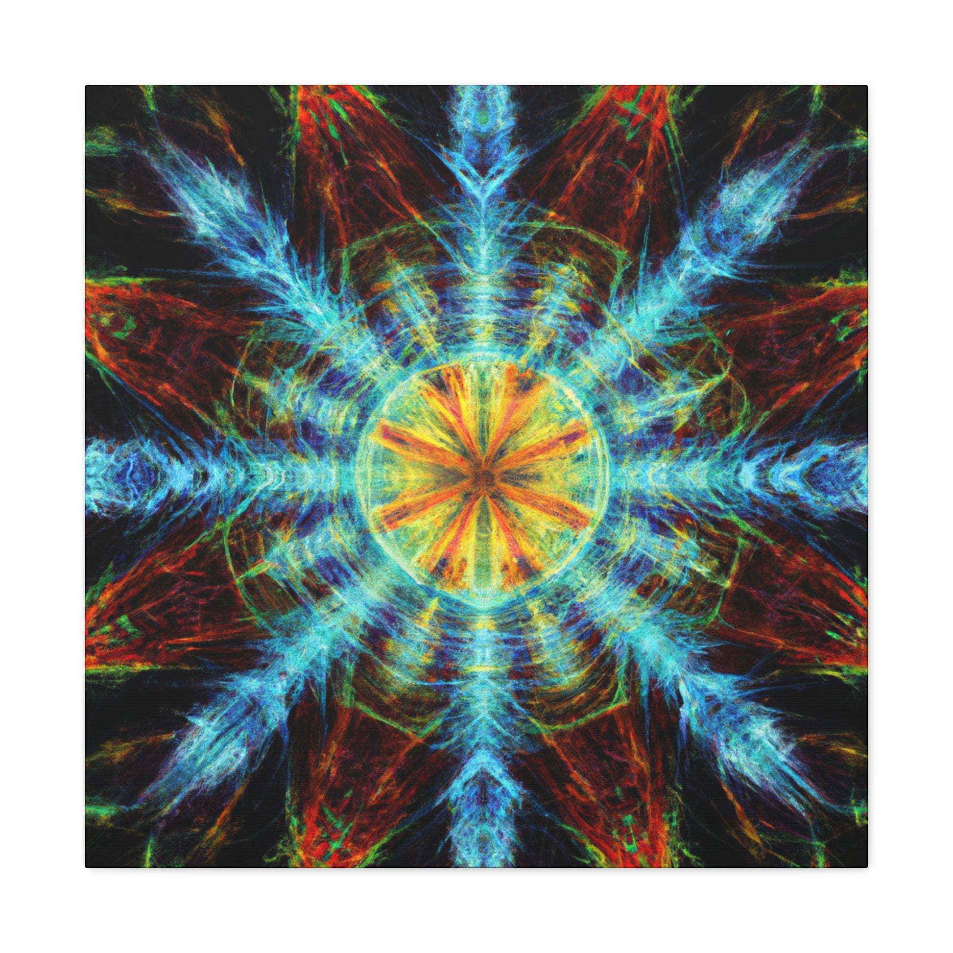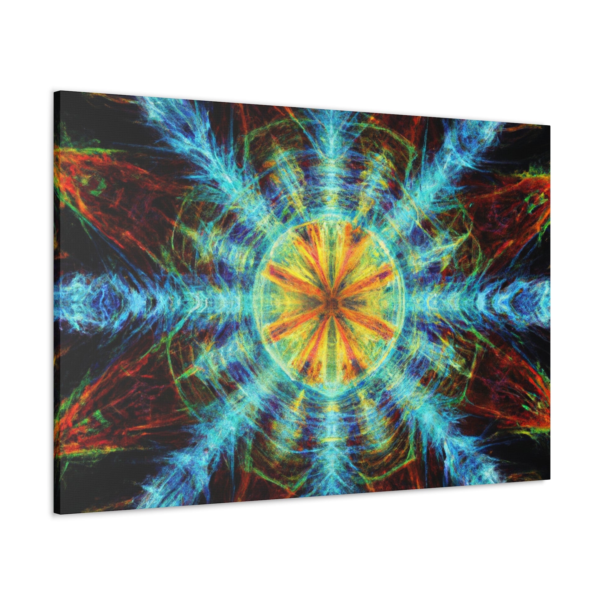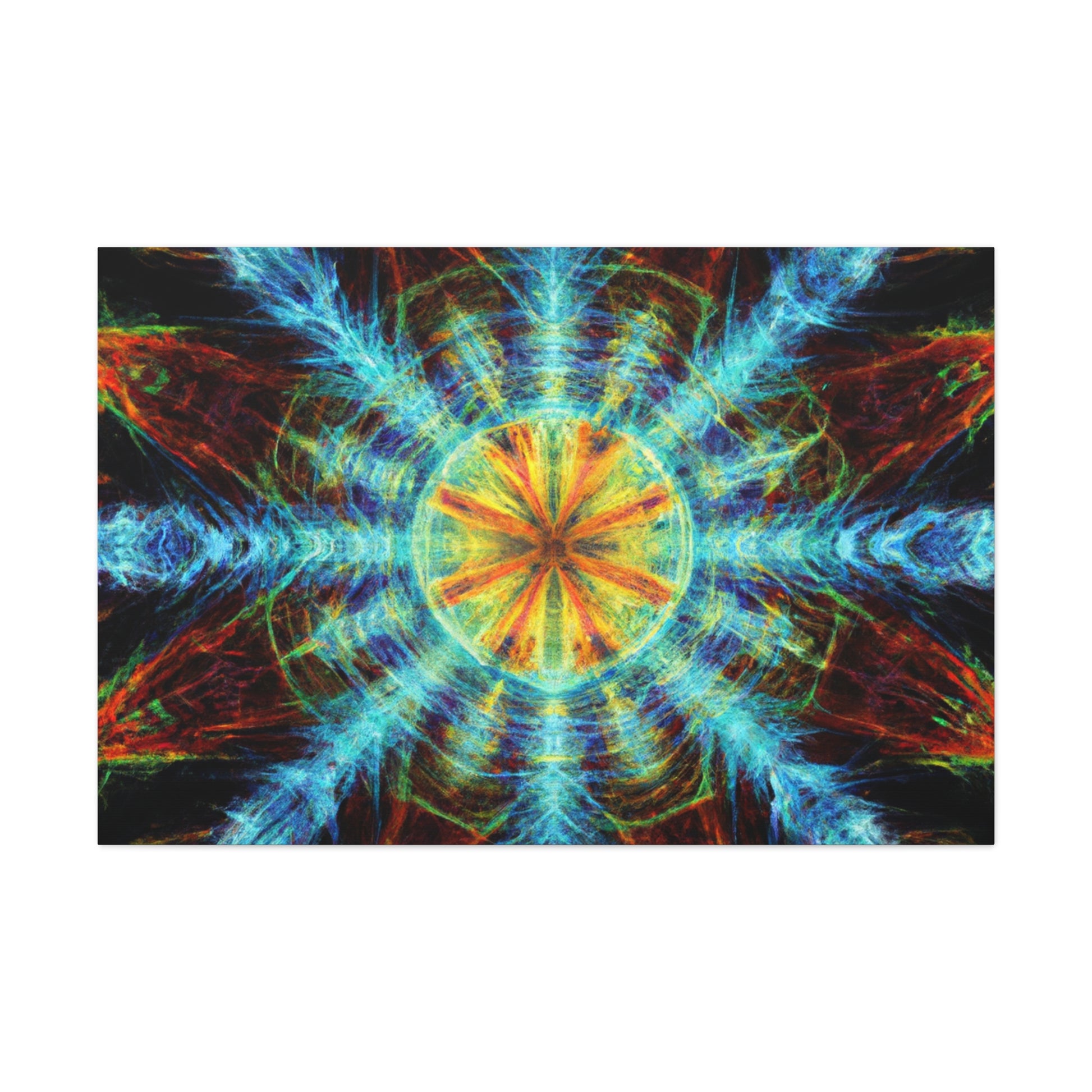 This one-of-a-kind canvas is a modern masterpiece! Trippy geometric palm leaves, kaleidoscope, abstract, digital 3D lines, and fractal art mingle with vibrant colors, creating an eye-catching 3D optical illusion. Hang this stylishly abstract piece proudly on your wall - it's sure to make a statement! #trippy #geometric #palmleaves #kaleidoscope #abstract #digitalart #vibrantcolors #3Dlines #fractal #canvas #artwork