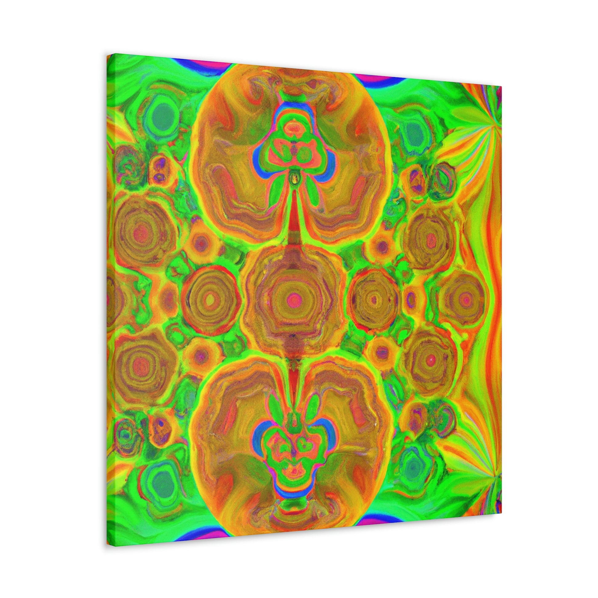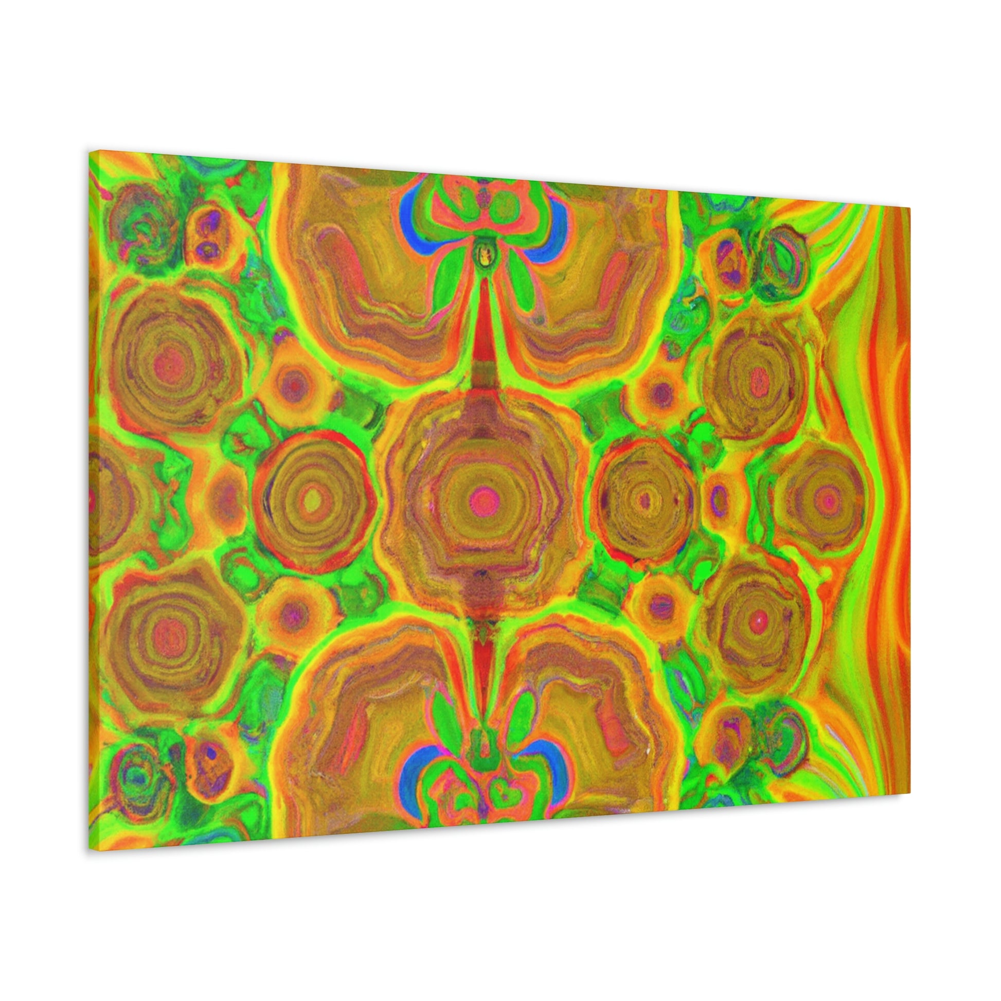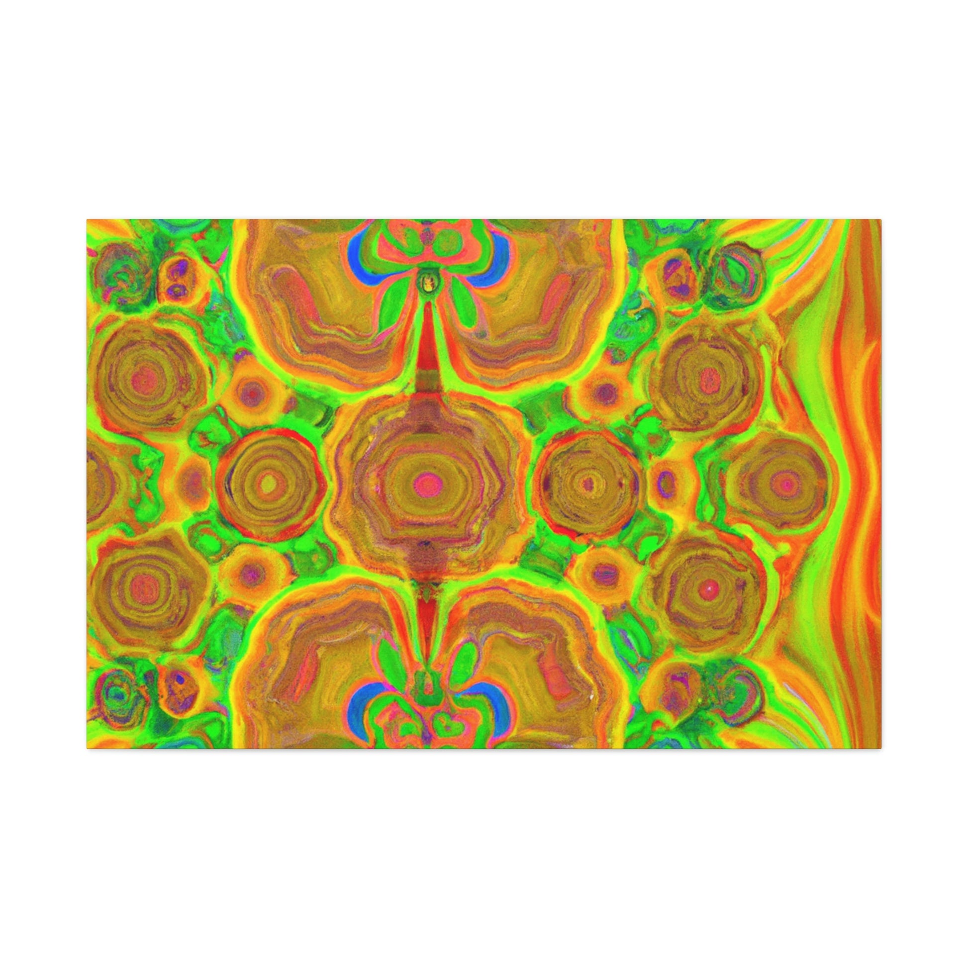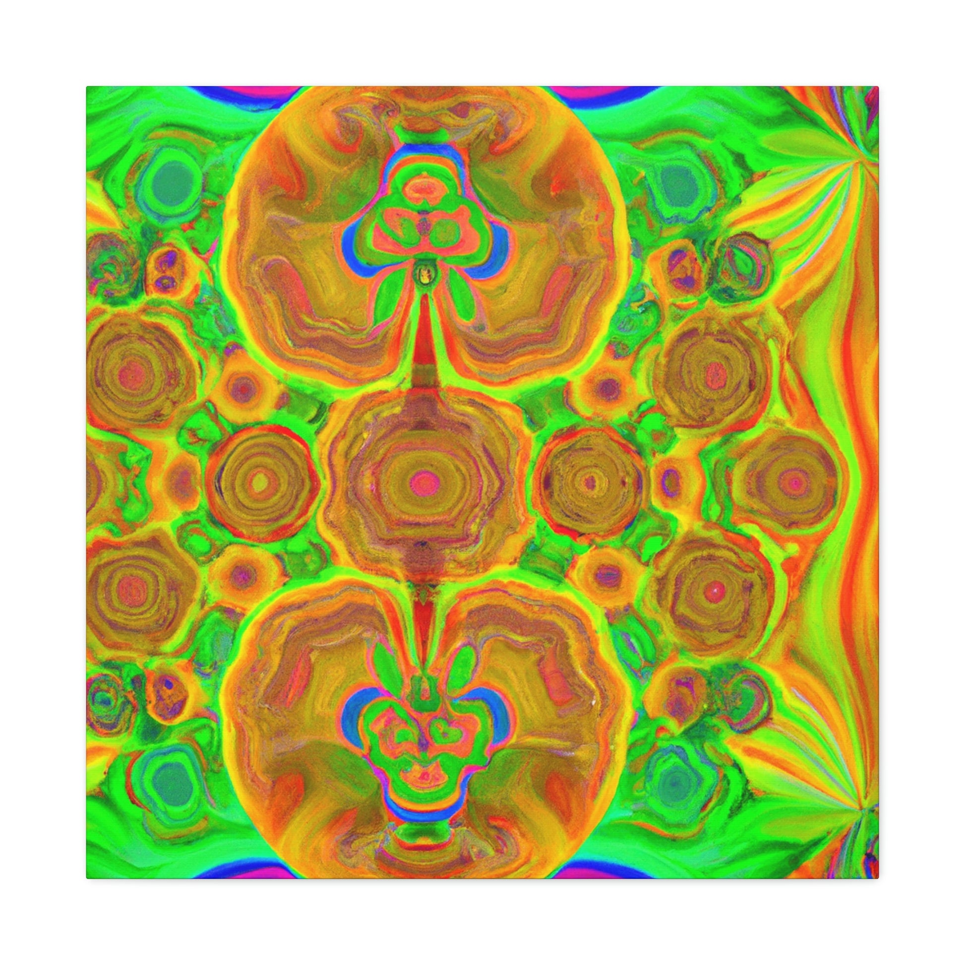 This digital art is bursting with color and vibrancy. Featuring a psychedelic display of trippy mushrooms, kaleidoscopic shapes, abstract imagery, and 3D lines, this canvas will turn any wall into a modern art masterpiece. Its intricate design and bold colors will capture anyone's attention and be a show-stopping piece. #abstractart #mushrooms #kaleidoscope #3dlines #digitalart #wallcanvas #trippyart #vibrantcolors #modernart #psychedelic #canvasart