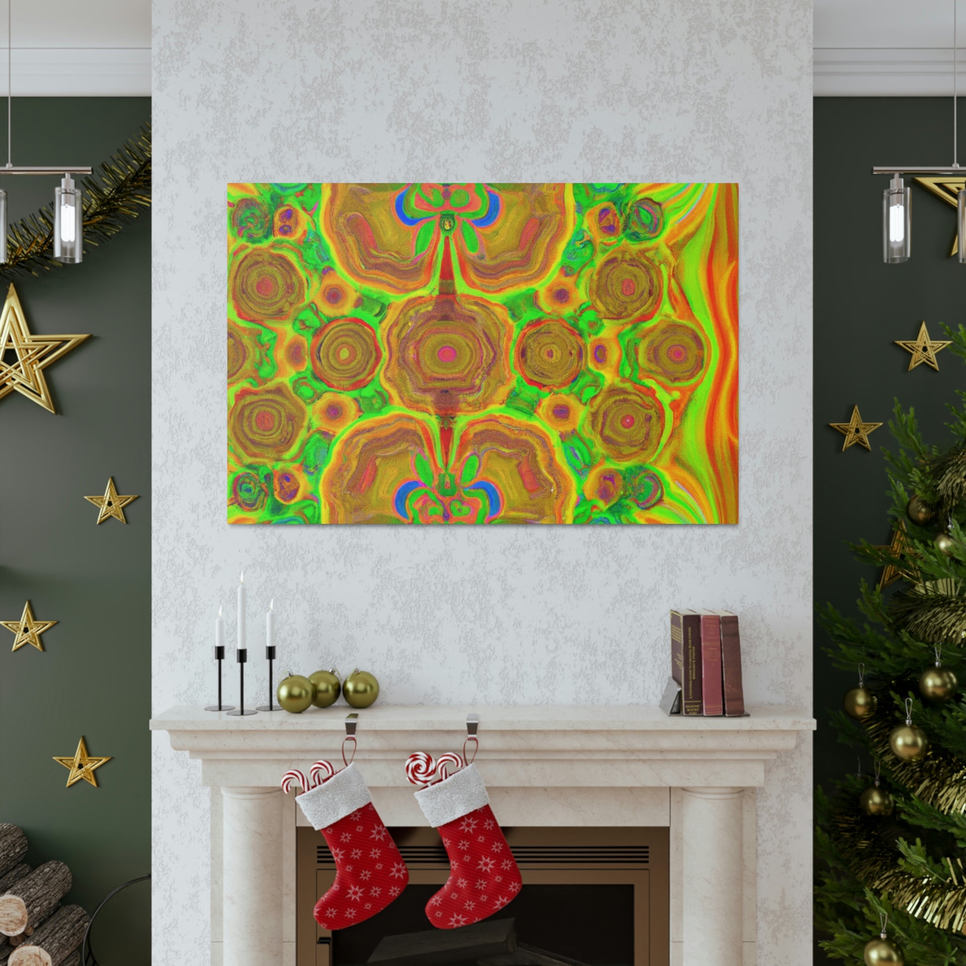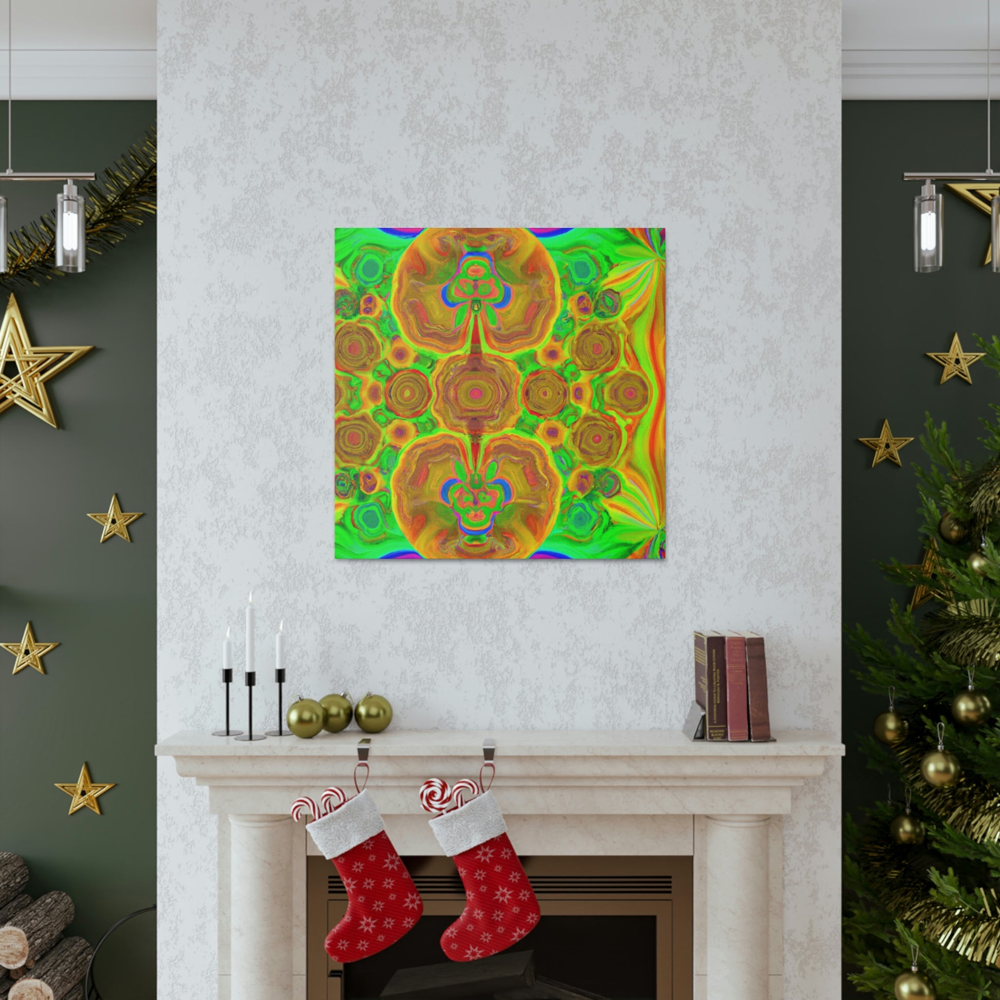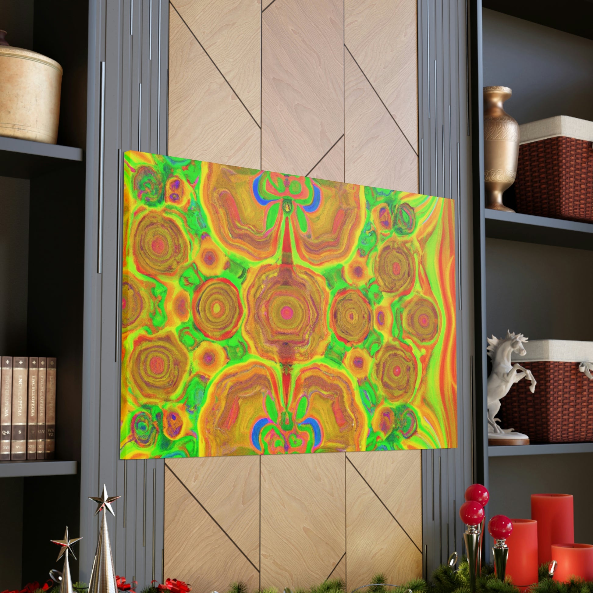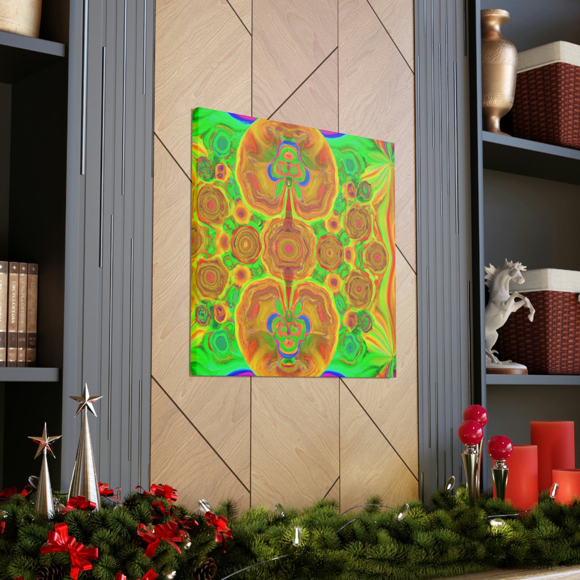 This digital art is bursting with color and vibrancy. Featuring a psychedelic display of trippy mushrooms, kaleidoscopic shapes, abstract imagery, and 3D lines, this canvas will turn any wall into a modern art masterpiece. Its intricate design and bold colors will capture anyone's attention and be a show-stopping piece. #abstractart #mushrooms #kaleidoscope #3dlines #digitalart #wallcanvas #trippyart #vibrantcolors #modernart #psychedelic #canvasart