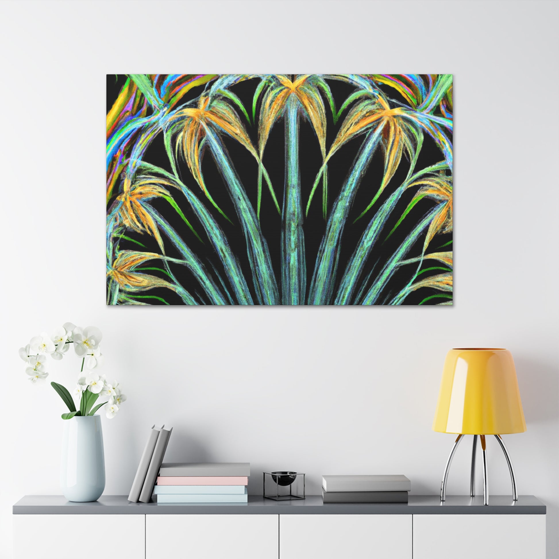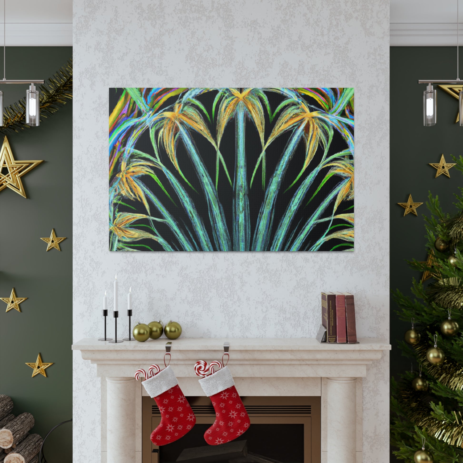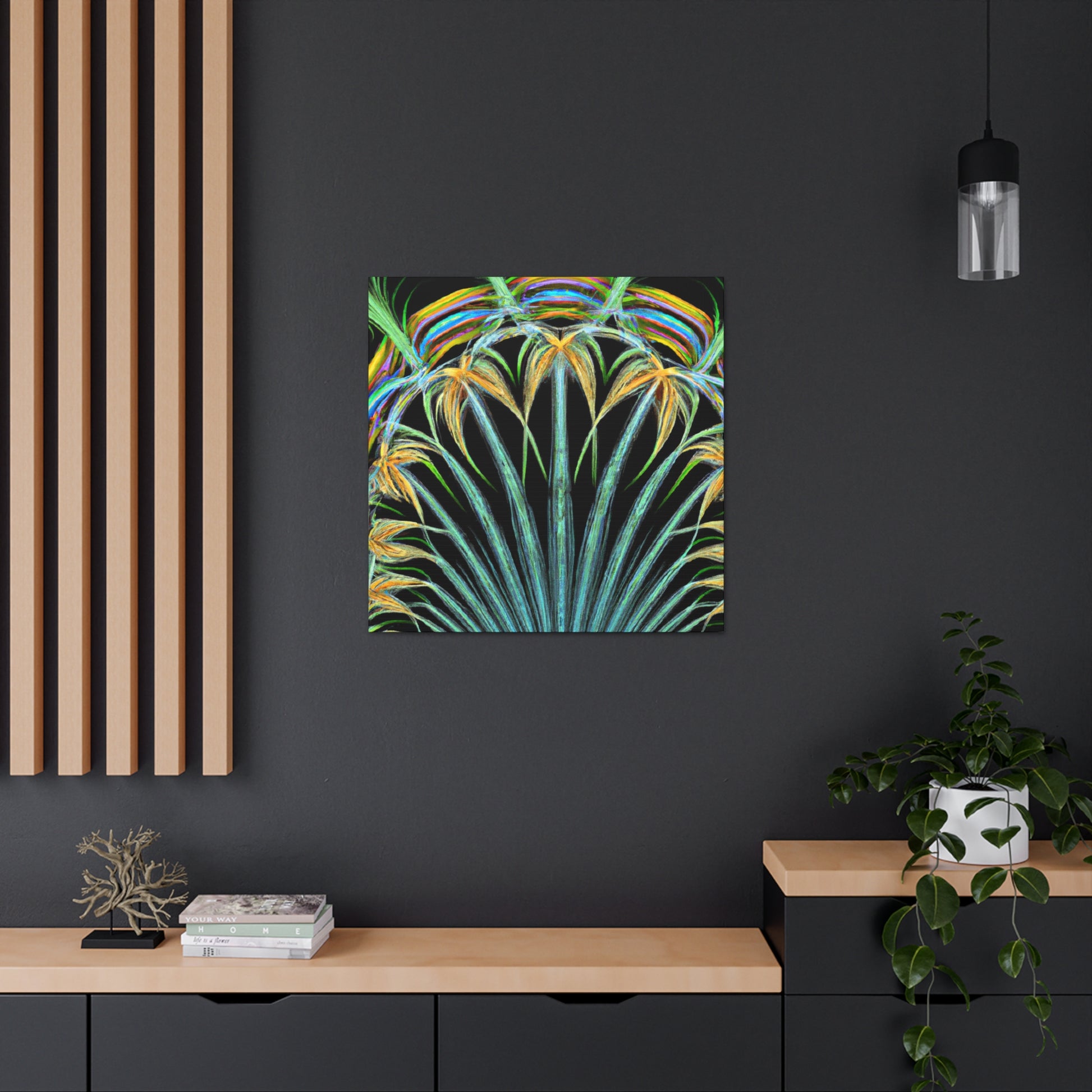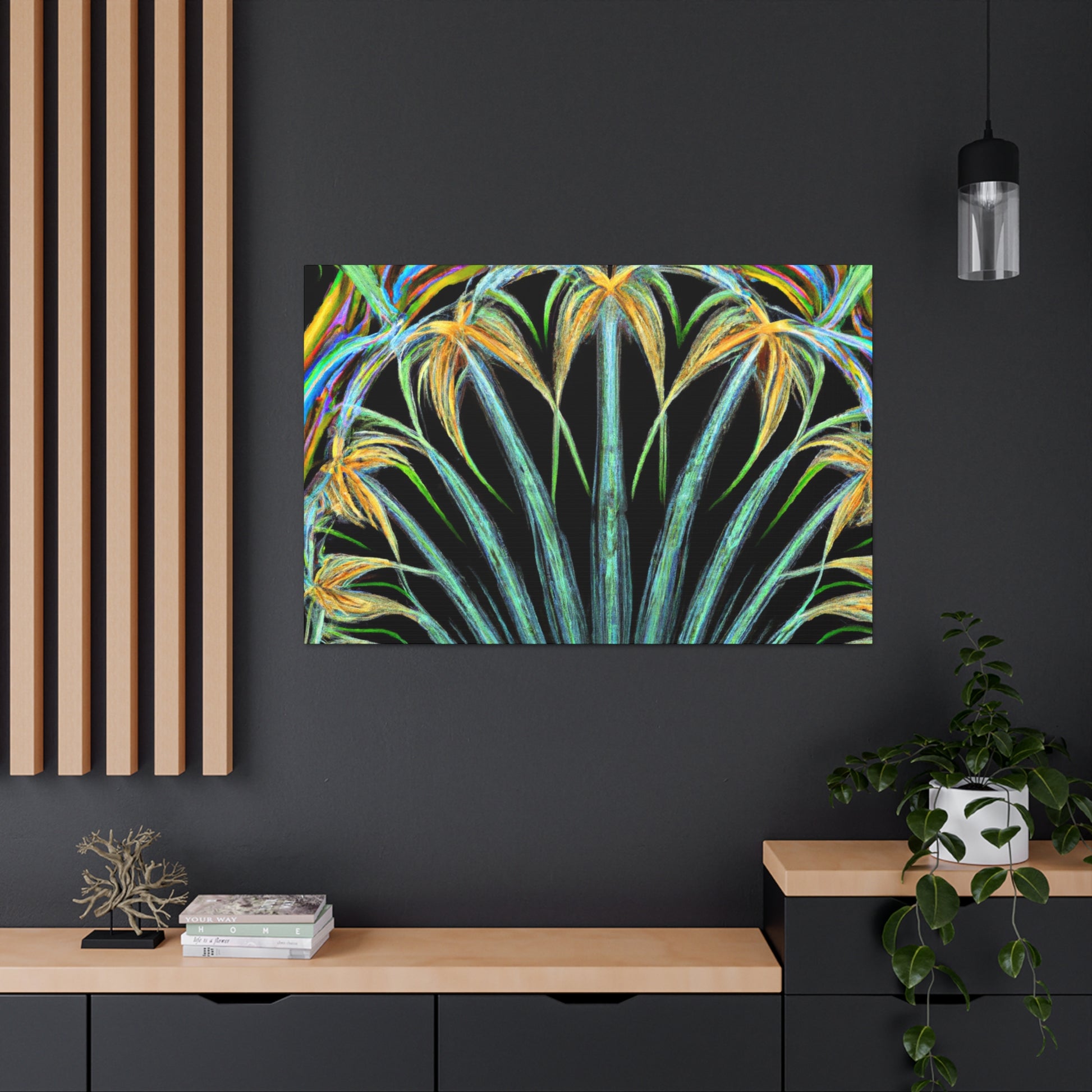 This vivid canvas depicts an abstract blend of trippy geometric palm leaves, kaleidoscope, 3D lines, and fractal patterns in bold, vibrant hues. Looks great hung anywhere, it is guaranteed to bring a spark of energy and life into the room. #abstractart#trippyart#palmtrees#palmleaves#kaleidoscope#3Dlines#fractal#digitalart#vibrantcolors#3Dvisuals