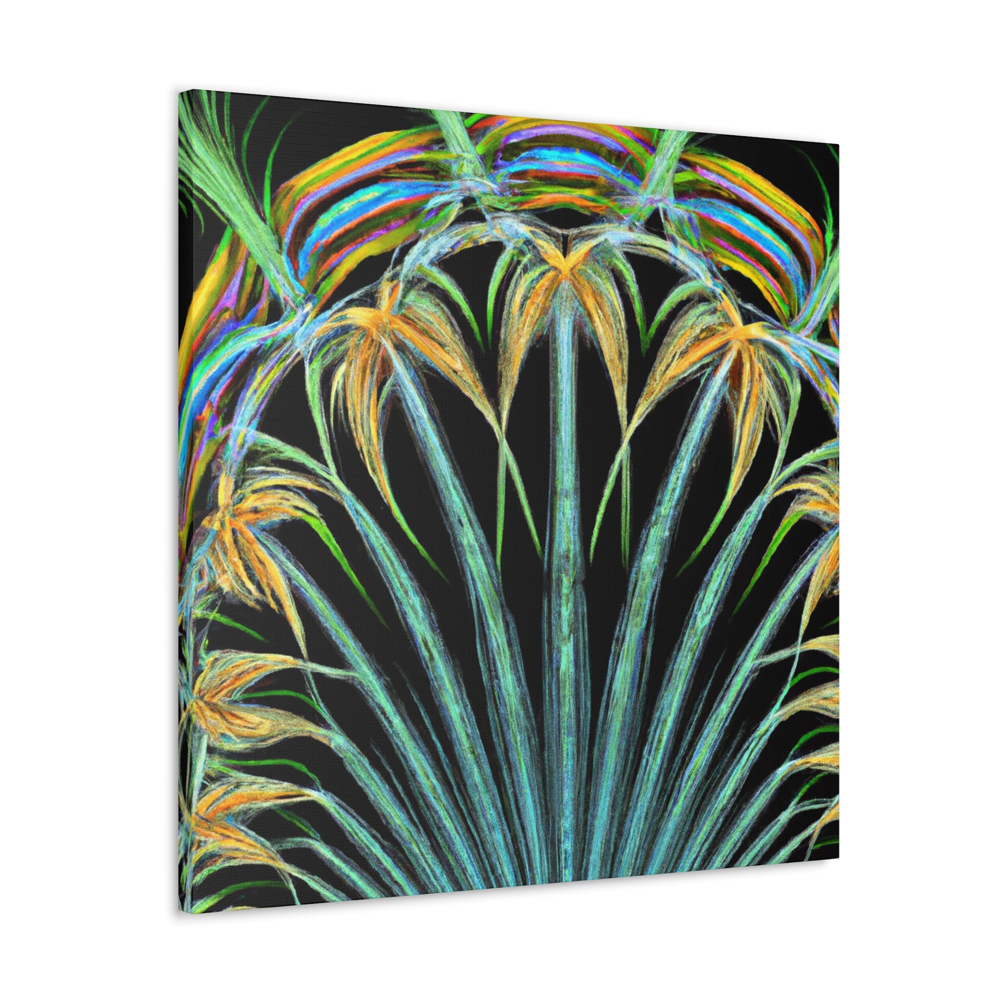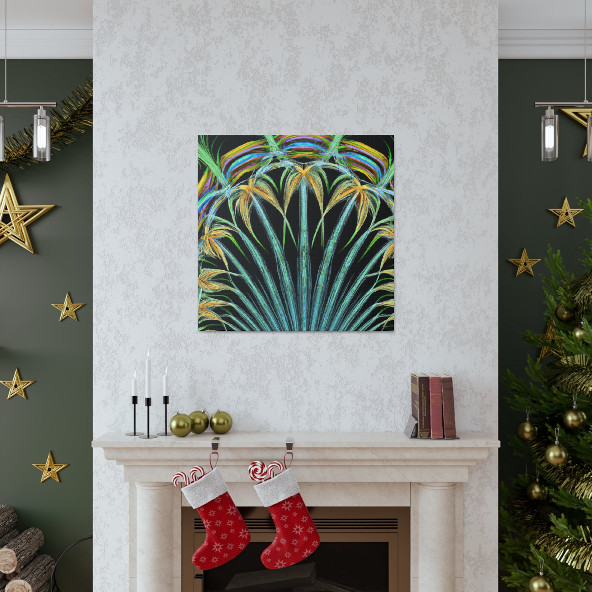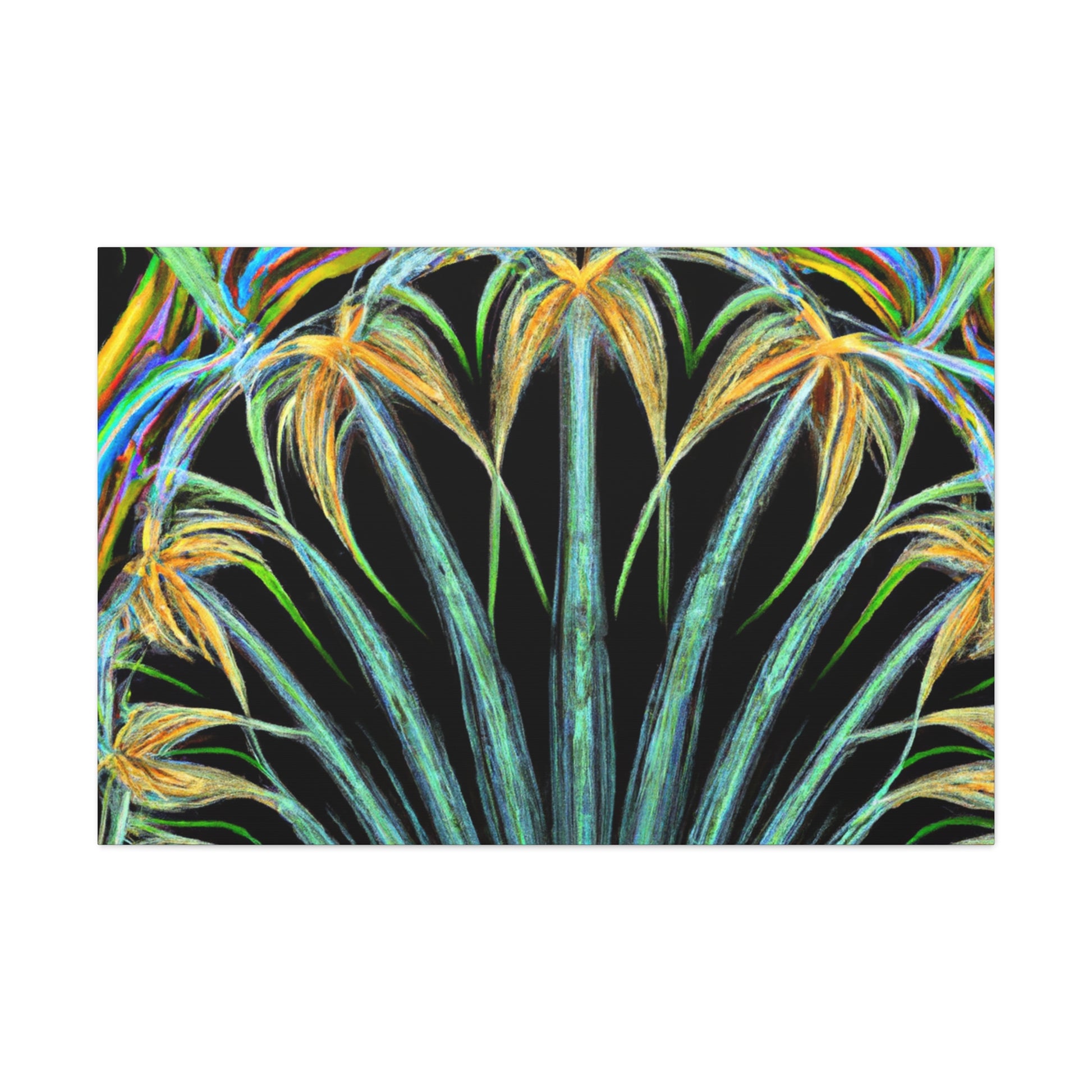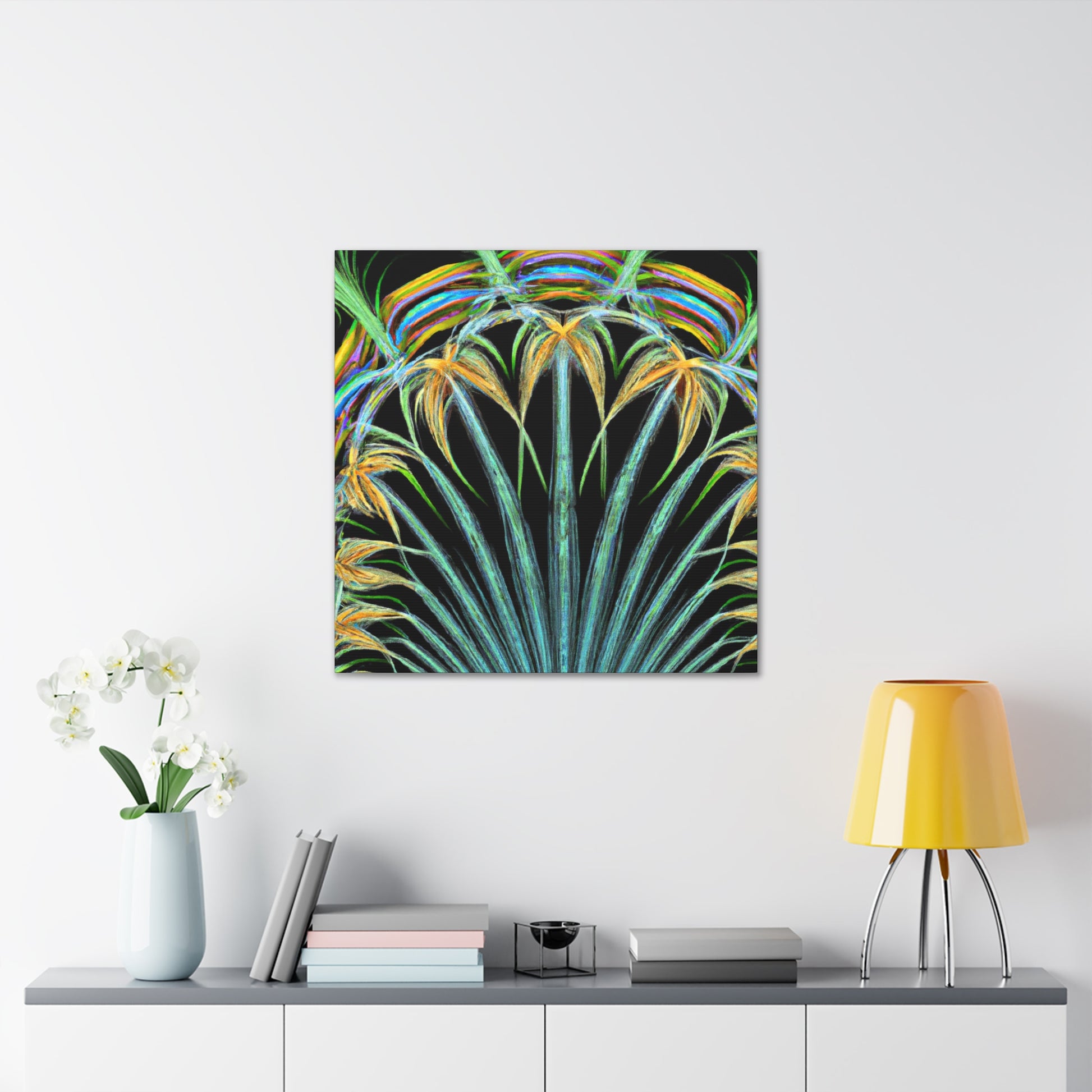 This vivid canvas depicts an abstract blend of trippy geometric palm leaves, kaleidoscope, 3D lines, and fractal patterns in bold, vibrant hues. Looks great hung anywhere, it is guaranteed to bring a spark of energy and life into the room. #abstractart#trippyart#palmtrees#palmleaves#kaleidoscope#3Dlines#fractal#digitalart#vibrantcolors#3Dvisuals