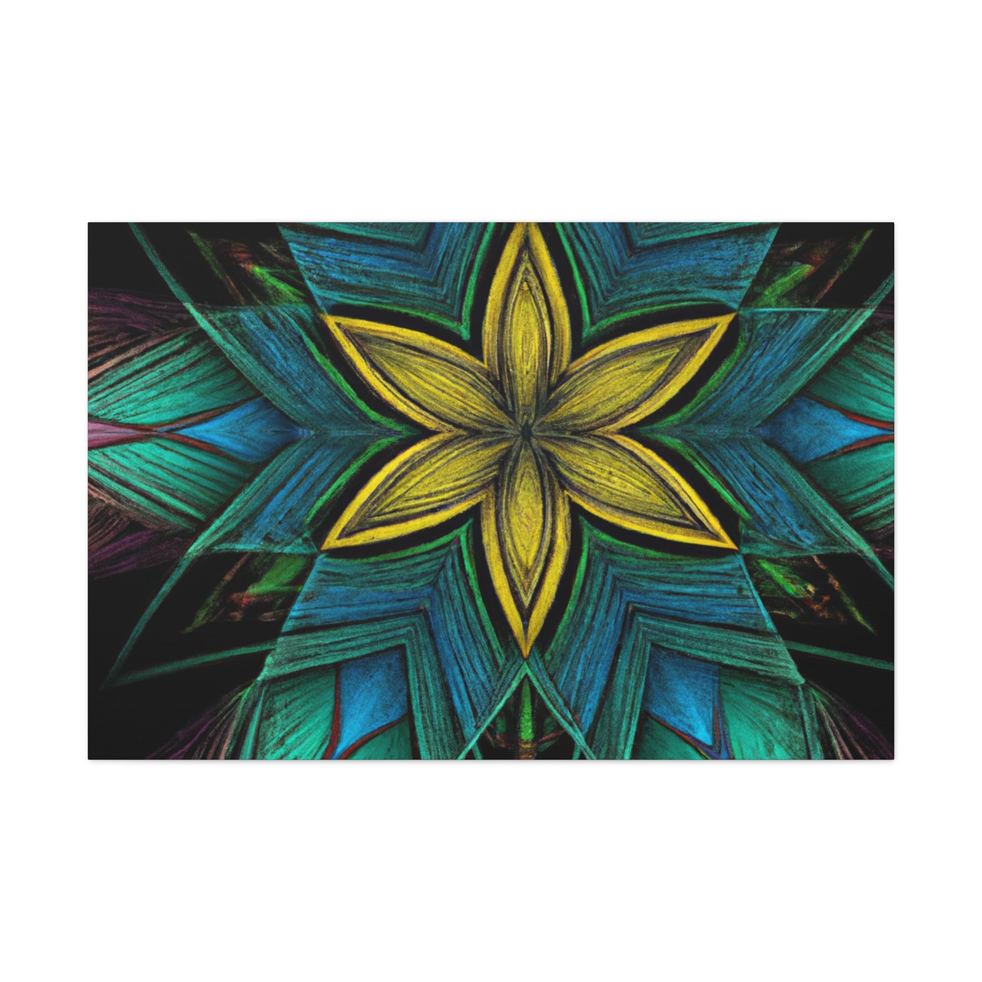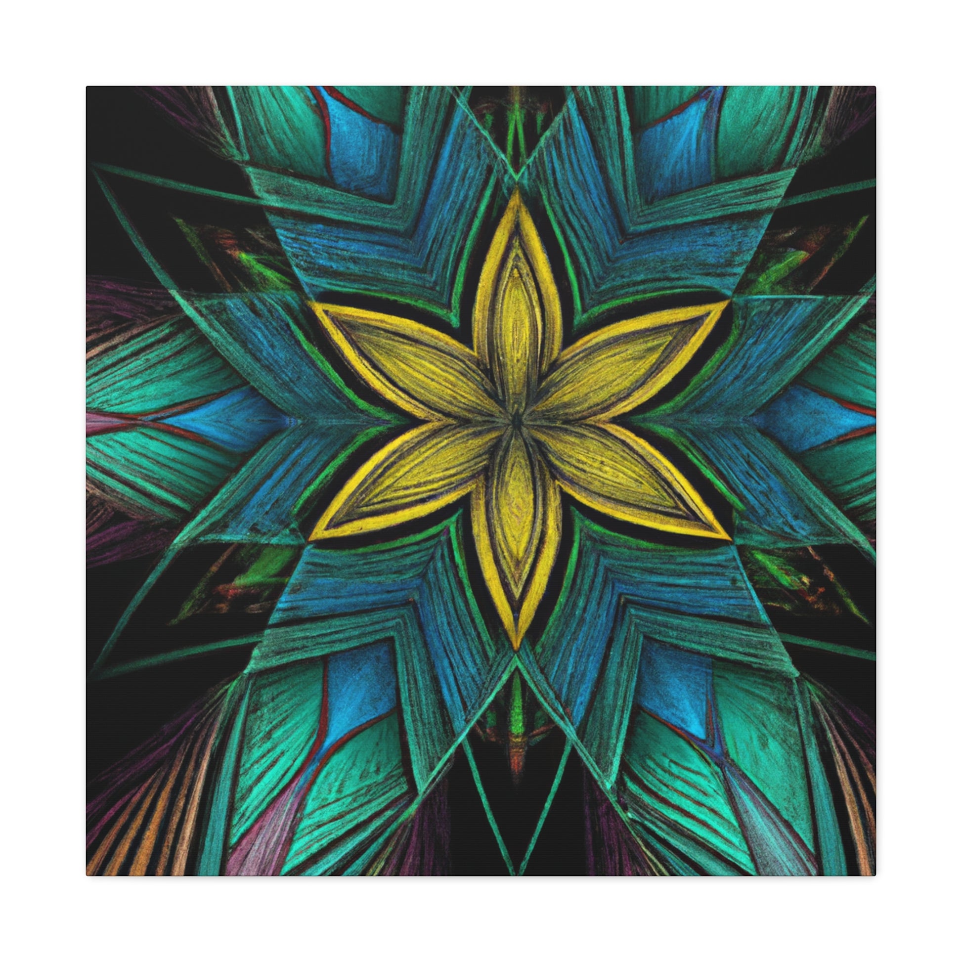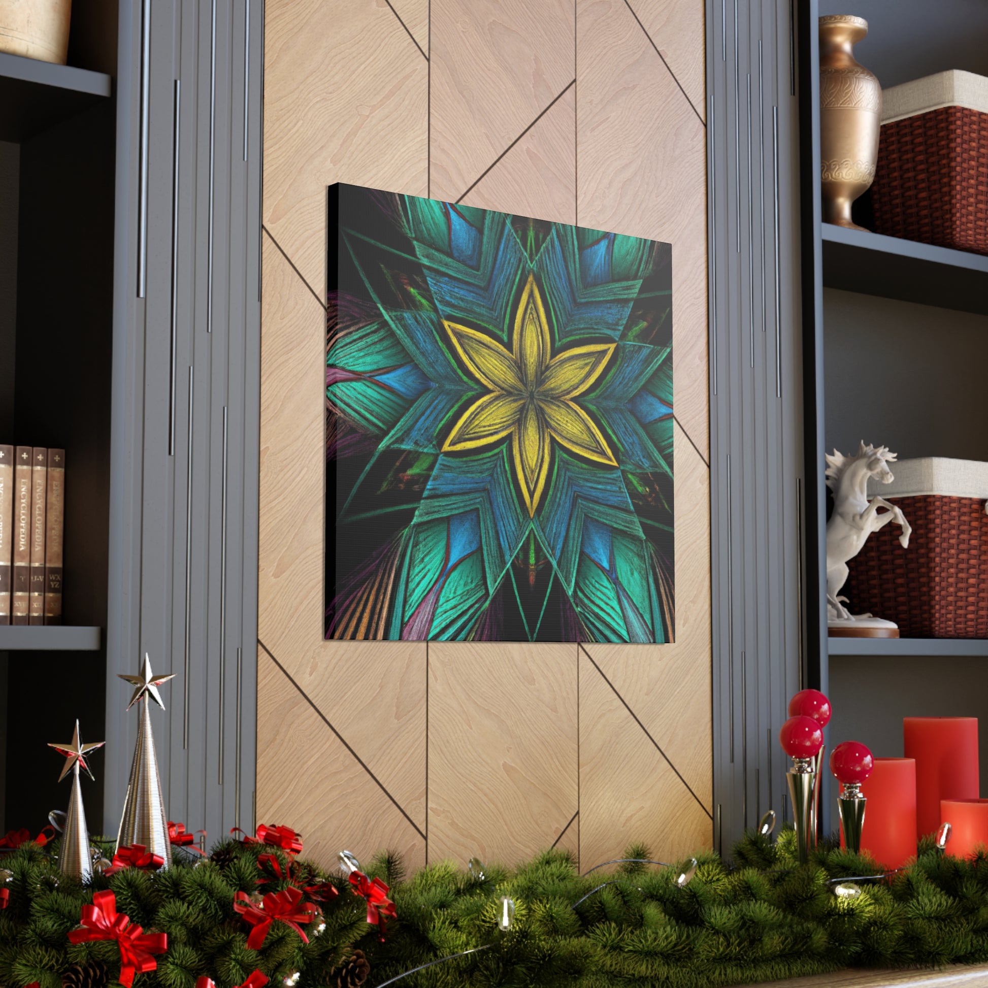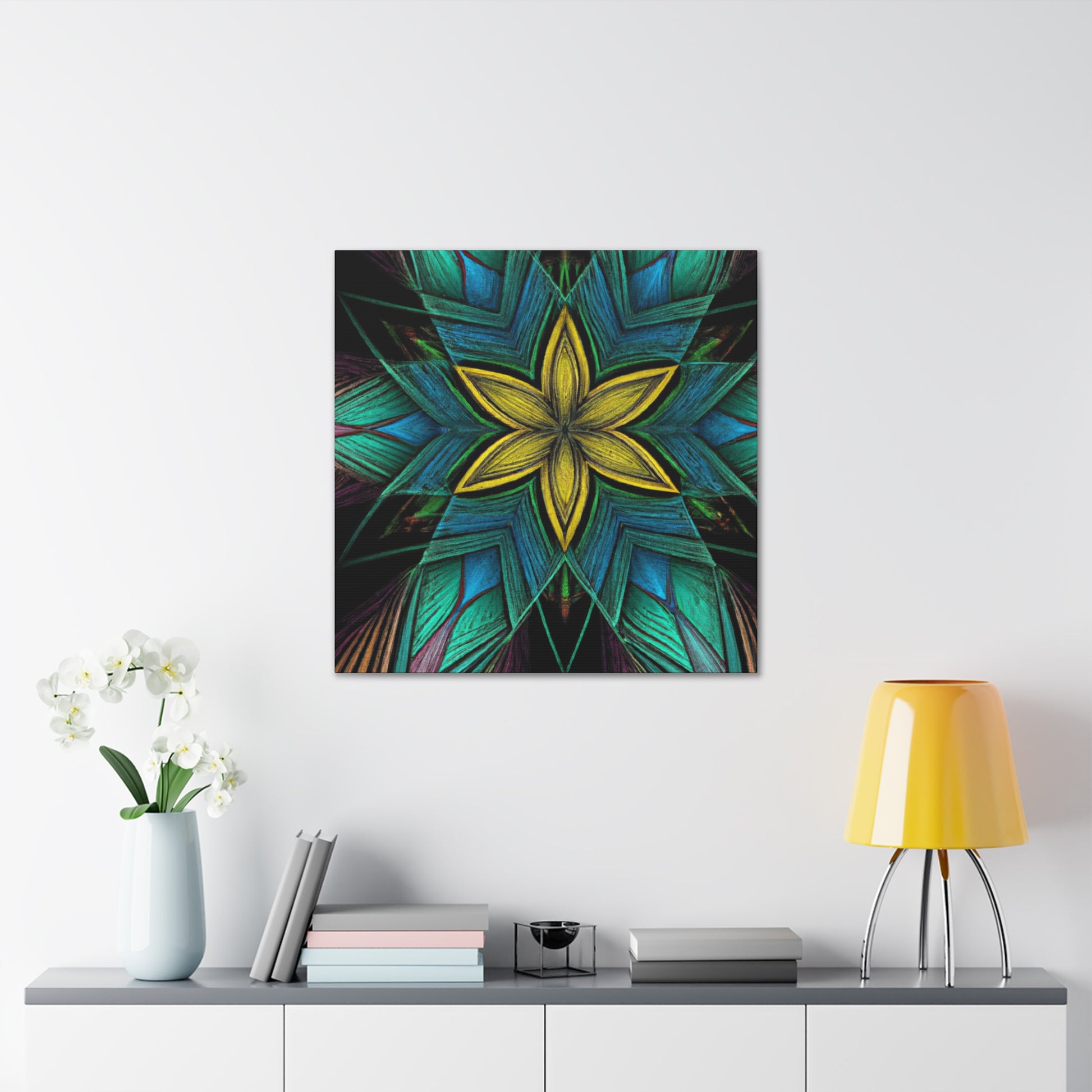 This vibrant abstract canvas features a mesmerizing array of trippy geometric palm leaves, kaleidoscope, 3D lines, and fractal. Its stimulating and eye-catching mix of digital art, bold colors, and crisp graphics will bring life to any wall. Perfect for any modern-style living space, this unique décor is sure to spark conversation and imagination. #abstractart #digitalart #fractalart #trippyart #kaleidoscope #palmleaves #geometricart #futuristicart #vibrantcolors #3Dlines #modernart