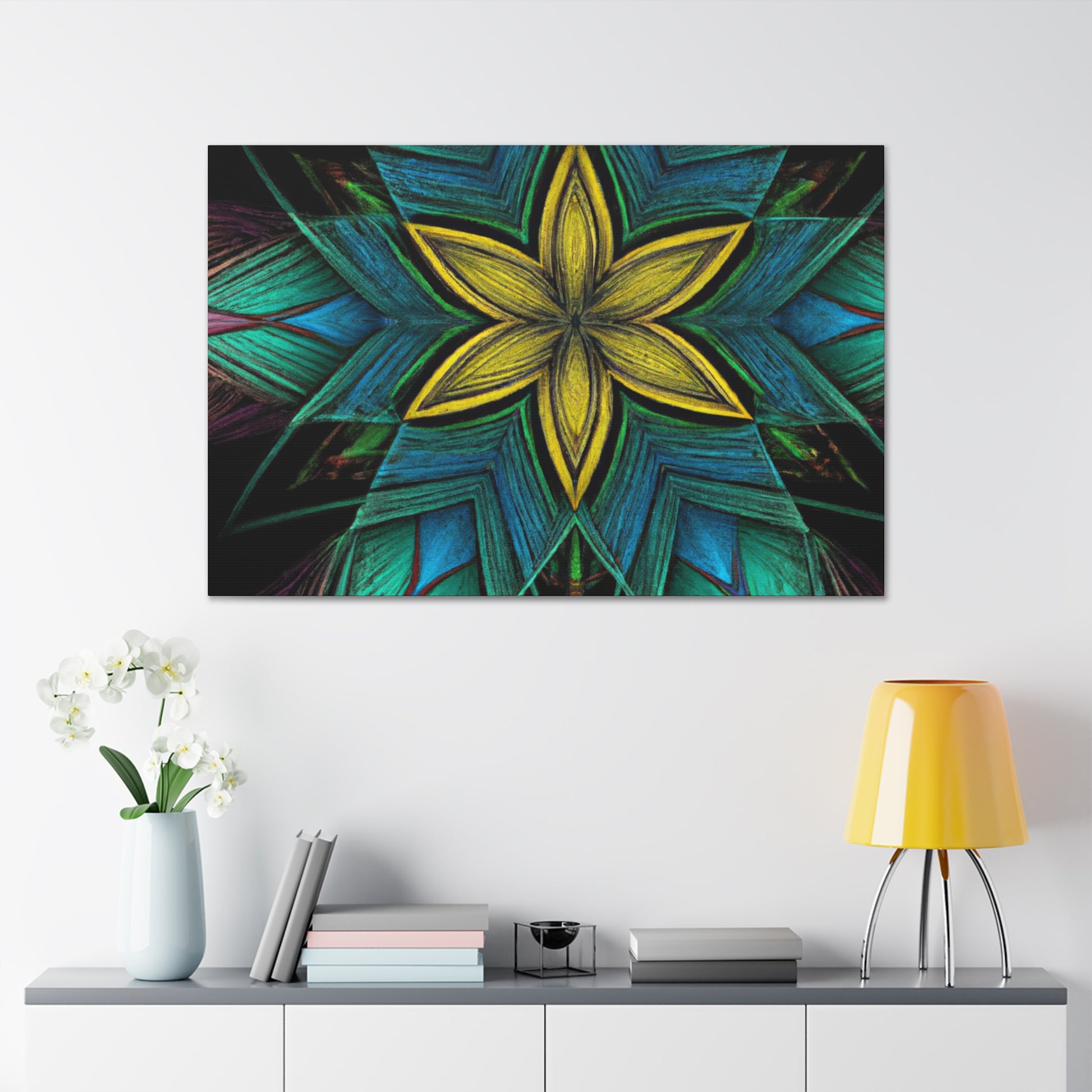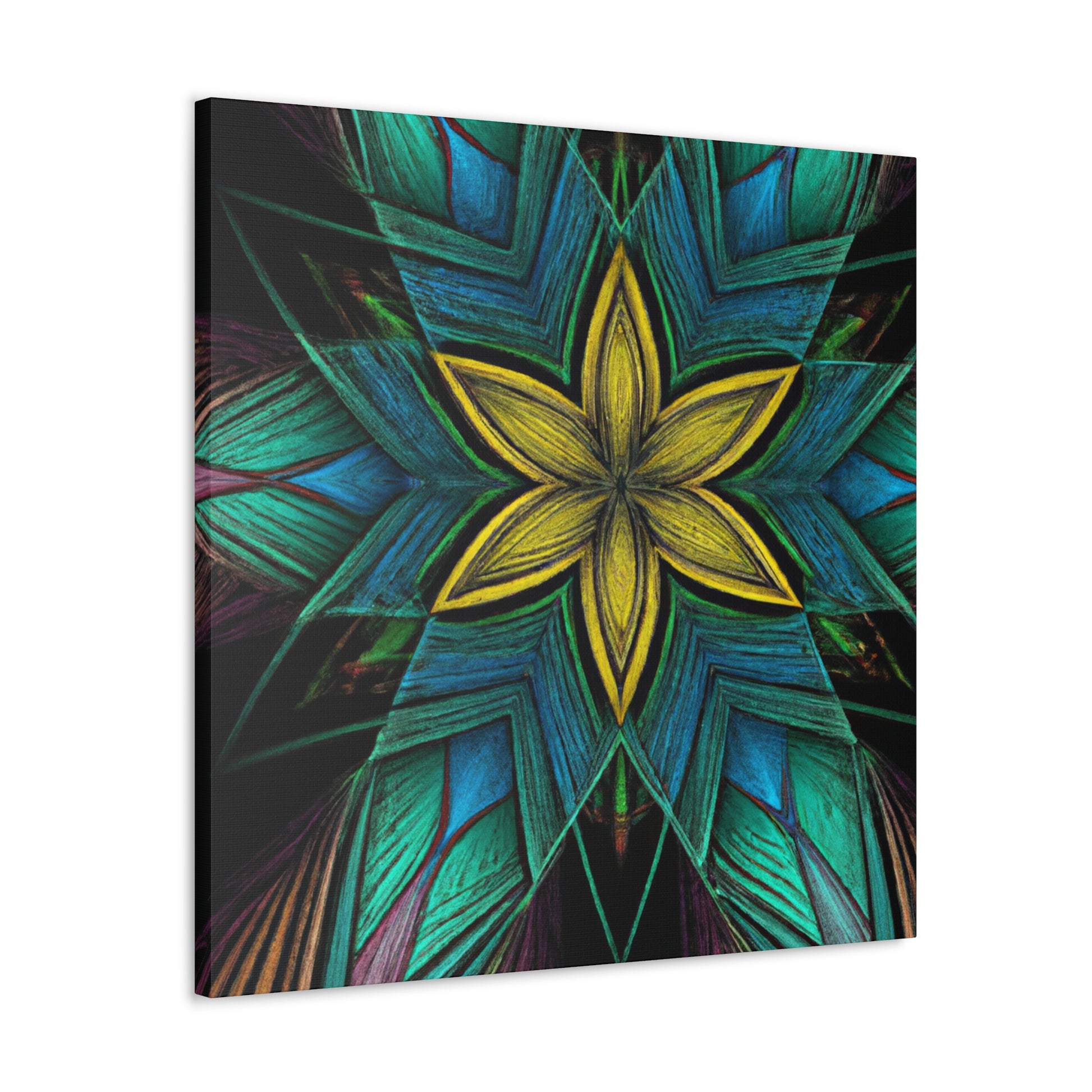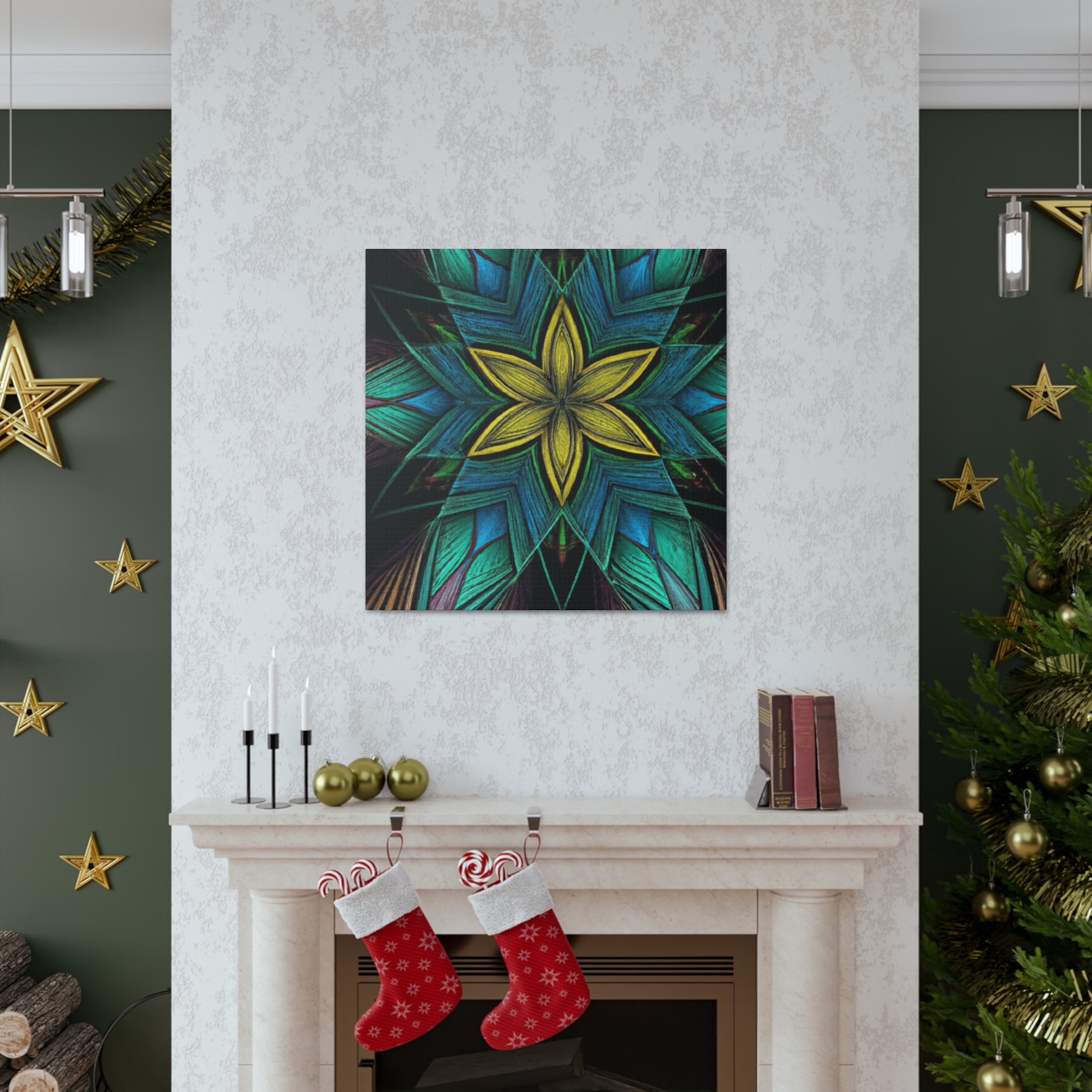 This vibrant abstract canvas features a mesmerizing array of trippy geometric palm leaves, kaleidoscope, 3D lines, and fractal. Its stimulating and eye-catching mix of digital art, bold colors, and crisp graphics will bring life to any wall. Perfect for any modern-style living space, this unique décor is sure to spark conversation and imagination. #abstractart #digitalart #fractalart #trippyart #kaleidoscope #palmleaves #geometricart #futuristicart #vibrantcolors #3Dlines #modernart
