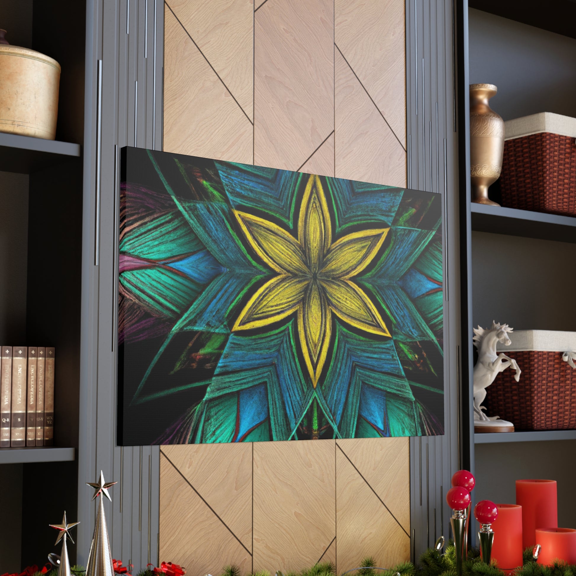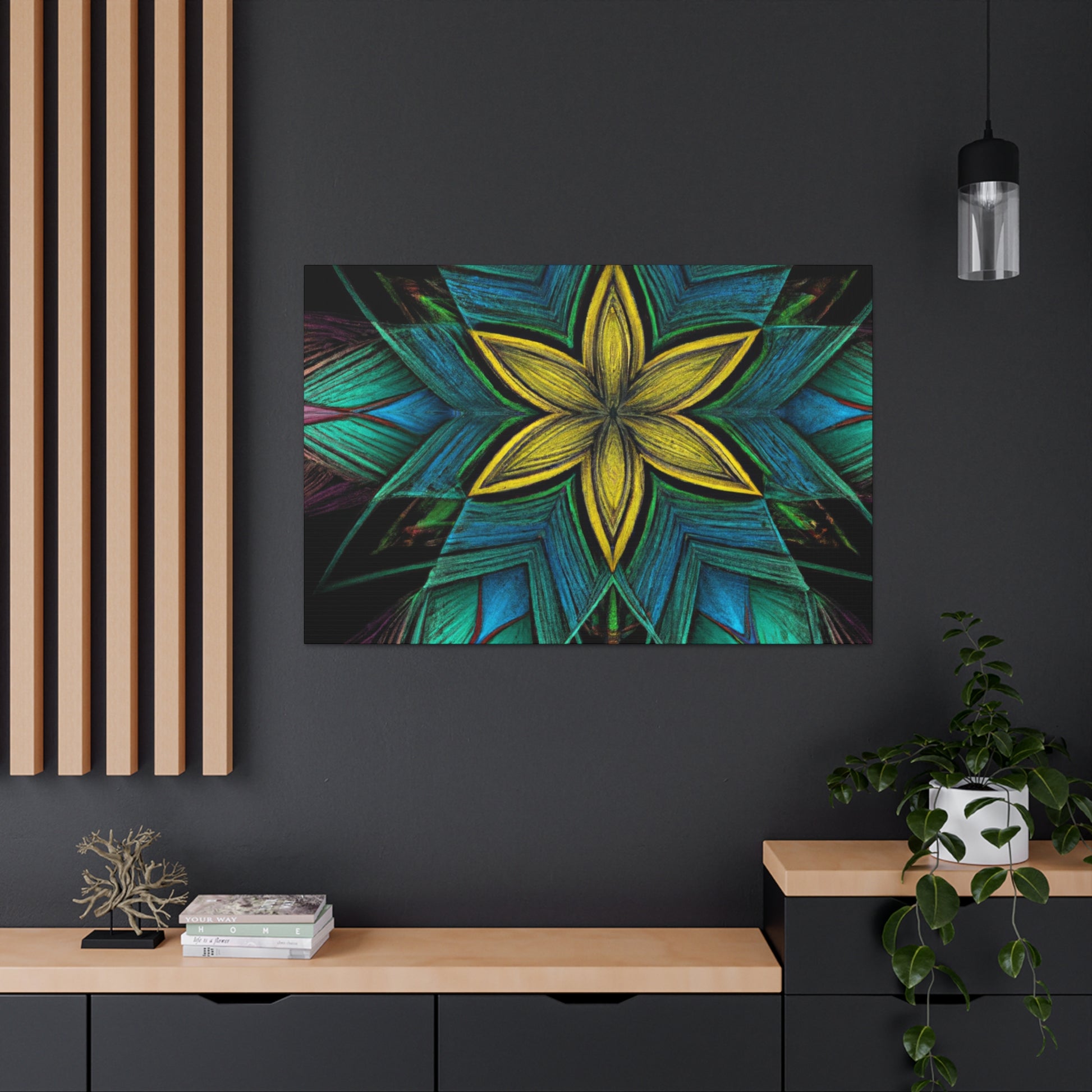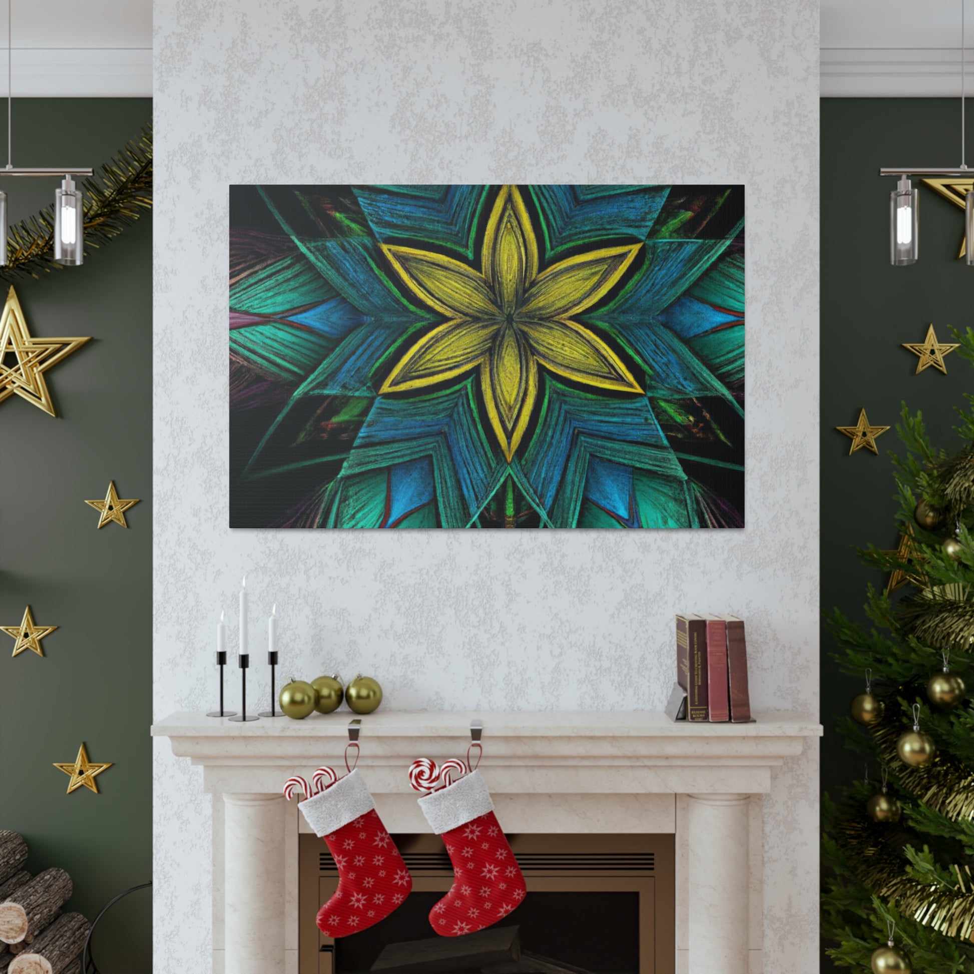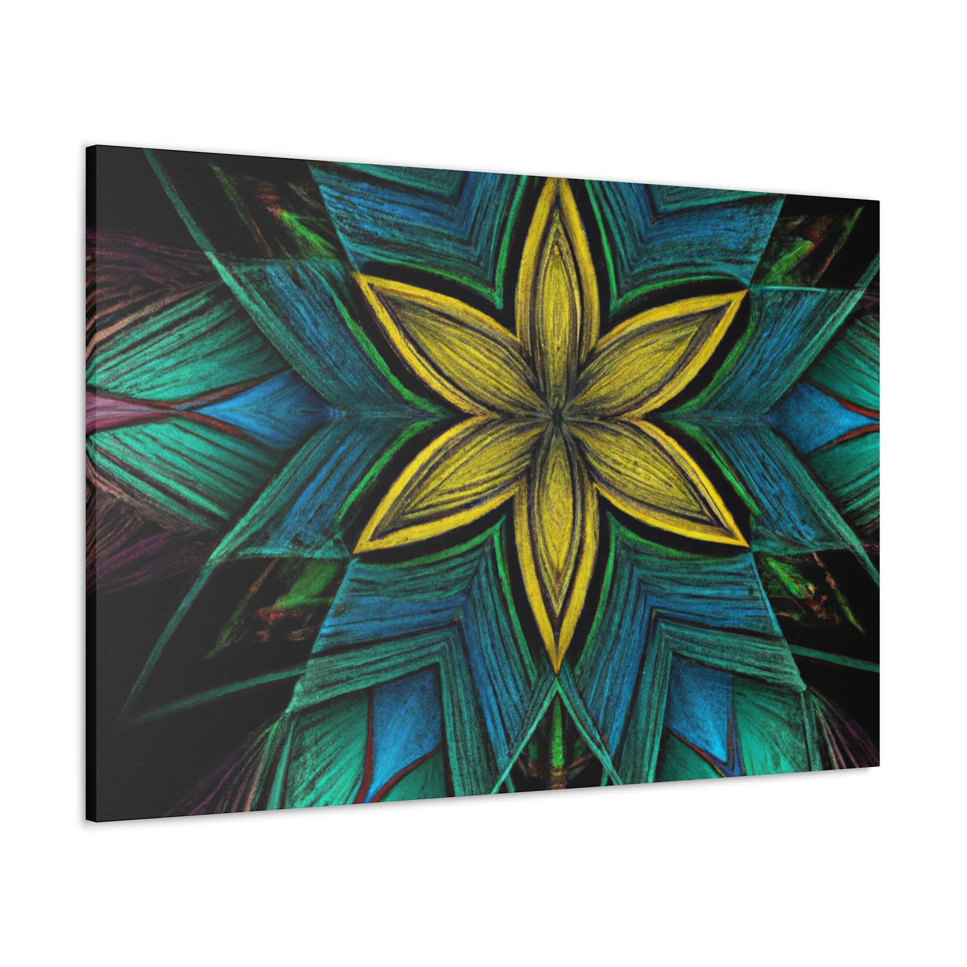 This vibrant abstract canvas features a mesmerizing array of trippy geometric palm leaves, kaleidoscope, 3D lines, and fractal. Its stimulating and eye-catching mix of digital art, bold colors, and crisp graphics will bring life to any wall. Perfect for any modern-style living space, this unique décor is sure to spark conversation and imagination. #abstractart #digitalart #fractalart #trippyart #kaleidoscope #palmleaves #geometricart #futuristicart #vibrantcolors #3Dlines #modernart
