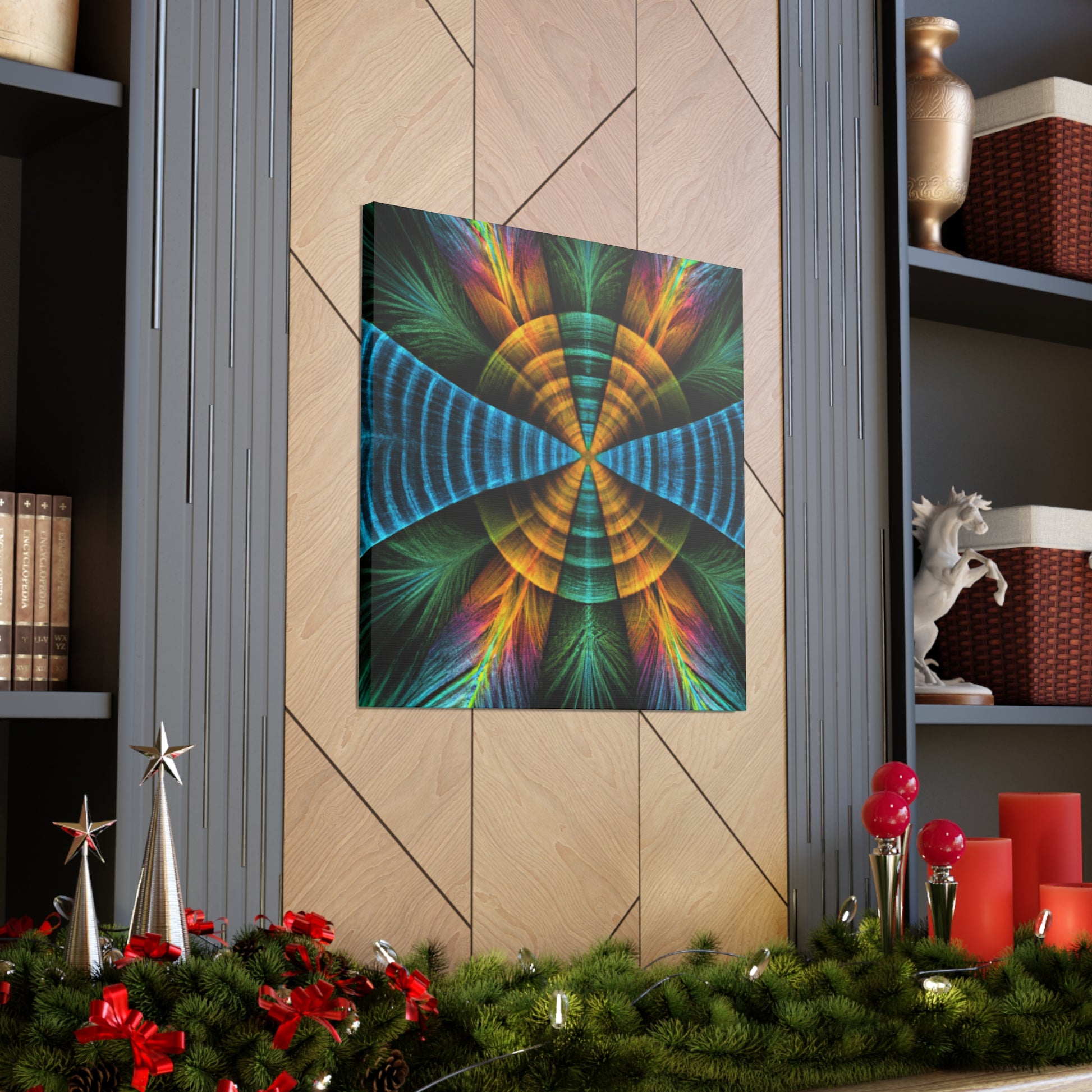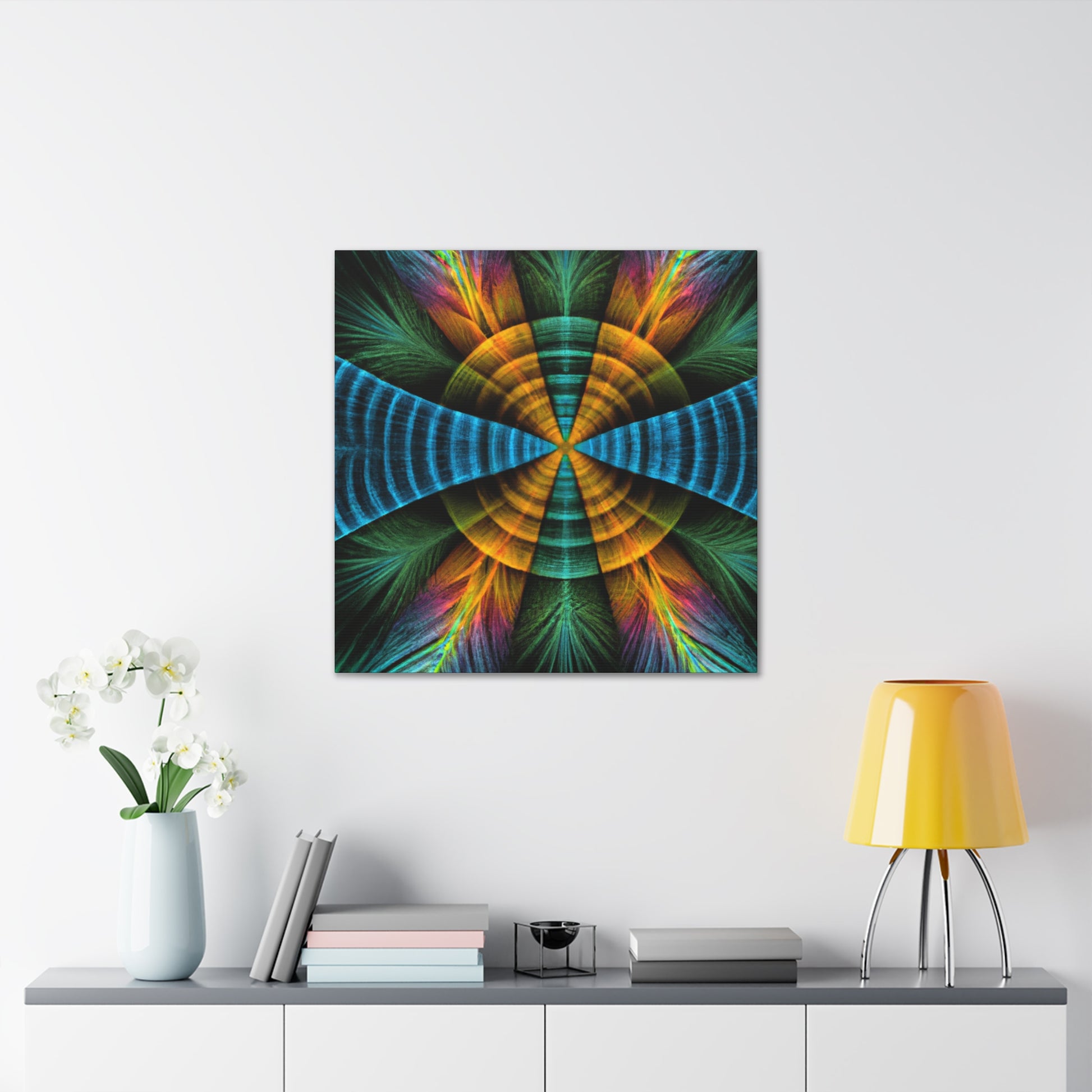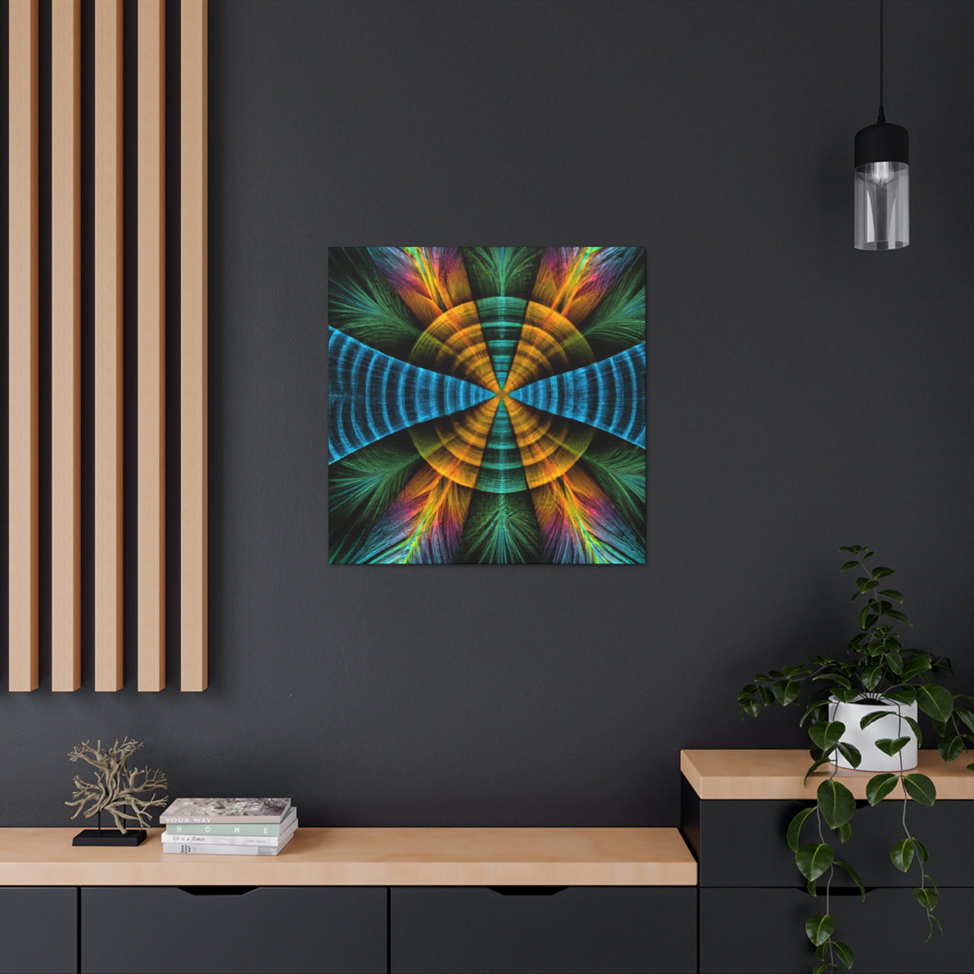 This canvas of trippy, geometric palm leaves is a visual feast for the eyes! Featuring abstract, digital art, 3D lines, and vivid colors, this piece creates a unique and mesmerizing blend of kaleidoscope and fractal elements. Add a splash of vibrancy to your home or office for a stunning look that will make any wall come to life. #abstractart #digitalart #3Dlines #kaleidoscope #fractal #palmleaves #vibrantcolors #canvasart #geometricart #contemporaryart #trippyart