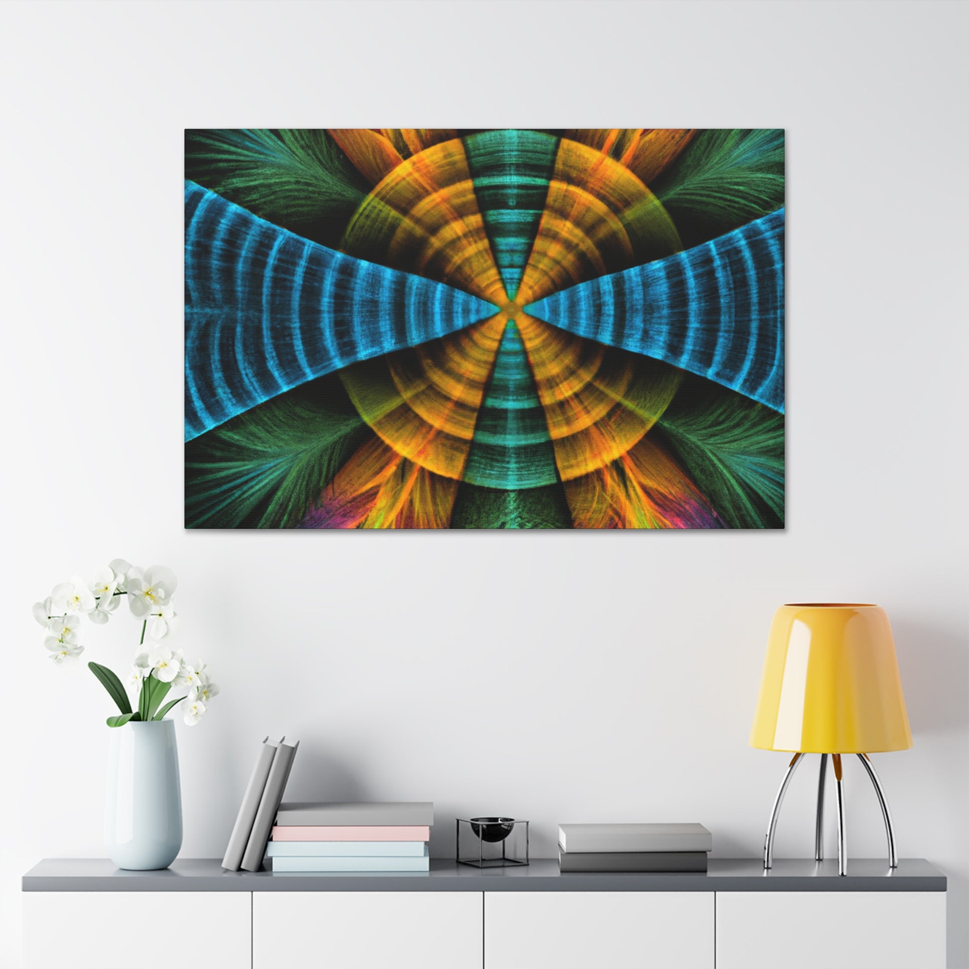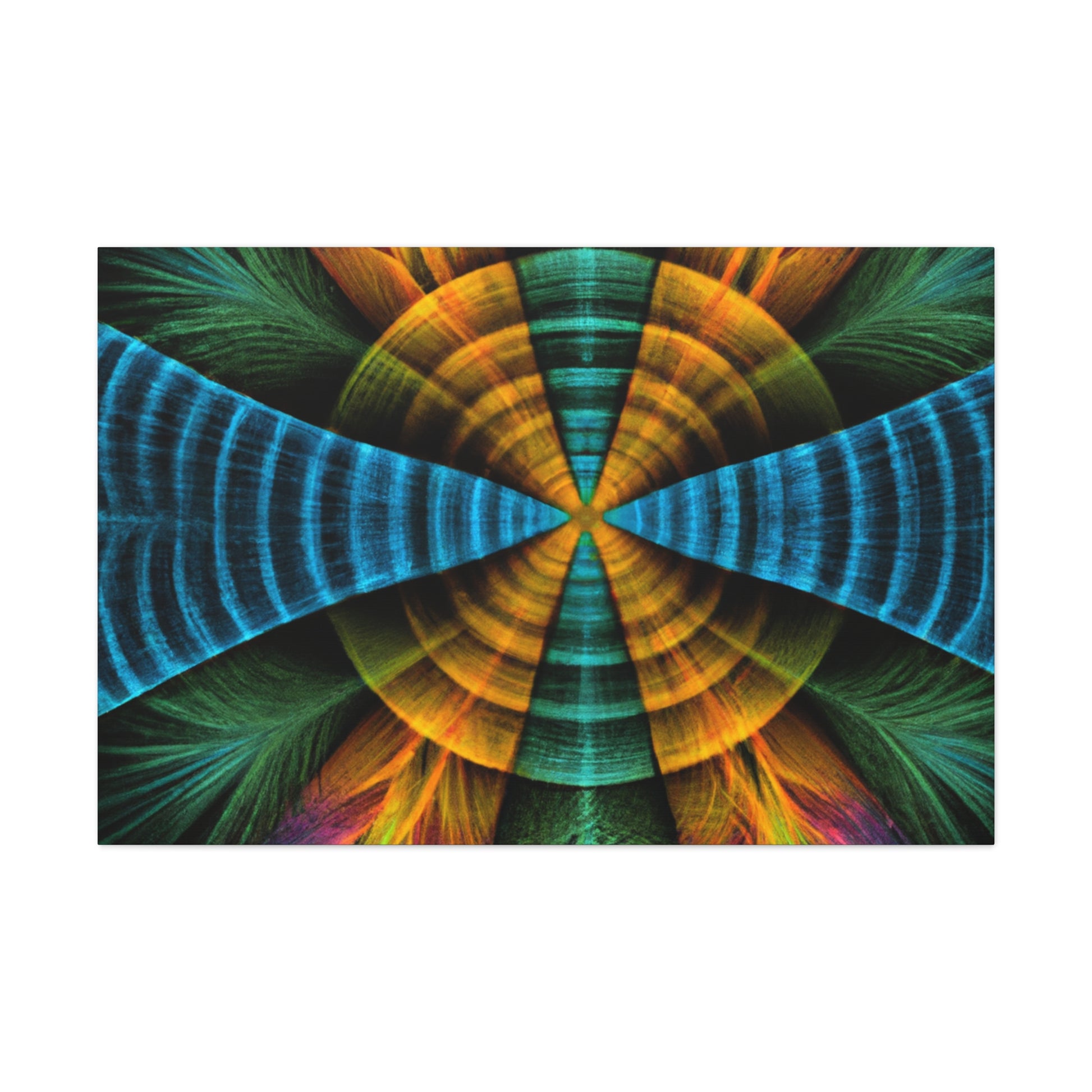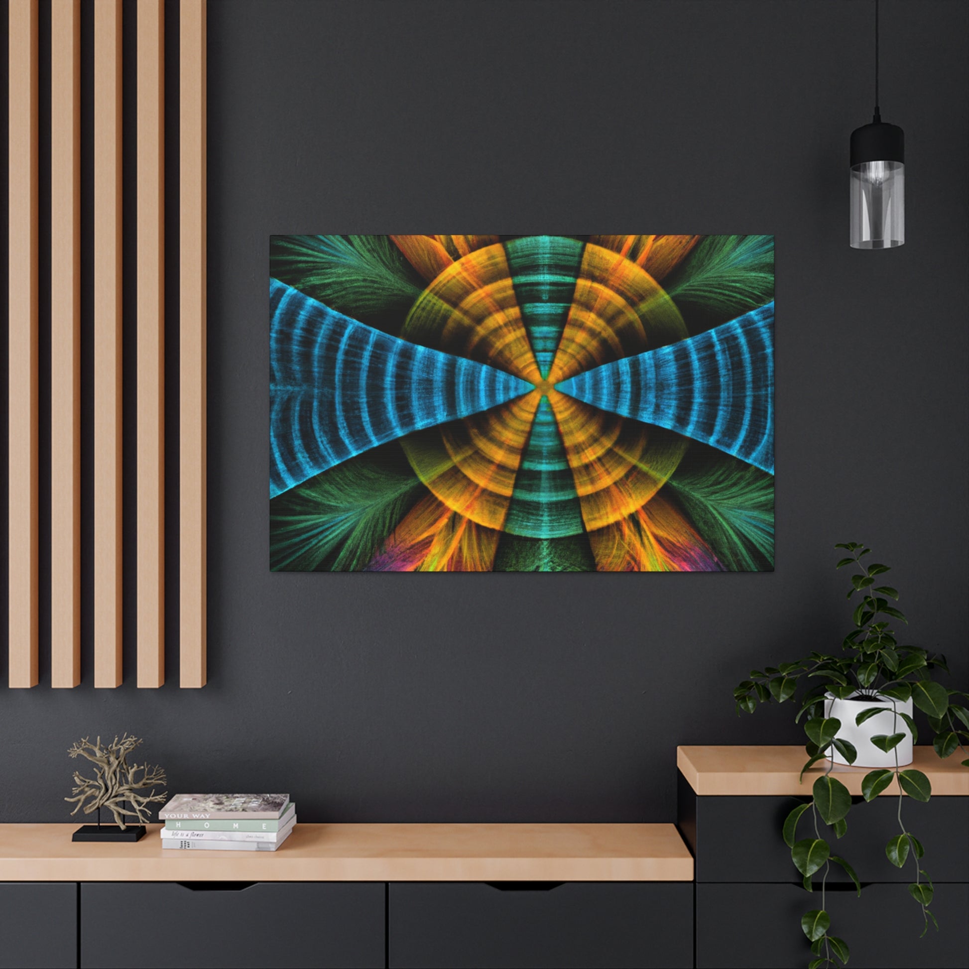 This canvas of trippy, geometric palm leaves is a visual feast for the eyes! Featuring abstract, digital art, 3D lines, and vivid colors, this piece creates a unique and mesmerizing blend of kaleidoscope and fractal elements. Add a splash of vibrancy to your home or office for a stunning look that will make any wall come to life. #abstractart #digitalart #3Dlines #kaleidoscope #fractal #palmleaves #vibrantcolors #canvasart #geometricart #contemporaryart #trippyart