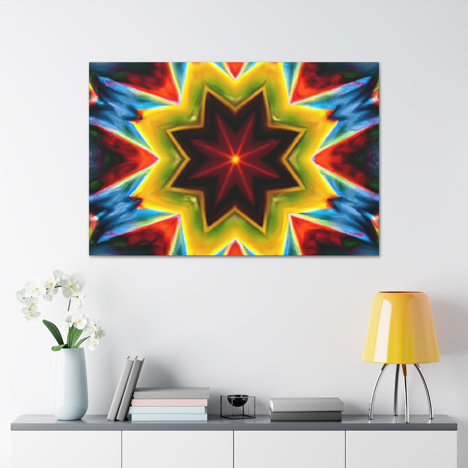 This vibrant digital art piece will shock and fill your home with stunning stars, kaleidoscopic patterns and vivid abstract designs. This beautiful HD canvas, featuring symmetrical designs and bold vibrant colors, is the perfect way to bring life to any wall in your home. #digitalart #art #canvas #vivid #stars #kaleidoscope #abstract #symmetrical #vibrant #HD #beautiful