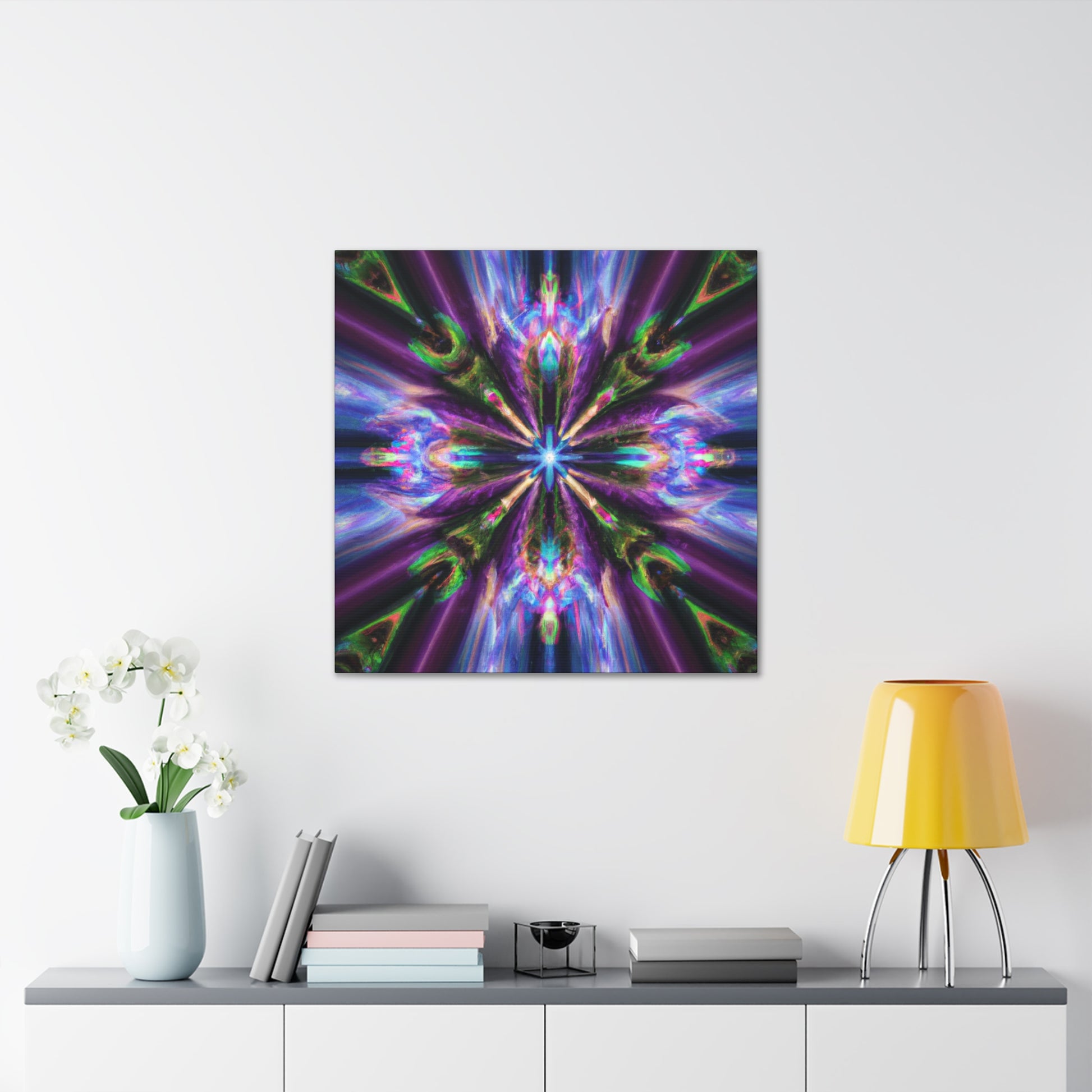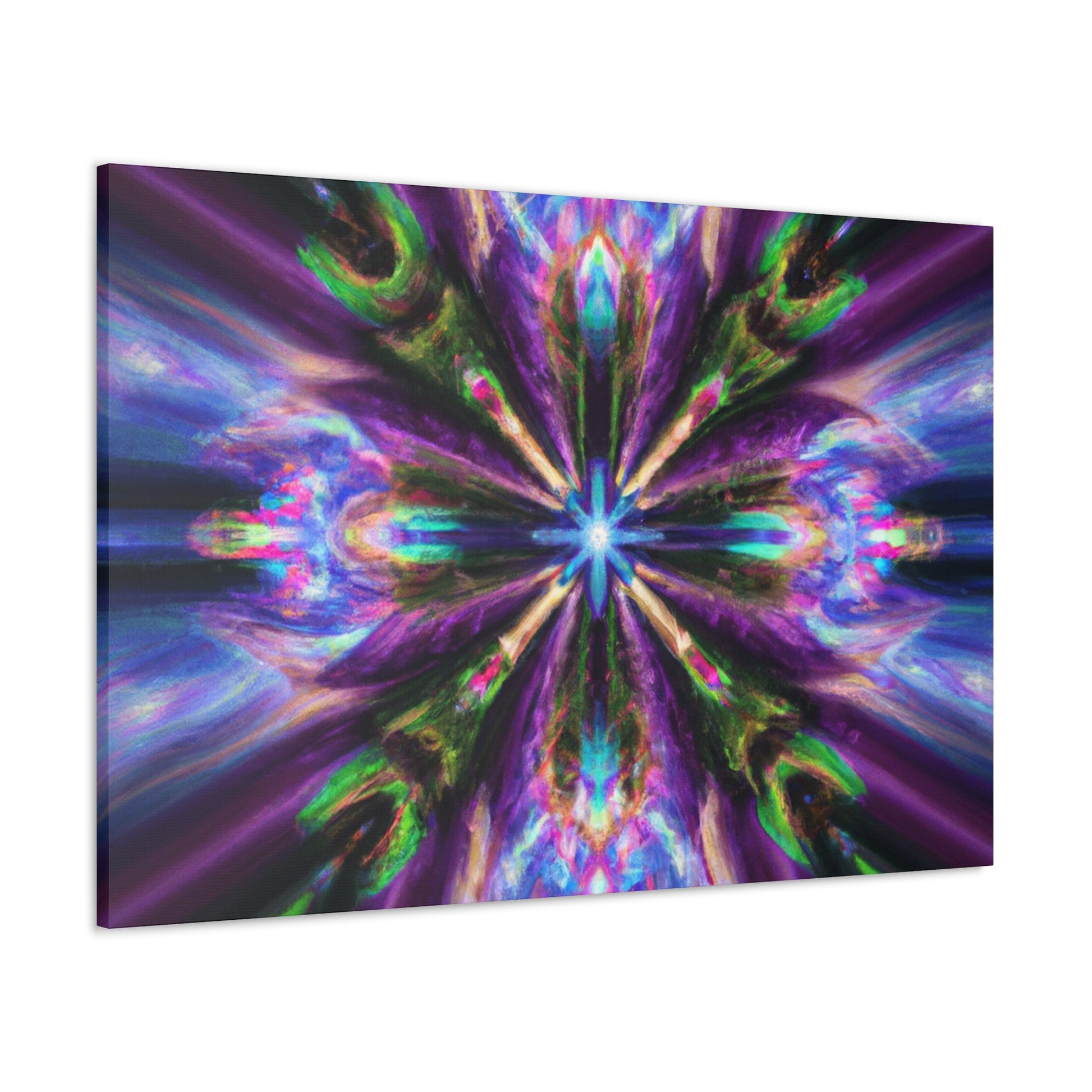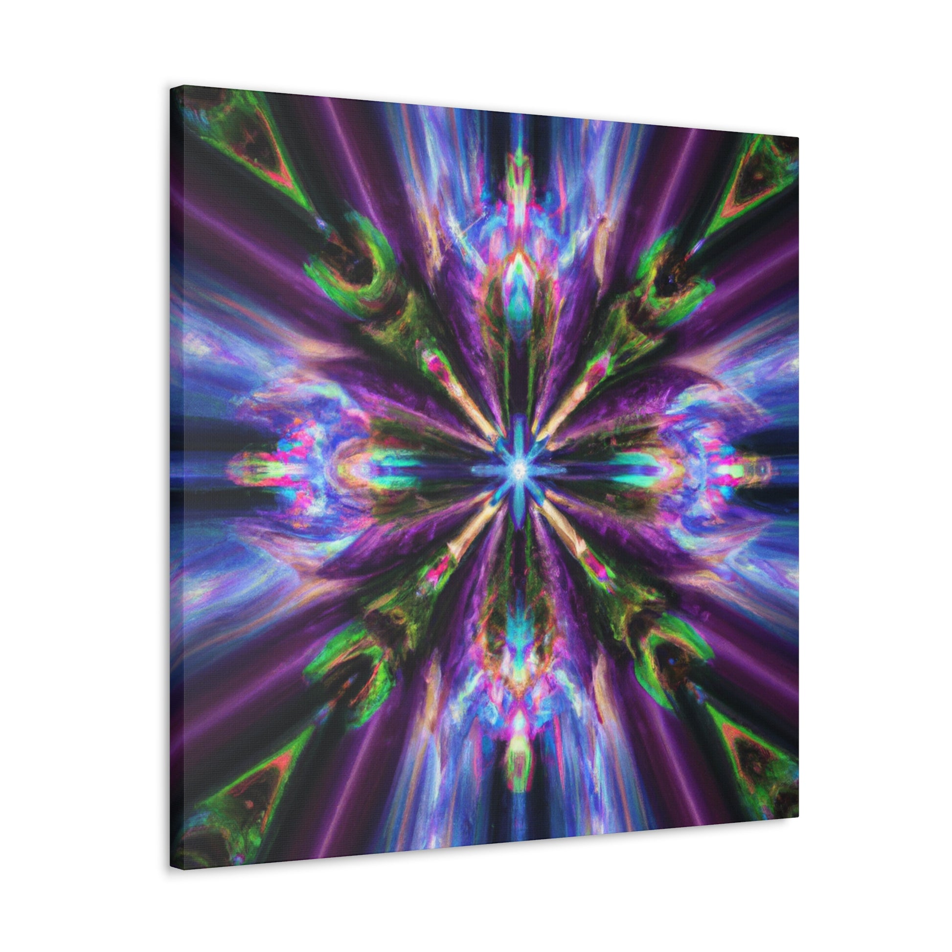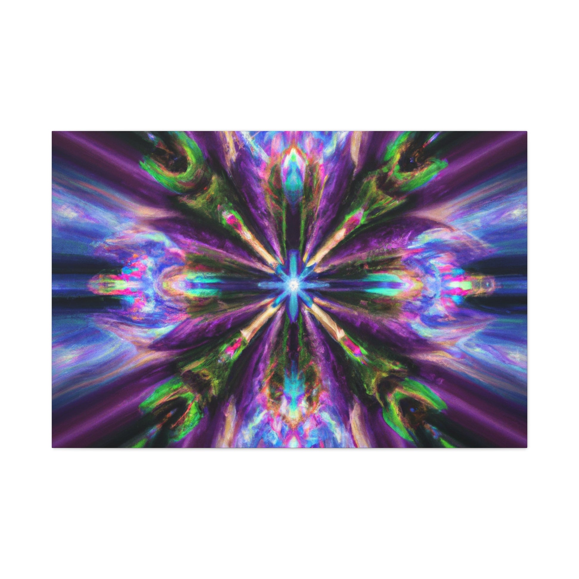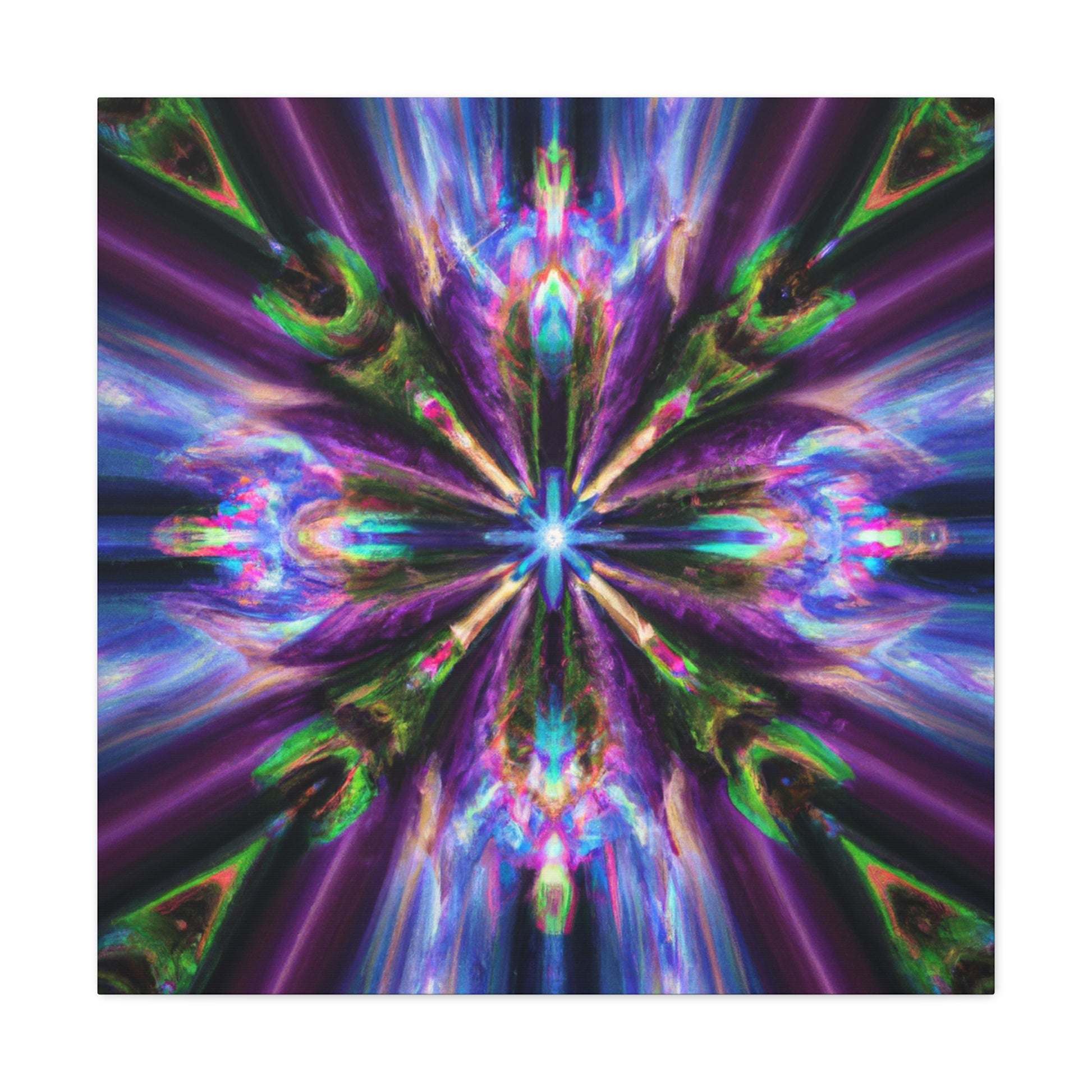 This stunning canvas features the digital art of Trippy stars, kaleidoscope, abstract design, and vibrant colors. Printed in HD, this symmetrical art is perfect for any wall and is sure to catch your eye. #Canvas #WallArt #Abstract #Kaleidoscope #Digital #TrippyStars #Art #Vibrant #HD #Symmetrical #Decor