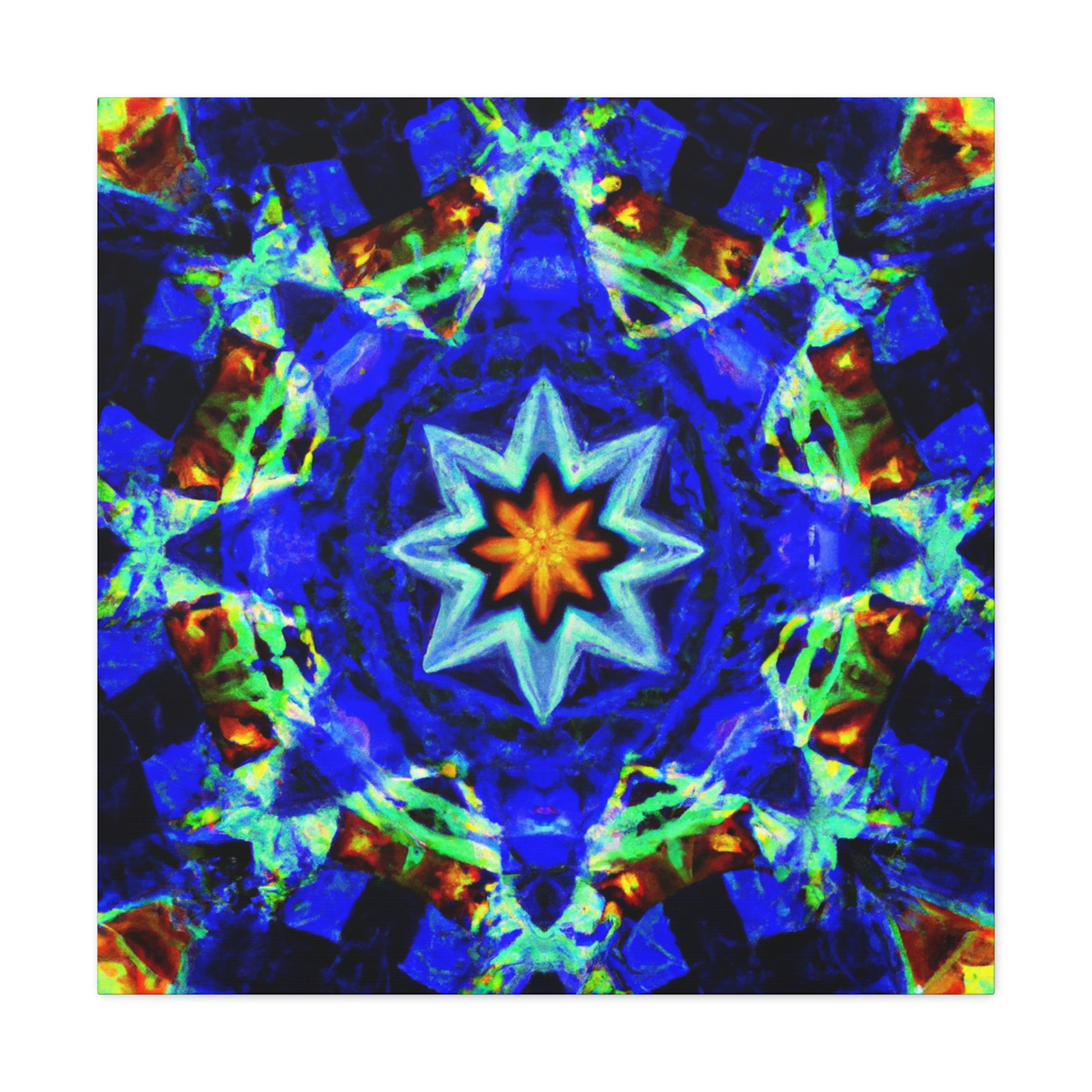 Break out of reality and jump into a whimsical digital world with this beautiful abstract canvas! This piece features a stunning symmetrical design with bright, vibrant colors radiating in every direction in HD. From stars to an endless kaleidoscope of shapes, you'll be taken away with all the possible beauty this piece has to offer! #DigitalArt #AbstractArt #VibrantColors #Stars #Kaleidoscope #Patterns #Abstract #Symmetry #HD #Canvas #Trippy