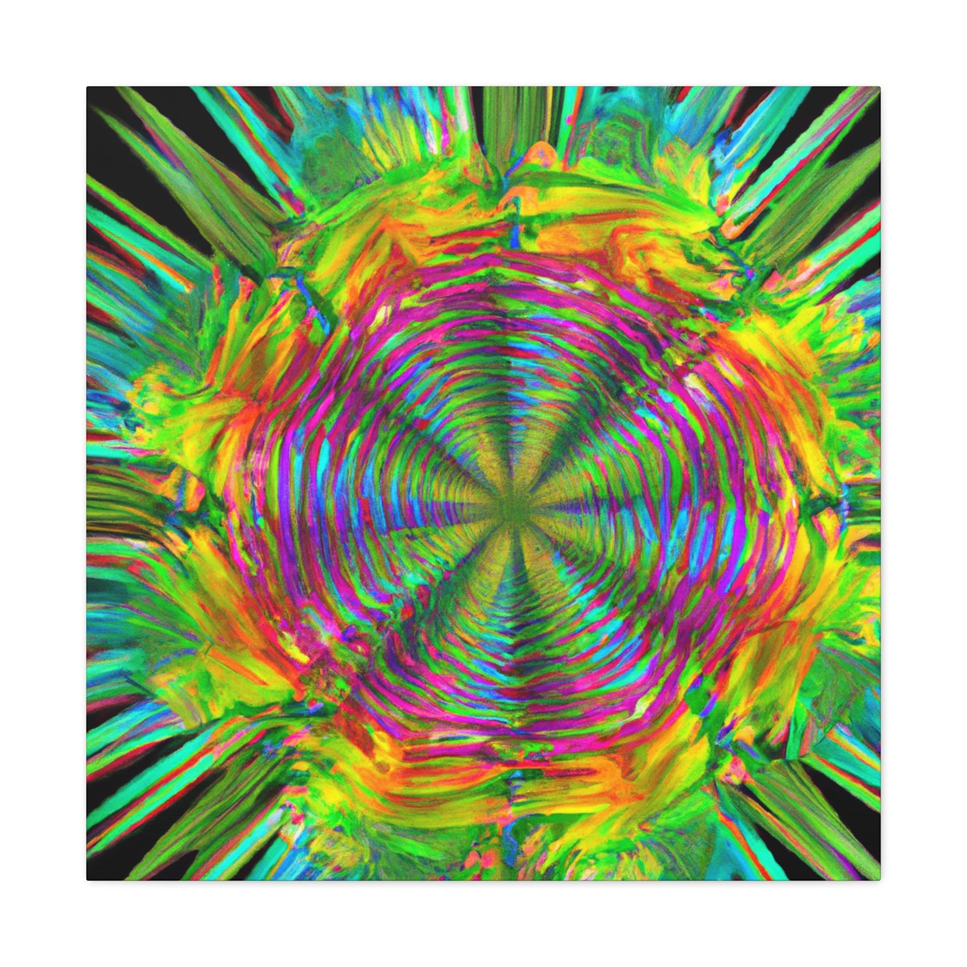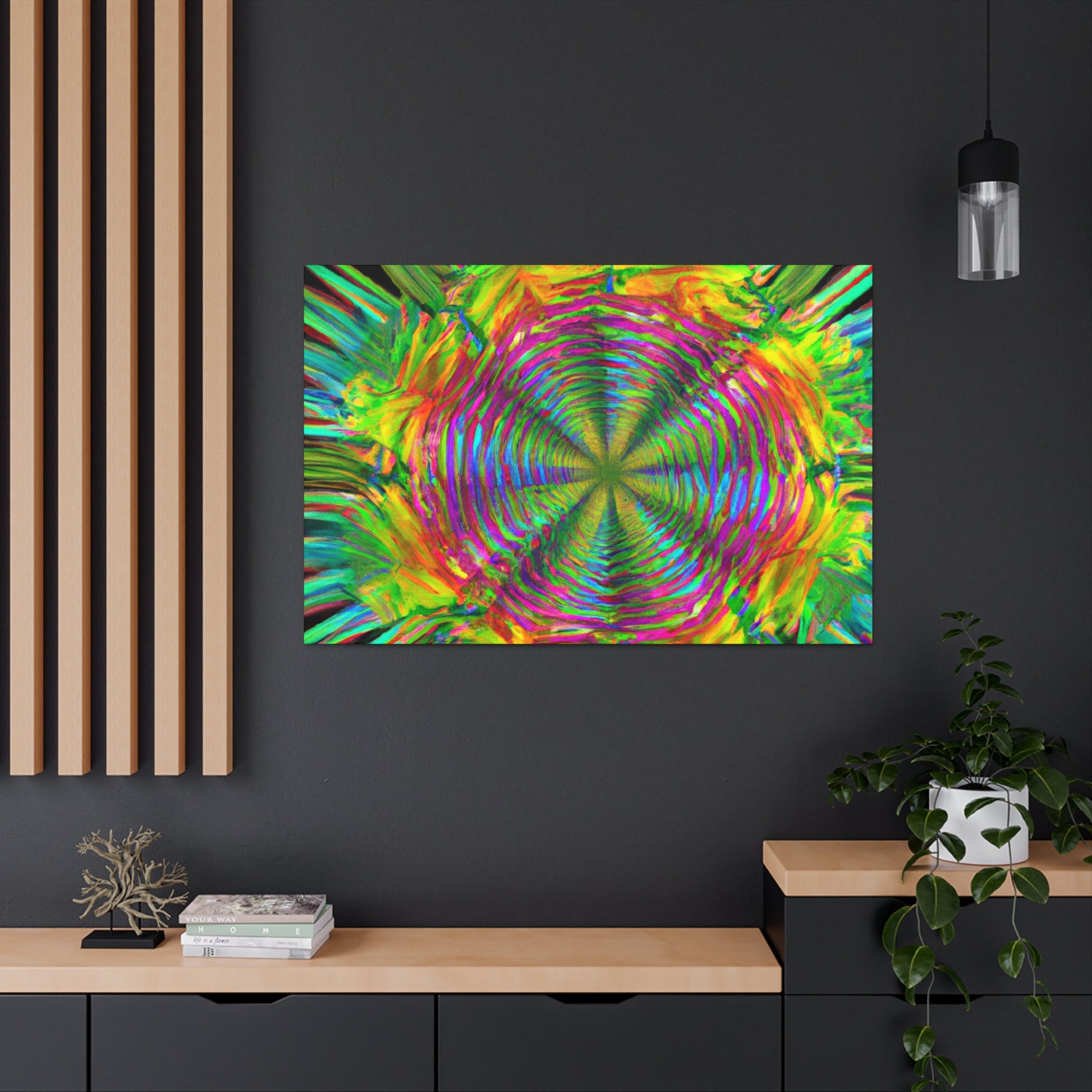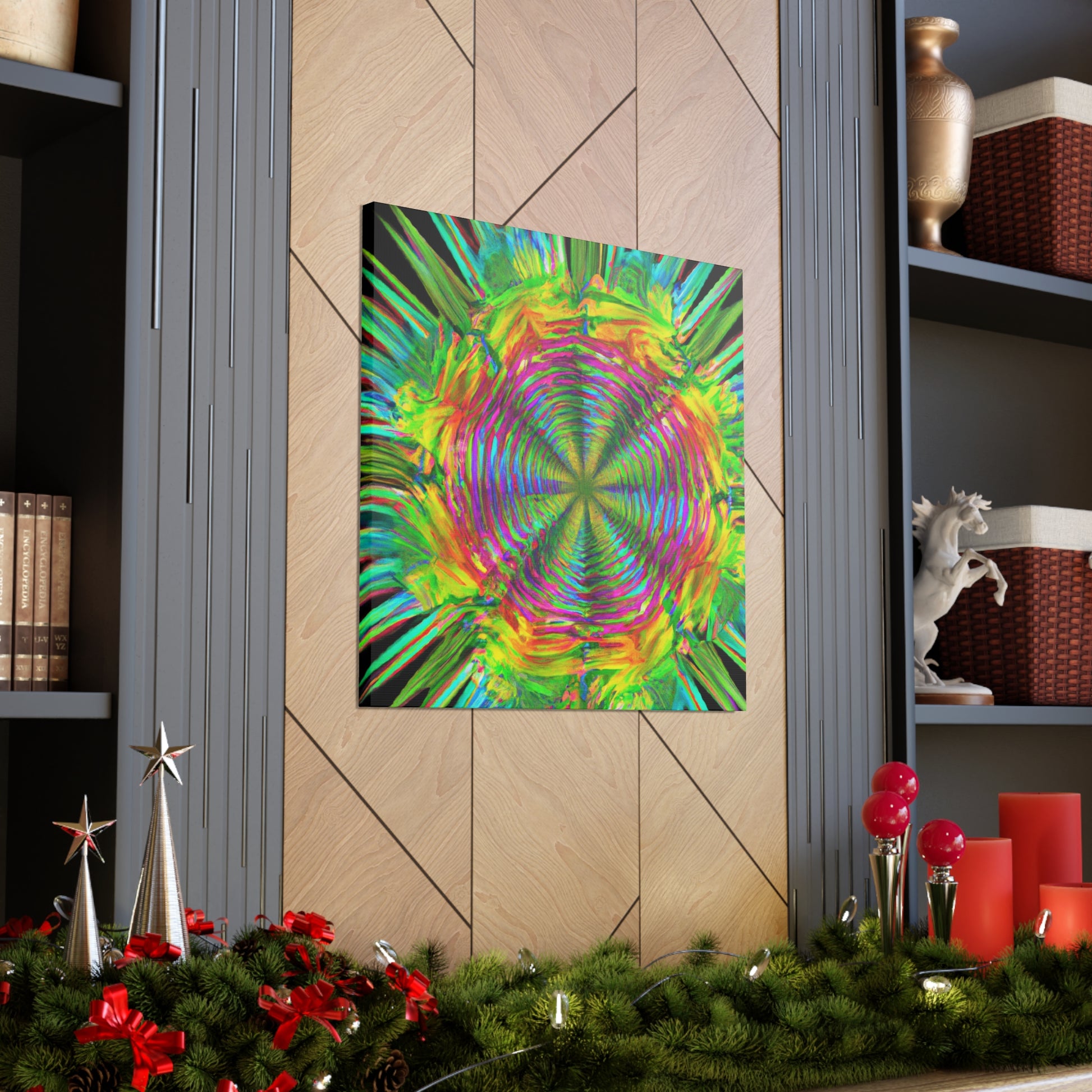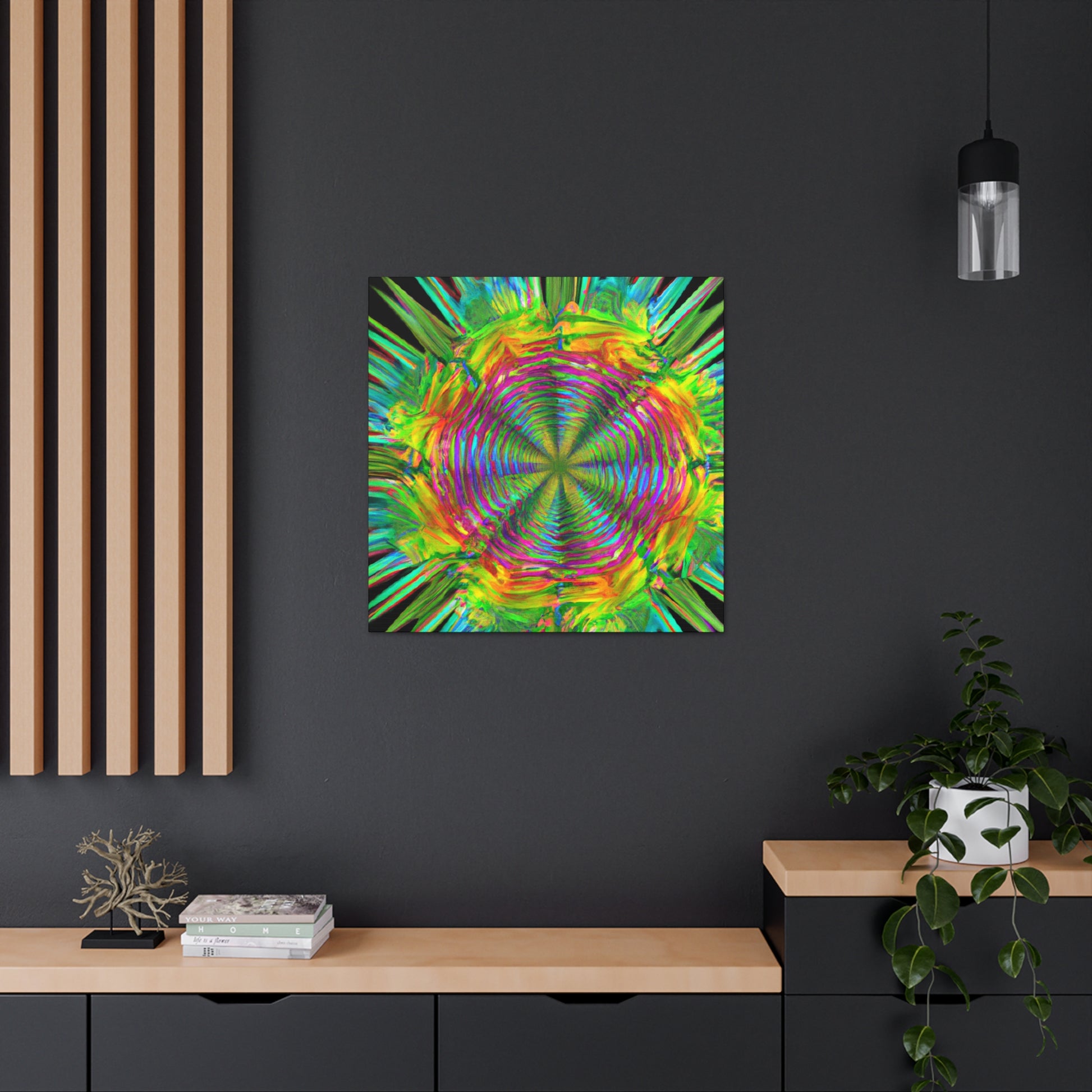 This modern-style canvas painting features a vibrant array of colors and abstract geometric shapes and patterns. Trippy palm leaves, kaleidoscopes, 3D lines, and fractal art come together to create a mesmerizing and eye-catching piece. Hang as a unique conversation starter in your home or office and enjoy the vibrant, digital art movement. #Canvas #Geometric #PalmLeaves #Kaleidoscope #Abstract #DigitalArt #VibrantColors #3DLines #Fractal #Art #Decor