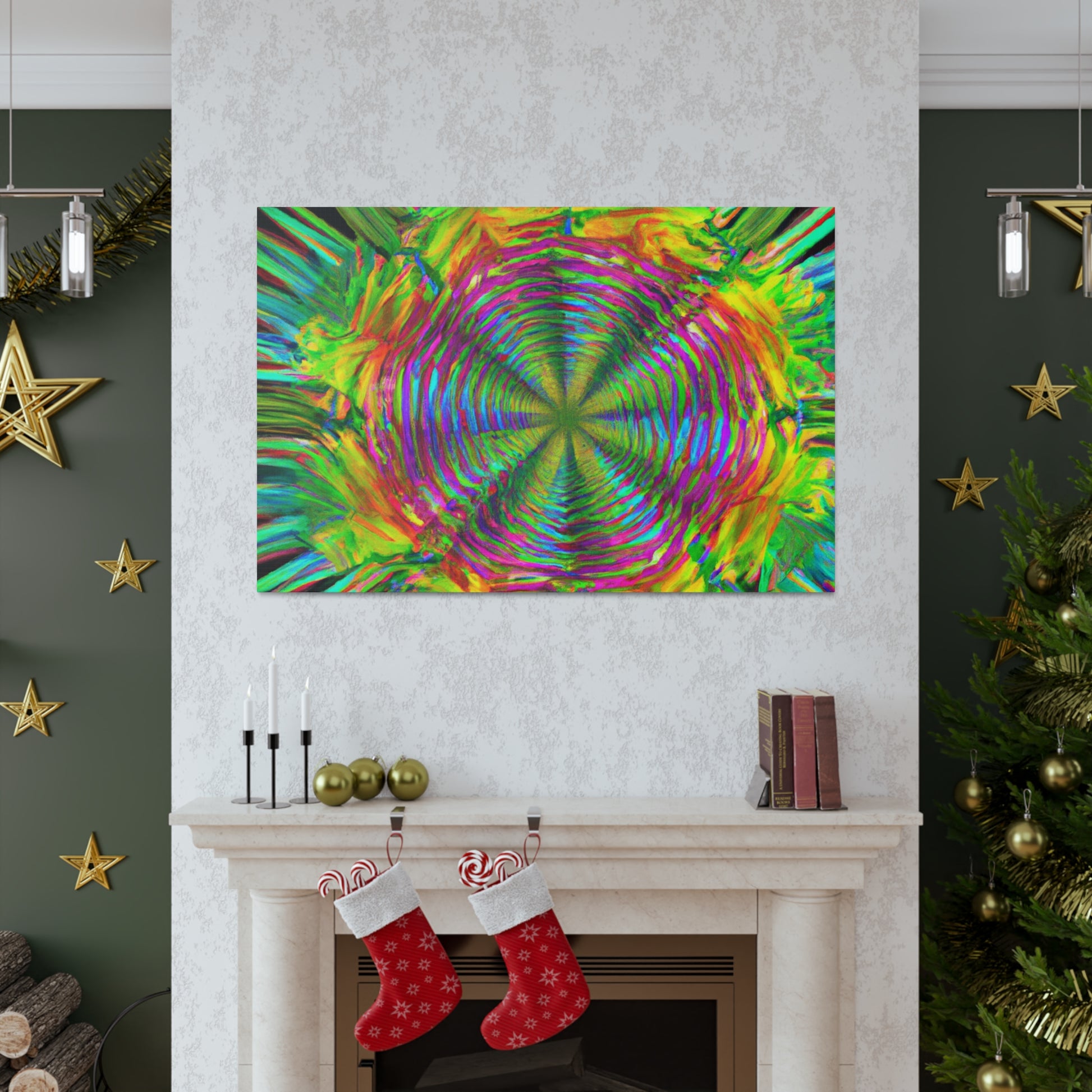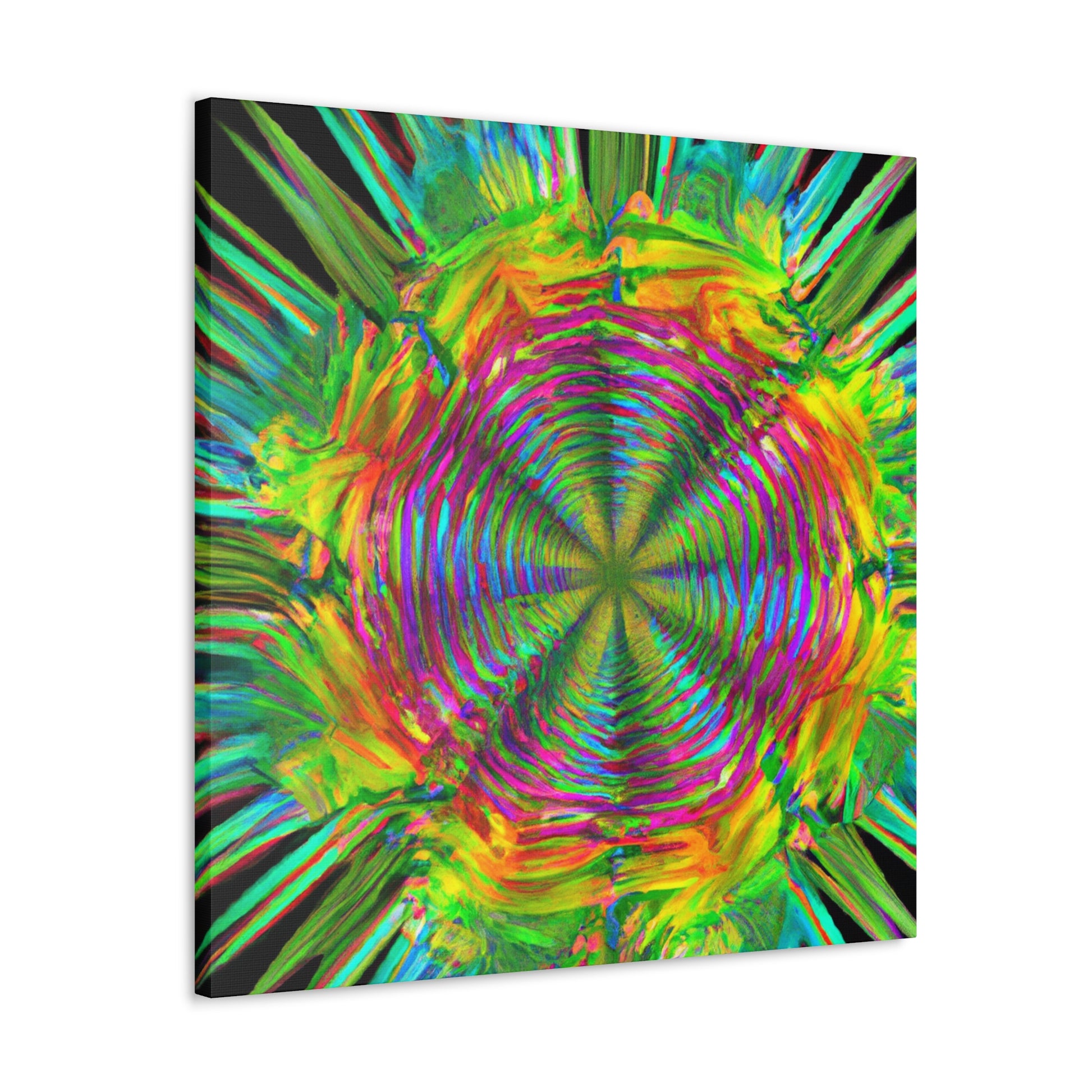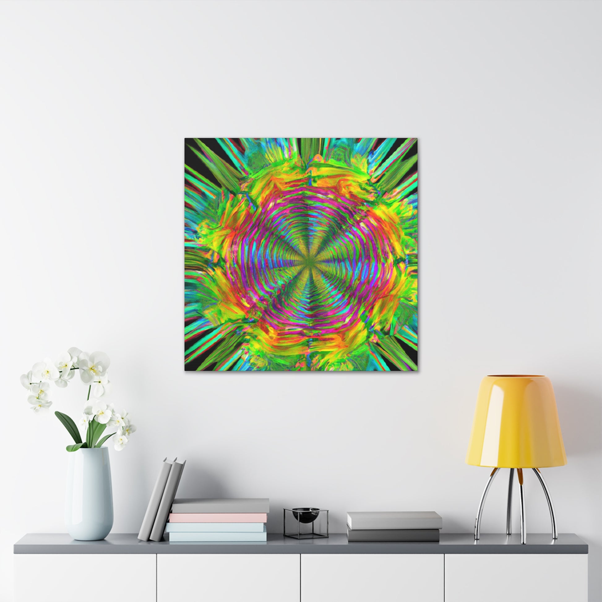 This modern-style canvas painting features a vibrant array of colors and abstract geometric shapes and patterns. Trippy palm leaves, kaleidoscopes, 3D lines, and fractal art come together to create a mesmerizing and eye-catching piece. Hang as a unique conversation starter in your home or office and enjoy the vibrant, digital art movement. #Canvas #Geometric #PalmLeaves #Kaleidoscope #Abstract #DigitalArt #VibrantColors #3DLines #Fractal #Art #Decor