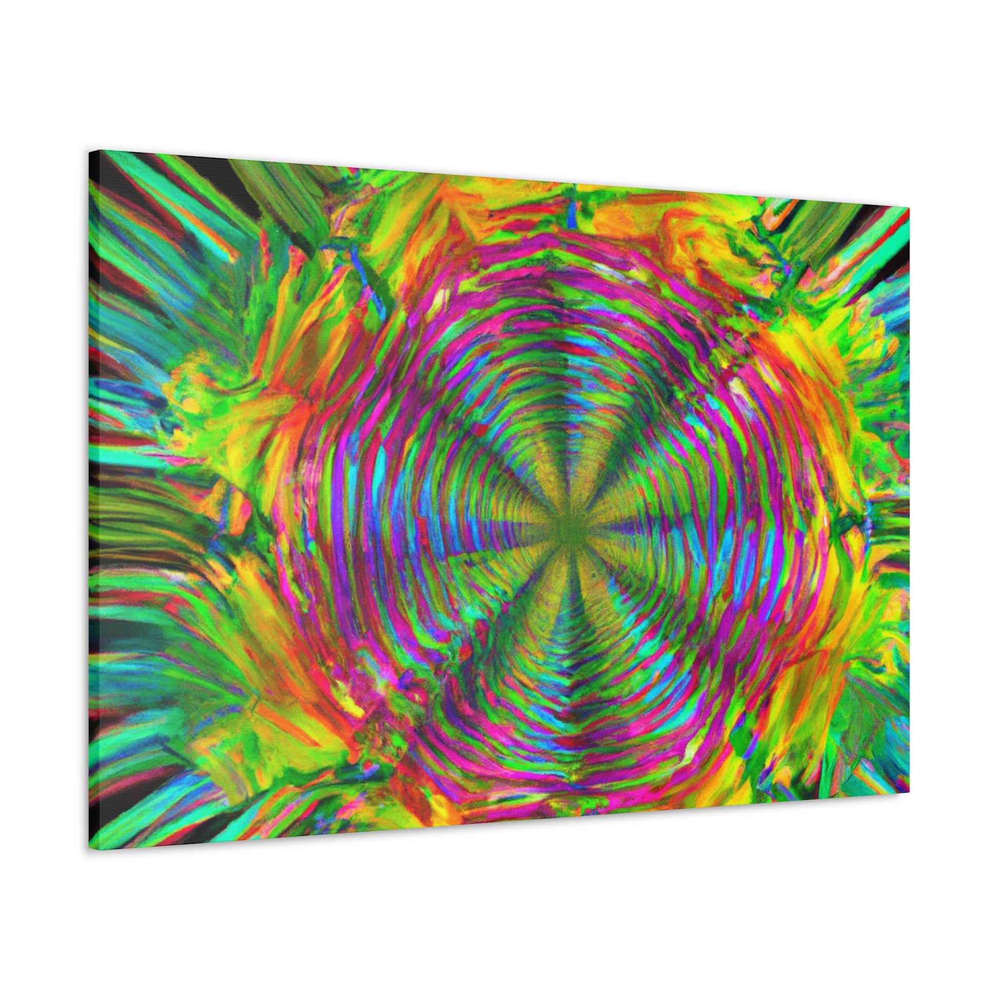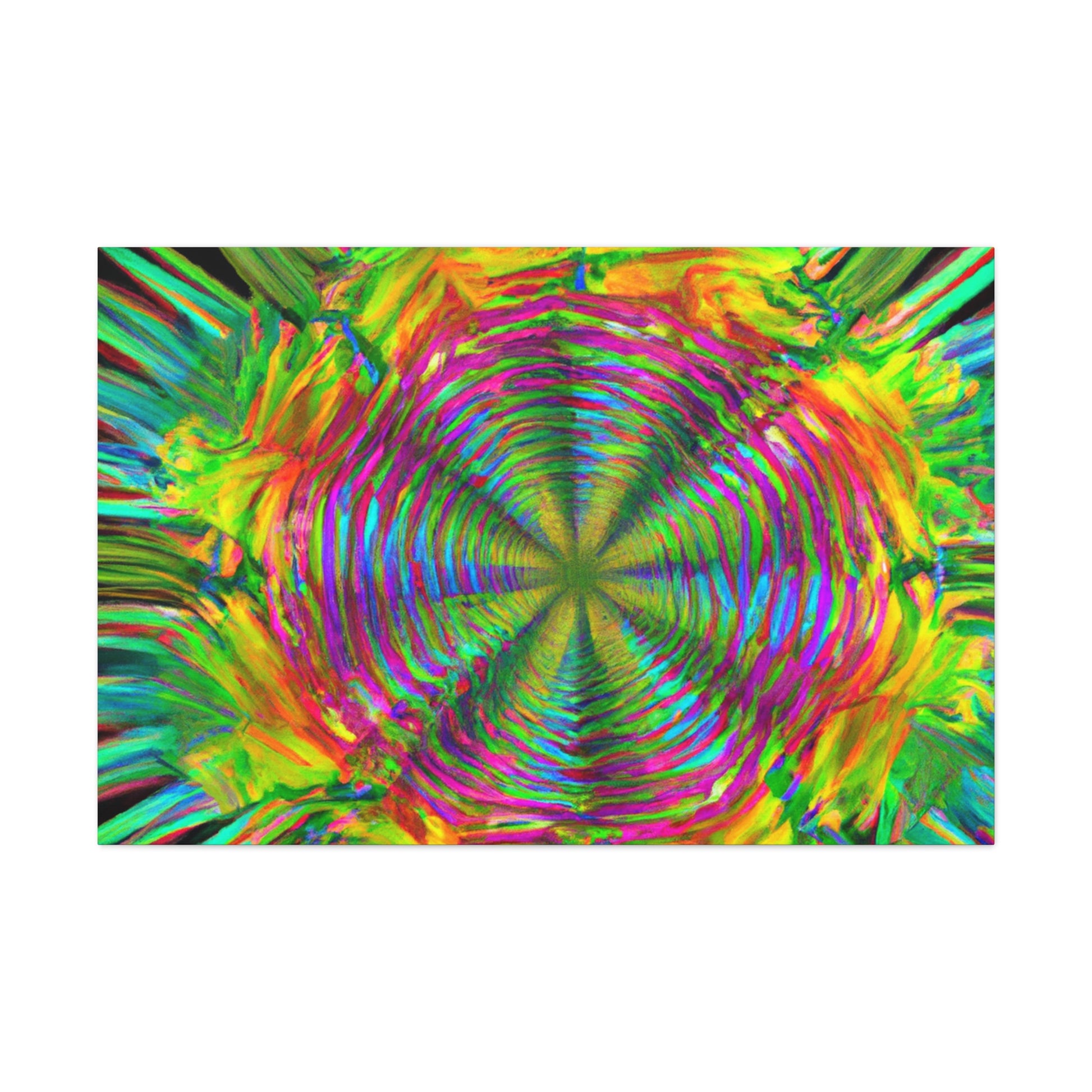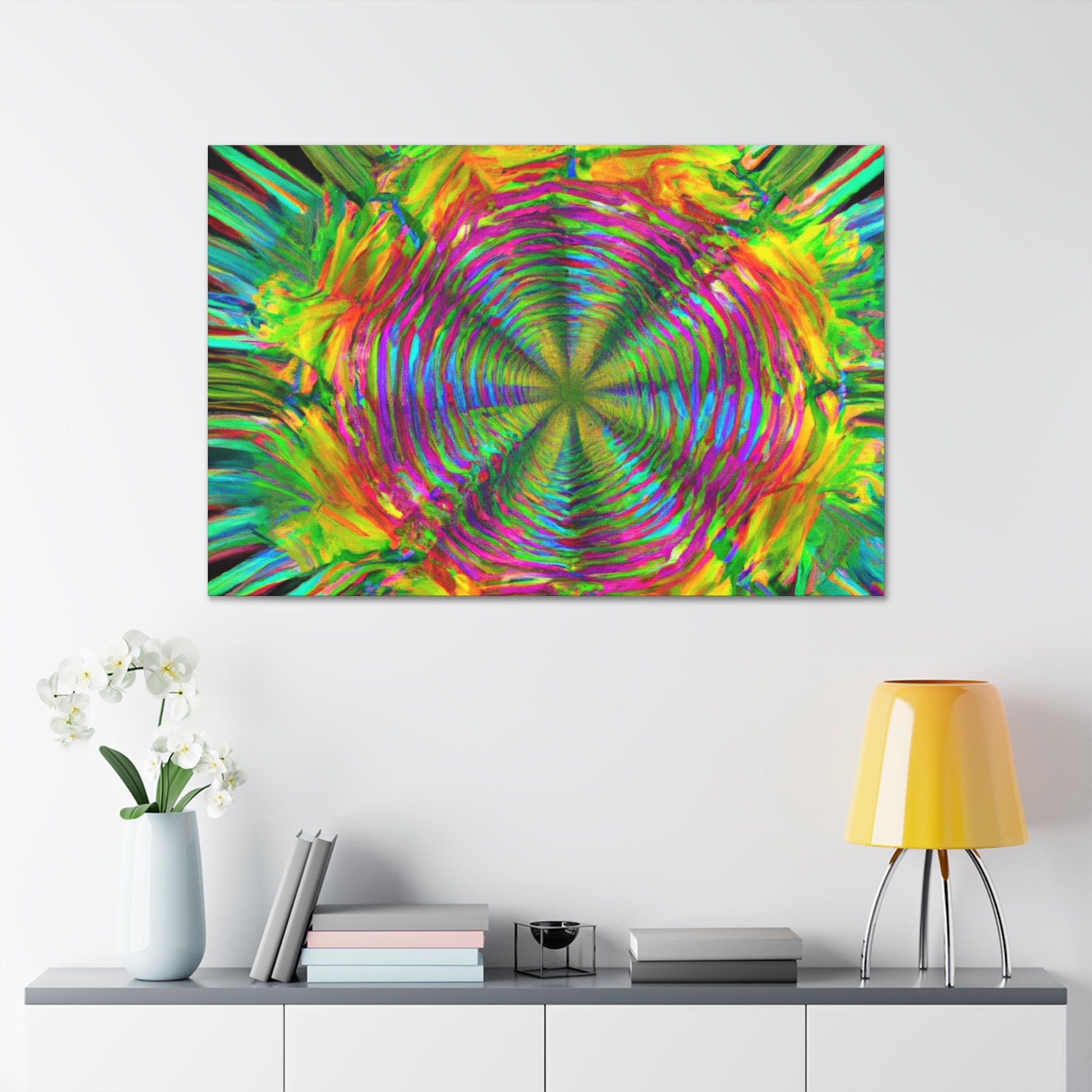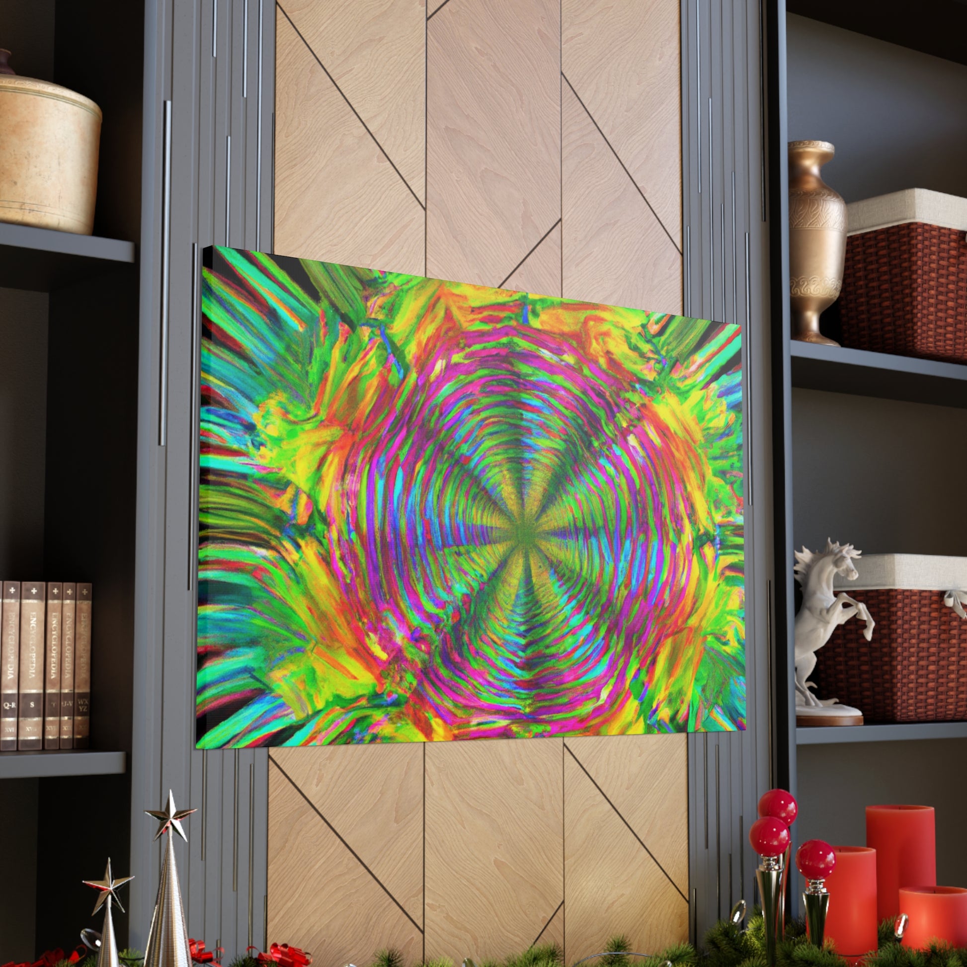 This modern-style canvas painting features a vibrant array of colors and abstract geometric shapes and patterns. Trippy palm leaves, kaleidoscopes, 3D lines, and fractal art come together to create a mesmerizing and eye-catching piece. Hang as a unique conversation starter in your home or office and enjoy the vibrant, digital art movement. #Canvas #Geometric #PalmLeaves #Kaleidoscope #Abstract #DigitalArt #VibrantColors #3DLines #Fractal #Art #Decor