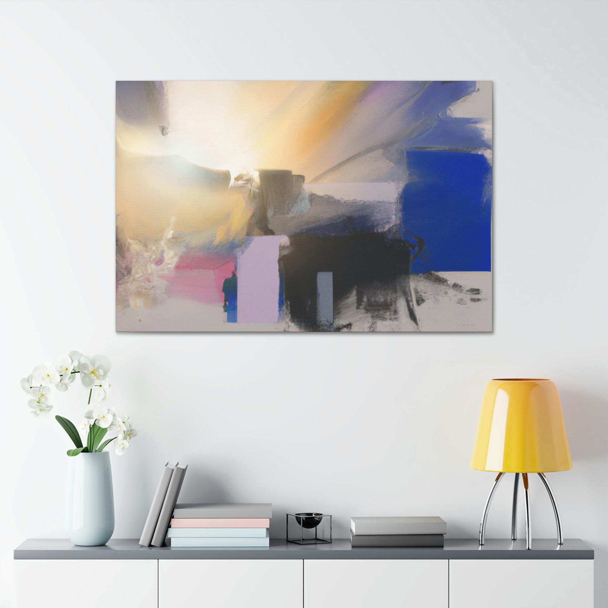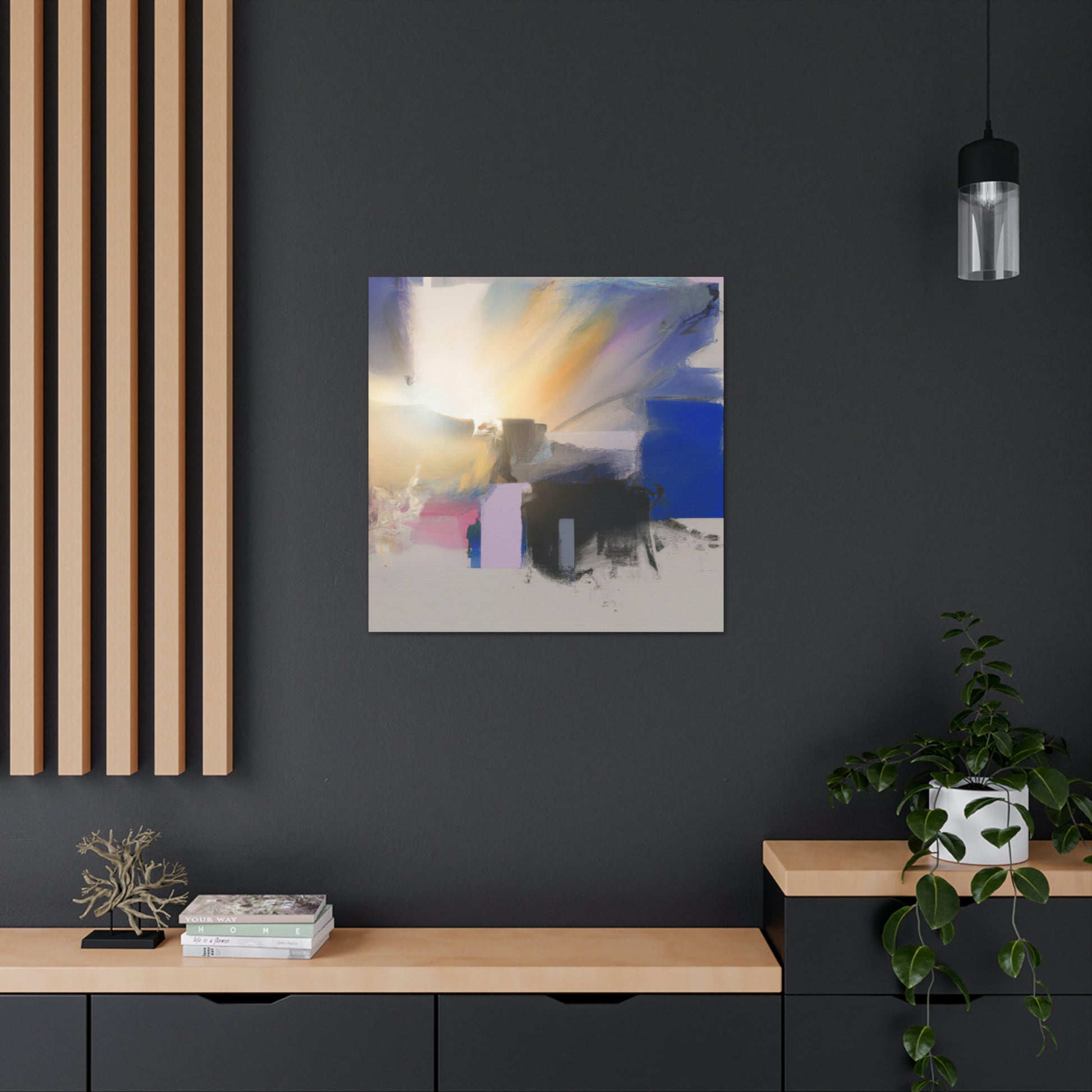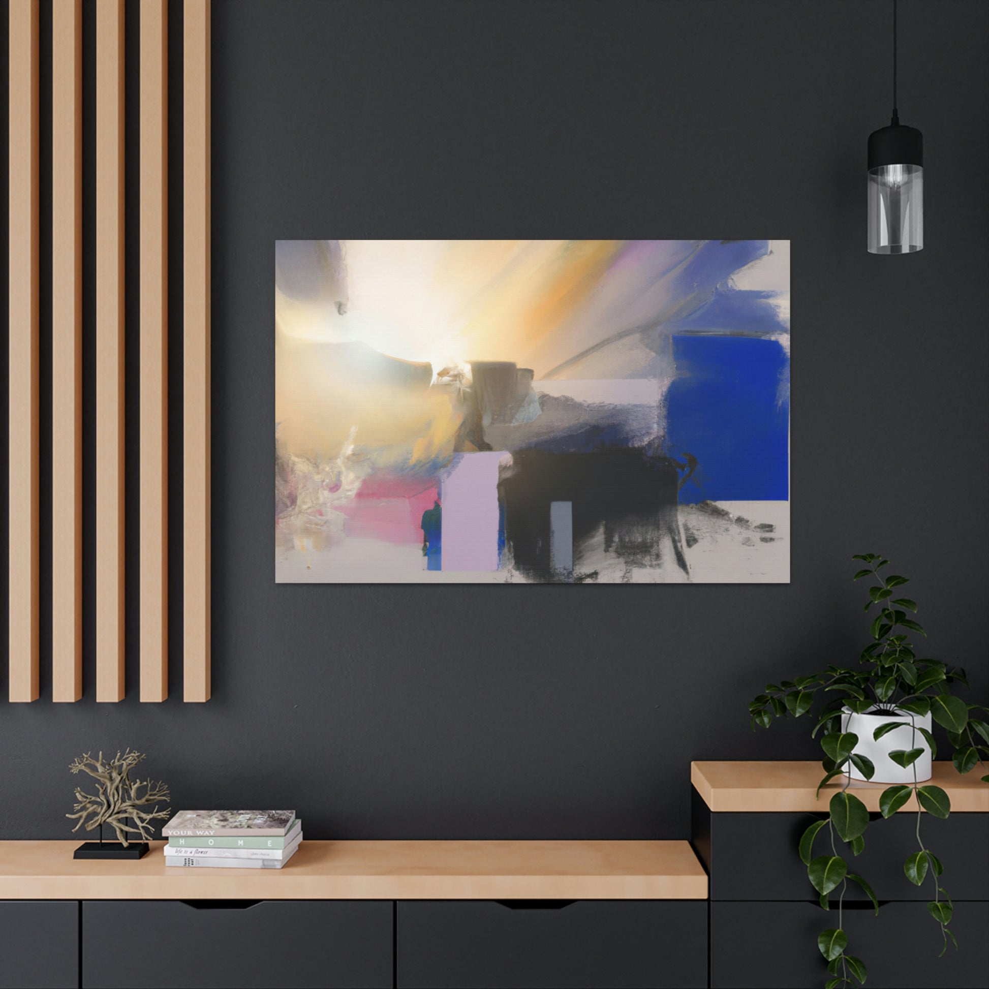 This digital canvas art is a perfect way to add a splash of color to your living room. Featuring abstract shapes and an imaginative, dreamy landscape, it will bring a modern and elegant touch to any home décor. The painting is printed on premium quality canvas, and its durable construction ensures a lifetime of vibrancy. Create an eye-catching focal point today and start a conversation with this one-of-a-kind piece. #interiordesign #abstractart #modernart #homedecor #art #canvasart #painting #abstractpainting #livingroom #digitalart #homedesign #wallart
