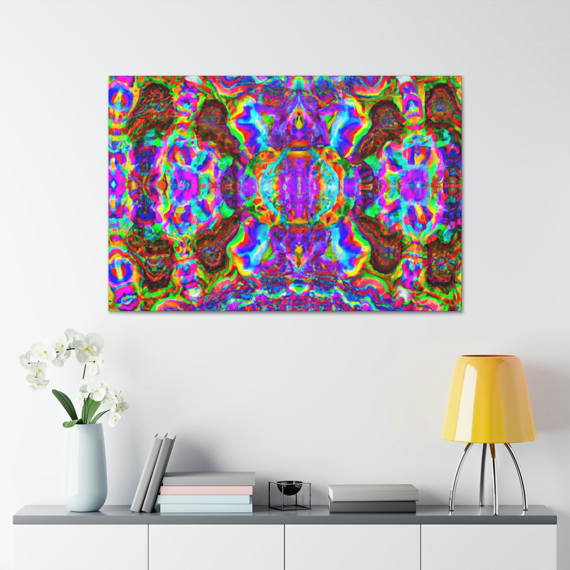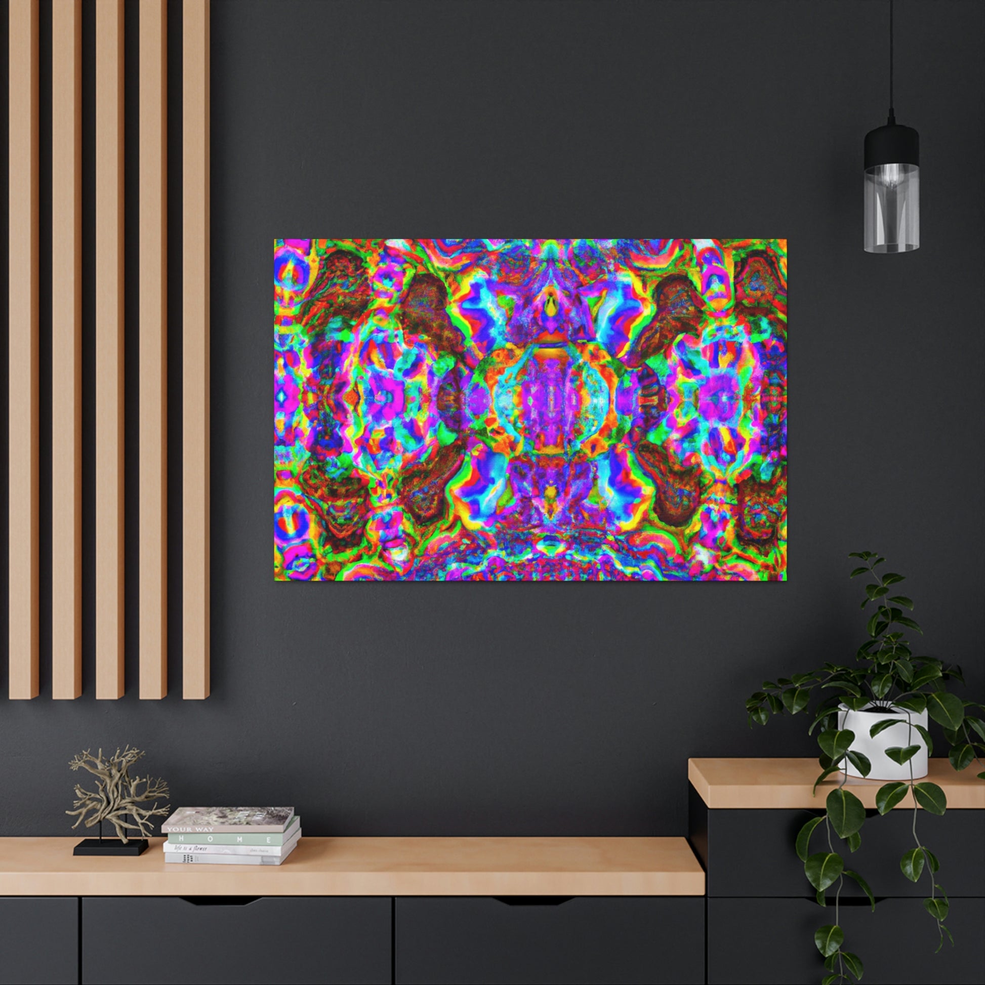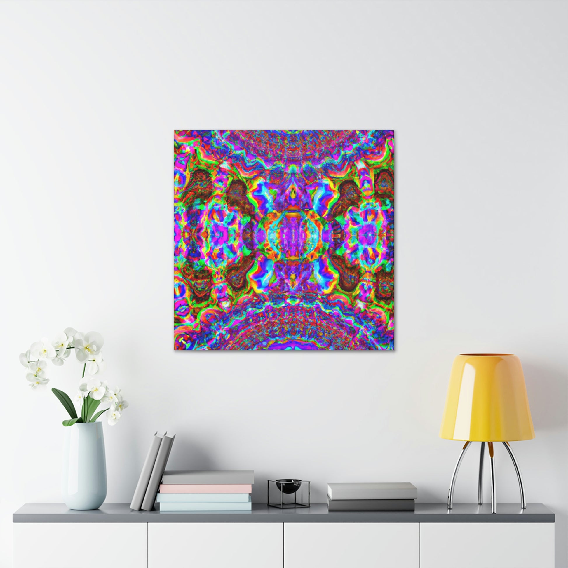 This vibrant digital art canvas of a trippy mushroom and abstract, kaleidoscope-inspired 3D lines captivates and evokes creative curiosity. Bold colors, creative designs, and immersive visuals are a feast for the eyes. Hang this canvas in your home and bring a touch of captivating imagination to your interior decor. #trippy #mushroom #kaleidoscope #abstract #digitalart #vibrantcolors #3Dlines #homeinteriordecor #creative #artdeco #imaginative