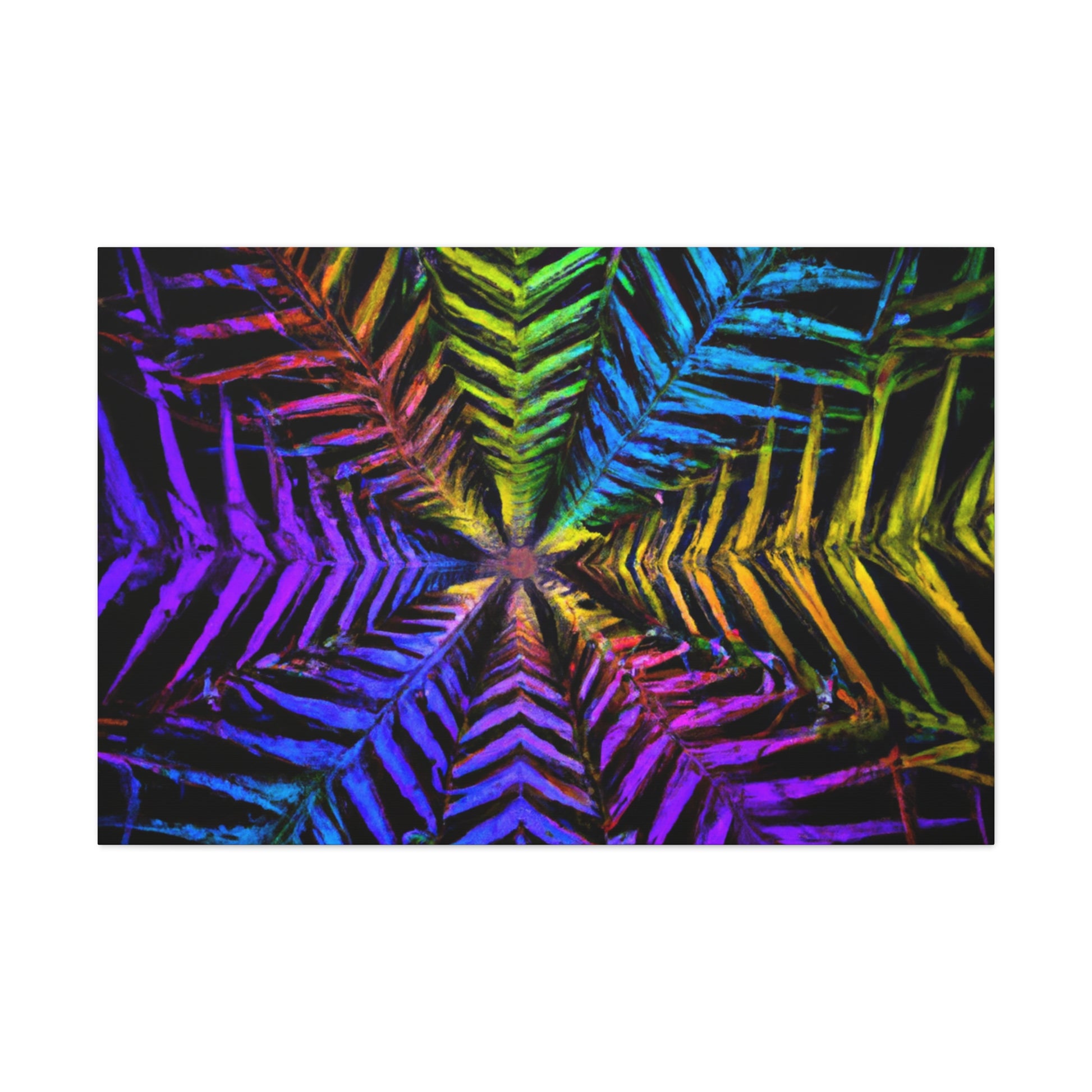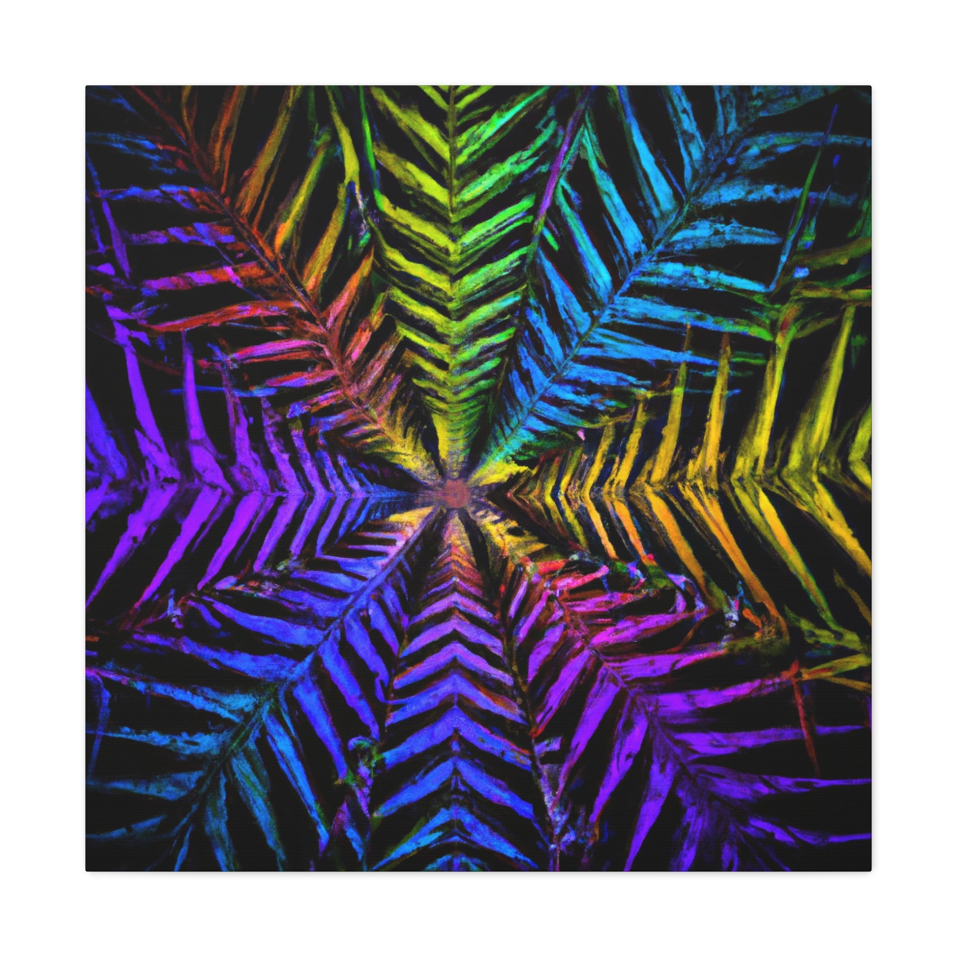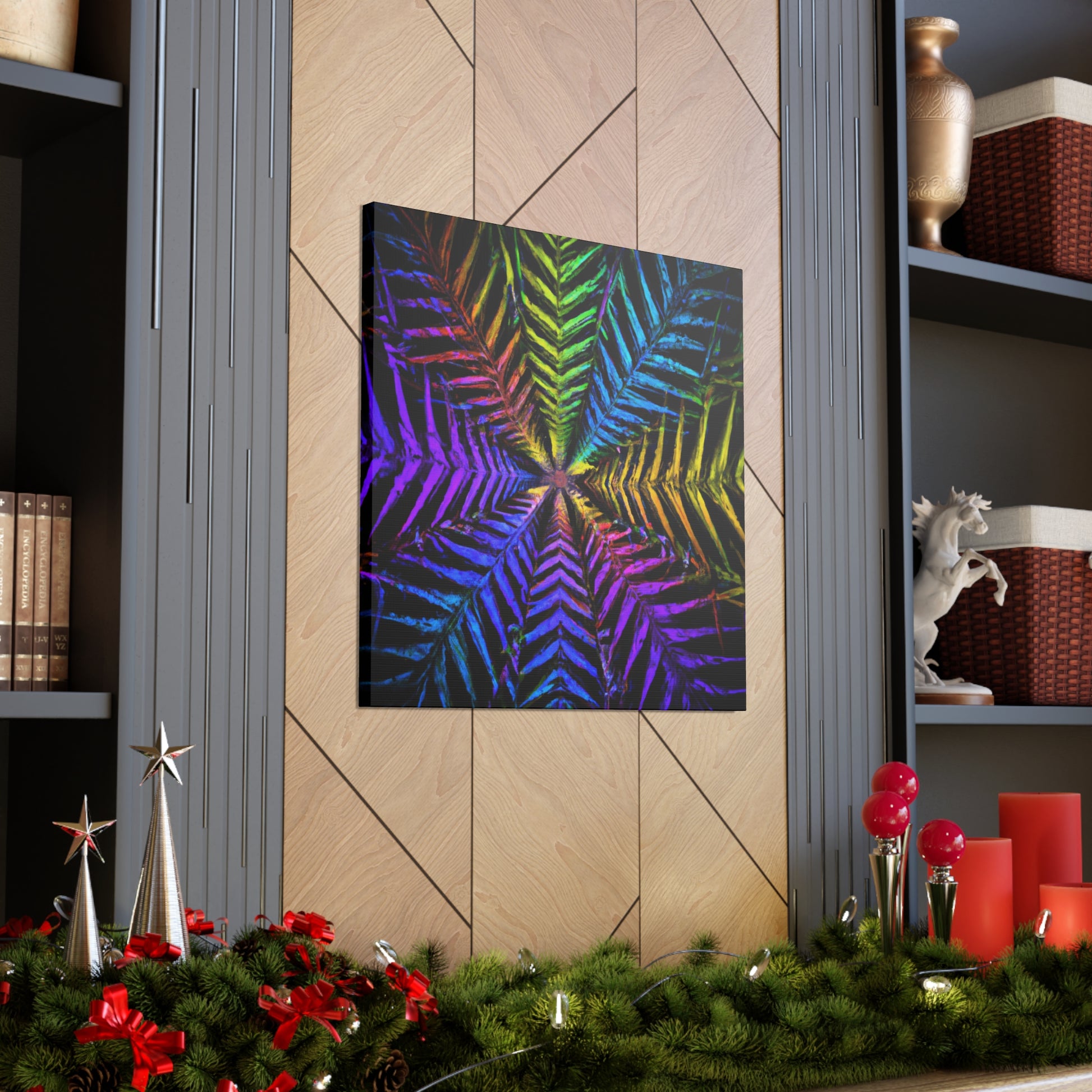 This vibrant and unique canvas features trippy geometric palm leaves, kaleidoscope, abstract, digital art, and vibrant colors. Its 3D lines and fractal designs create a captivating effect. Perfect for any room, it'll add a striking and vivid look to any wall. #vibecollective #abstractart #digitalart #kaleidoscope #3Dprinthome #fractals #geometricpalmleaves #trippyart #colorfulart #artdesign #3Dlines