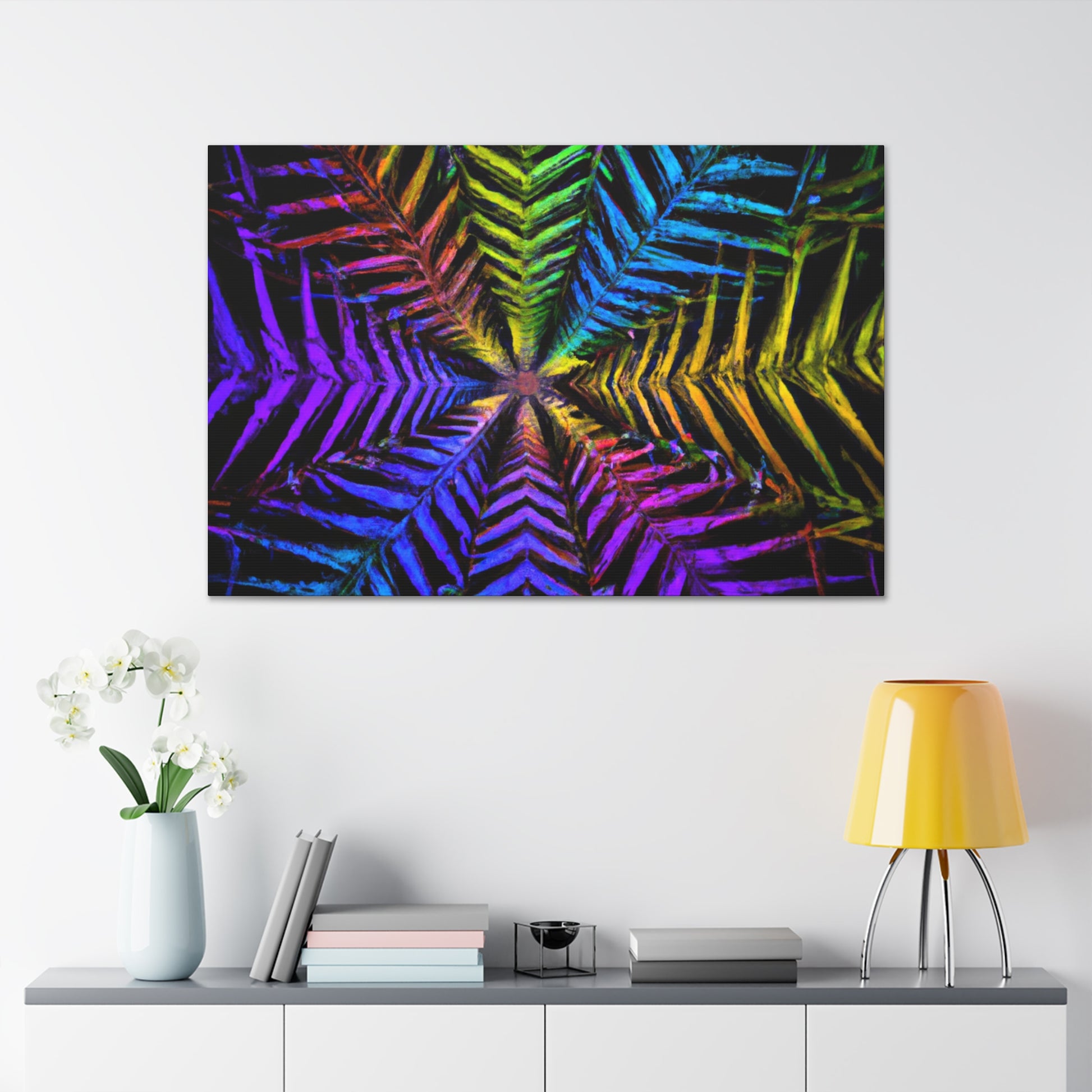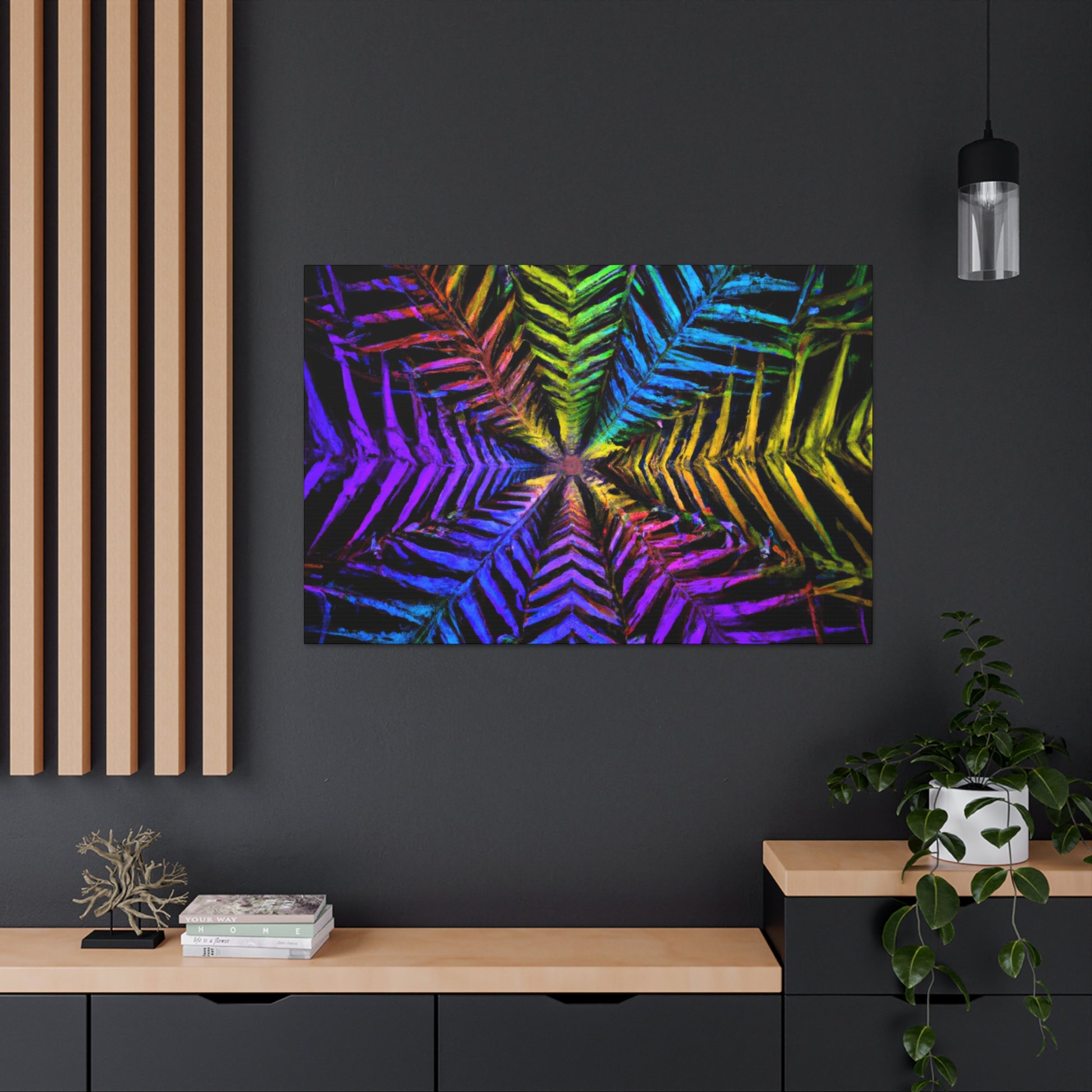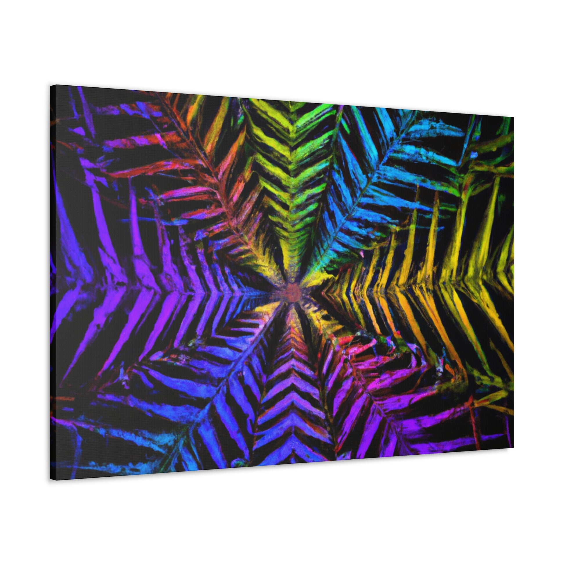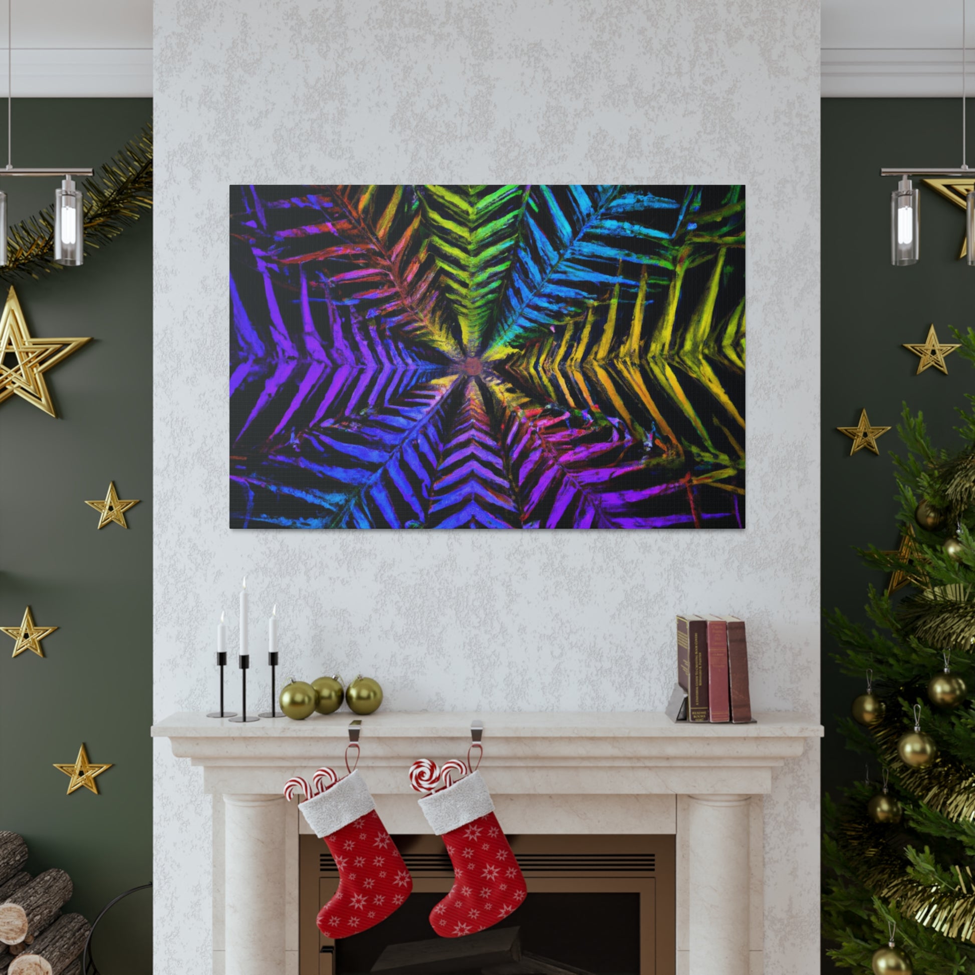 This vibrant and unique canvas features trippy geometric palm leaves, kaleidoscope, abstract, digital art, and vibrant colors. Its 3D lines and fractal designs create a captivating effect. Perfect for any room, it'll add a striking and vivid look to any wall. #vibecollective #abstractart #digitalart #kaleidoscope #3Dprinthome #fractals #geometricpalmleaves #trippyart #colorfulart #artdesign #3Dlines