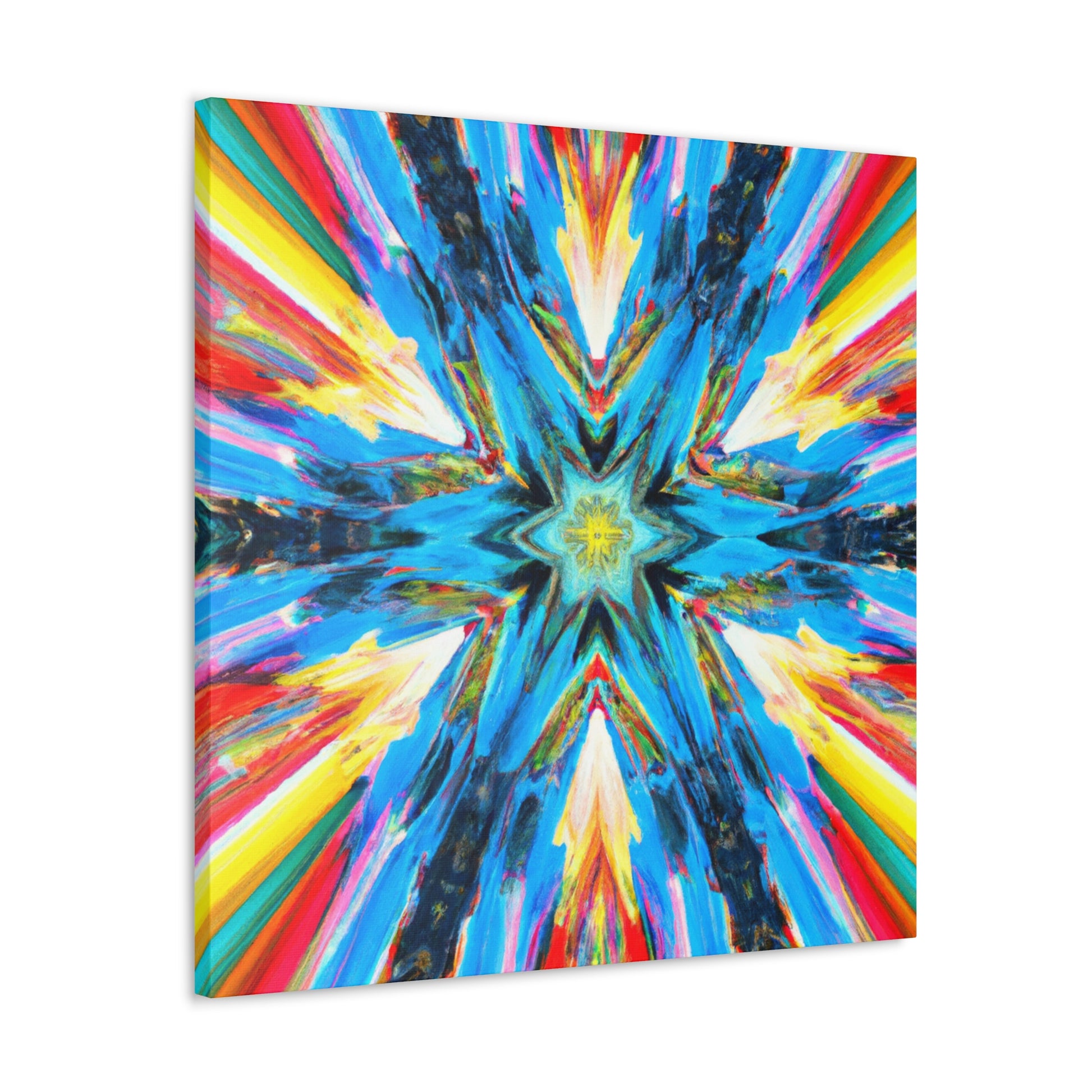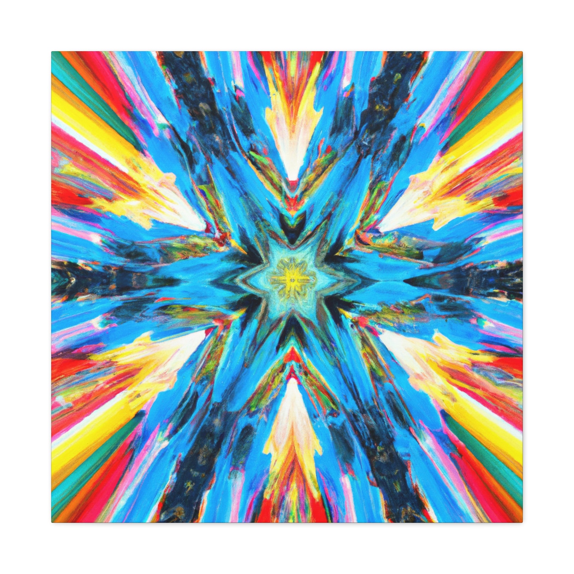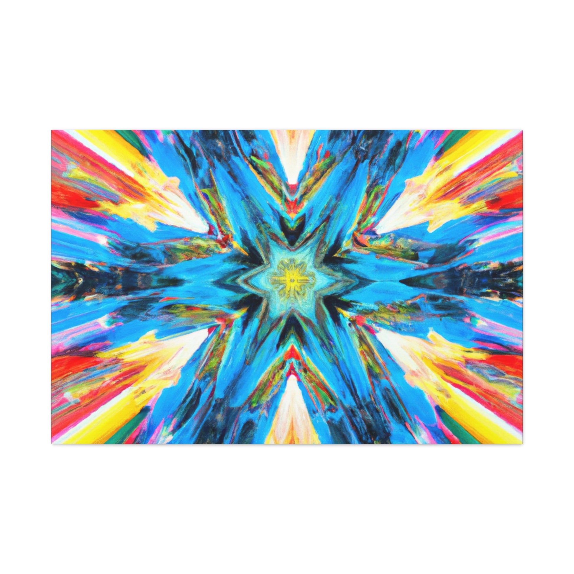 Modernize your decor with this beautiful canvas of abstract digital art featuring trippy stars, a kaleidoscope of vibrant colors and HD image quality. The makeup of the artwork is perfectly symmetrical to create an eye-catching style. So hang this unique canvas and be inspired! #abstractart #digitalart #trippystars #kaleidoscope #vibrantcolors #HDimage #uniqueart #wallartdesign #symmetrical #canvasart #inspiration