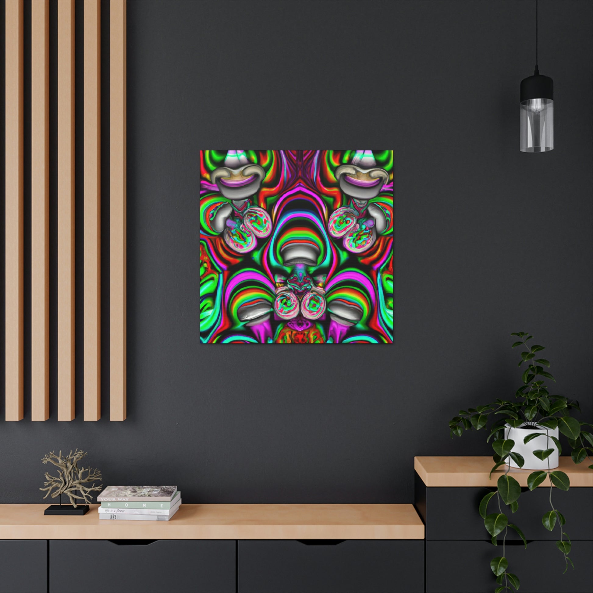 This digital art canvas will certainly grab your attention, with its trippy mushrooms, kaleidoscope, abstract and vibrant colors, and 3D lines. Whether displayed in your home or office, this lively and eye-catching piece will spark creativity and inspire positive energy for hours and hours. #trippy #kaleidoscope #mushrooms #vibrantcolors #abstract #canvas #art #wallart #homedecor #hangingart #digitalart