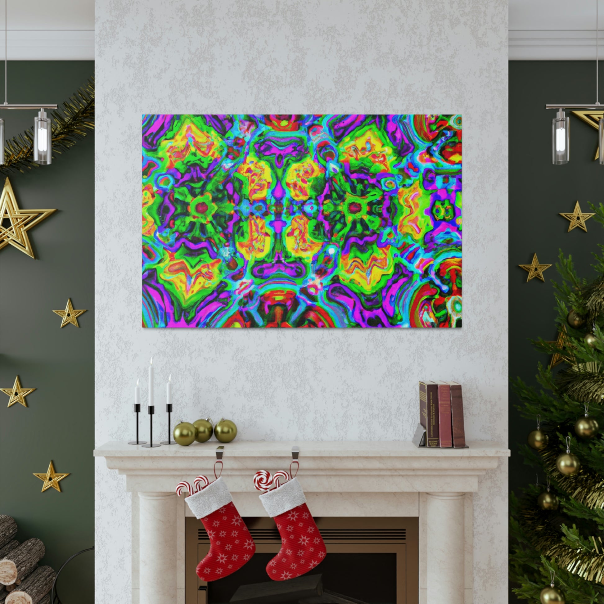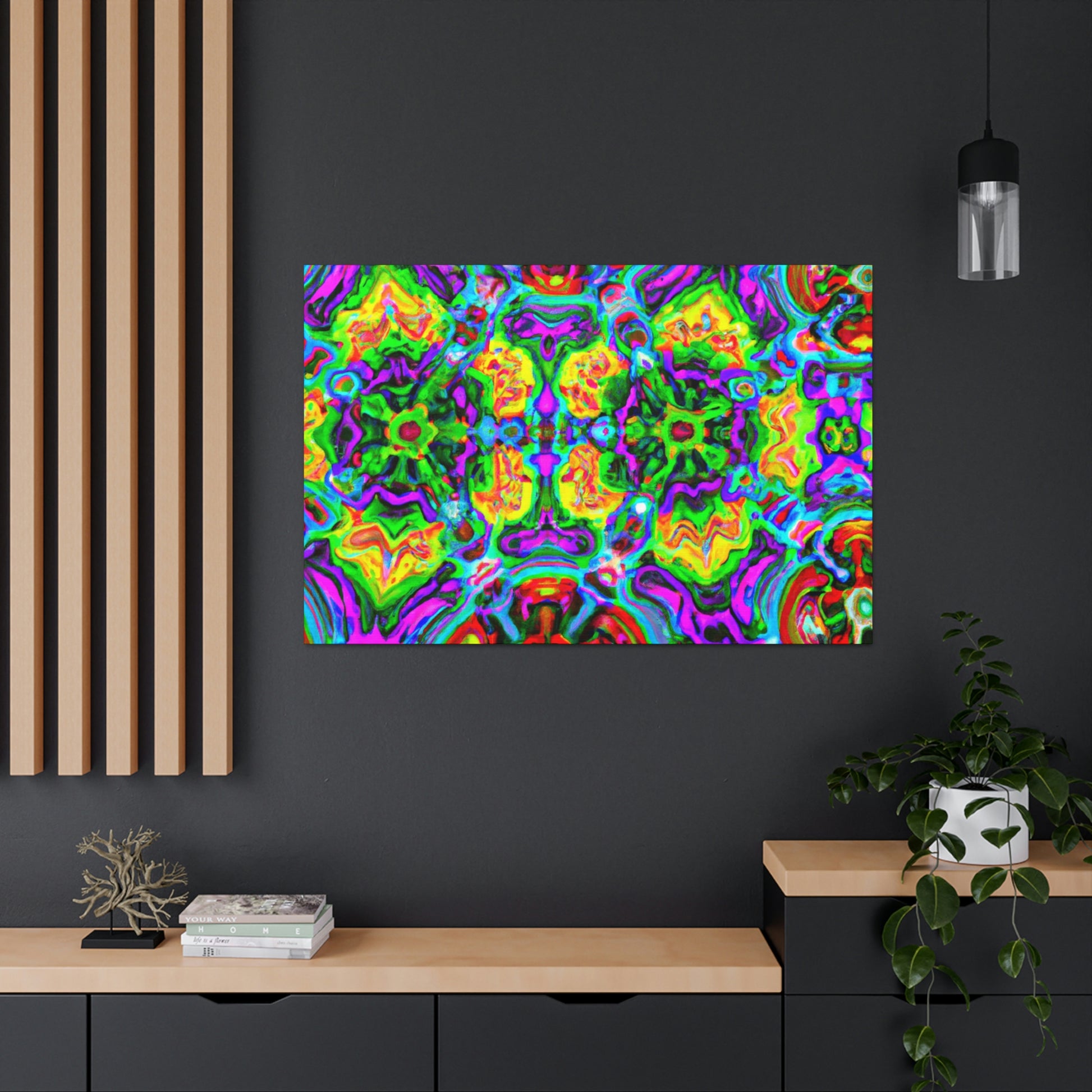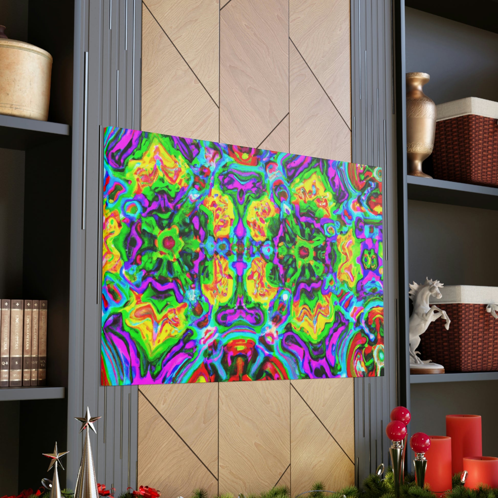 This canvas displays a vibrant, digital landscape of abstract mushrooms and 3D lines creating a kaleidoscope of dreamy shapes and colors. Great addition to your home or office to bring life to any wall. Perfect for adding a touch of whimsy to any decor. #trippy #mushroomart #kaleidoscope #artwork #abstractart #vibrant #3Dline #digitalart #home #decor #office