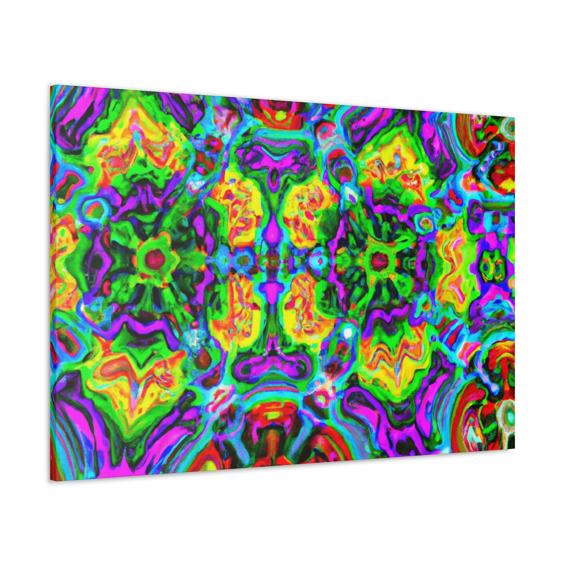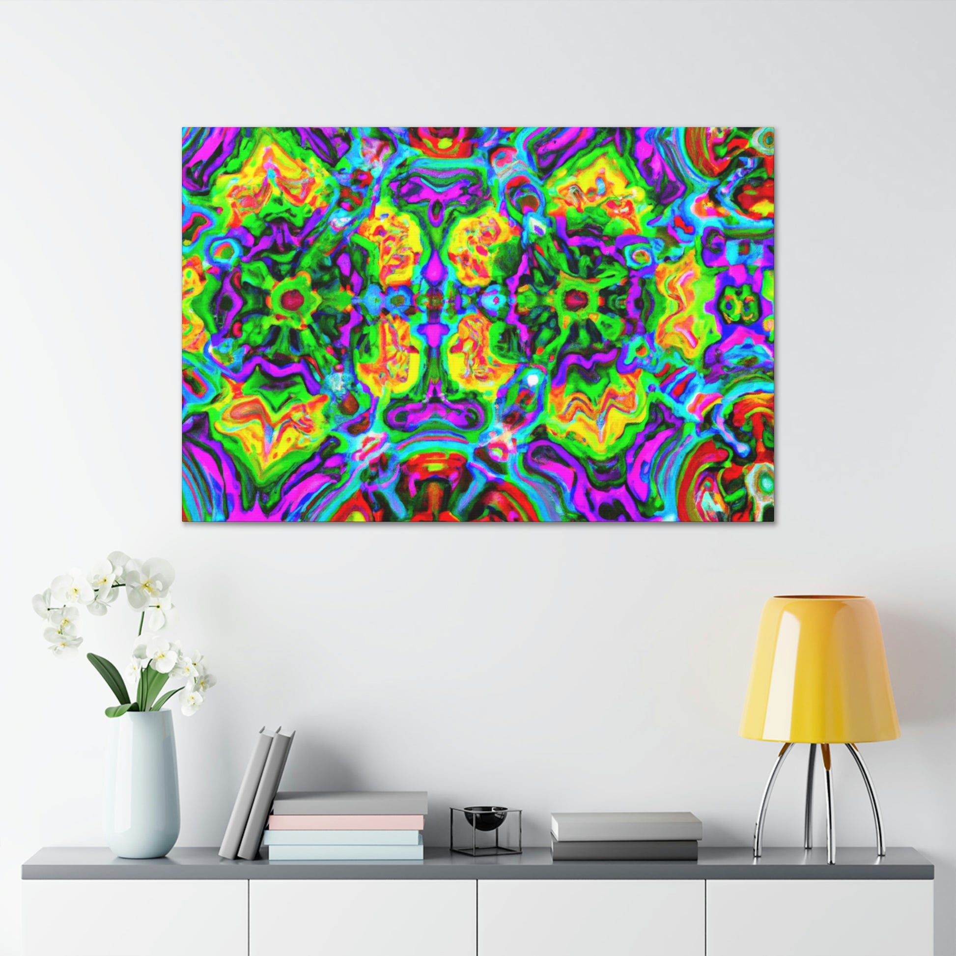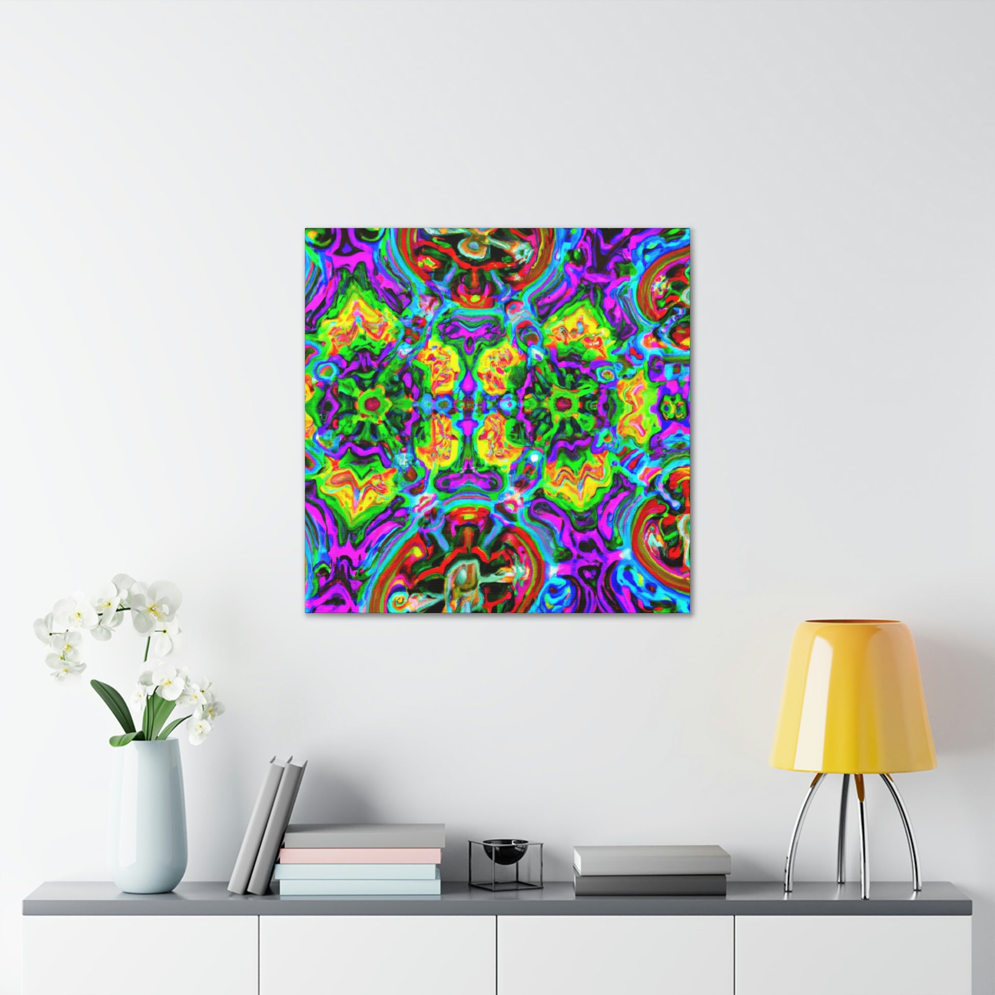 This canvas displays a vibrant, digital landscape of abstract mushrooms and 3D lines creating a kaleidoscope of dreamy shapes and colors. Great addition to your home or office to bring life to any wall. Perfect for adding a touch of whimsy to any decor. #trippy #mushroomart #kaleidoscope #artwork #abstractart #vibrant #3Dline #digitalart #home #decor #office