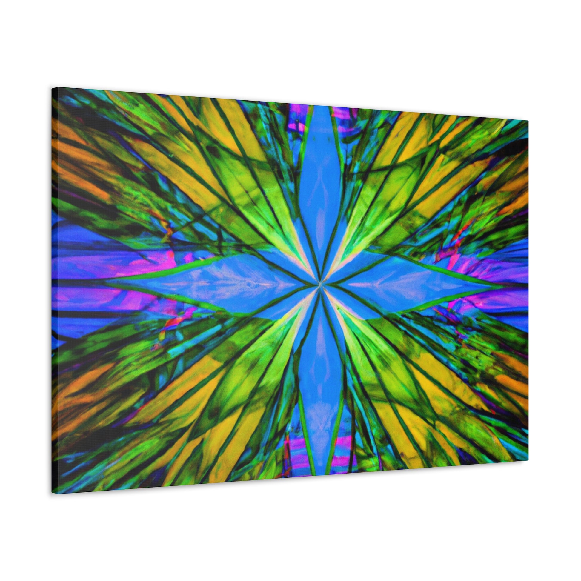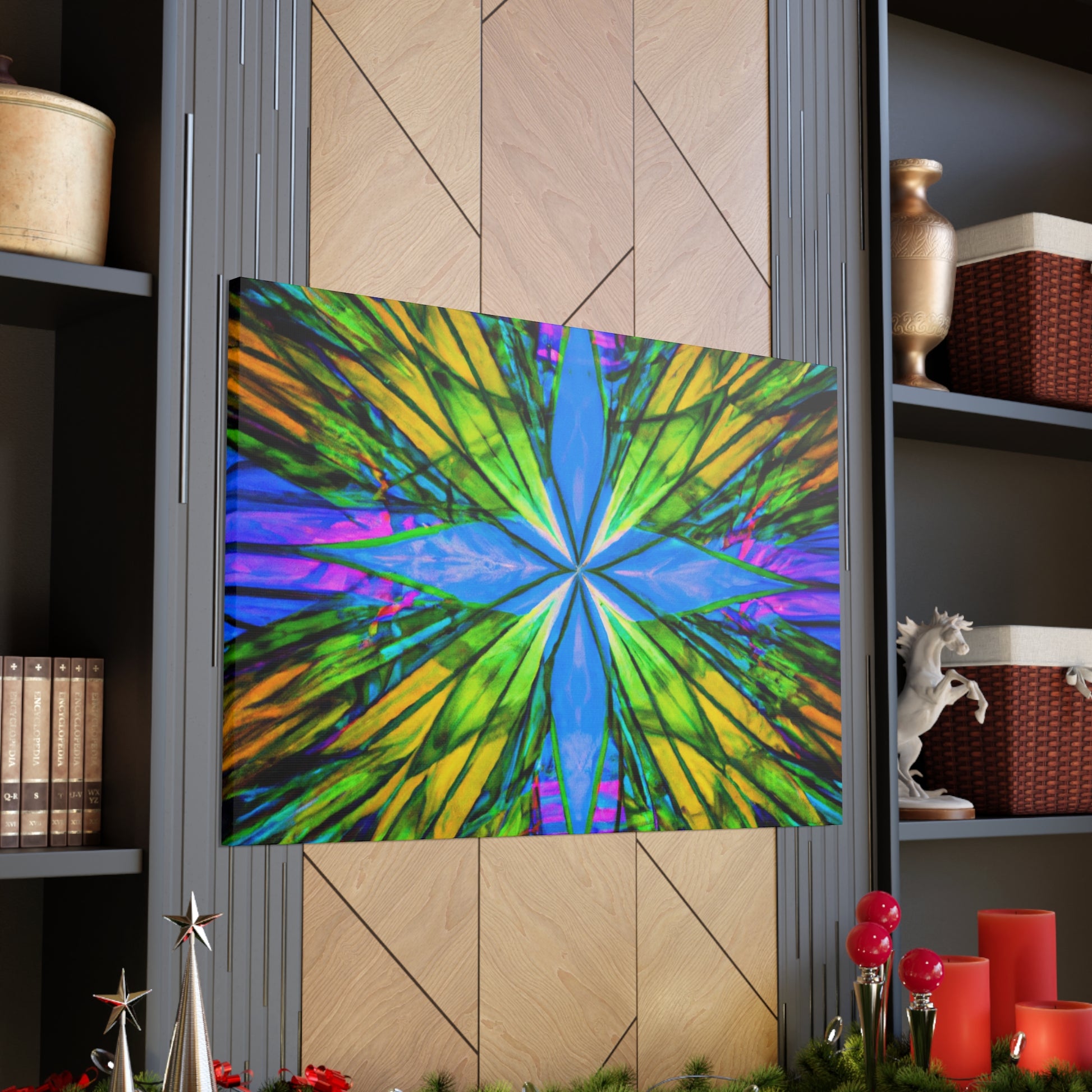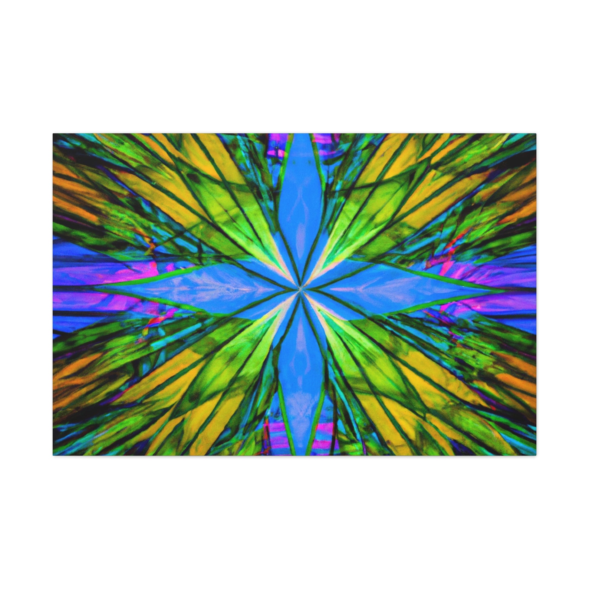 This pure, beautiful canvas reminds us that beauty can be found in the most unexpected places. It features a stunning array of trippy geometric palm leaves, kaleidoscope, abstract, and digital art in wild, vibrant colors that match with the 3D lines and fractal patterns of the piece. Captivating and mesmerizing, this piece is truly remarkable and is sure to make an excellent addition to any home. #trippy #geometricpalmleaves #kaleidoscope #digitalart #abstractart #vibrantcolors #3Dlines #fractal #statementpiece #walldecor #homegoods