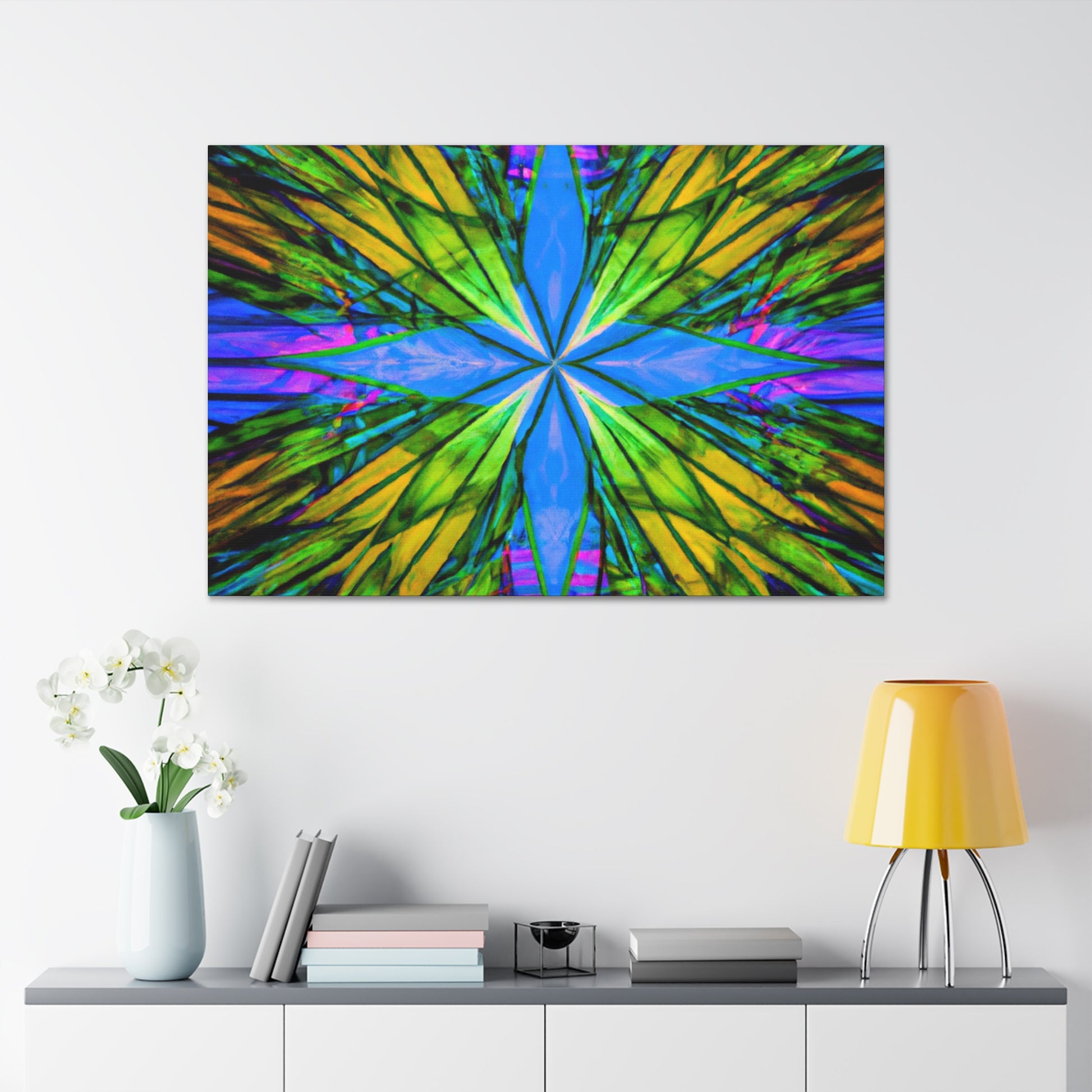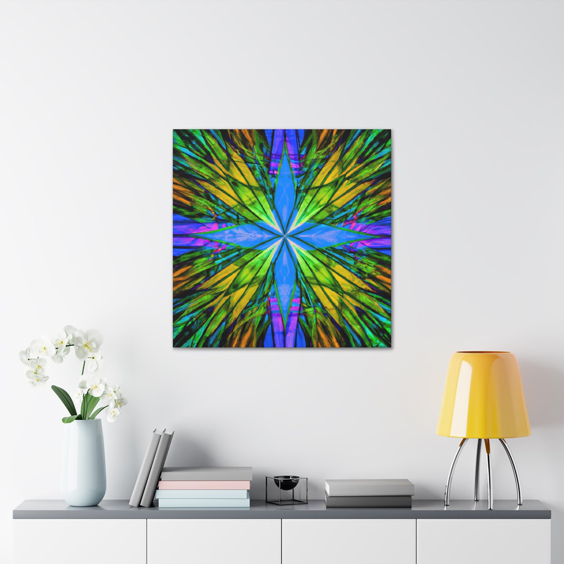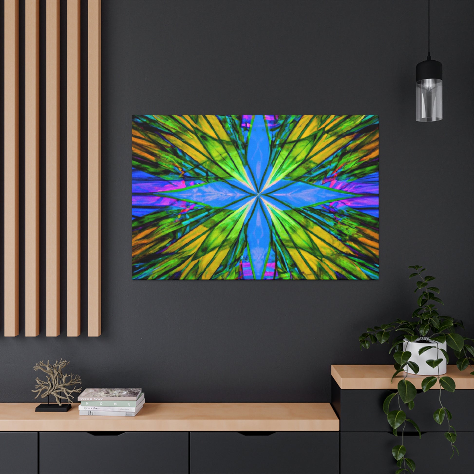 This pure, beautiful canvas reminds us that beauty can be found in the most unexpected places. It features a stunning array of trippy geometric palm leaves, kaleidoscope, abstract, and digital art in wild, vibrant colors that match with the 3D lines and fractal patterns of the piece. Captivating and mesmerizing, this piece is truly remarkable and is sure to make an excellent addition to any home. #trippy #geometricpalmleaves #kaleidoscope #digitalart #abstractart #vibrantcolors #3Dlines #fractal #statementpiece #walldecor #homegoods