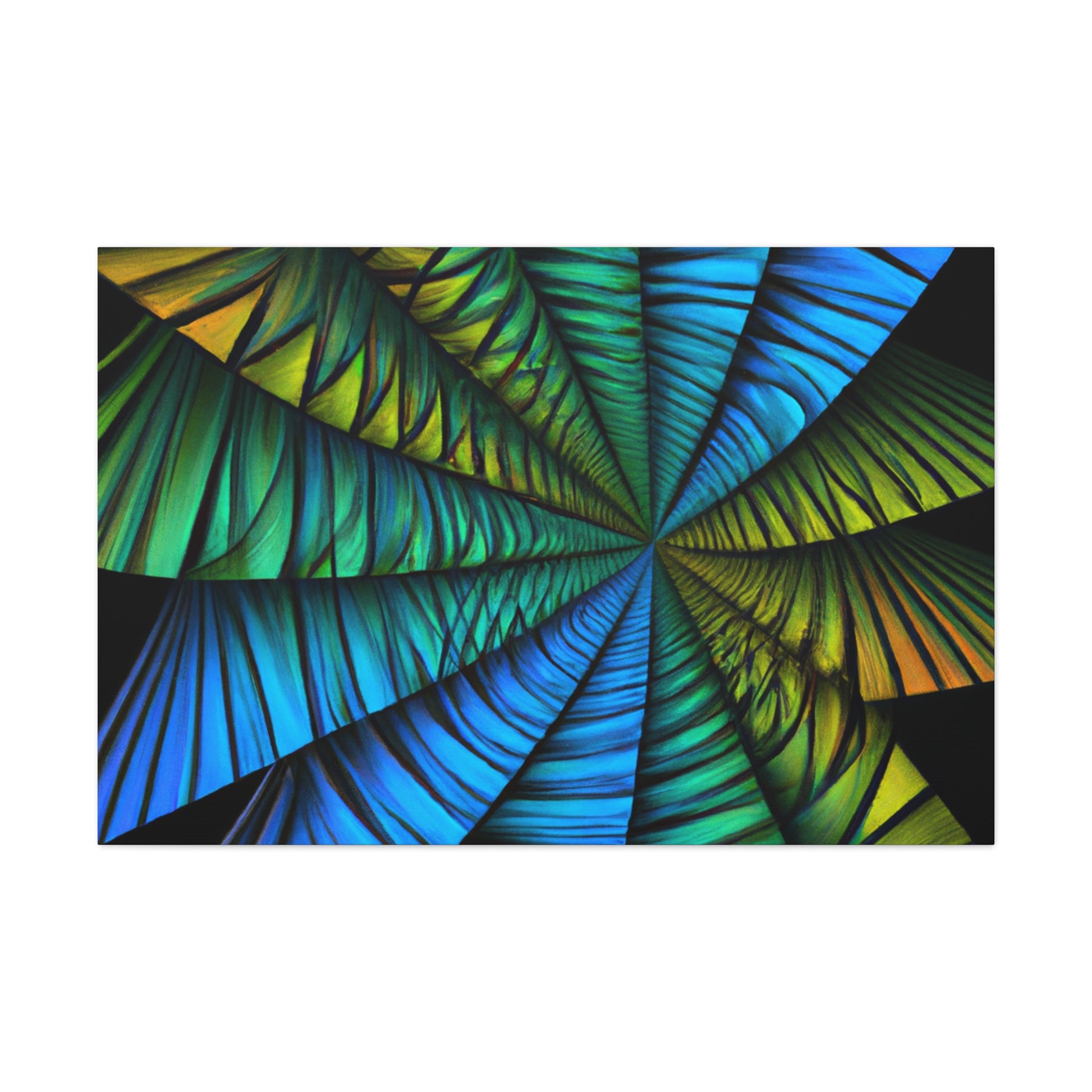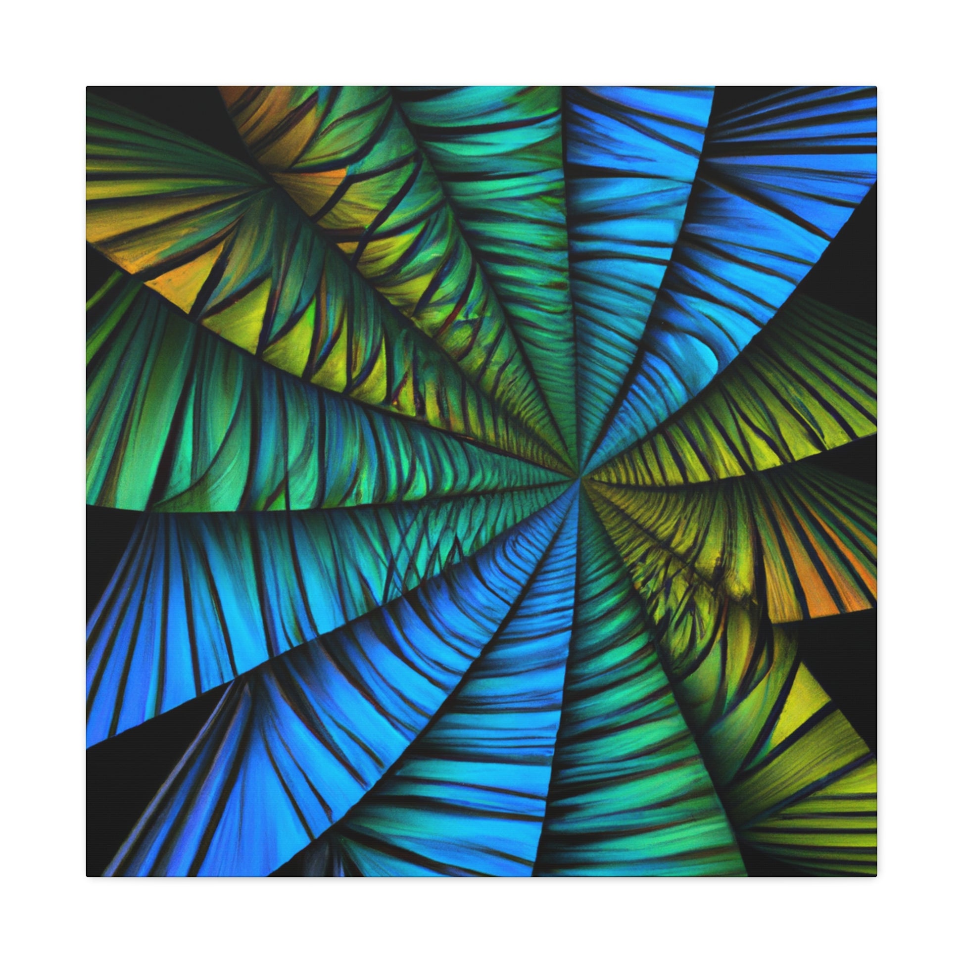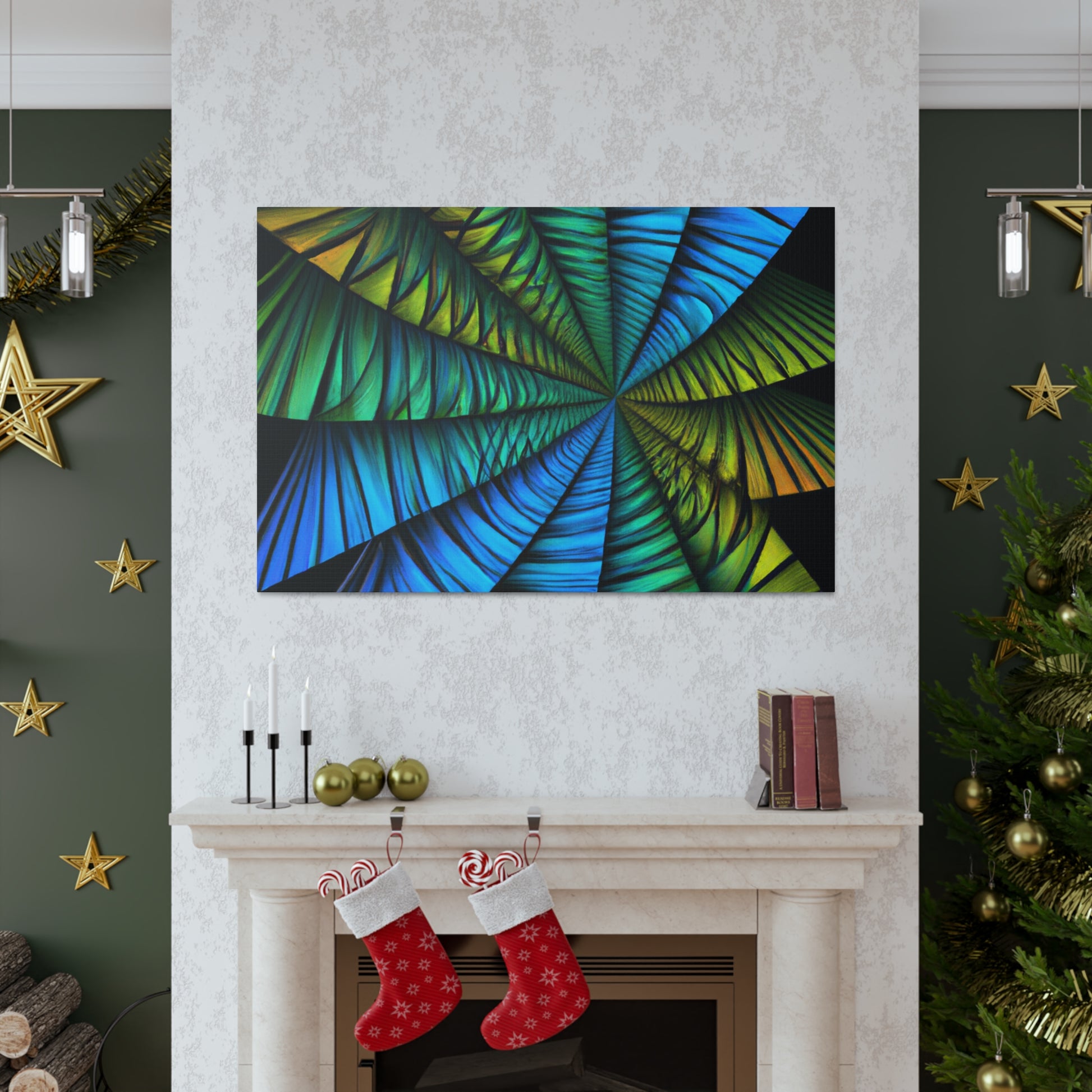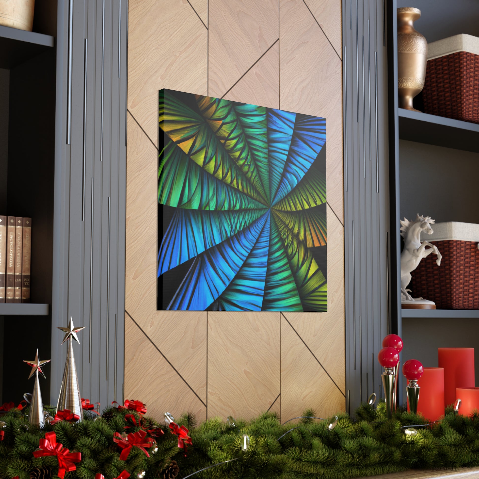 This 8x10 canvas features vivid abstract art with a mix of trippy geometric elements and vibrant colors. It showcases palate leaves, kaleidoscope and 3D lines arranged in a fractal pattern that radiates energy and movement. A unique conversation starter, this canvas is the perfect way to showcase your individuality and creative flair! #FractalArt #Kaleidoscope #GeometricArt #AbstractArt #VibrantColors #3DLines #TrippyArt #PalmLeaves #DigitalArt #Fractal #3DPatterns