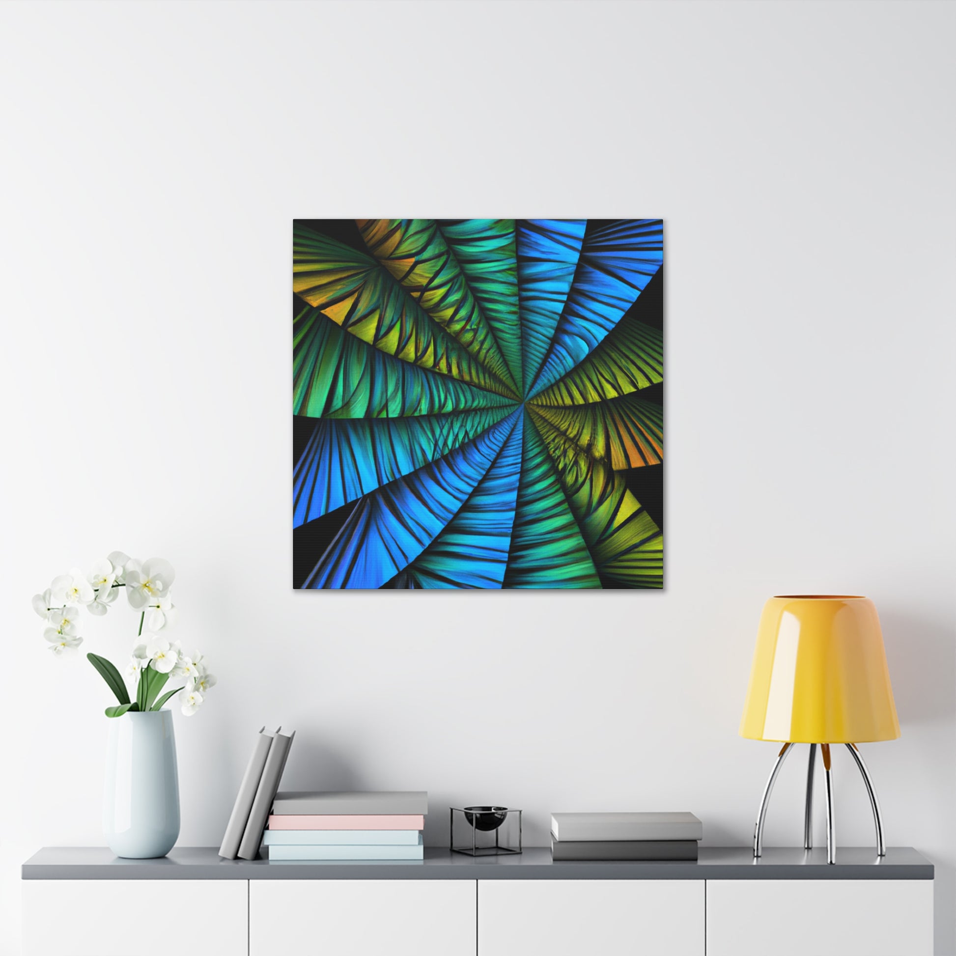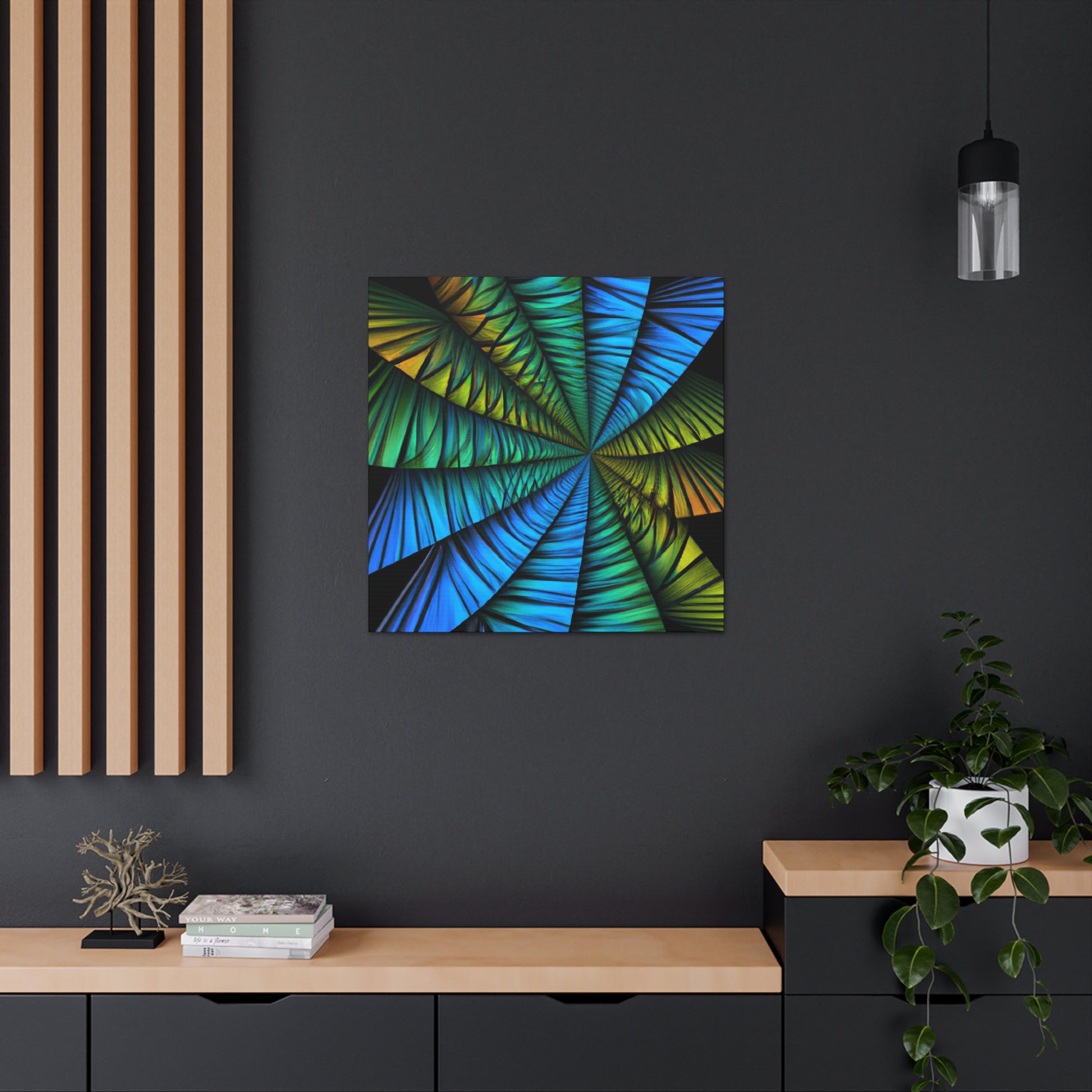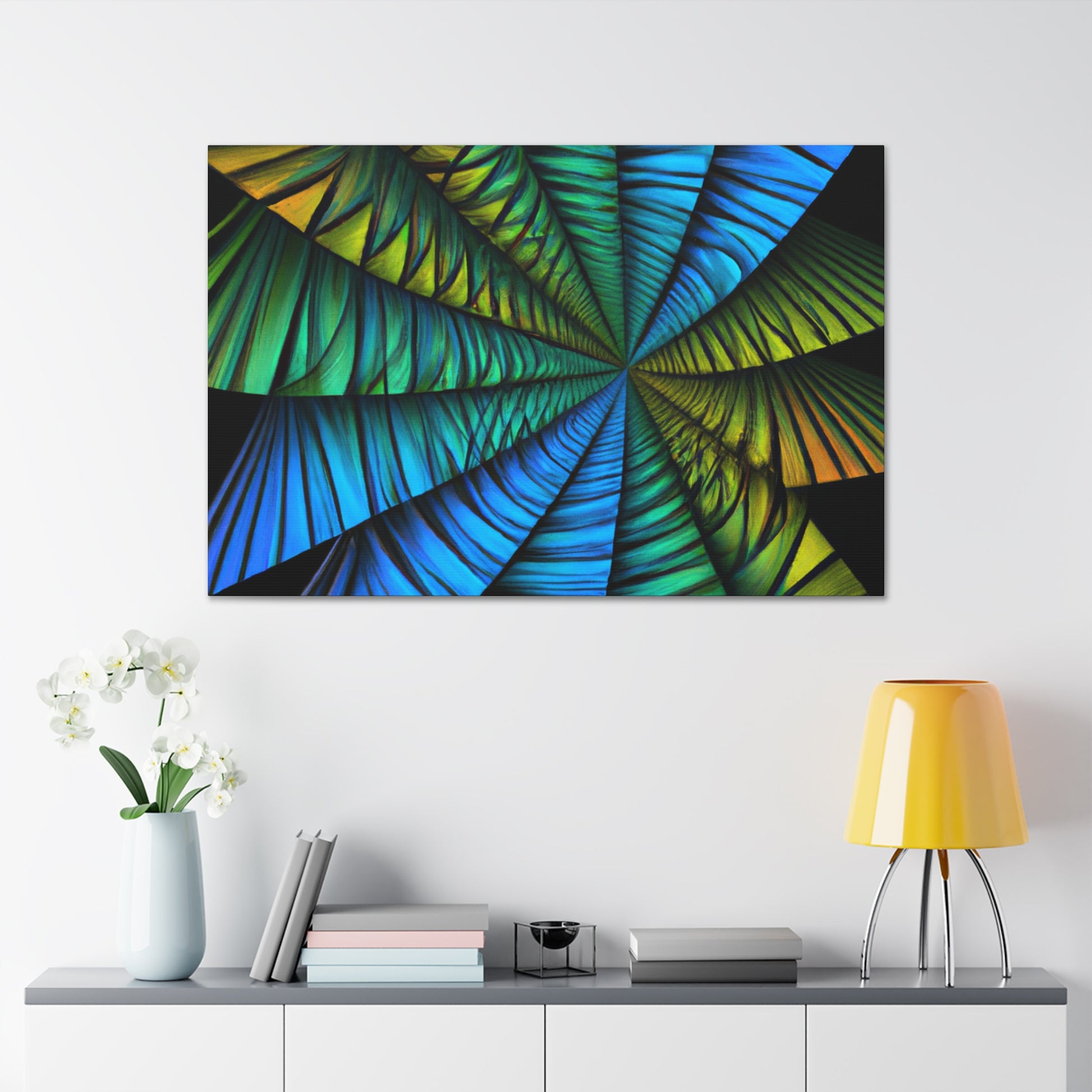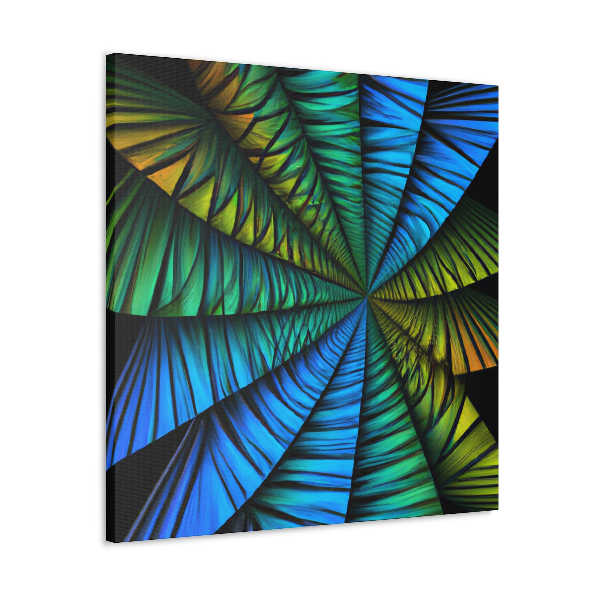 This 8x10 canvas features vivid abstract art with a mix of trippy geometric elements and vibrant colors. It showcases palate leaves, kaleidoscope and 3D lines arranged in a fractal pattern that radiates energy and movement. A unique conversation starter, this canvas is the perfect way to showcase your individuality and creative flair! #FractalArt #Kaleidoscope #GeometricArt #AbstractArt #VibrantColors #3DLines #TrippyArt #PalmLeaves #DigitalArt #Fractal #3DPatterns