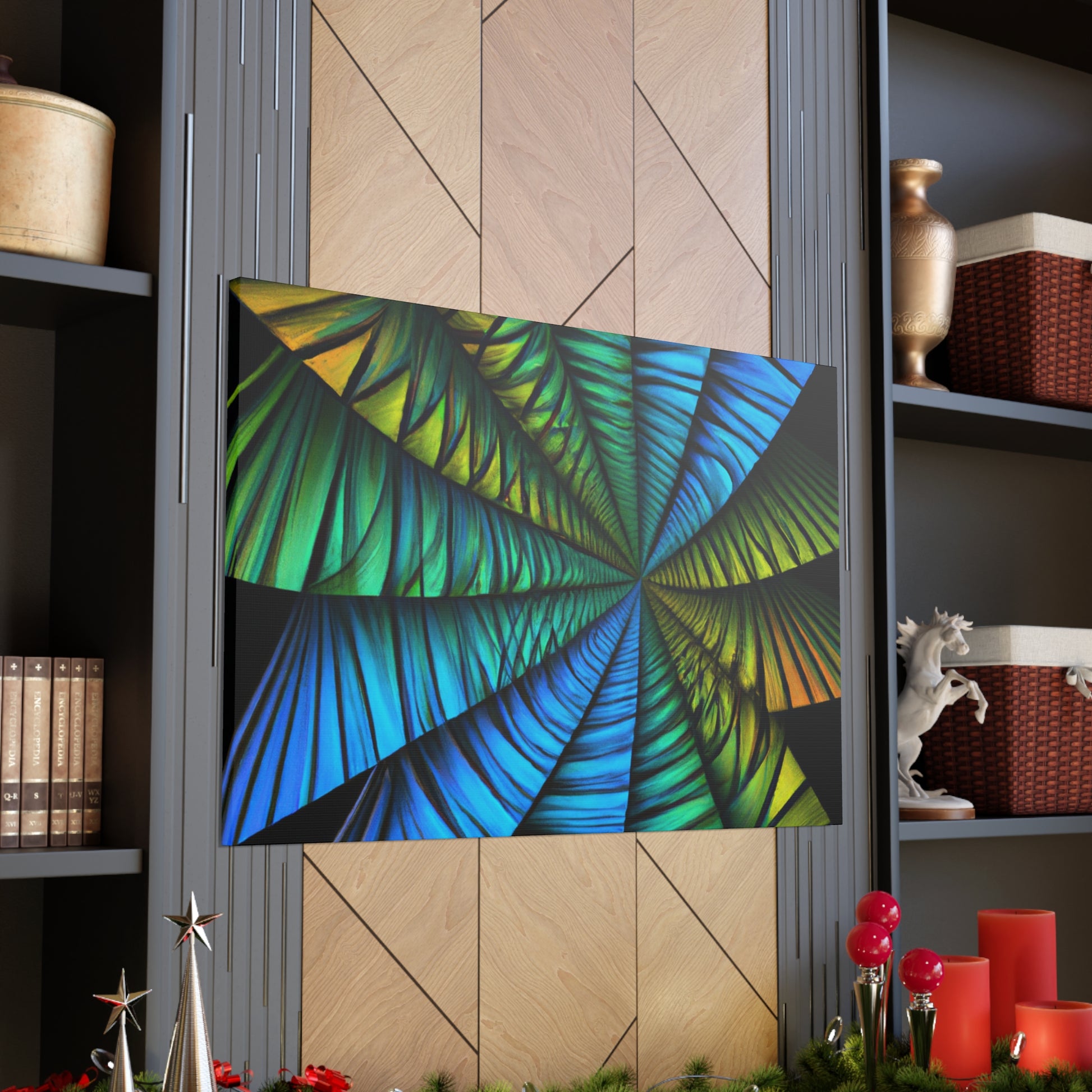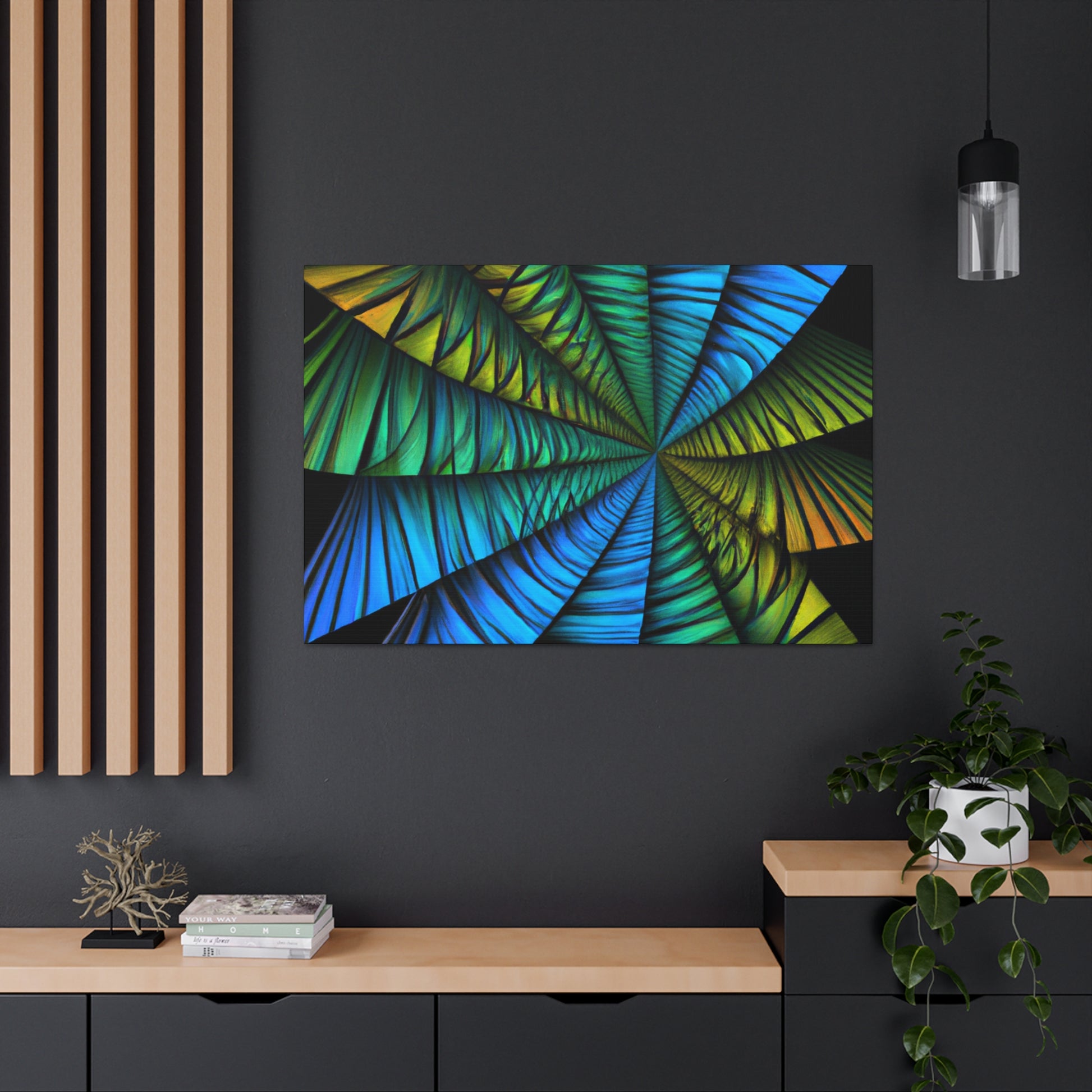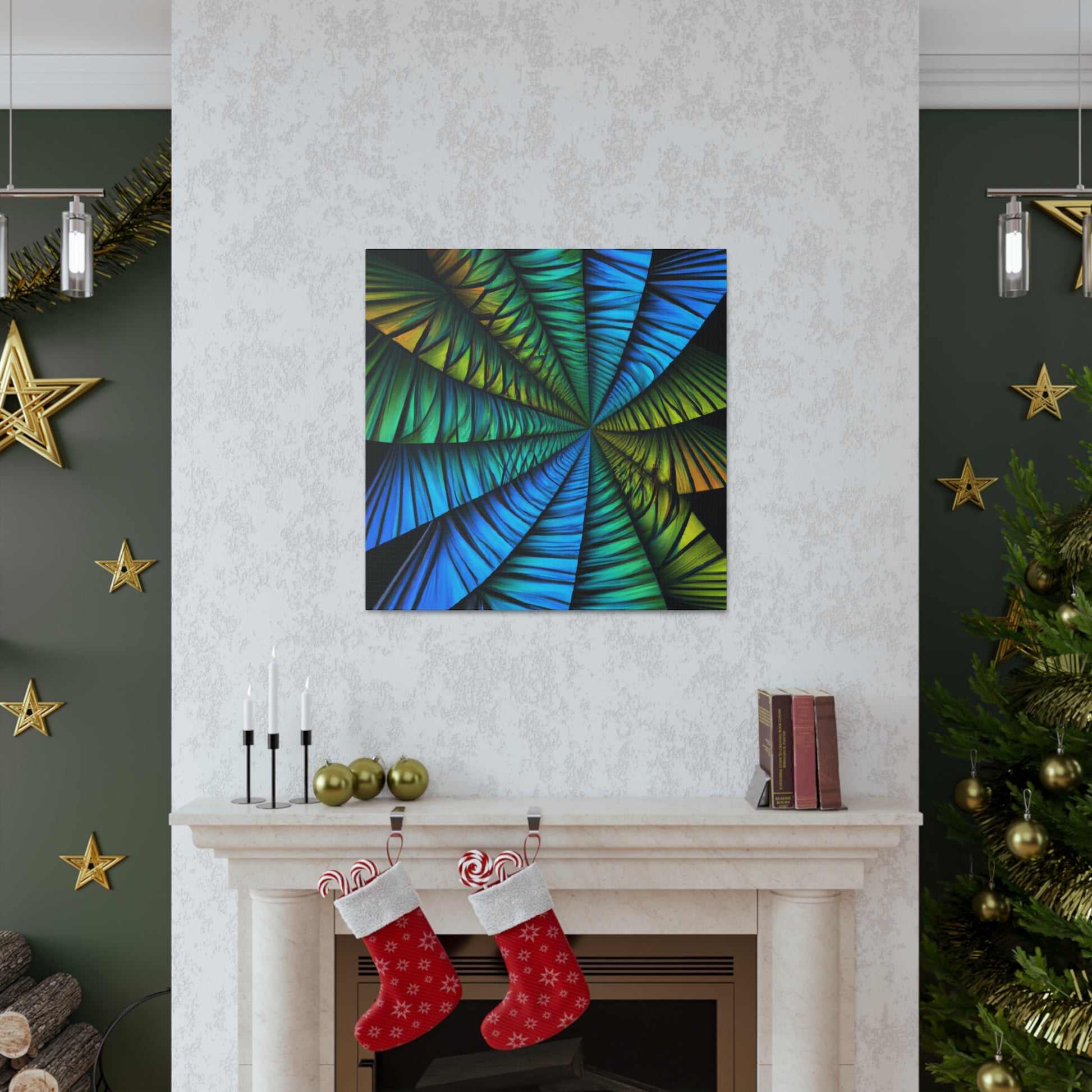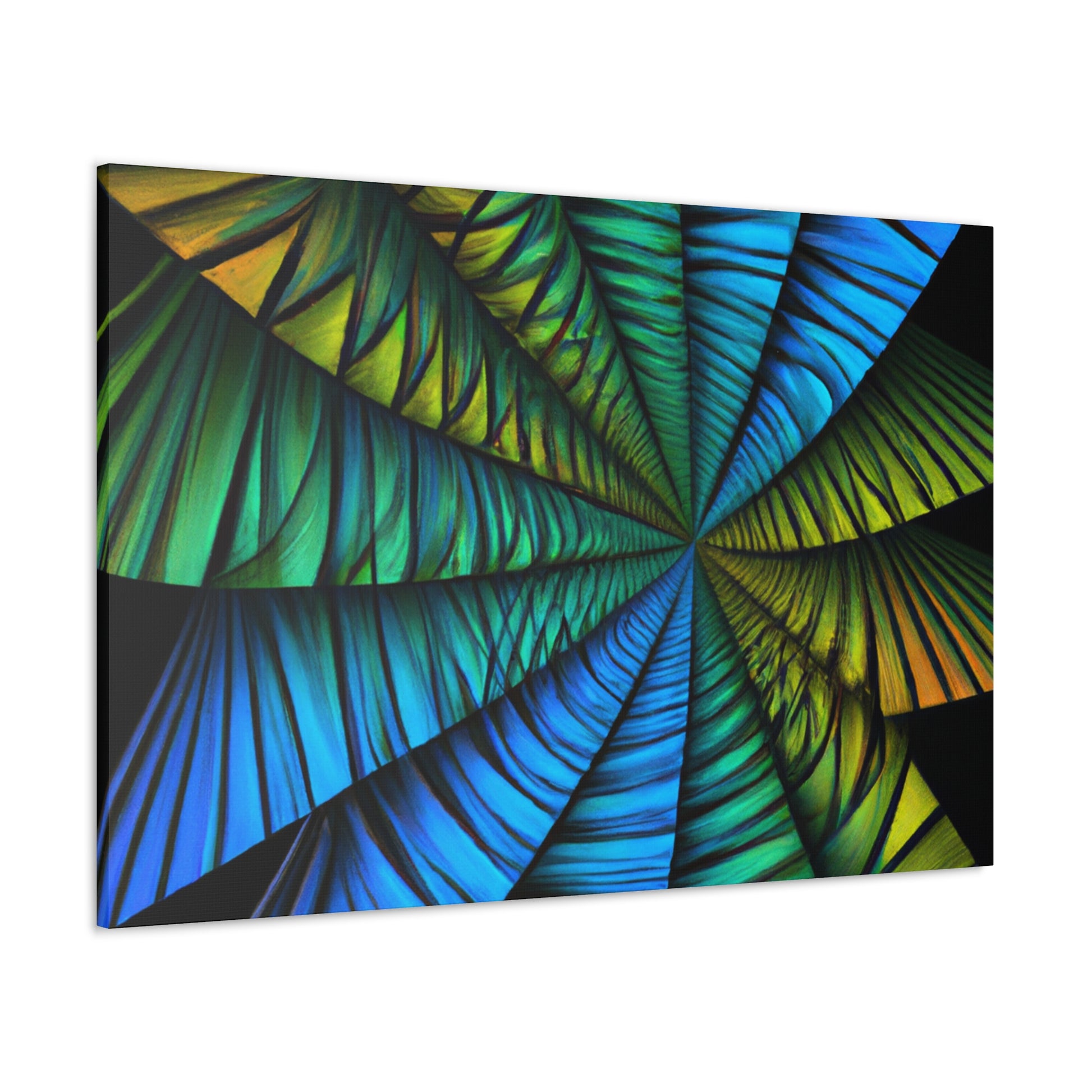 This 8x10 canvas features vivid abstract art with a mix of trippy geometric elements and vibrant colors. It showcases palate leaves, kaleidoscope and 3D lines arranged in a fractal pattern that radiates energy and movement. A unique conversation starter, this canvas is the perfect way to showcase your individuality and creative flair! #FractalArt #Kaleidoscope #GeometricArt #AbstractArt #VibrantColors #3DLines #TrippyArt #PalmLeaves #DigitalArt #Fractal #3DPatterns
