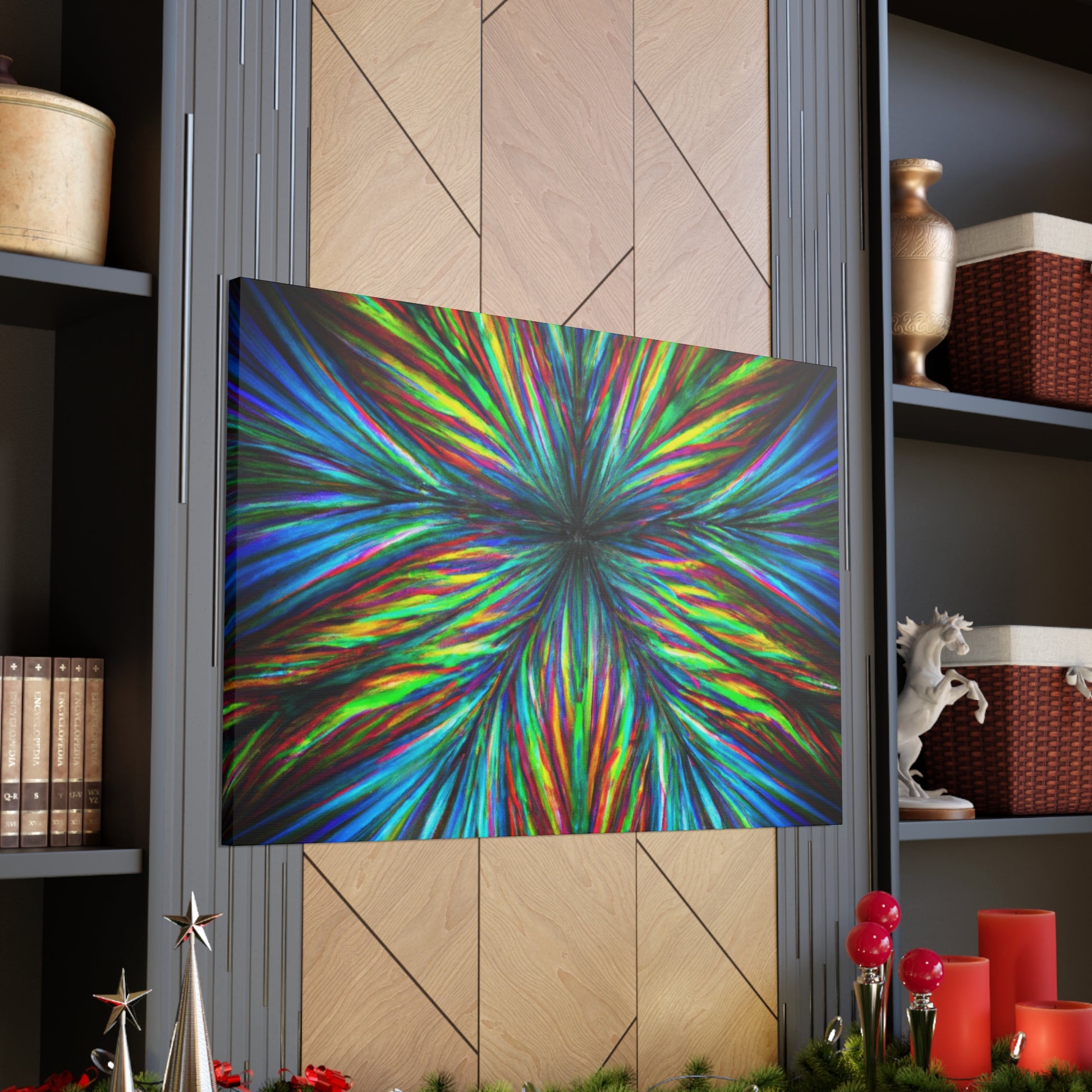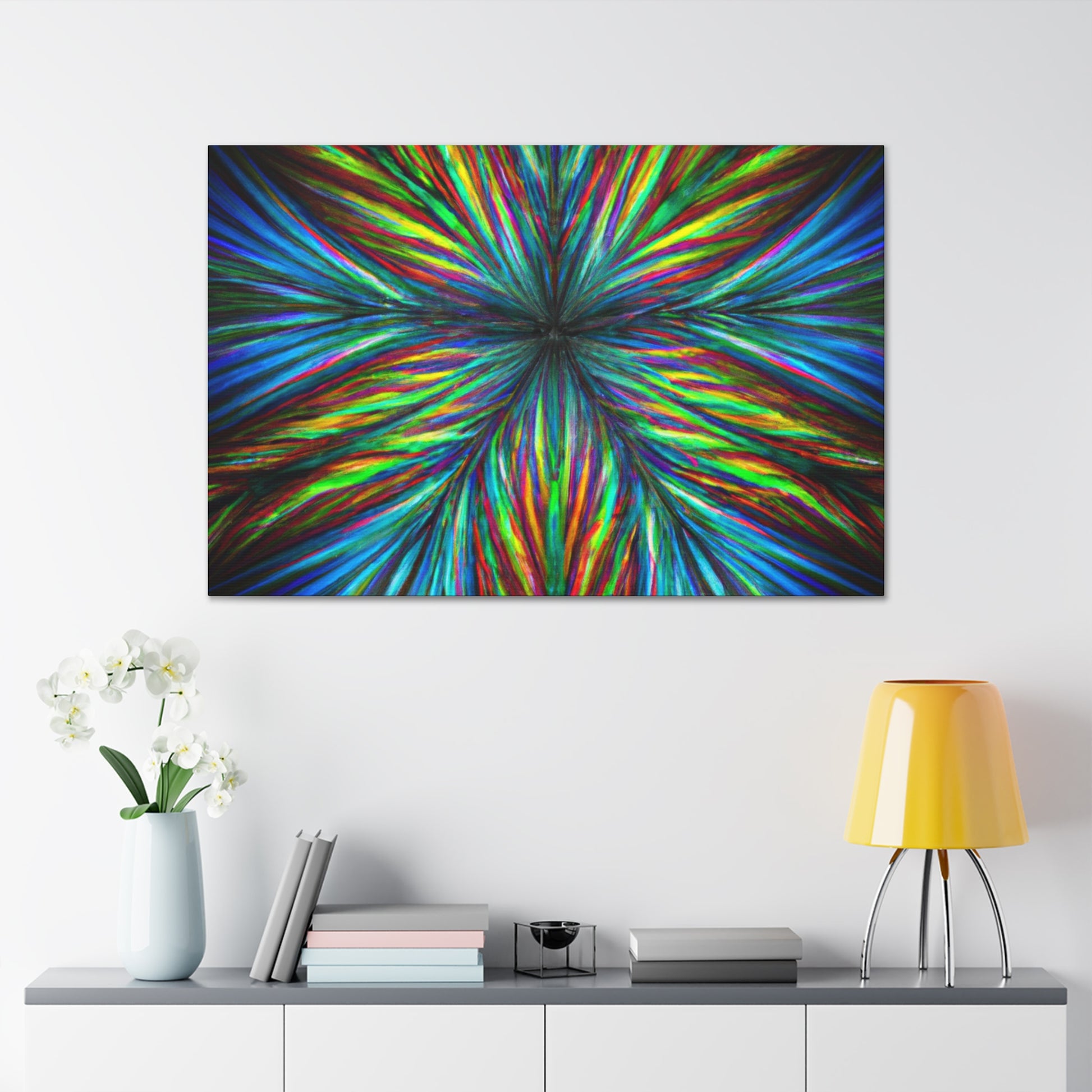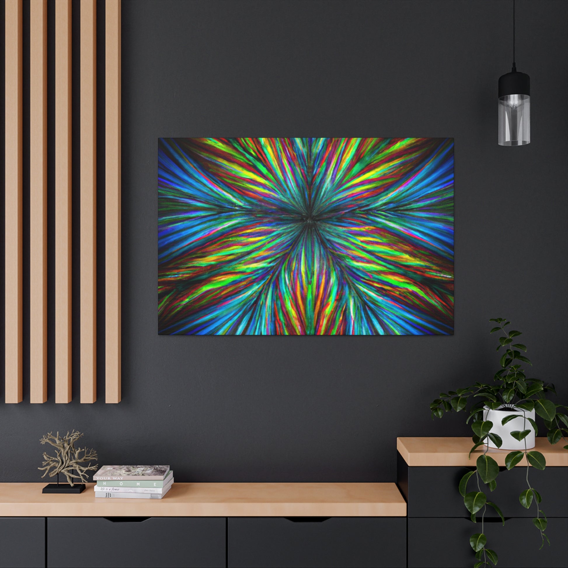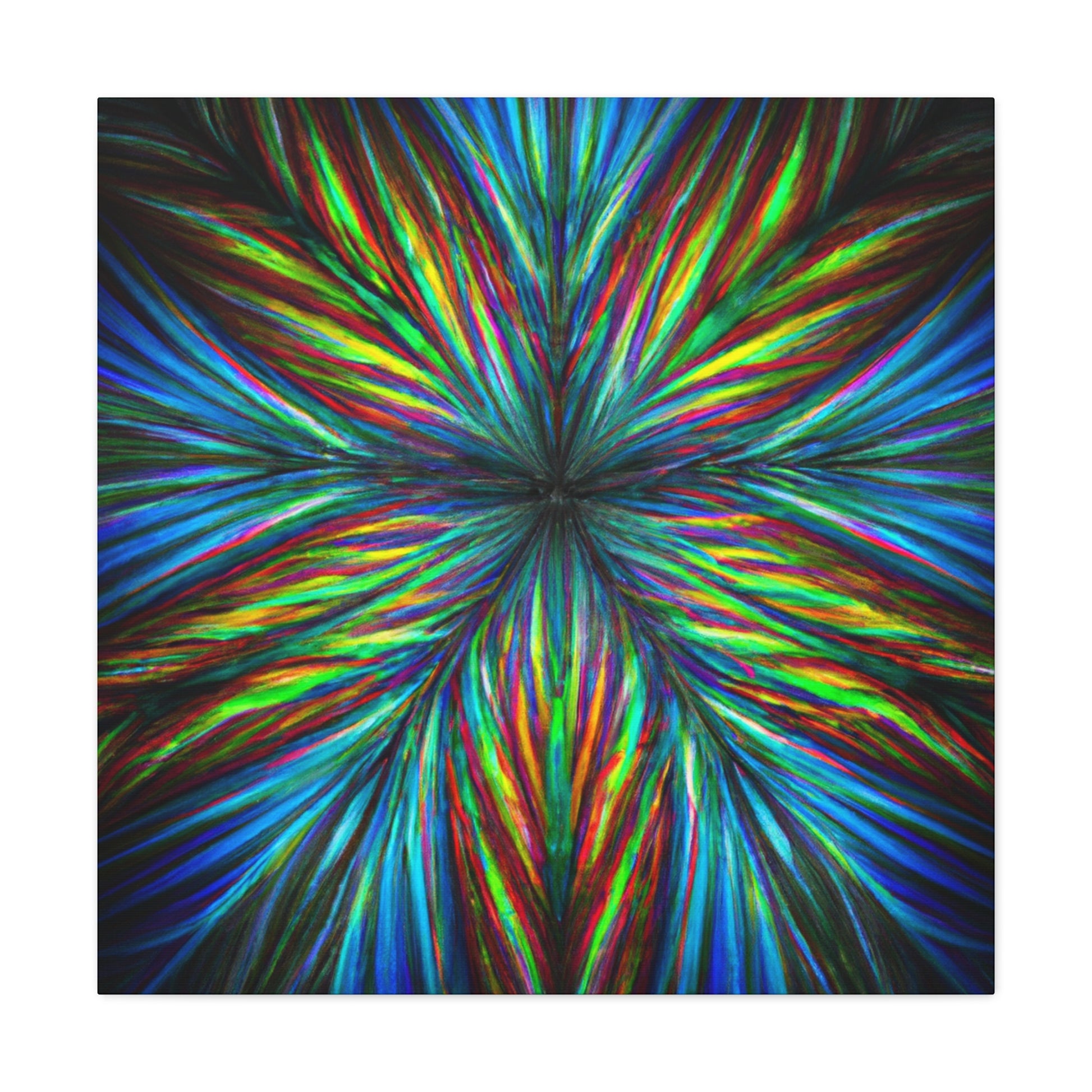 This vivid digital art canvas of Trippy geometric palm leaves, kaleidoscope, abstract lines, and 3D fractal will add an exotic pop of color and energy to your walls. With its vibrant colors and unique geometric shapes, this bold and beautiful piece of art will bring life to any space. Display it in your living room, bedroom, office, or anywhere you want to make a statement with art. #DigitalArt #VibrantColors #PalmLeaves #Kaleidoscope #Abstract #Fractal #3DLines #Trippy #Geometric #StatementArt #Bold