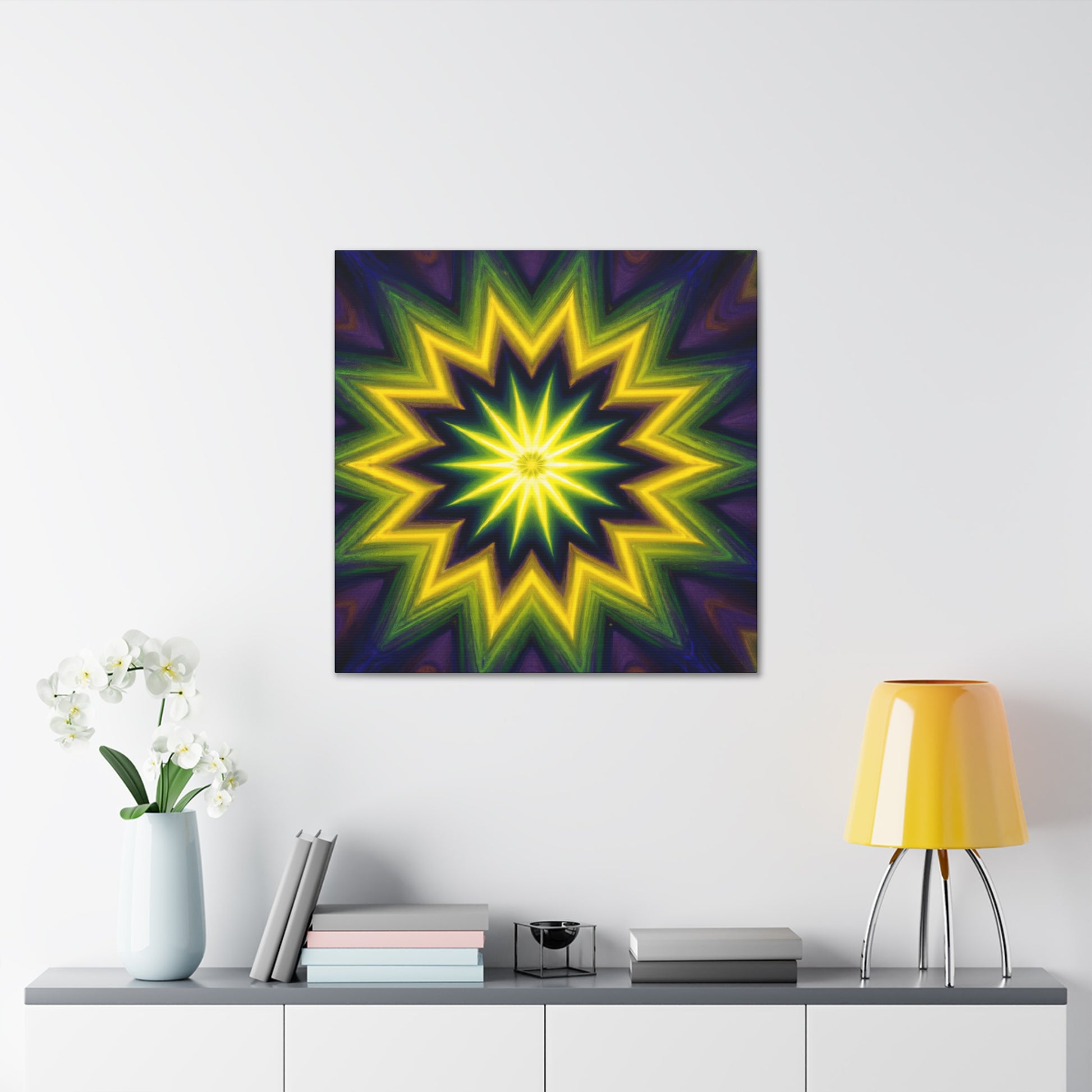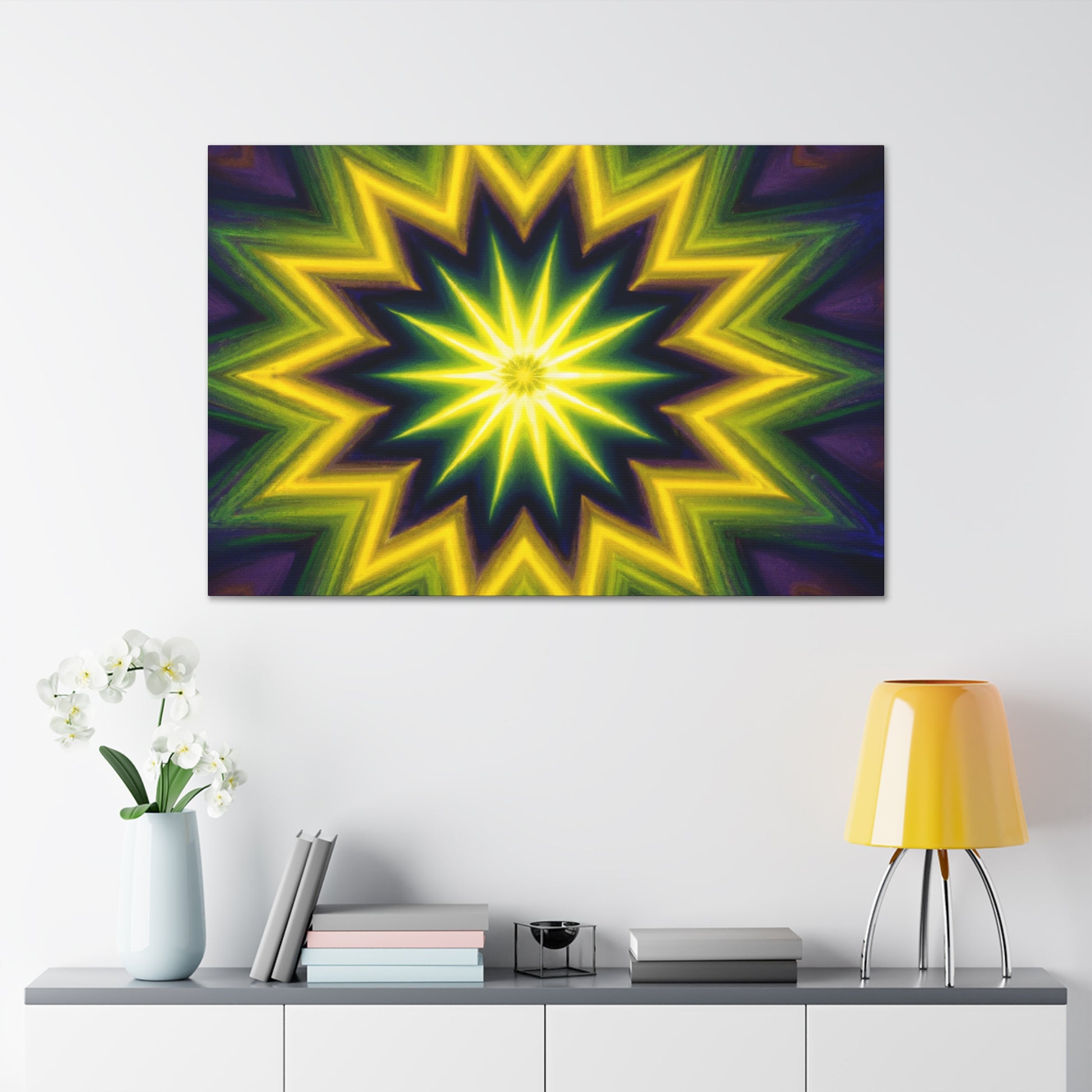 This canvas art will take you on an adventure! Be mesmerized with its trippy stars, kaleidoscope, abstract, and digital art design featuring vibrant colors - an amazing HD experience! Its beautiful symmetrical design will create a unique artwork in any room, and bring its energy alive. #trippystars #kaleidoscope #abstract #digitalart #vibrantcolors #HD #symmetrical #canvasart #artwork #design #interiordecor