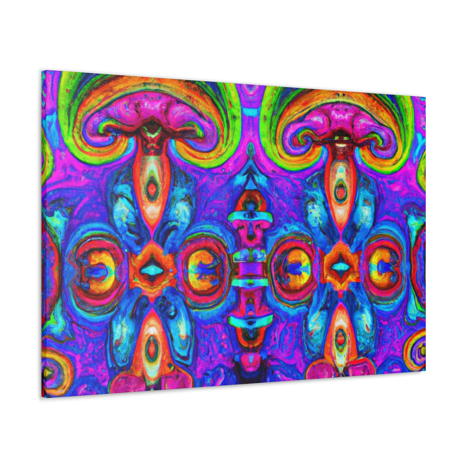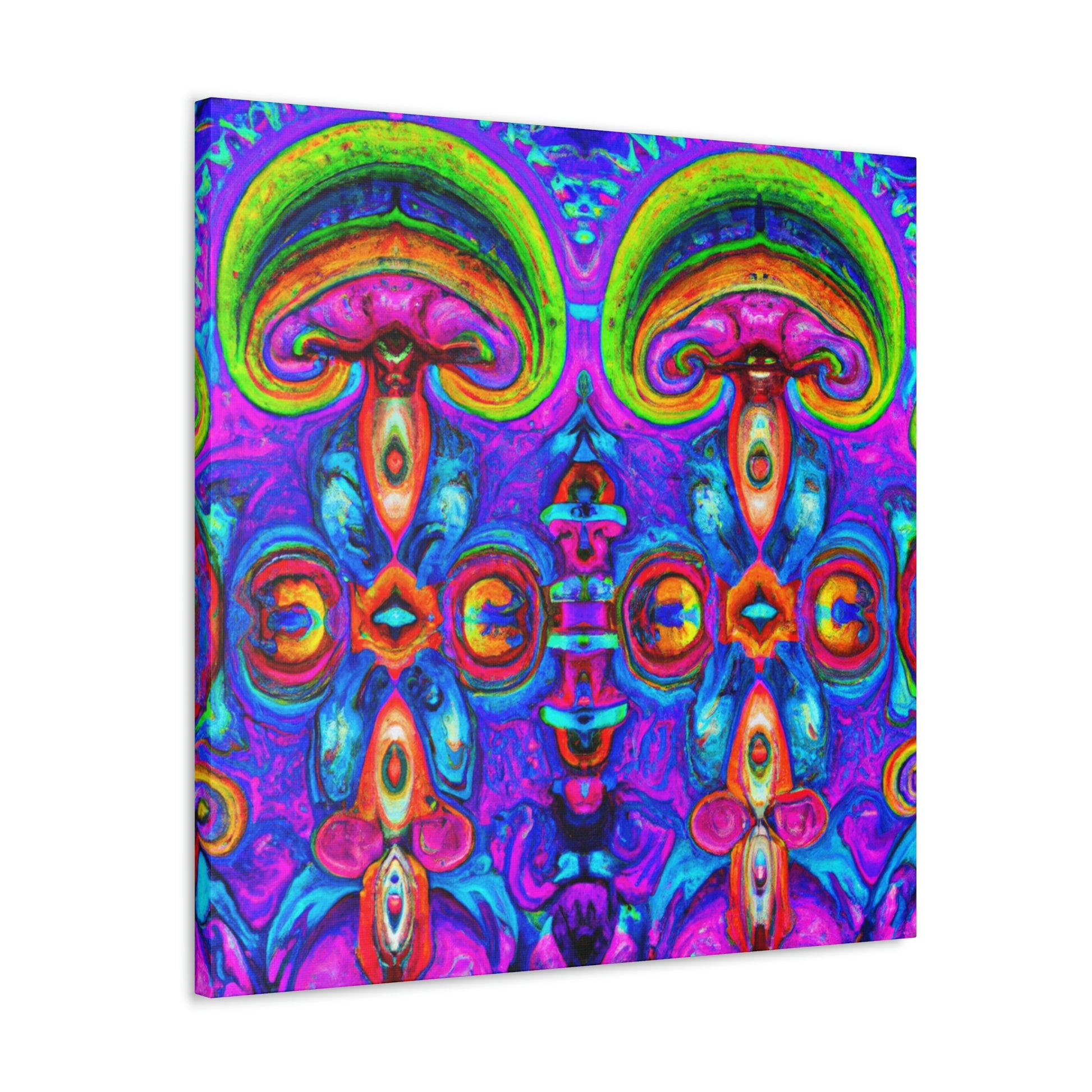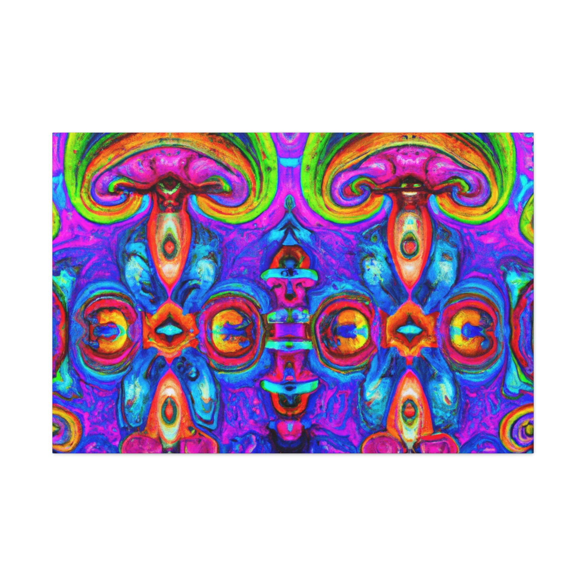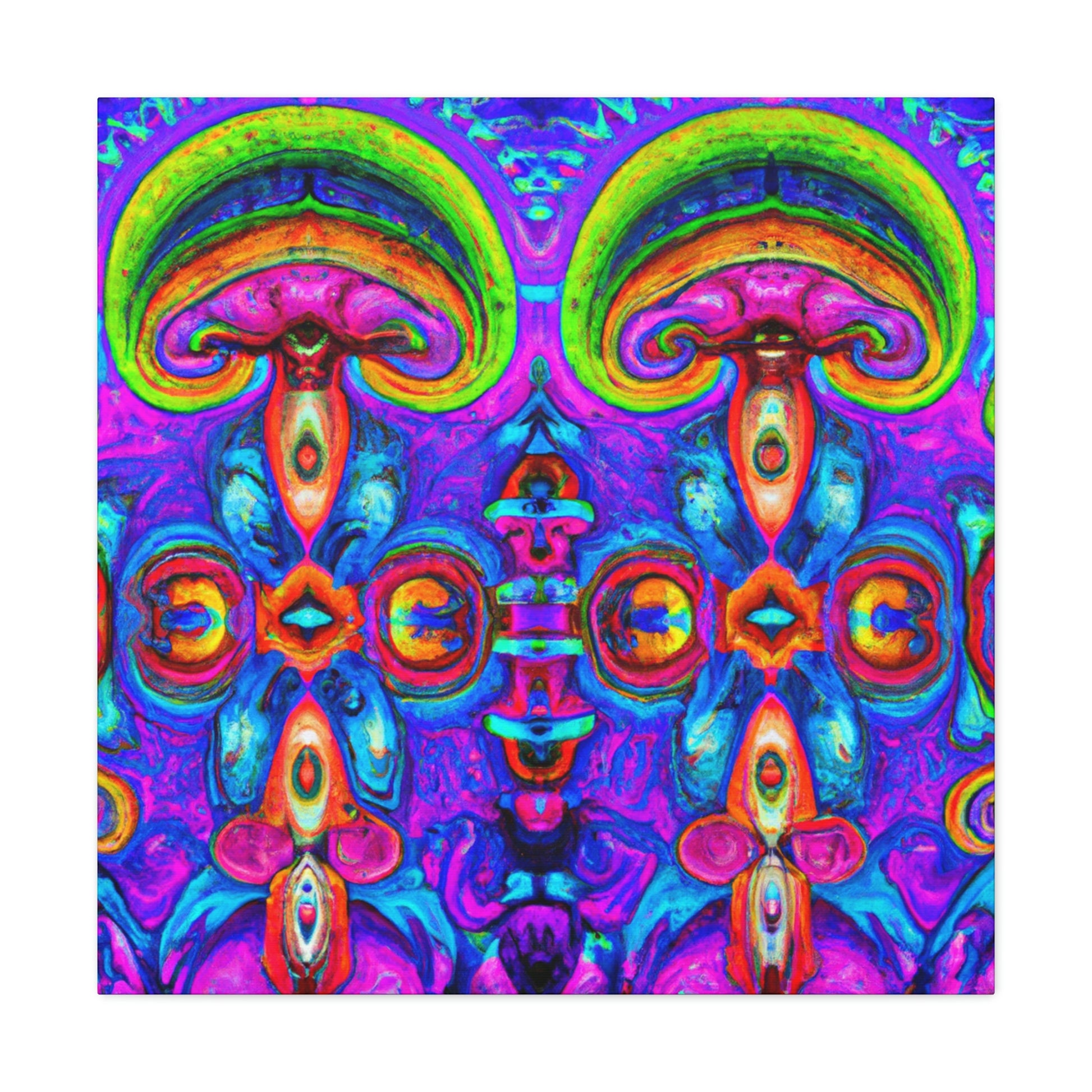 This vibrant digital art canvas features a psychedelic visual of abstract shapes, vibrant colors and intricate 3D lines, all centered around a kaleidoscopic design of trippy mushrooms. With its beautiful, eye-catching detail, this 3D art is sure to be the perfect statement piece in any room. #digitalart #canvas #mushroom #kaleidoscope #trippy #3Dlines #3Dart #abstract #vibrantcolors #psychedelic #statementpiece