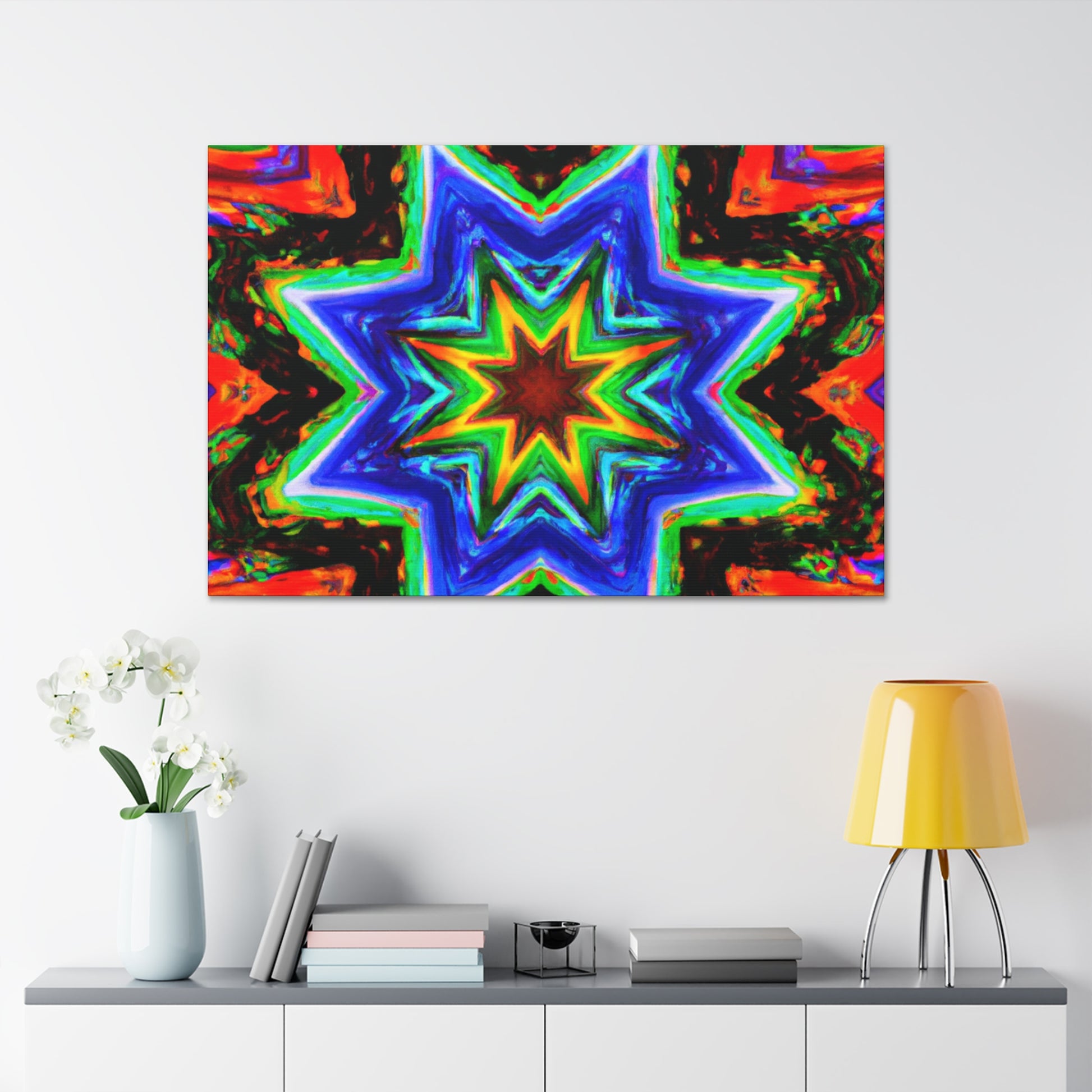 Discover this unique Trippy Stars, Kaleidoscope, Abstract, Digital Art Canvas! Captivate your room with its vibrant colors and HD imaging. Position it at the center of your room and be mesmerized by its symmetrical design. Refresh your interior with this beautiful piece of art - you won't regret it! #Canvas #Trippy #Stars #Kaleidoscope #Abstract #DigitalArt #Vibrant #Colors #HD #Symmetrical #Unique