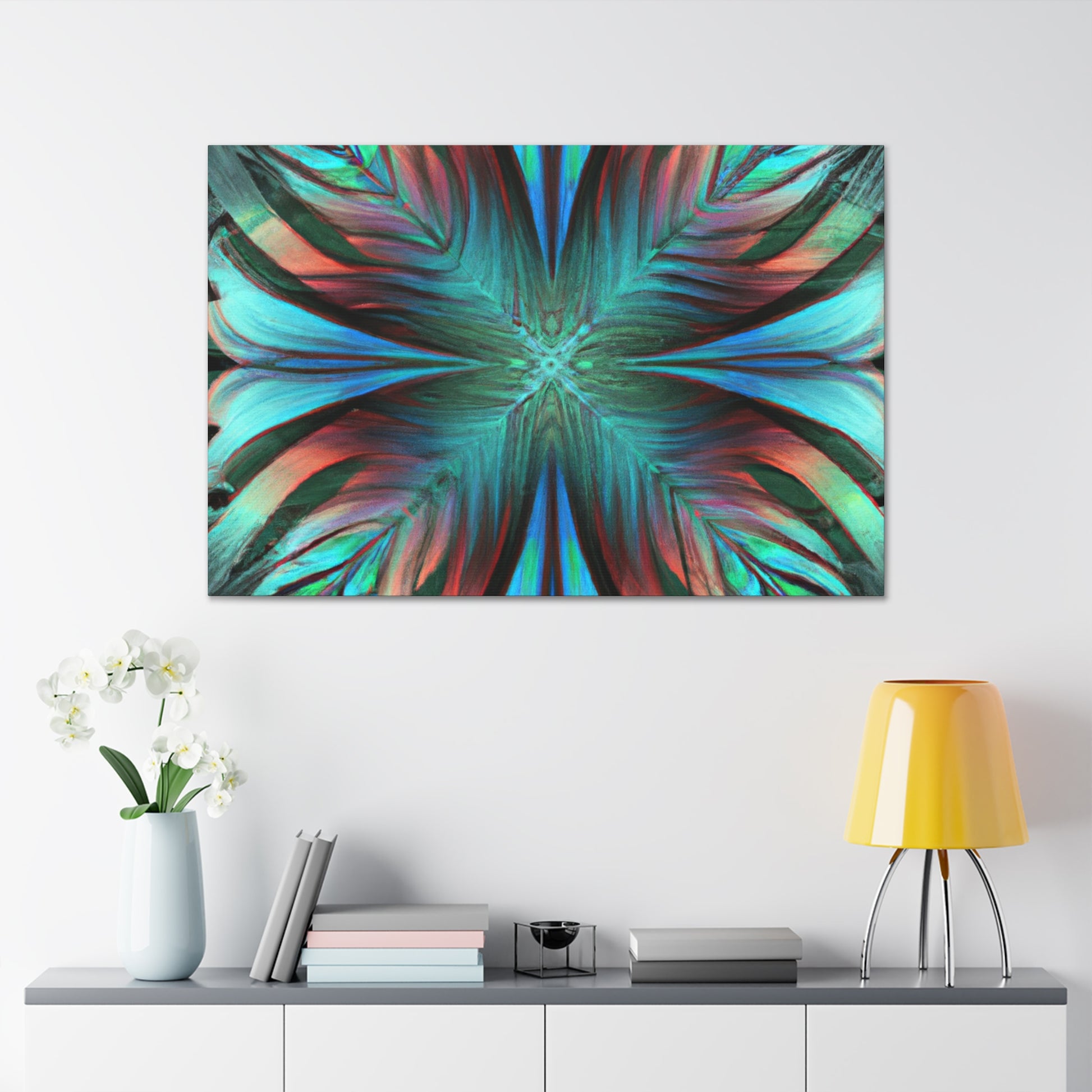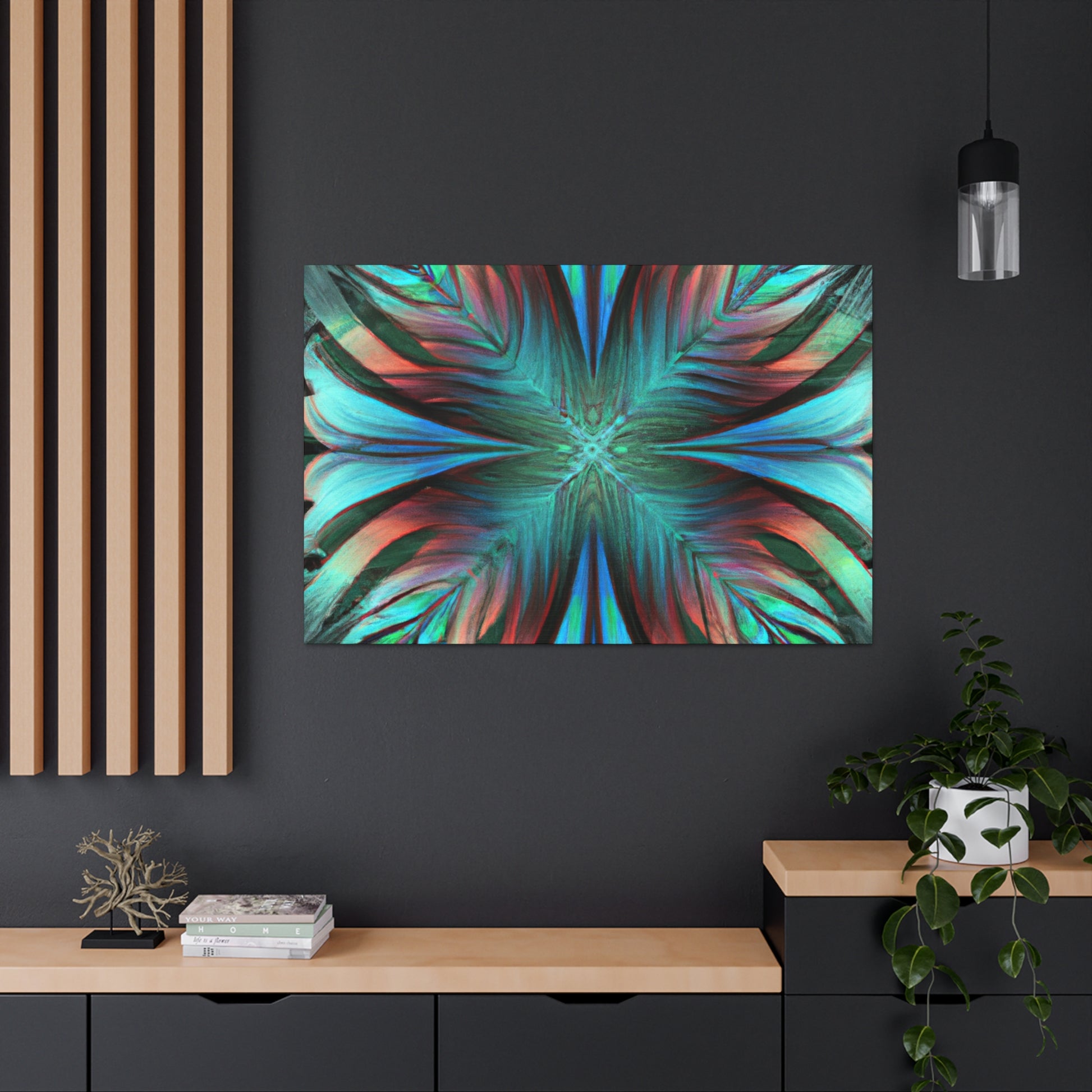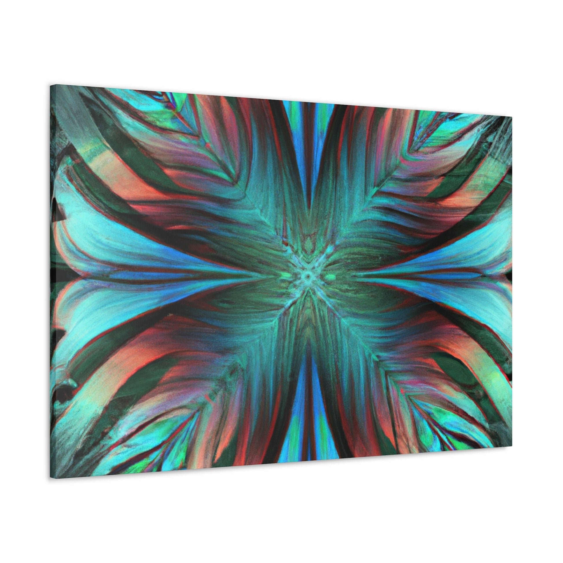 Bring the outdoors in with this eye-catchingly mesmerizing Trippy Geometric Palm Leaves Canvas. Digital Art in vibrant colors featuring 3D Lines, Kaleidoscope, Fractal and Abstract art with a professional touch. Enjoy its beautiful, modern aesthetic and create a lasting statement in your home. #TrippyGeometric #PalmLeaves #DigitalArt #VibrantColors #3DLines #Kaleidoscope #Abstract #Fractal #ModernAesthetic #HomeDécor #CanvasArt