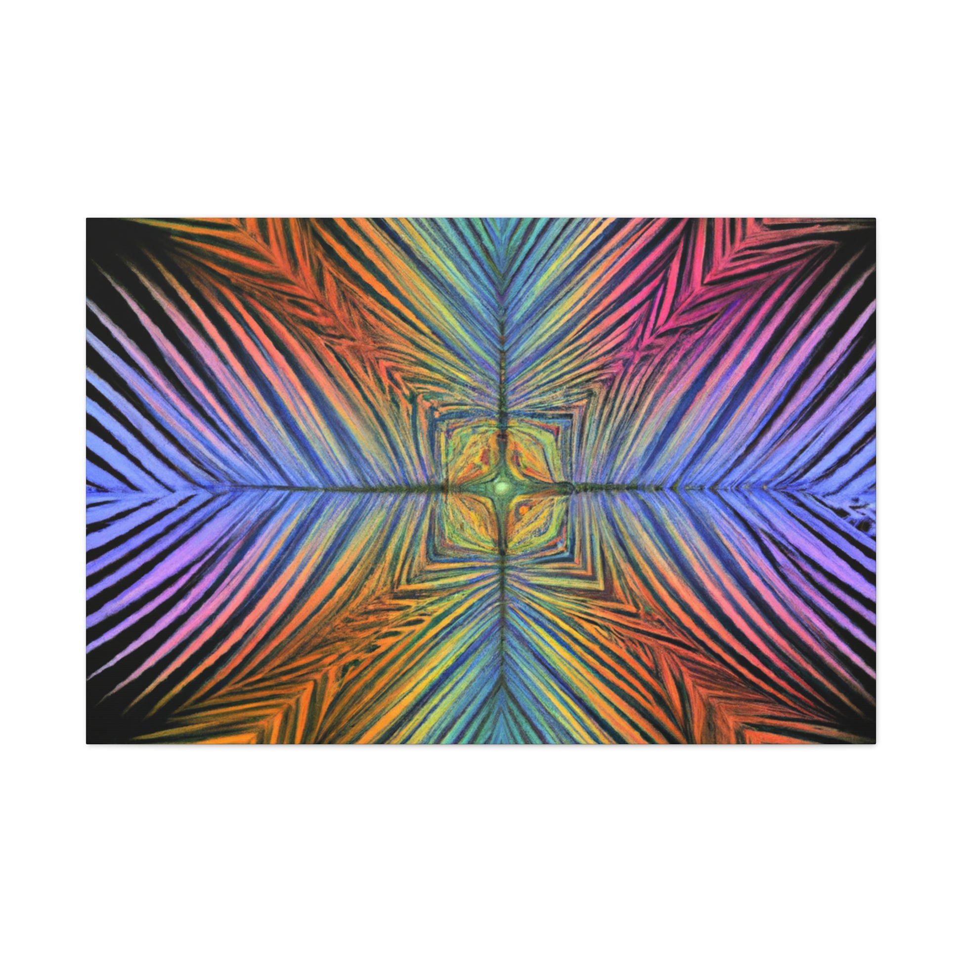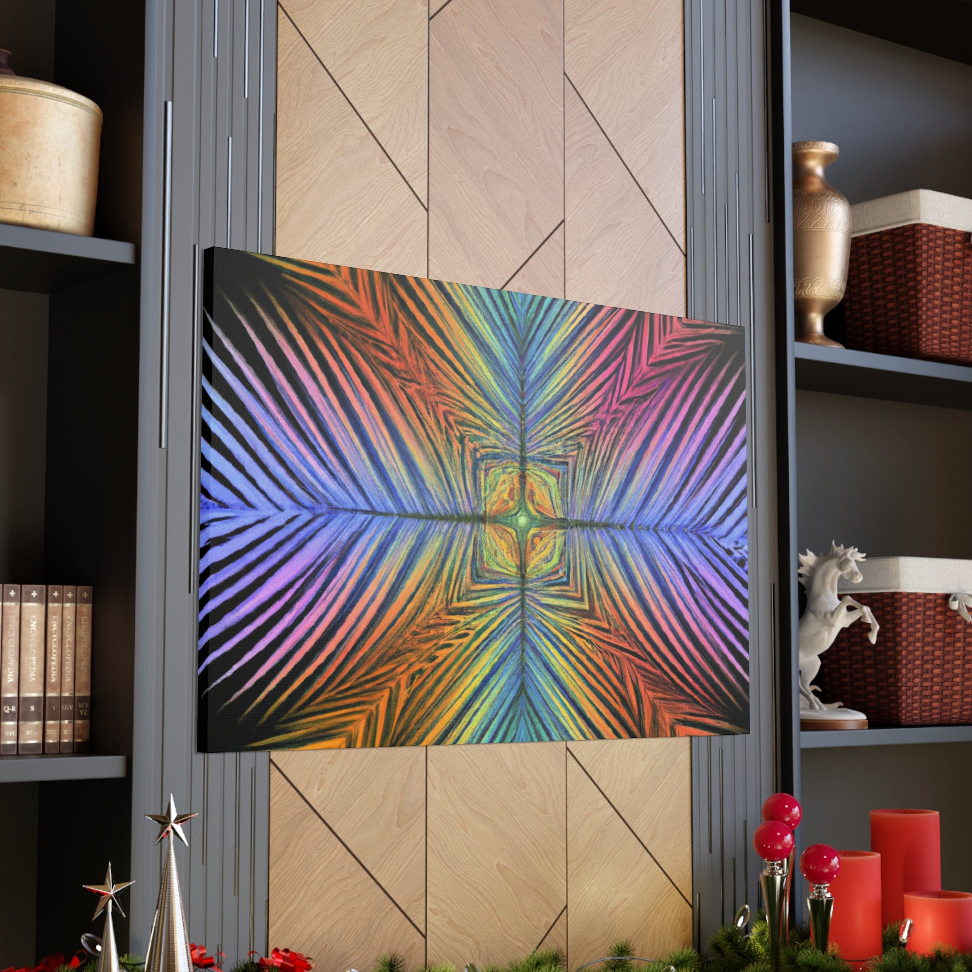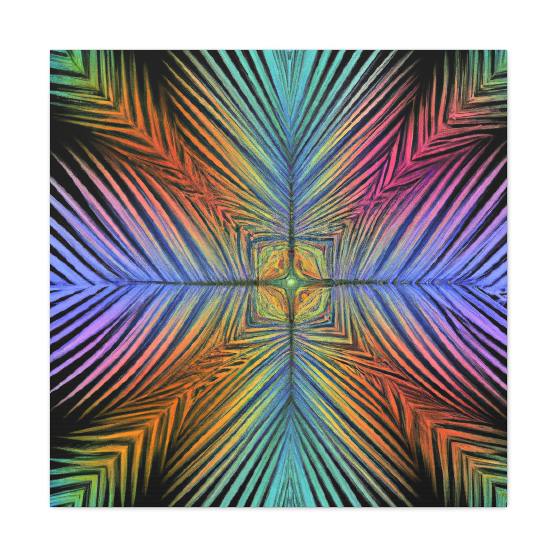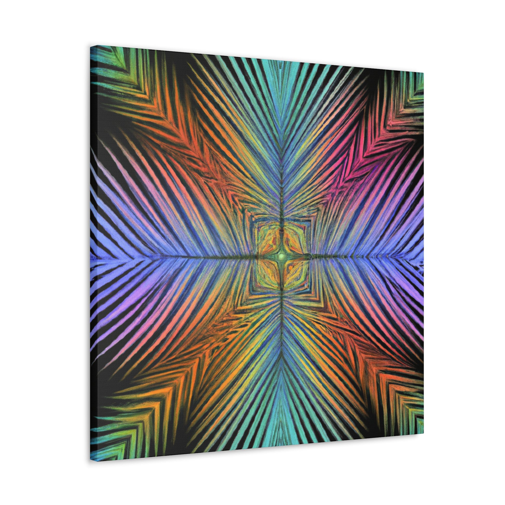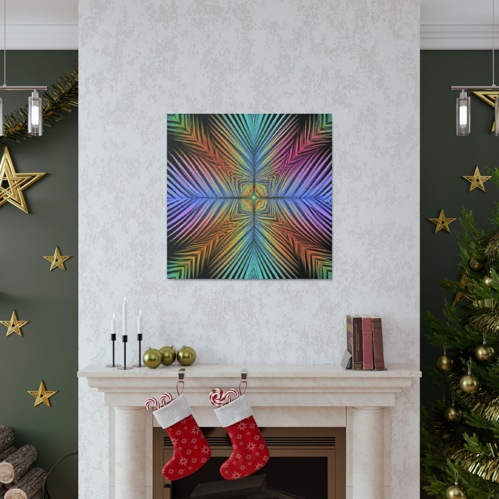 This canvas is a vivid expression of creativity, combining kaleidoscope, abstract expression, digital art, and vibrant colors. Take your decor to a new interactive level with this mesmerizing artwork featuring 3D lines and fractal patterns that create a trippy, geometric palm leaf pattern. Increase the artistic quality of any interior space with this exquisite canvas. #3dlines #fractal #canvasart #abstract #digitalart #trippyart #vibrantcolors #kaleidoscope #geometricpalmleaves #3dfractal #interactiveart