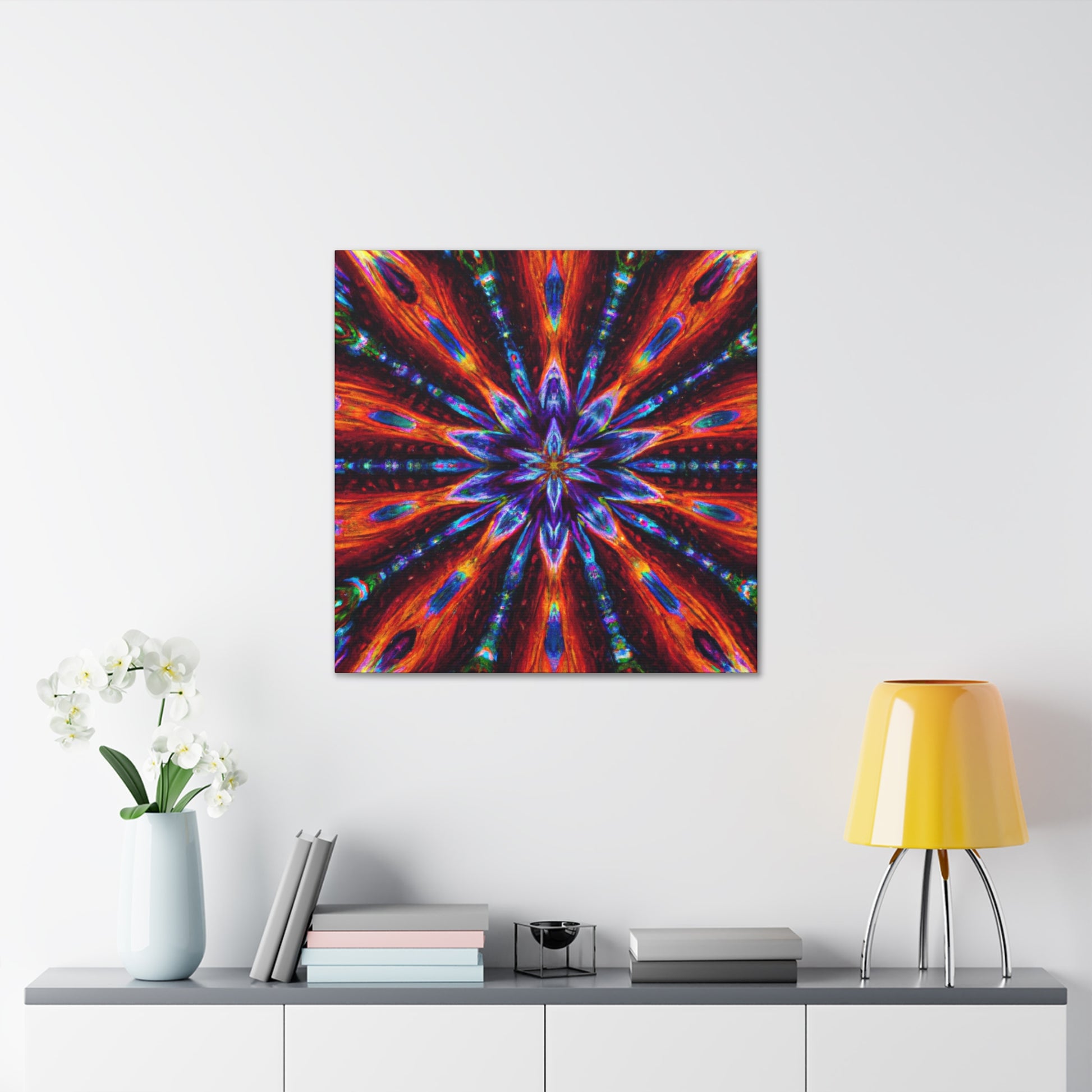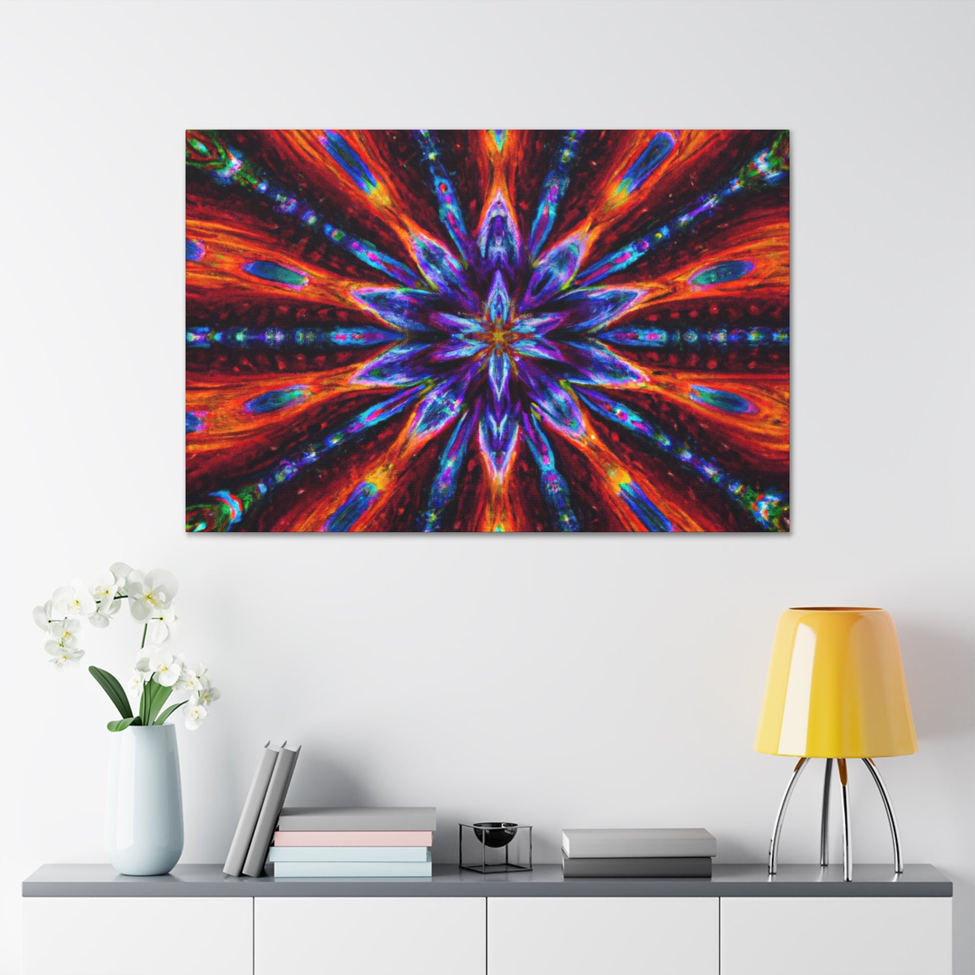 This high-definition canvas of striking kaleidoscope art features abstract, trippy stars in a symmetrical pattern with vibrant colors that will bring life to your home. It's perfect for those who appreciate and adore modern digital art, and it's a great addition to any eclectic décor. #KaleidoscopeArt #TrippyStars #Abstract #DigitalArt #VibrantColors #HighDefinition #Canvas #Symmetrical #Modern #HomeDecor #Eclectic