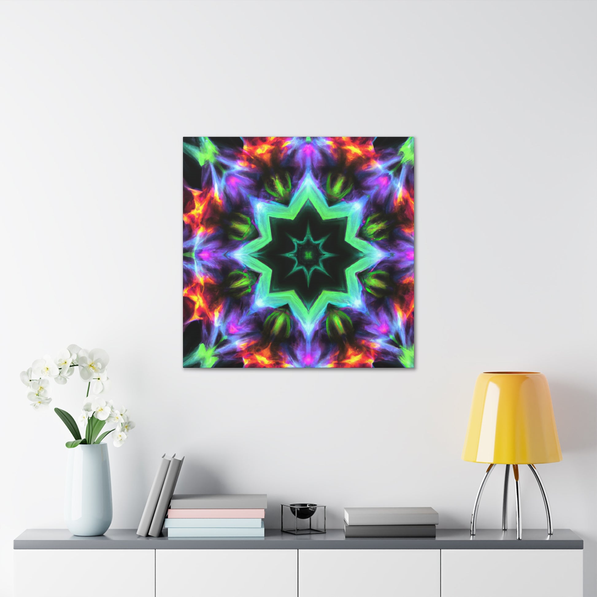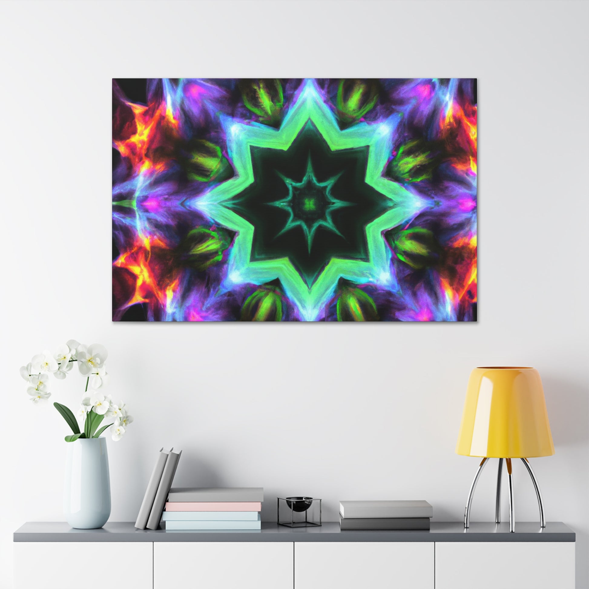 Bring art to life with our vibrant and symmetrical canvas of Trippy Stars, Kaleidoscope, and Abstract Digital Art! HD colors accelerate your walls while providing a visual surrealism like no other. Get ready to be amazed every time you look at this piece of art. #trippystars #kaleidoscope #abstract #digitalart #vibrantcolors #hd #canvasart #symmetrical #visualsurrealism #brightcolors #homeart