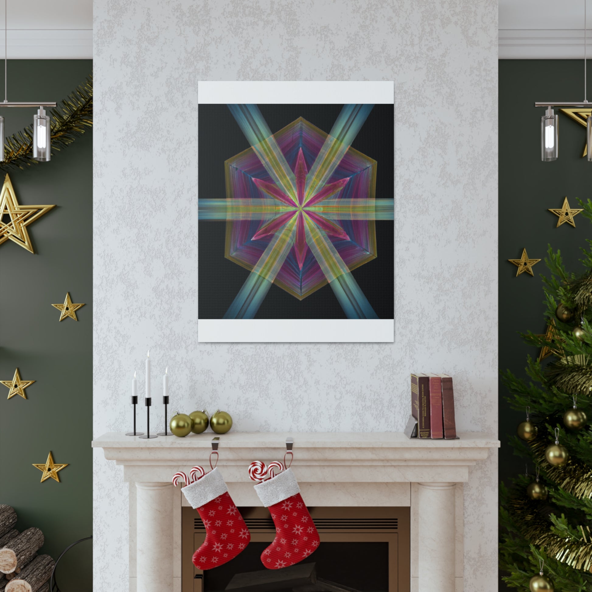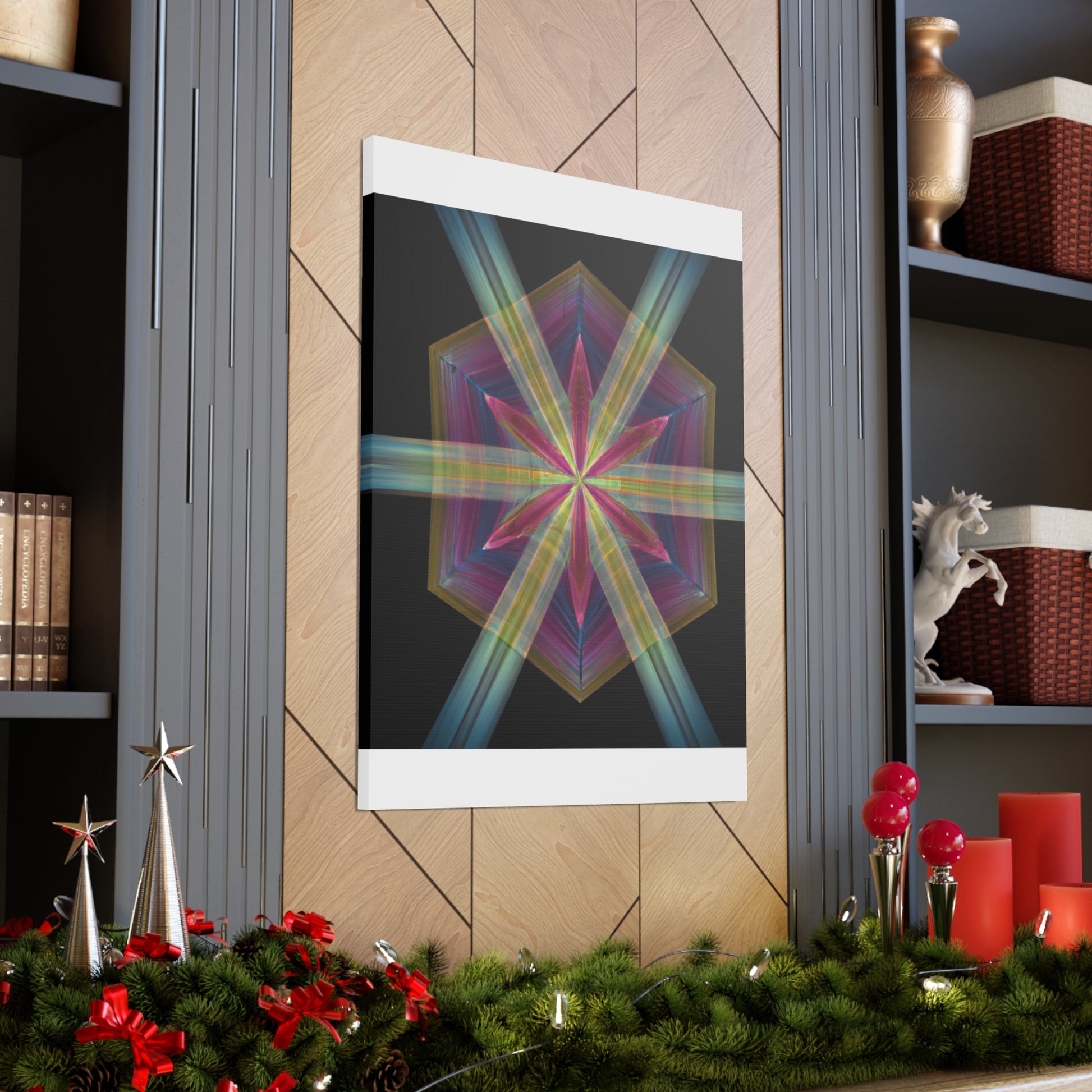 This vibrant, digital art canvas brings fractal-like shapes, colorful geometric patterns, and abstract 3D lines into your home to add beauty and pizzazz. Perfect for any occasion, the captivating blend of colors create a mesmerizing, kaleidoscopic effect. Hang this beautiful canvas to add a unique, trippy touch to your home decor!