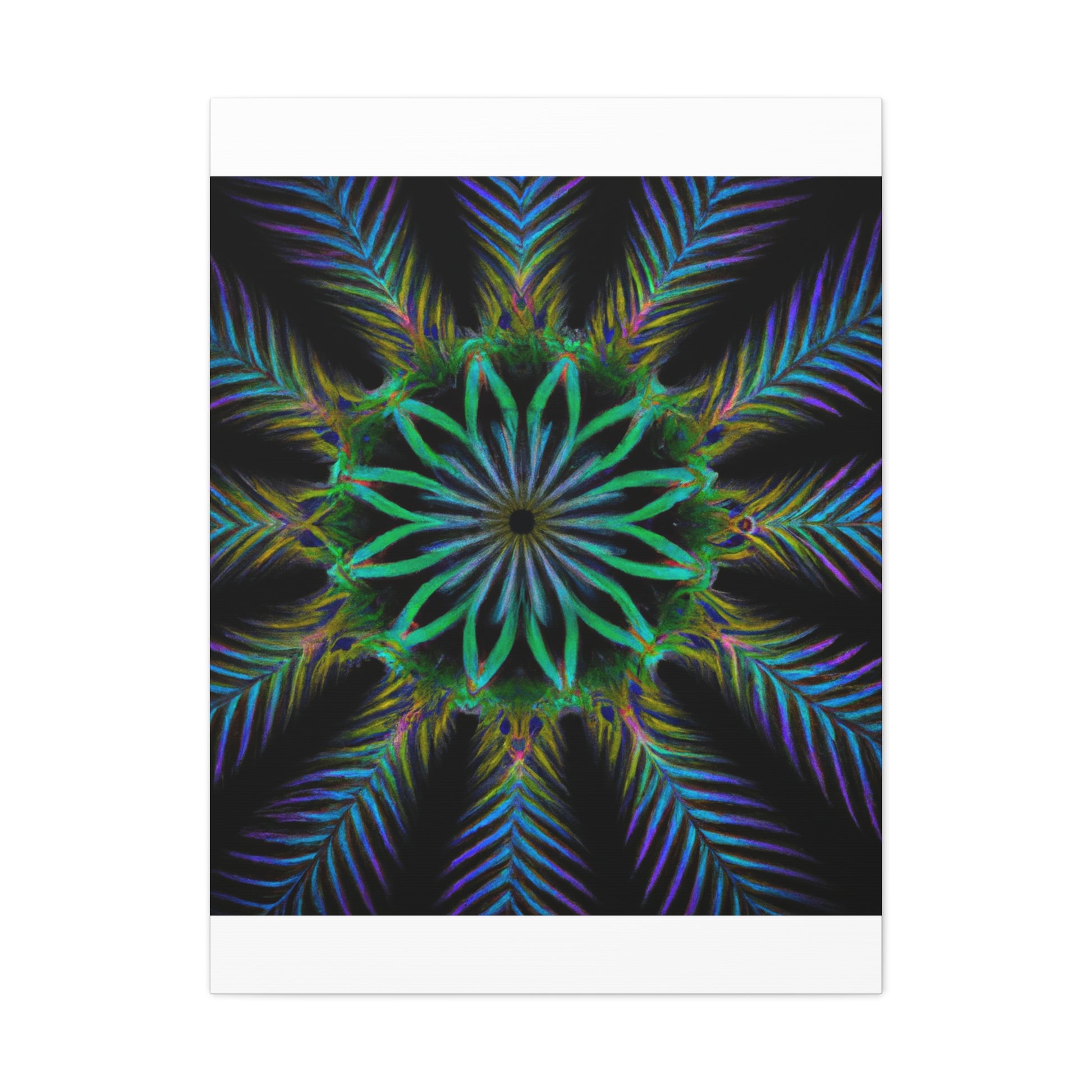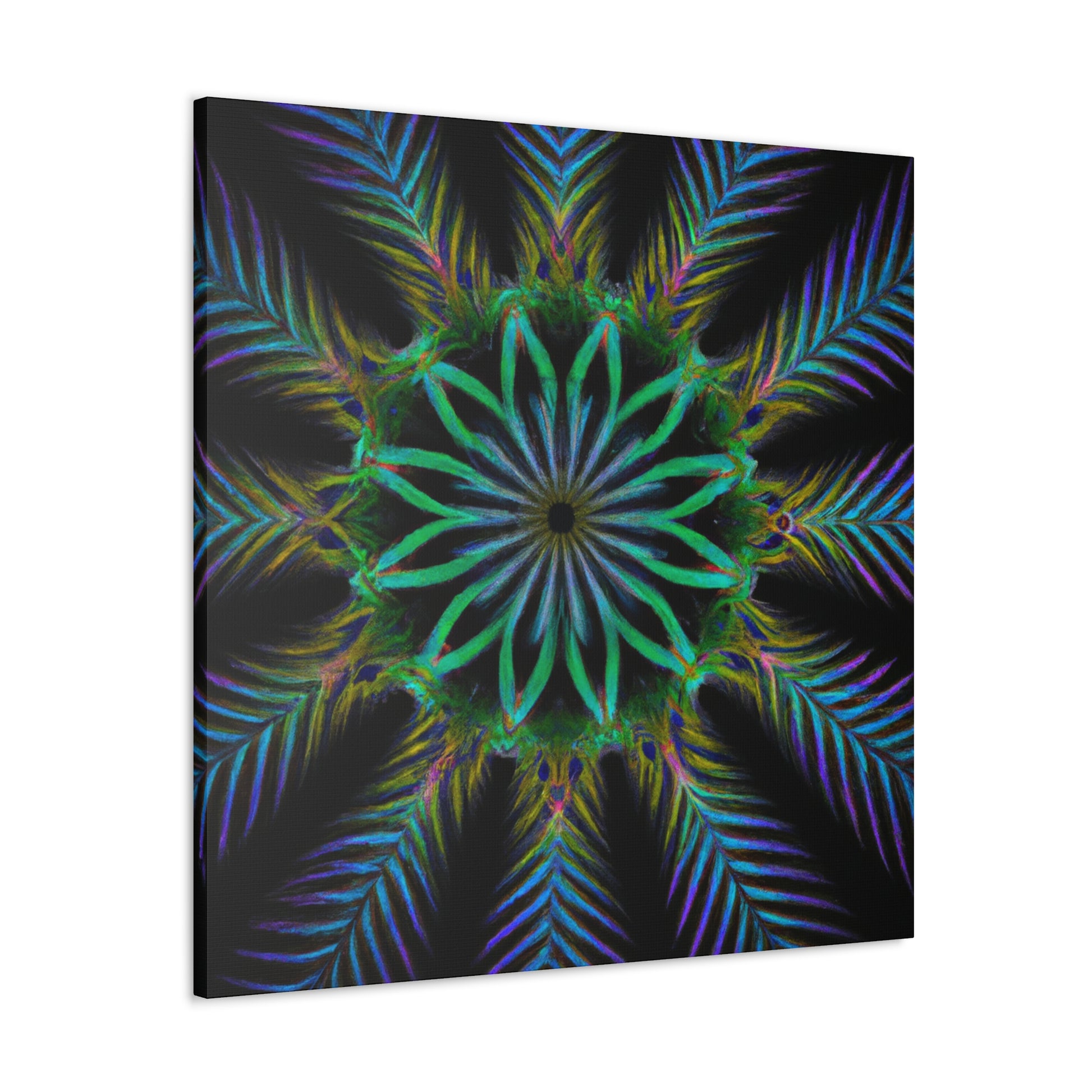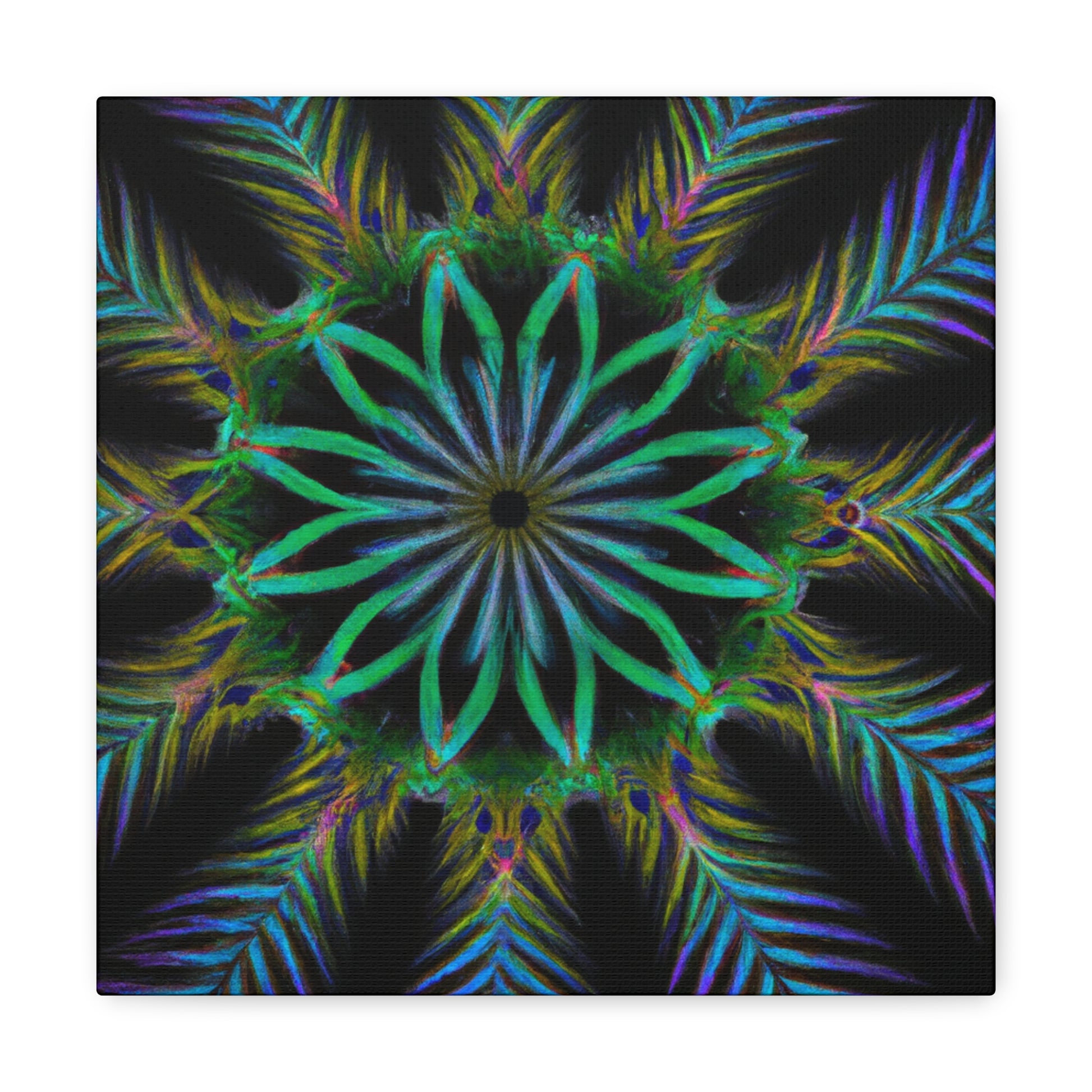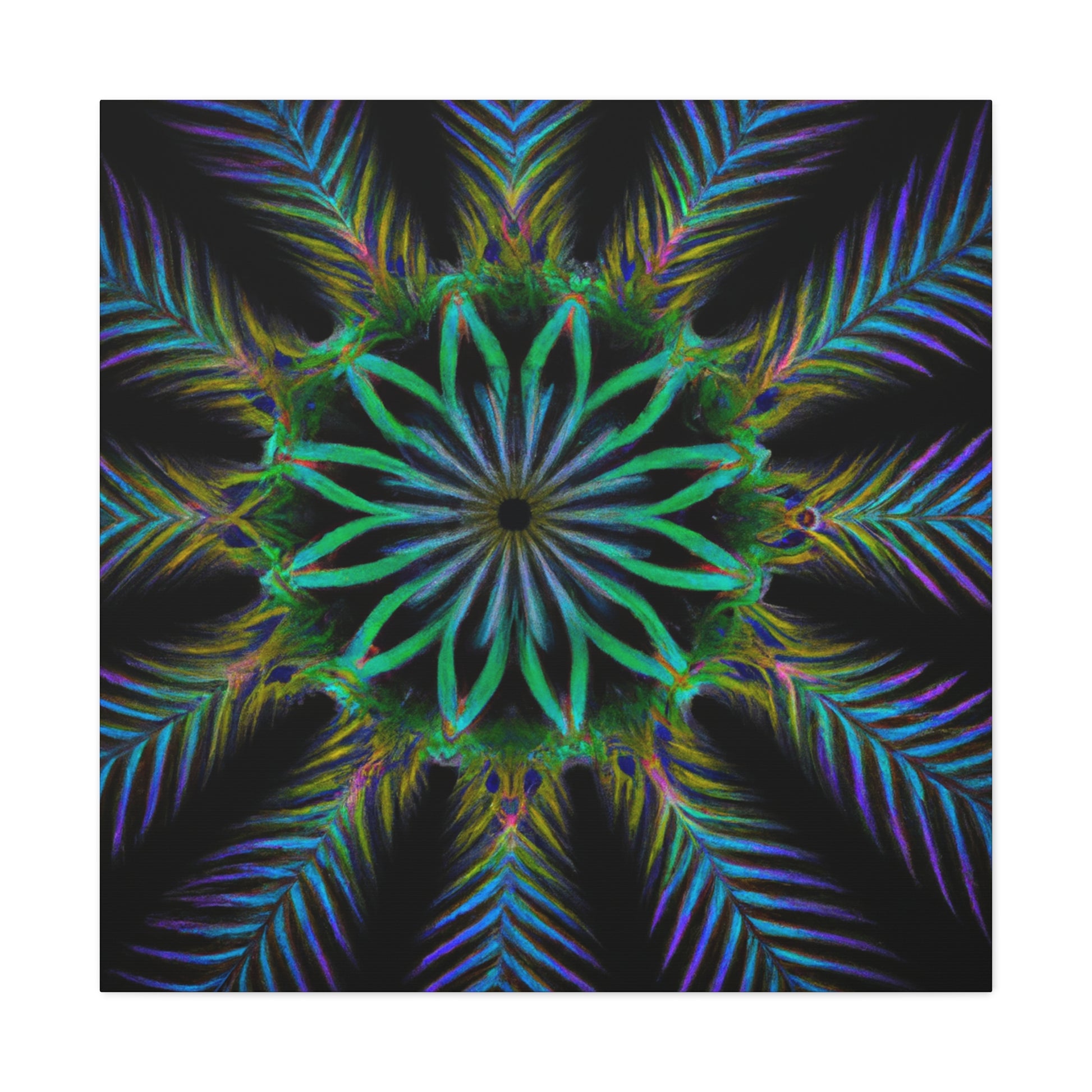 Bring life to any wall with this abstract Trippy Geometric Palm Leaves canvas! Vibrant colors, fractal, and 3D lines create an eye-catching kaleidoscope that will make any room stand out. Let your creative side run wild with this digital art piece. Add a unique touch to your home with this canvas. #abstractart #digitalart #kaleidoscope #palmleaves #vibrant #3Dlines #fractal #canvasart #canvas #geometricart #artwork #artlovers #artoftheday #abstractexpressionism #trippy #expressionism #decorideas #homedecor #interiordesign #abstractpainting #modernart #wallart #creative #colourful #interiordesigner