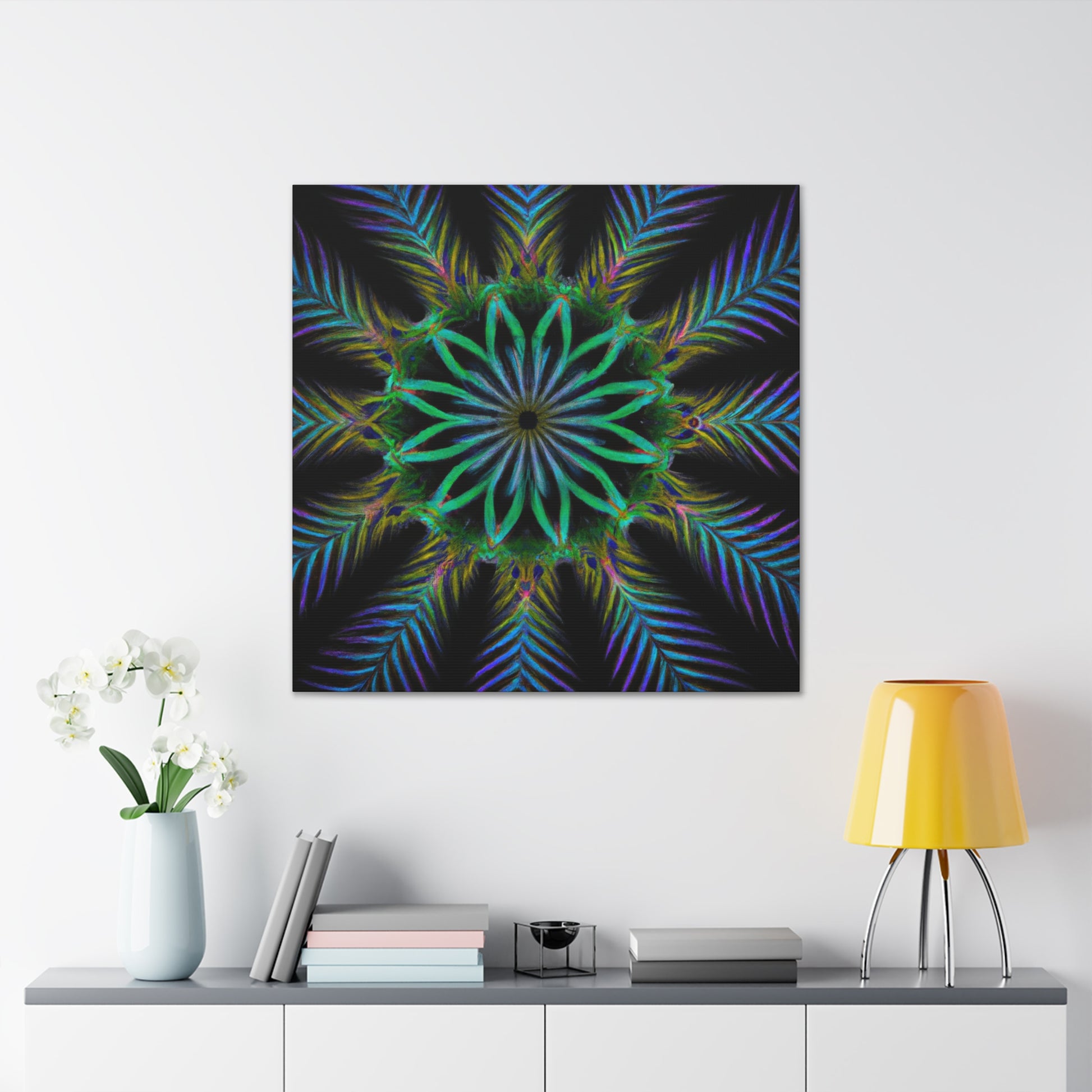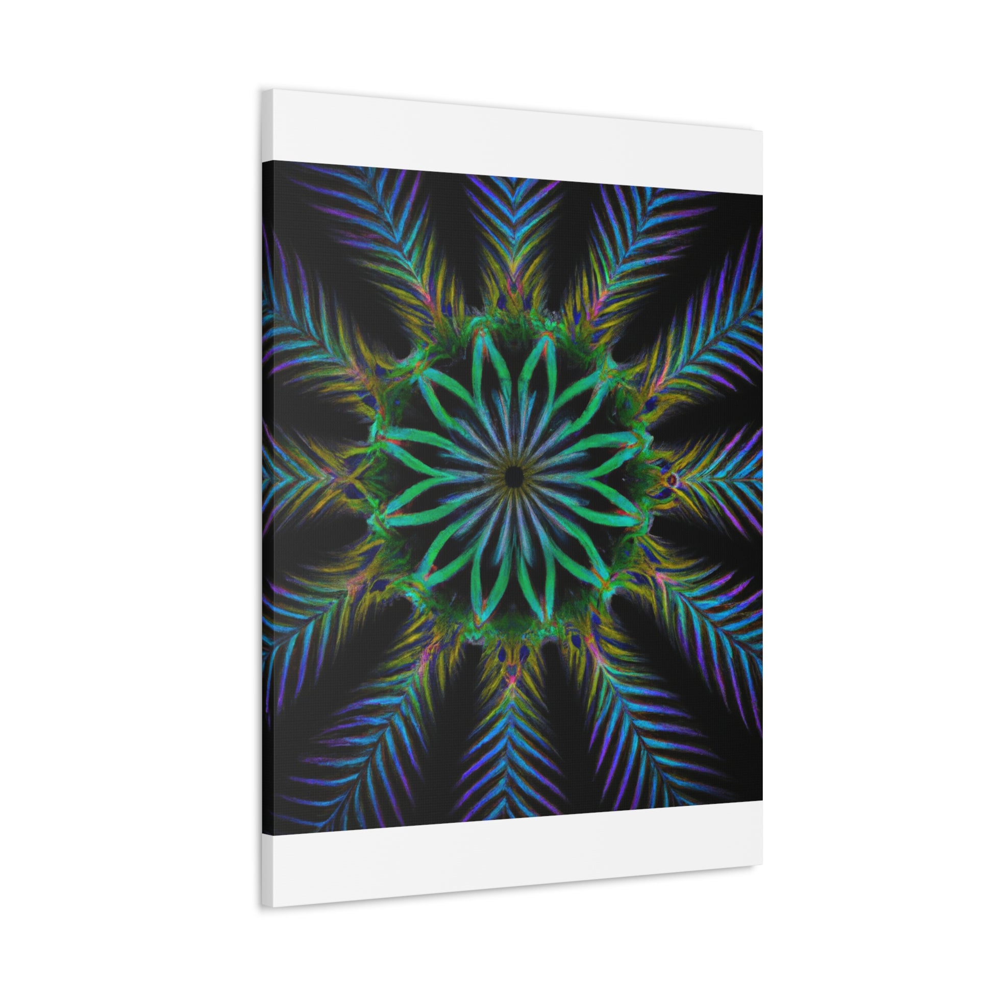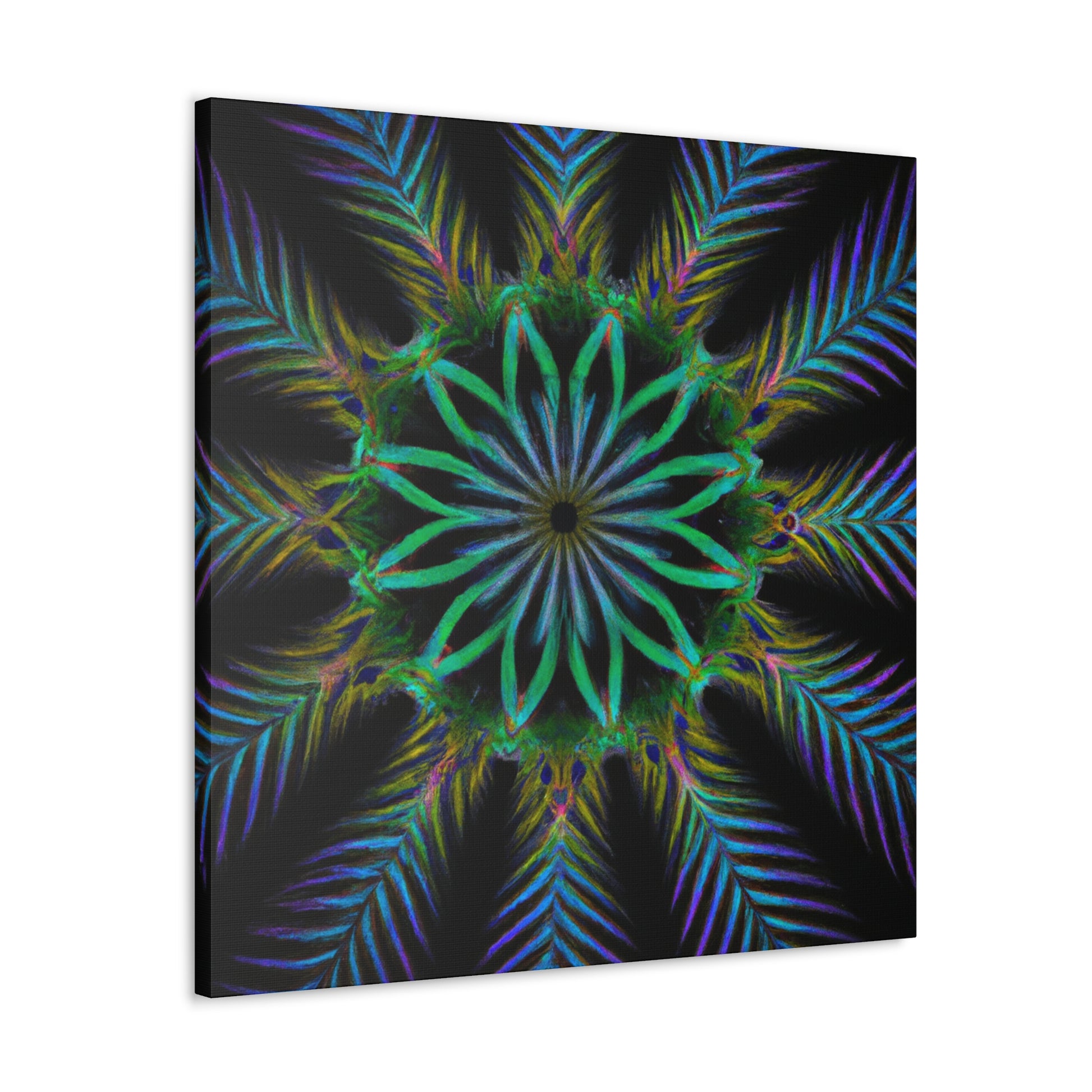 Bring life to any wall with this abstract Trippy Geometric Palm Leaves canvas! Vibrant colors, fractal, and 3D lines create an eye-catching kaleidoscope that will make any room stand out. Let your creative side run wild with this digital art piece. Add a unique touch to your home with this canvas. #abstractart #digitalart #kaleidoscope #palmleaves #vibrant #3Dlines #fractal #canvasart #canvas #geometricart #artwork #artlovers #artoftheday #abstractexpressionism #trippy #expressionism #decorideas #homedecor #interiordesign #abstractpainting #modernart #wallart #creative #colourful #interiordesigner