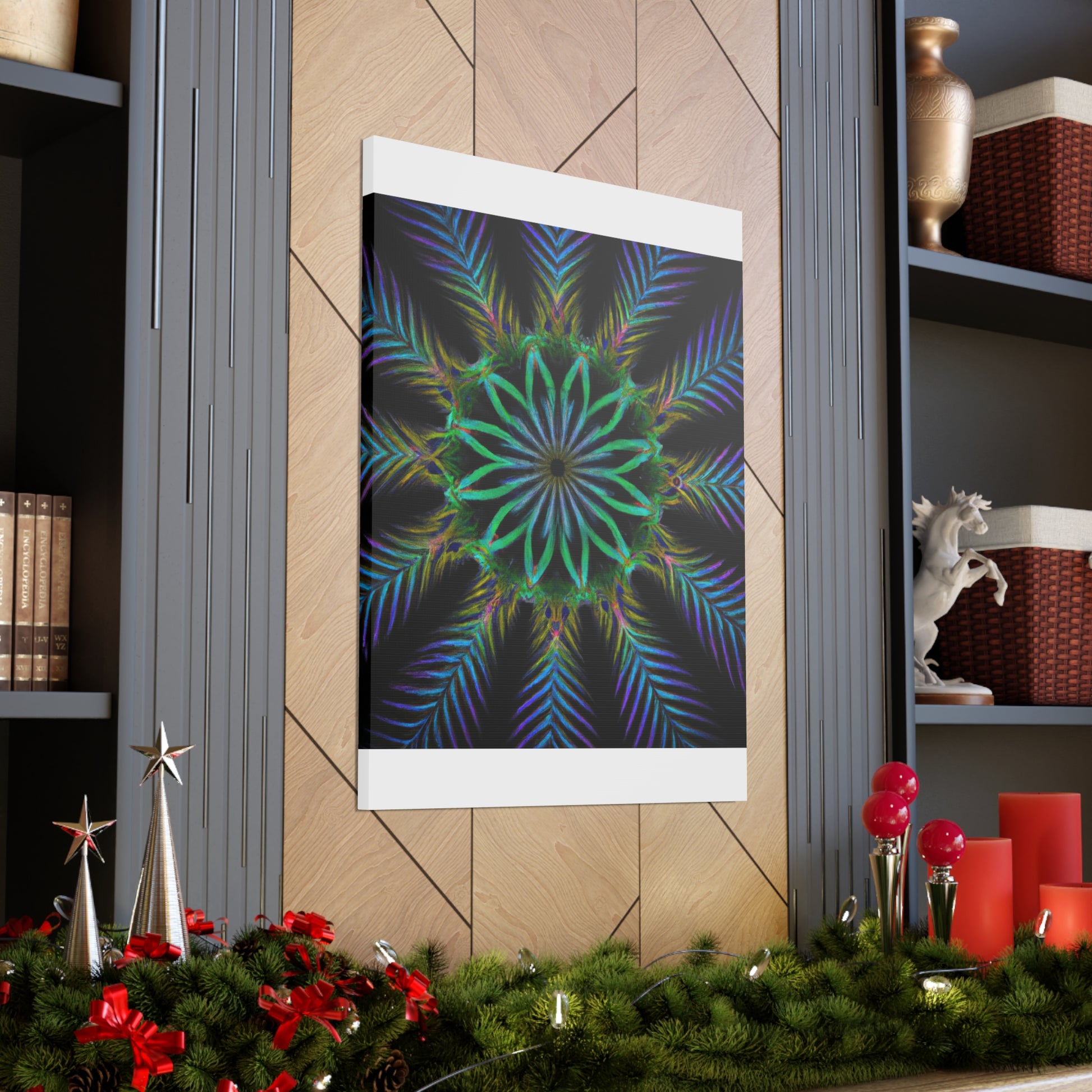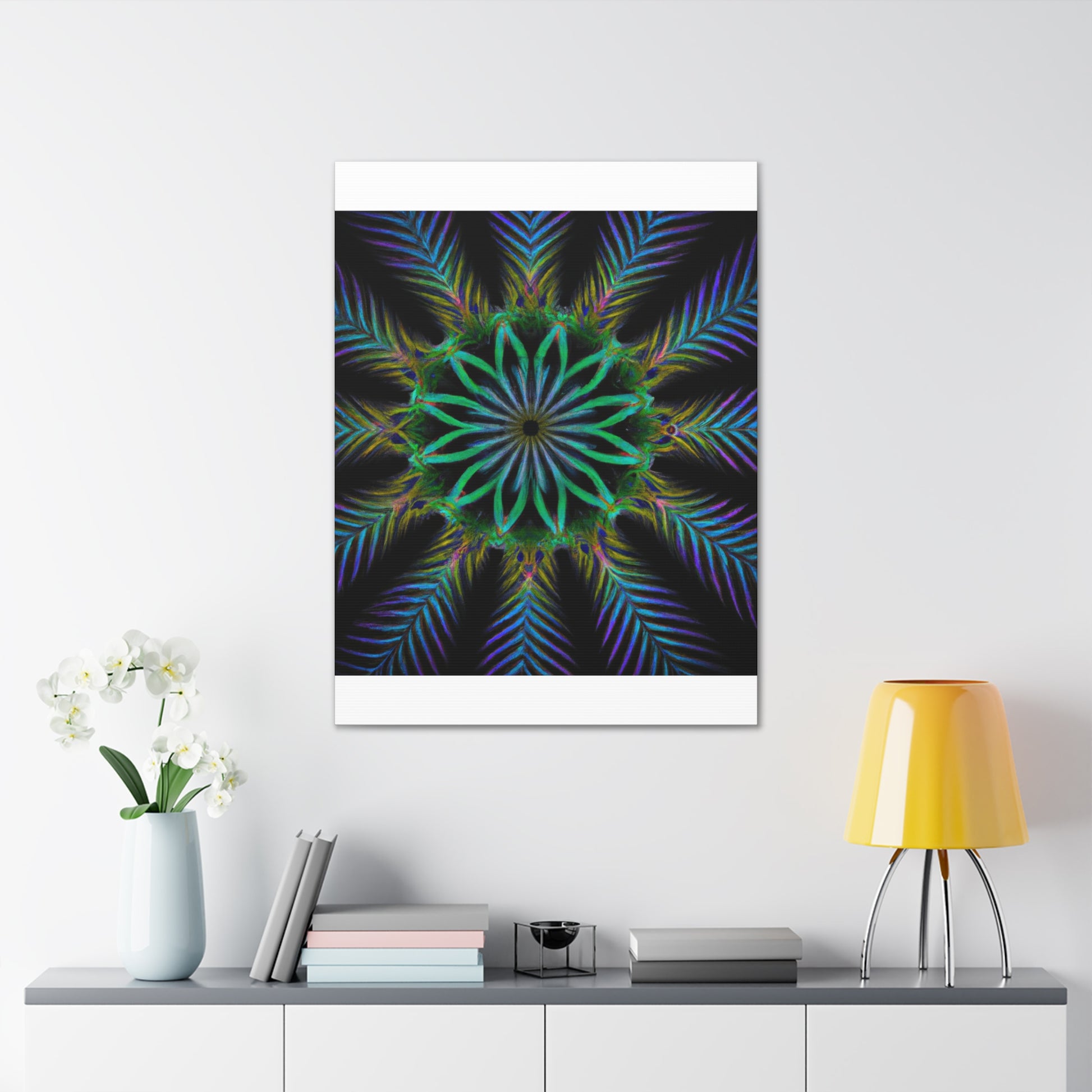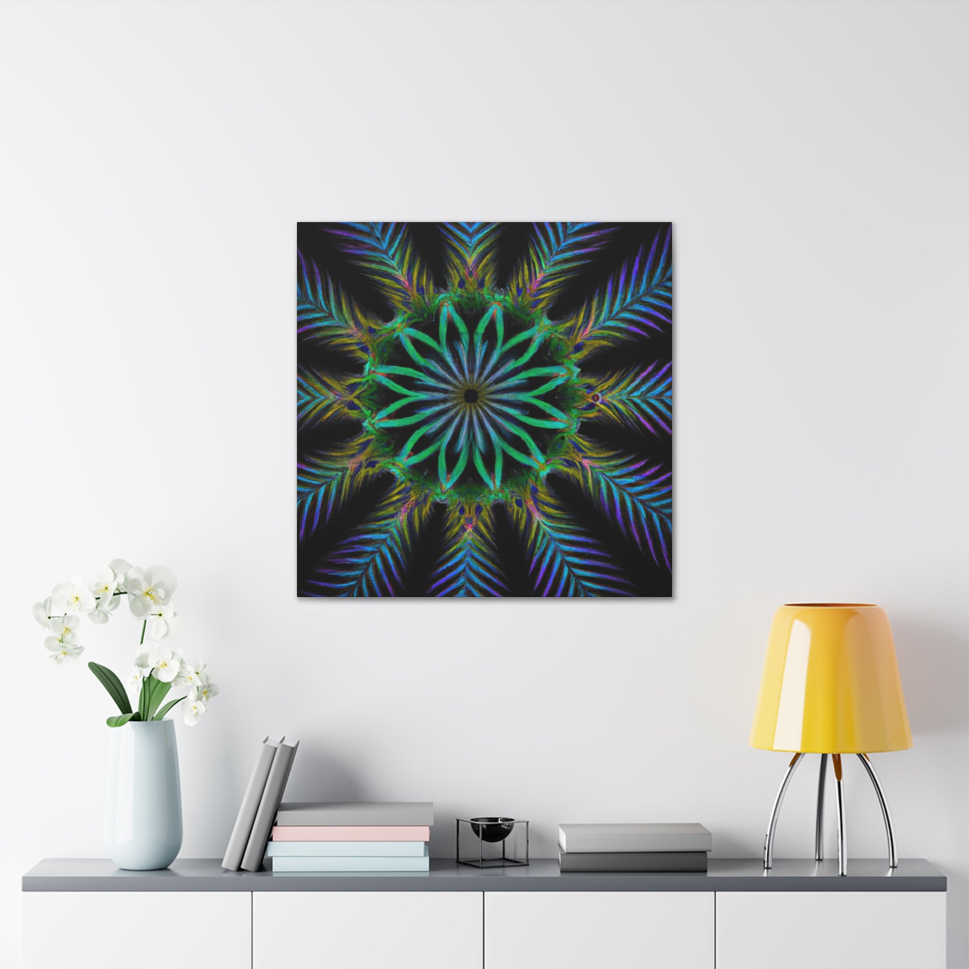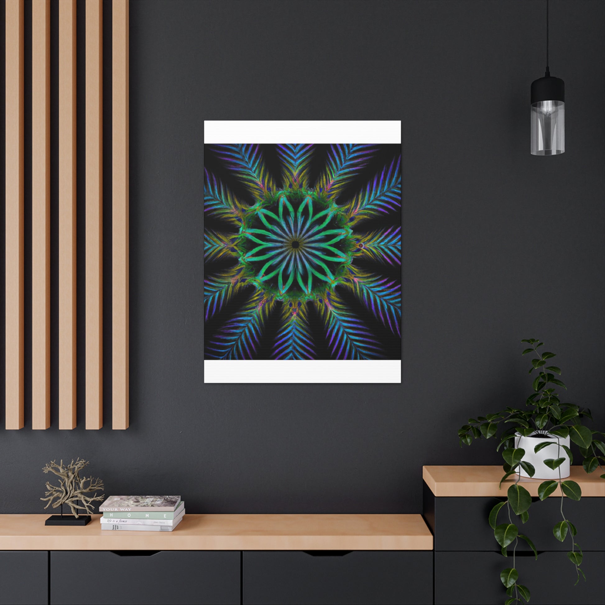 Bring life to any wall with this abstract Trippy Geometric Palm Leaves canvas! Vibrant colors, fractal, and 3D lines create an eye-catching kaleidoscope that will make any room stand out. Let your creative side run wild with this digital art piece. Add a unique touch to your home with this canvas. #abstractart #digitalart #kaleidoscope #palmleaves #vibrant #3Dlines #fractal #canvasart #canvas #geometricart #artwork #artlovers #artoftheday #abstractexpressionism #trippy #expressionism #decorideas #homedecor #interiordesign #abstractpainting #modernart #wallart #creative #colourful #interiordesigner