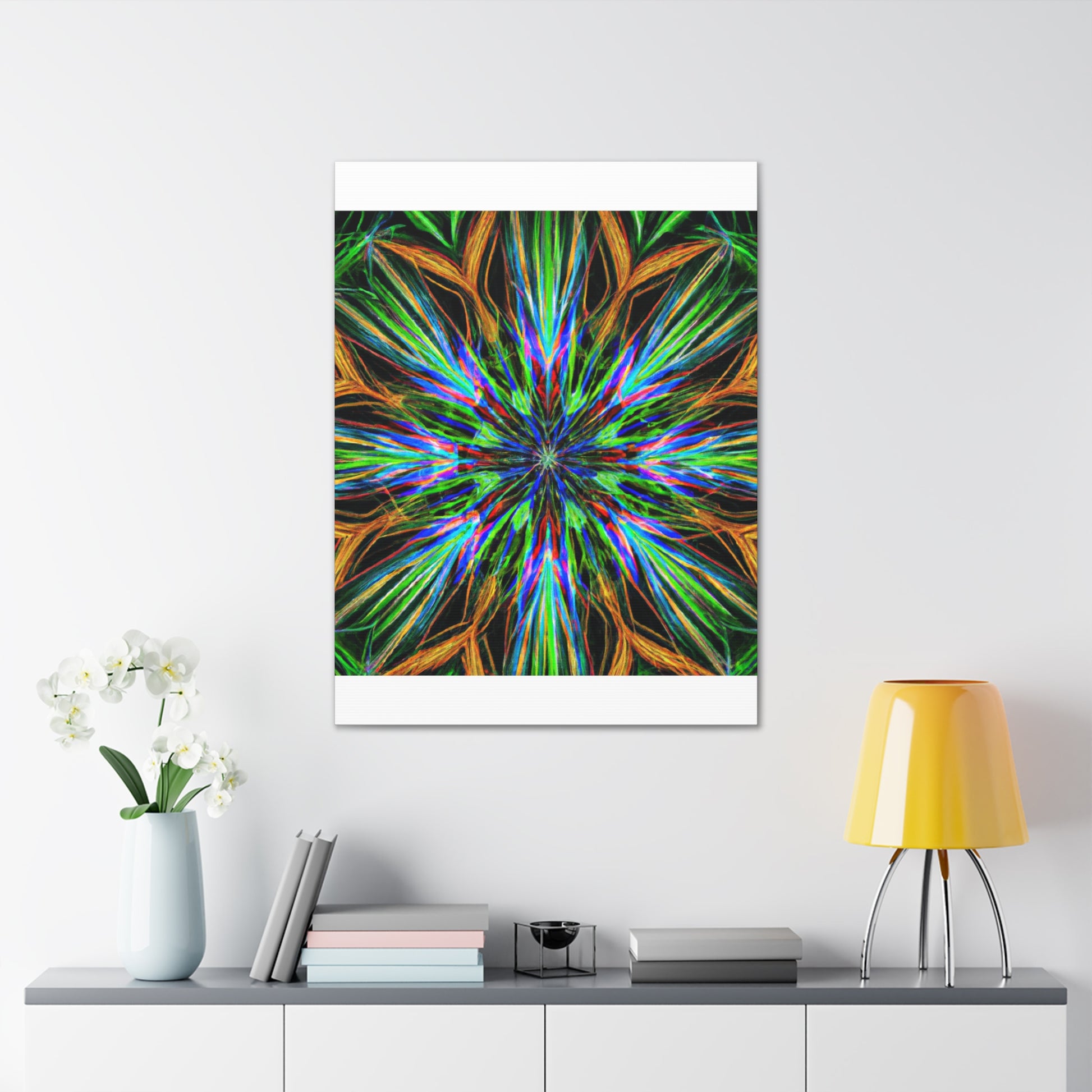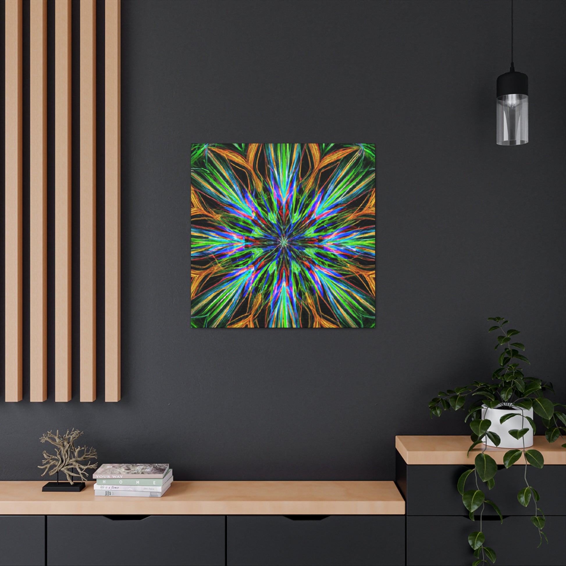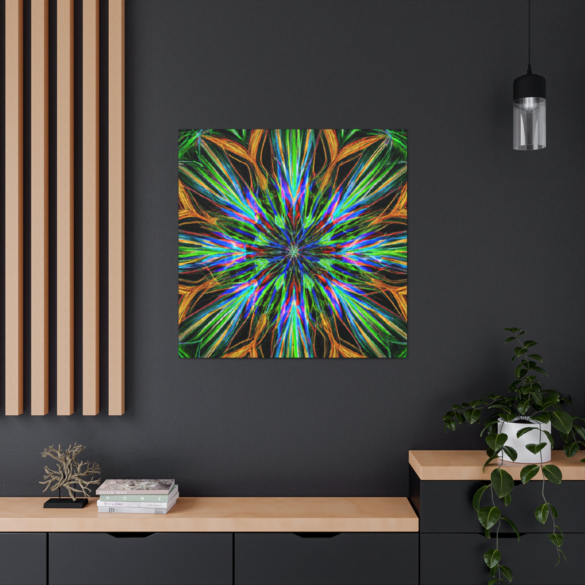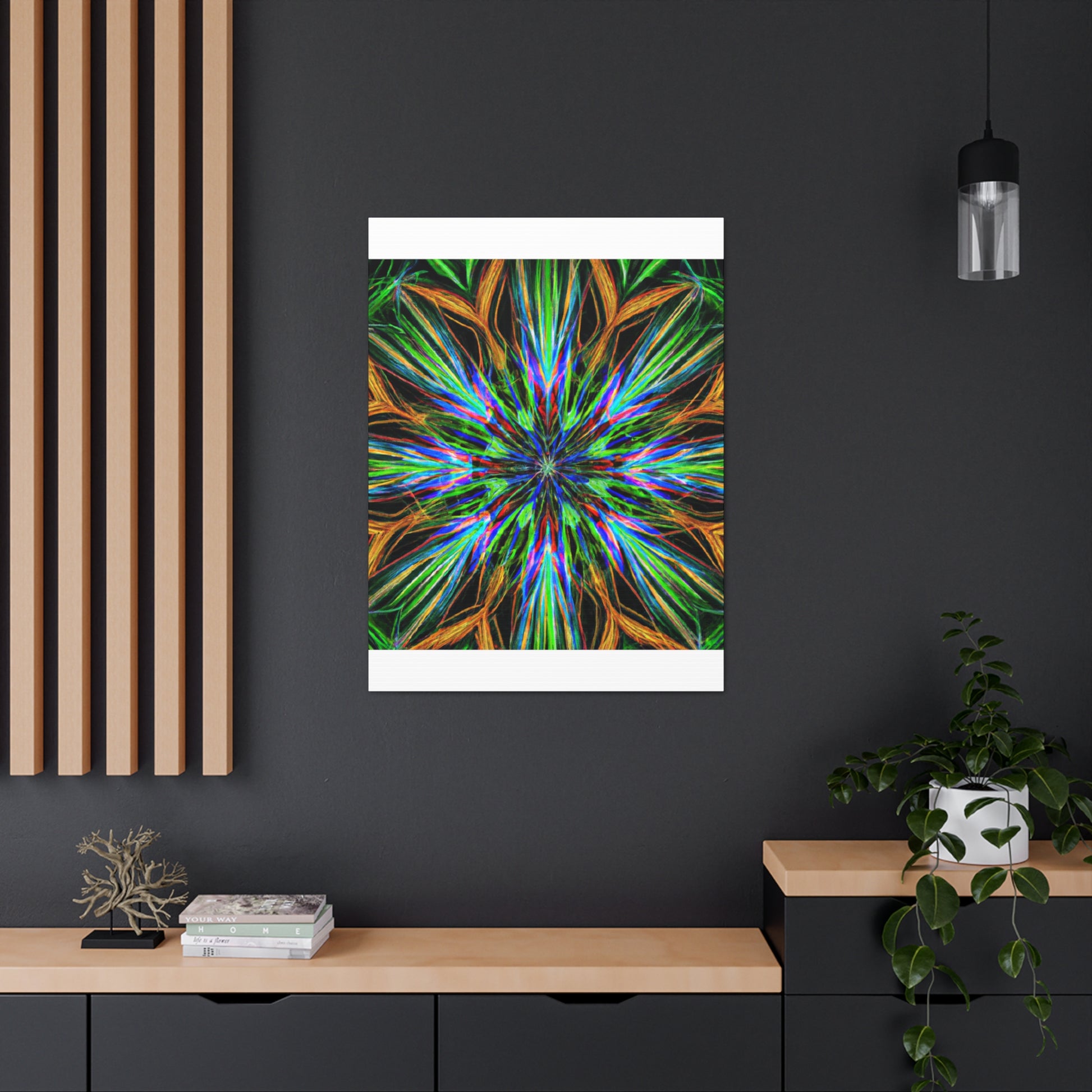 This bold, vividly colored canvas will draw all eyes in your home. With high contrast and dynamic patterns of trippy geometrical palm leaves, kaleidoscope, abstract, and digital art elements, this wall hanging will look great in any room. The combination of 3D lines, vibrant fractal shapes, and eye-popping colors make it the perfect statement piece for redefining your home decor. Create a special atmosphere with this unique, captivating art! #AbstractCanvas #VibrantColors #TrippyPalmLeaves #Kaleidoscope #3DLines #Fractal #DigitalArt #ArtworkDesign #CanvasPrint #WallHanging #PlantArt #GeometricDesign #HomeDecor #InteriorDesign #TrippyArt #AbstractGeo #statementPiece #Vibrance #ColorfulCanvas #DynamicDesign #KaleidoscopeDesign #BoldCanvas #EyePopping #GeometricPalmLeaves #AbstractArts #TrippyDesigns #FractalDesigns #GeometricArt #DynamicPrints #ArtHanging