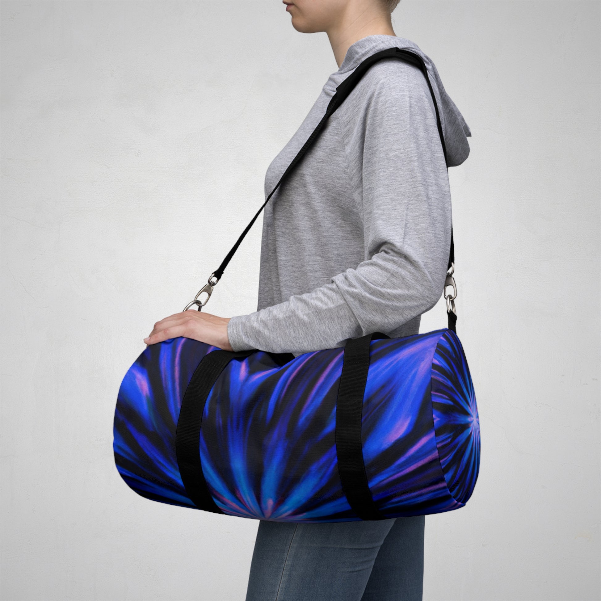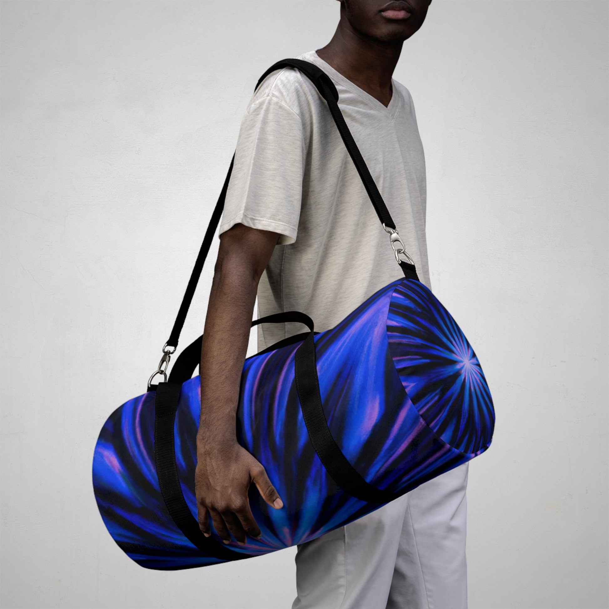 Be the star of your wardrobe with this dazzling duffle bag! Featuring trippy stars, kaleidoscope, abstract, digital art, and vibrant colors blended seamlessly onto 3D lines design. The vibrant hues of pink and blue create a timeless piece perfect for any and every occasion. Whether you're headed to the gym or running errands, you'll always stand out with style wherever you go. #dufflebag #trippydesign #kaleidoscope #abstractart #digitalart #vibrantcolors #3Dlines #style #fashion #gymbag #travelbag #multifunctional #giftidea #uniquedesign #boldcolors #versatile #functional #onpoint #freshstyle #trendy #linearpatterns #durable #creative #funky #trendsetter #colorful #baggoals #andmore