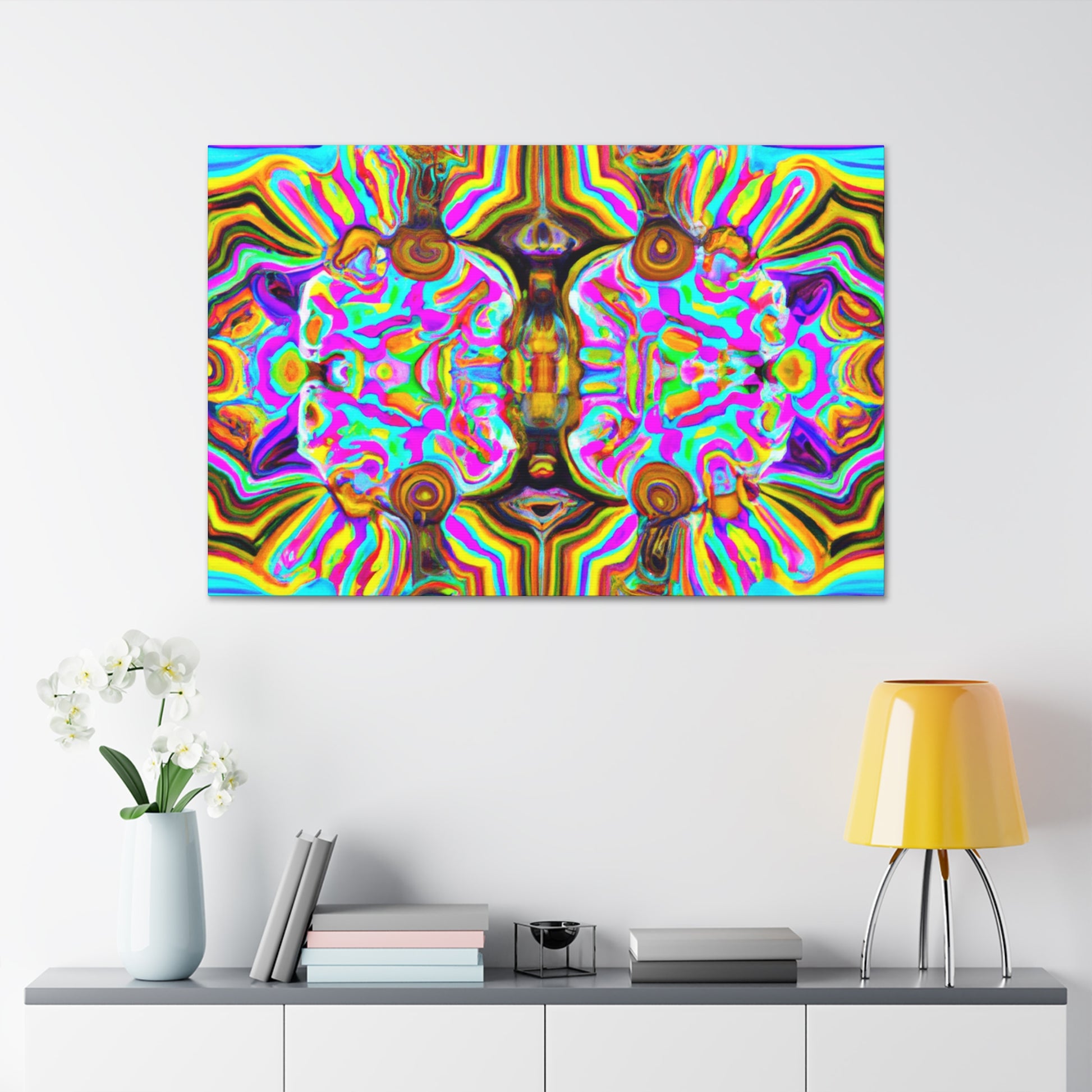 This abstract art canvas is a vivid, captivating portrait of wild and vibrant colors alongside impressive 3D lines. Digital trippy mushrooms fill the kaleidoscopic space, punctuated by undulating lines and hypnotic color patterns. Lose yourself in this mesmerizing scene and add a vibrancy to your space. #abstract #digitalart #acrylicpainting #canvas #vibrant #mushrooms #trippy #kaleidoscope #3D #lines #fresh