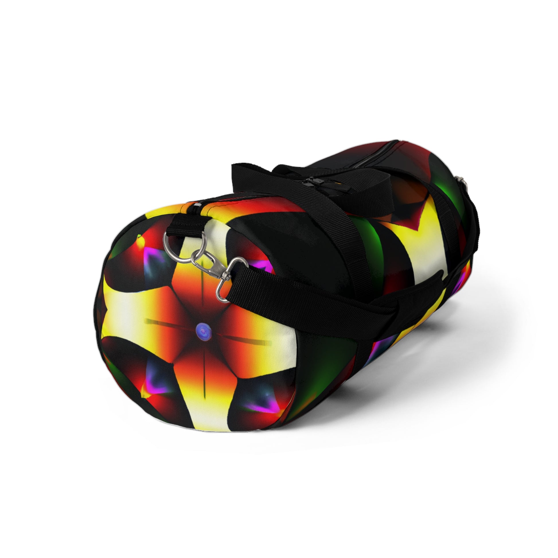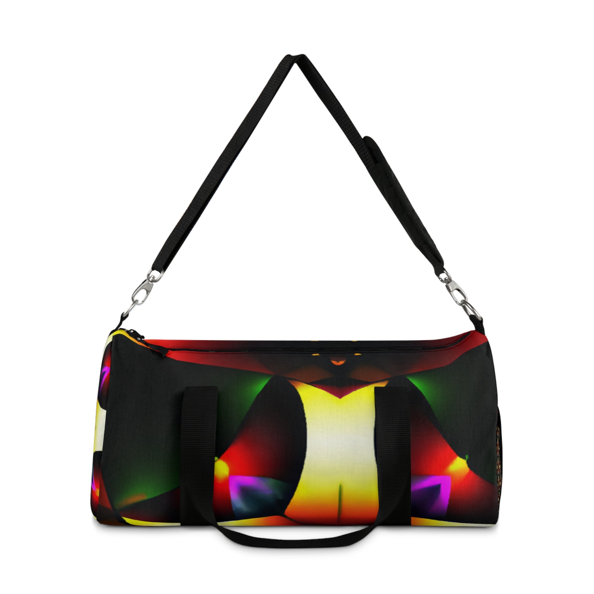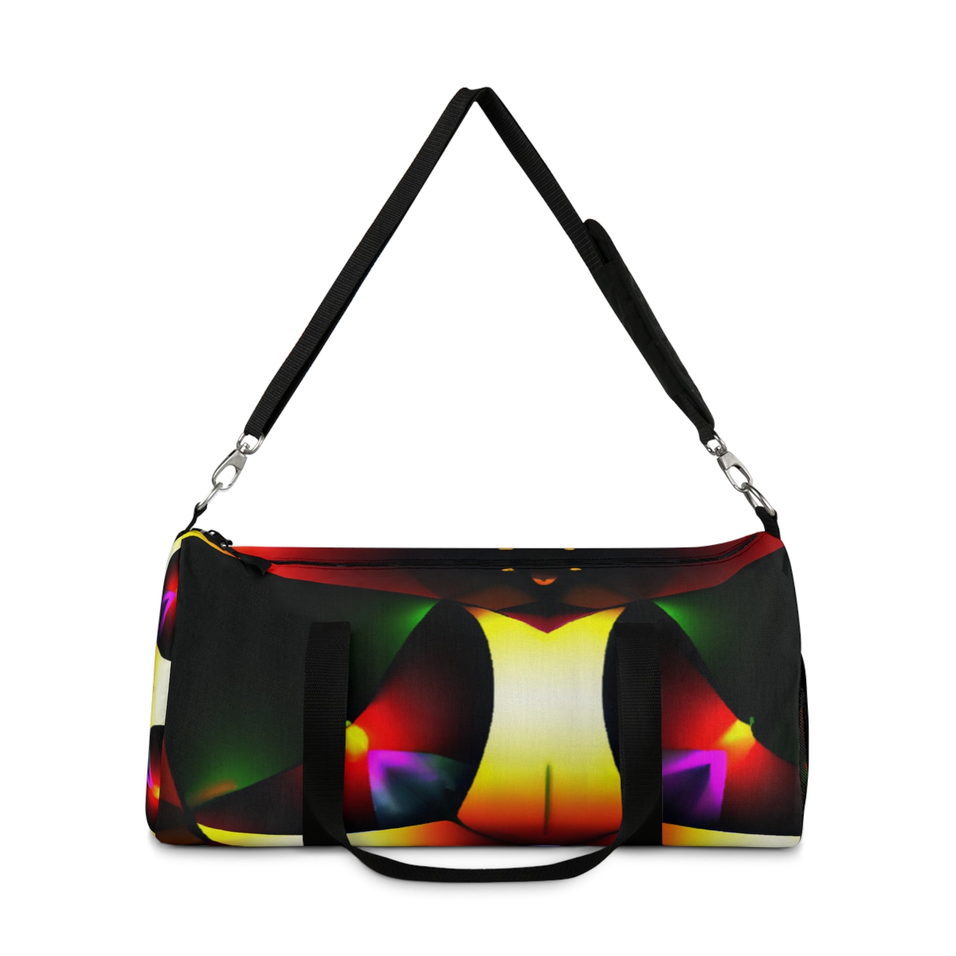 This eye-catching duffle bag is perfect for day to day trips and offers plenty of storage and durability. Our Trippy Stars design combines kaleidoscope, abstract, digital art, and vibrant colors to fuel your creativity. With its bold 3D lines and modern patterns, stand out from the crowd while you stand out in style.