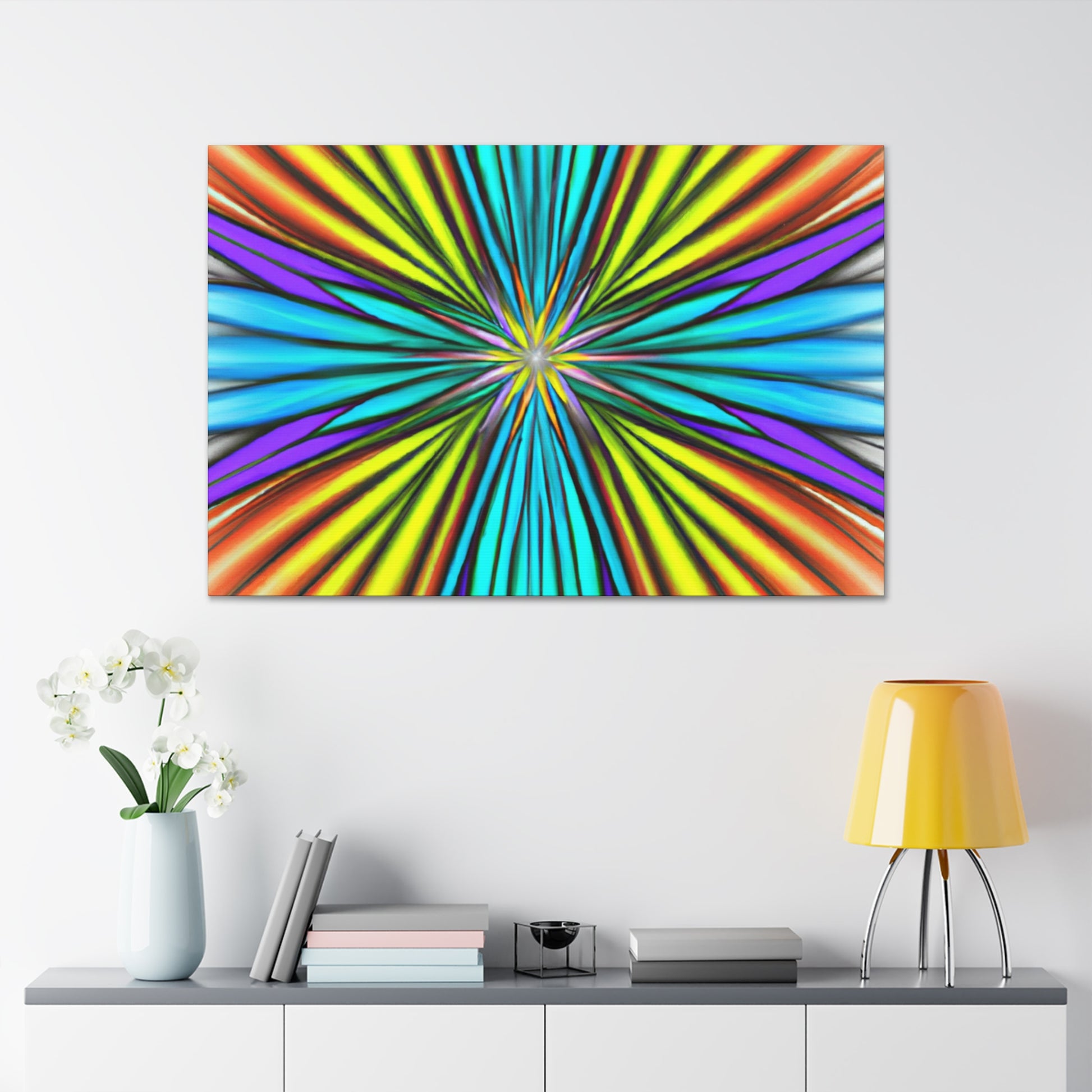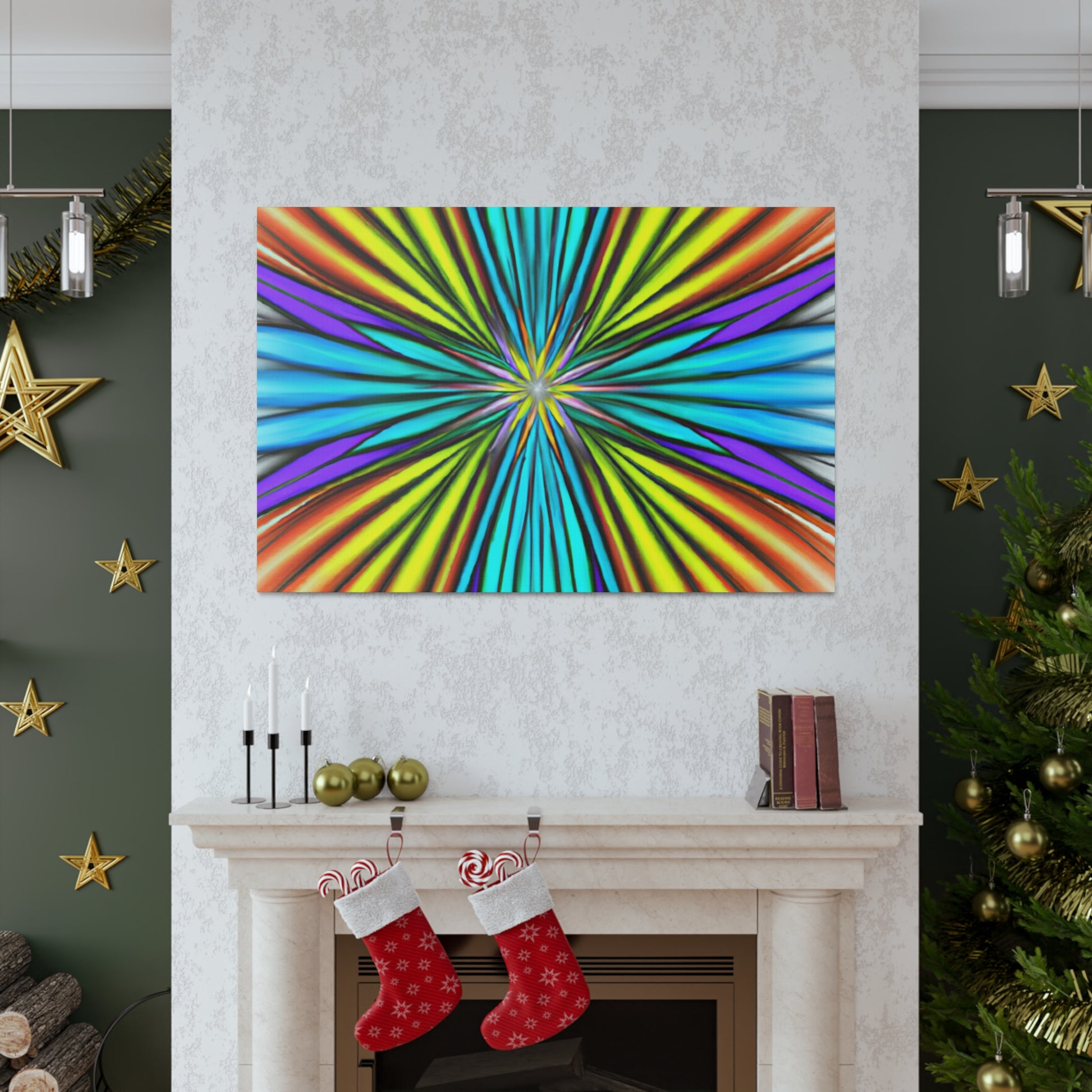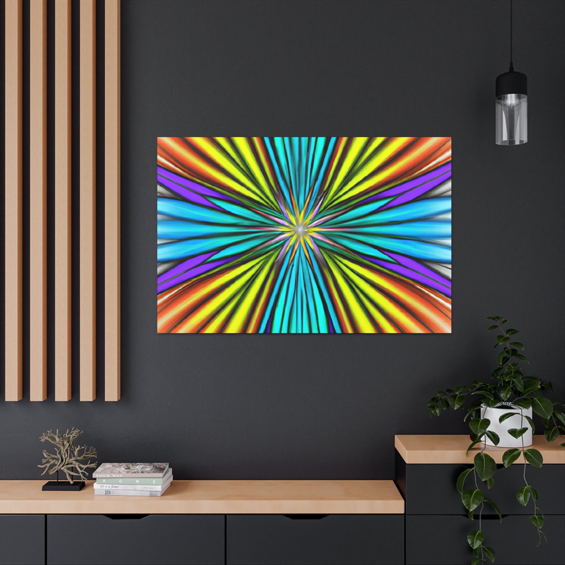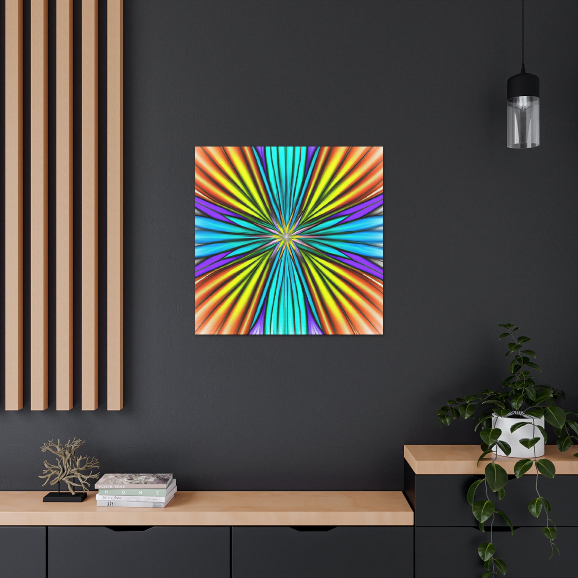 Crisp and vibrant colors make this Digital Art Canvas a stand out piece! This vibrant and unique design features abstract, kaleidoscope, 3D lines, Trippy geometric palm leaves, fractal and more. Let this vibrant canvas make a statement in your home and dive straight into mesmerizing shapes and colors. #geometricart #digitalart #3D #palmleaves #abstract #kaleidoscope #trippy #colors #fractal #art #vibrant