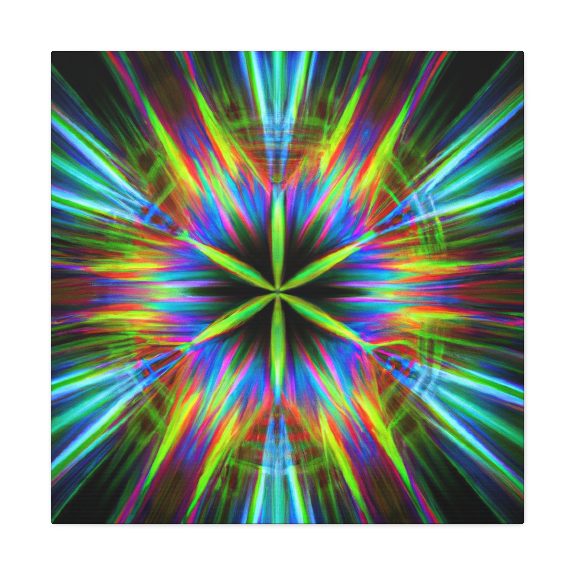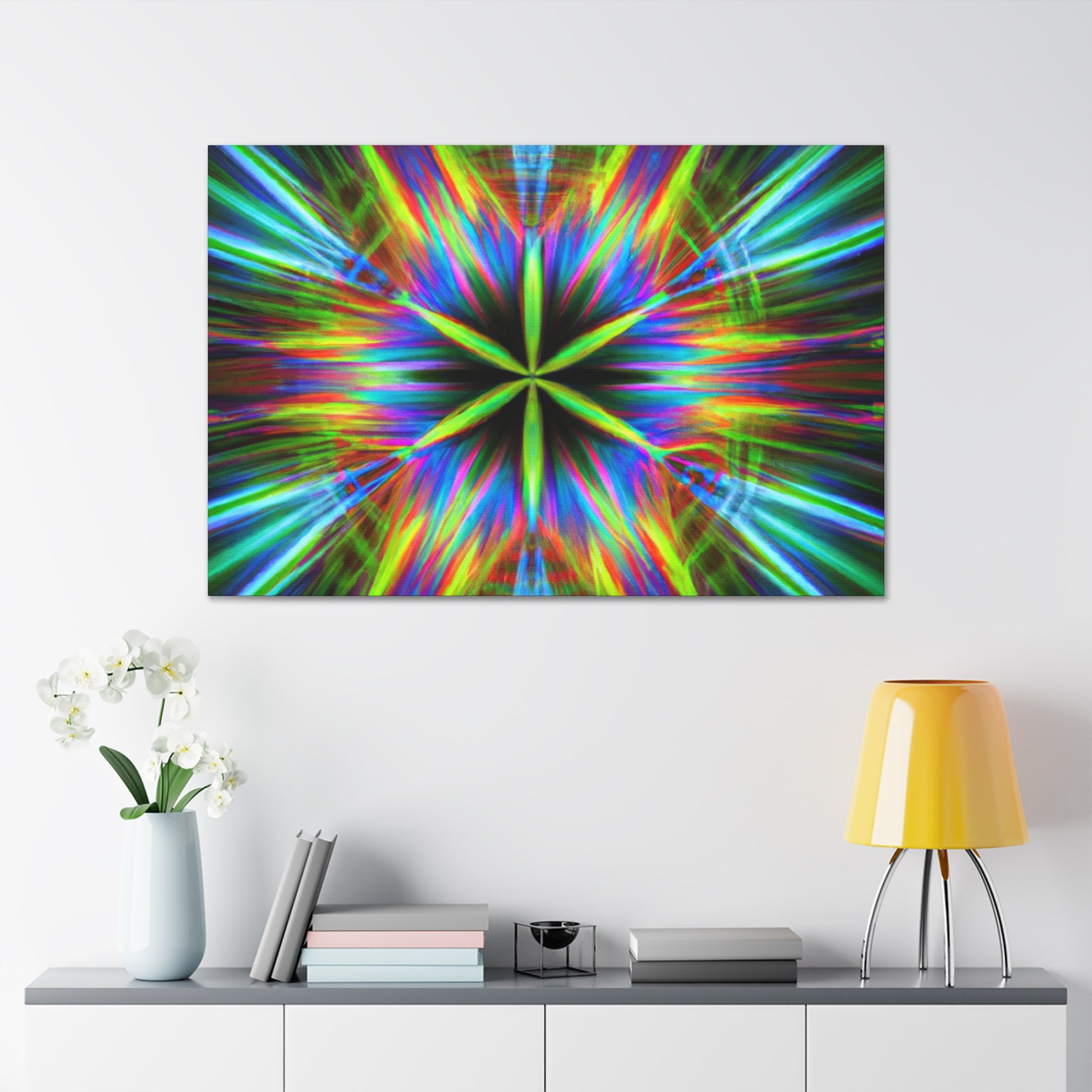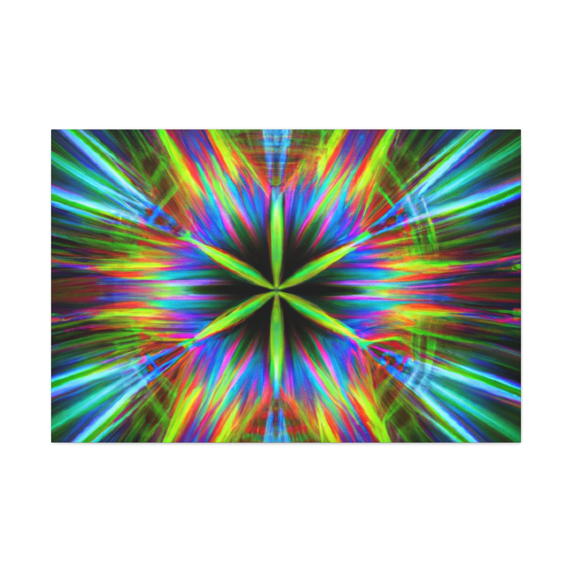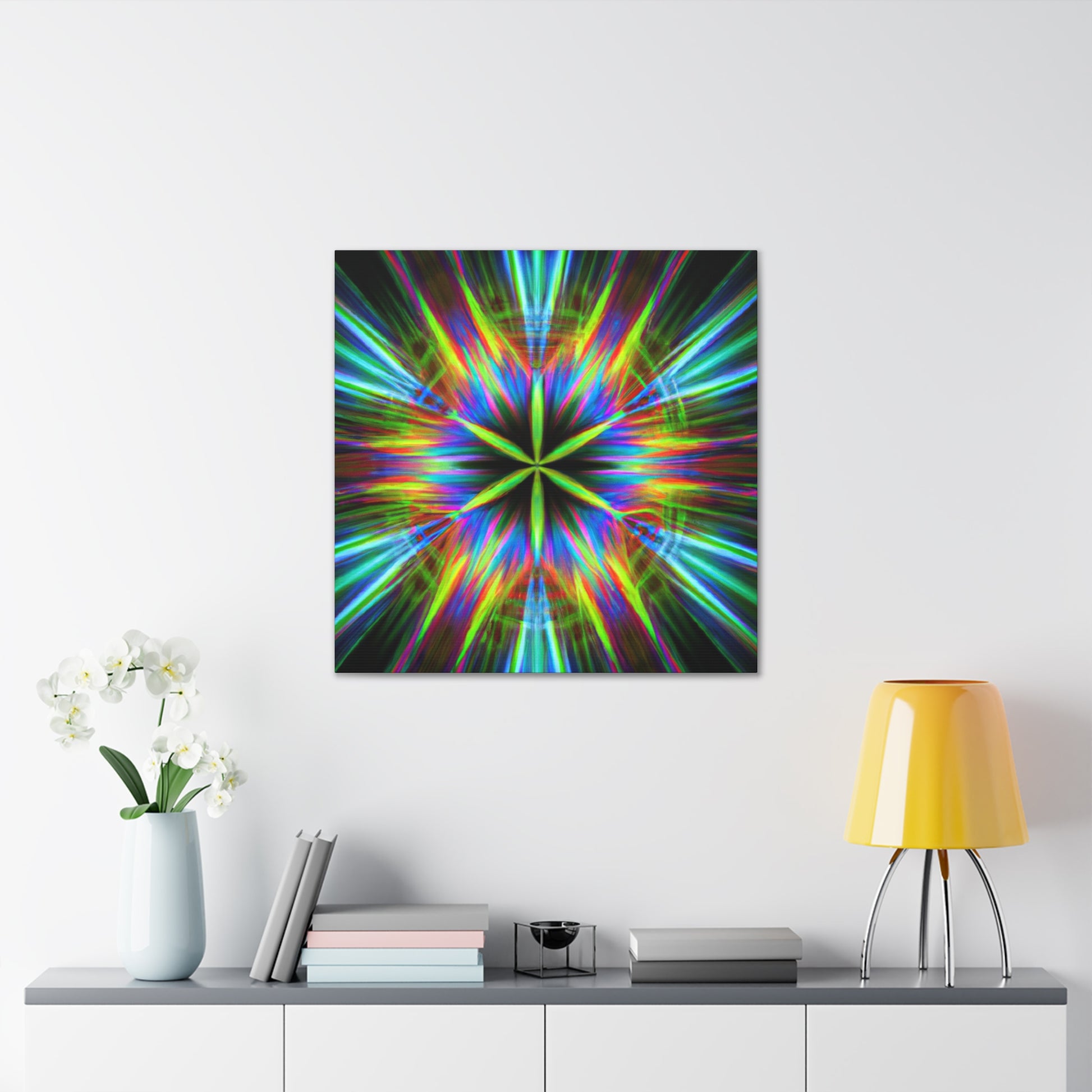 This abstract canvas piece features an eye-catching array of vibrant colors, 3D lines, hypnagogic kaleidoscope effect, and futuristic fractal design using trippy geometric palm leaves. Be mesmerized by this modern, digitally produced art, perfect for decorating any room or office with a standout style. #trippygeometric #palmleaves #kaleidoscope #abstractart #digitallyproduced #vibrantcolors #3Dlines #fractal #modernart #abstractcanvas #digitalart