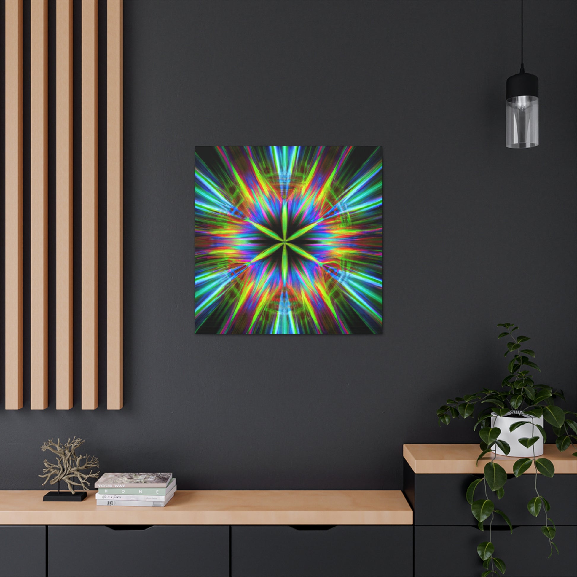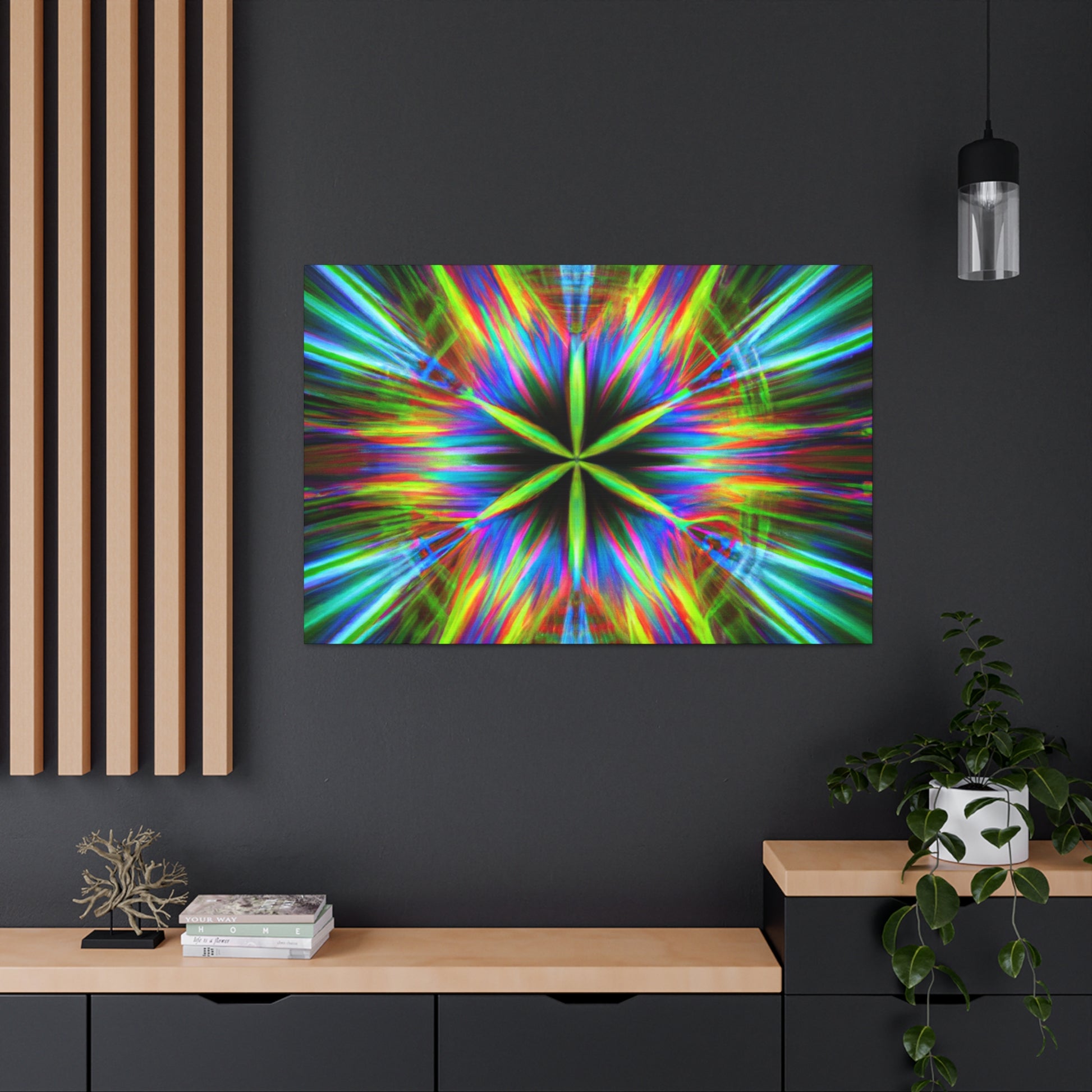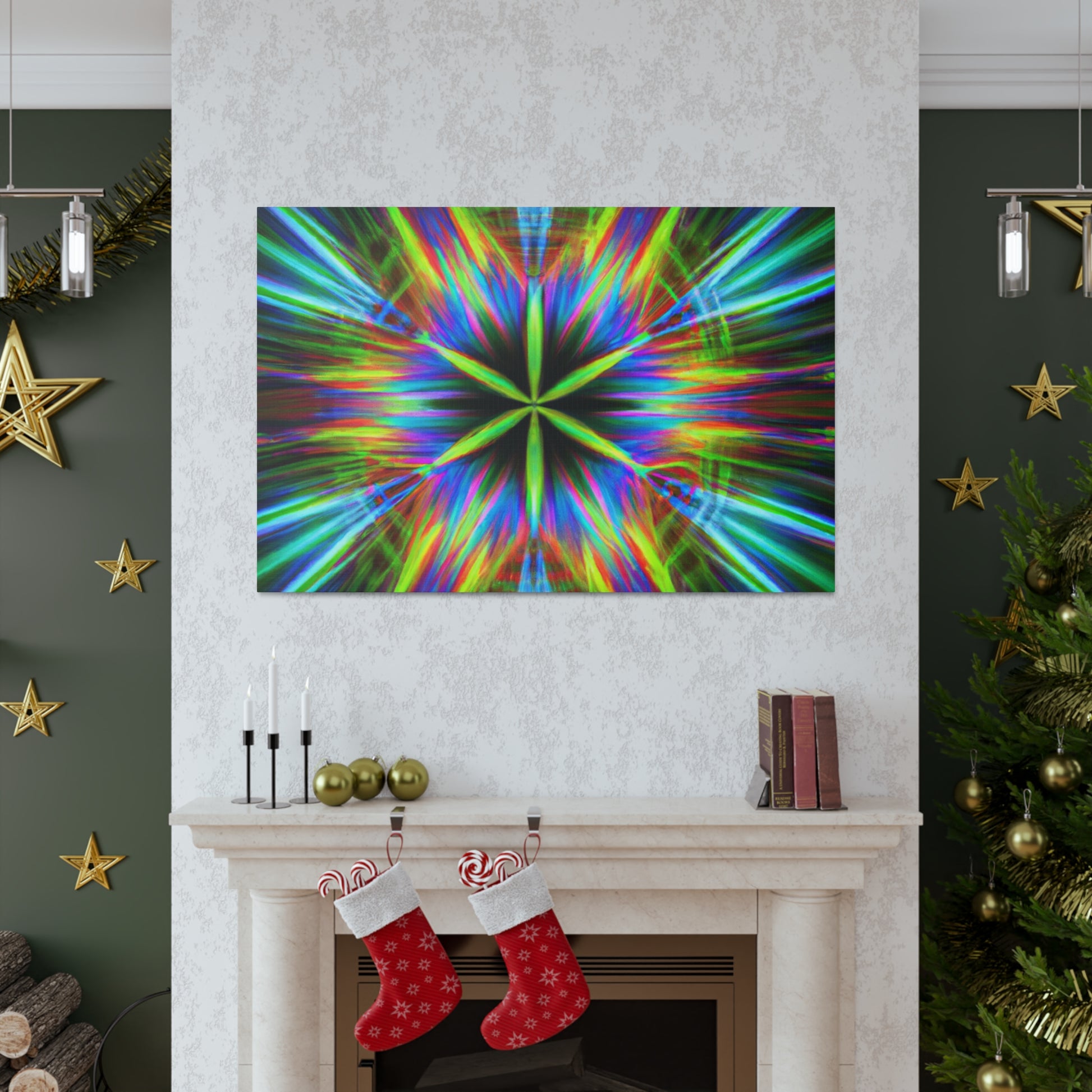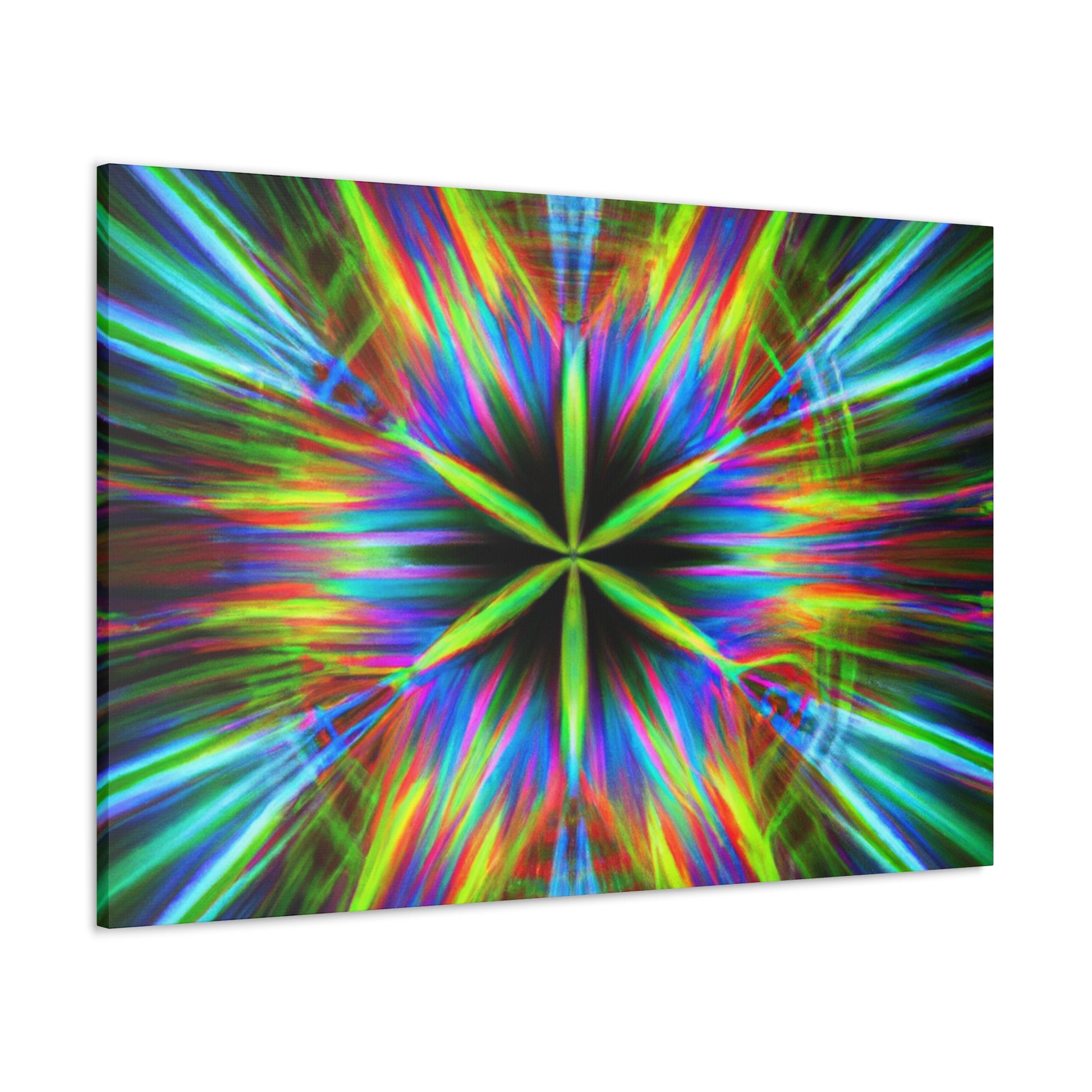 This abstract canvas piece features an eye-catching array of vibrant colors, 3D lines, hypnagogic kaleidoscope effect, and futuristic fractal design using trippy geometric palm leaves. Be mesmerized by this modern, digitally produced art, perfect for decorating any room or office with a standout style. #trippygeometric #palmleaves #kaleidoscope #abstractart #digitallyproduced #vibrantcolors #3Dlines #fractal #modernart #abstractcanvas #digitalart