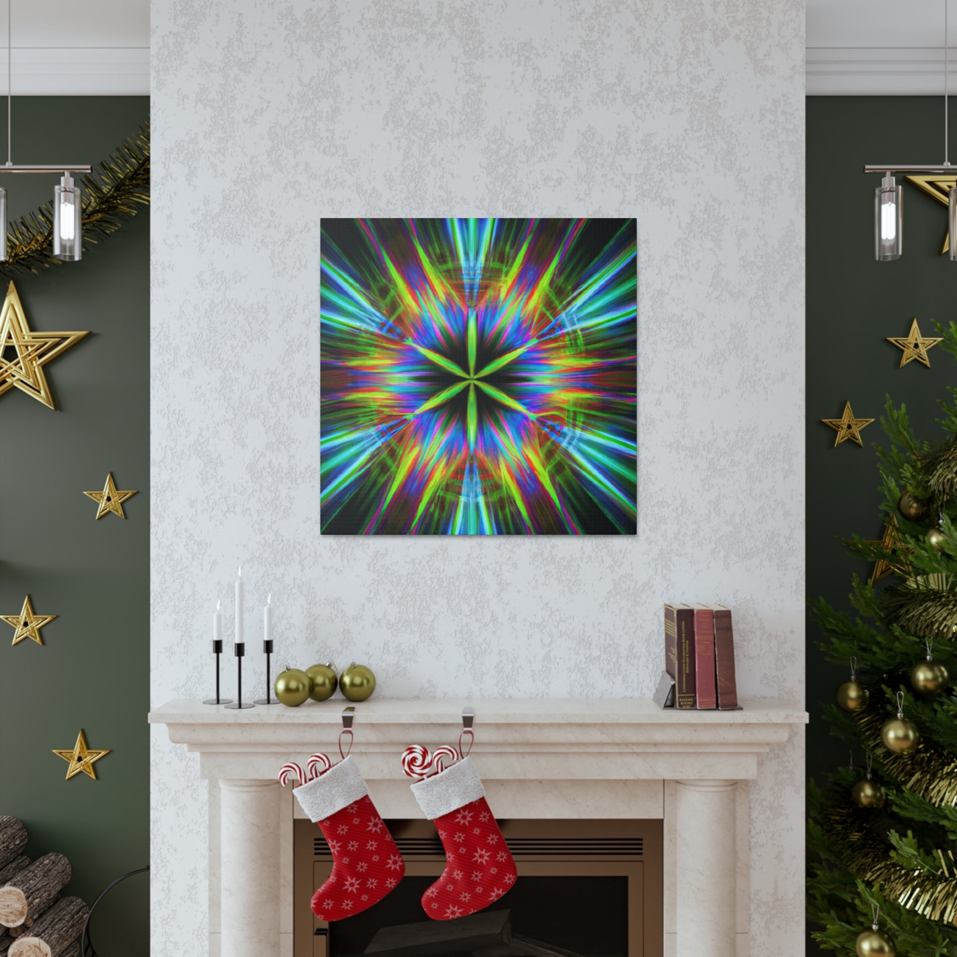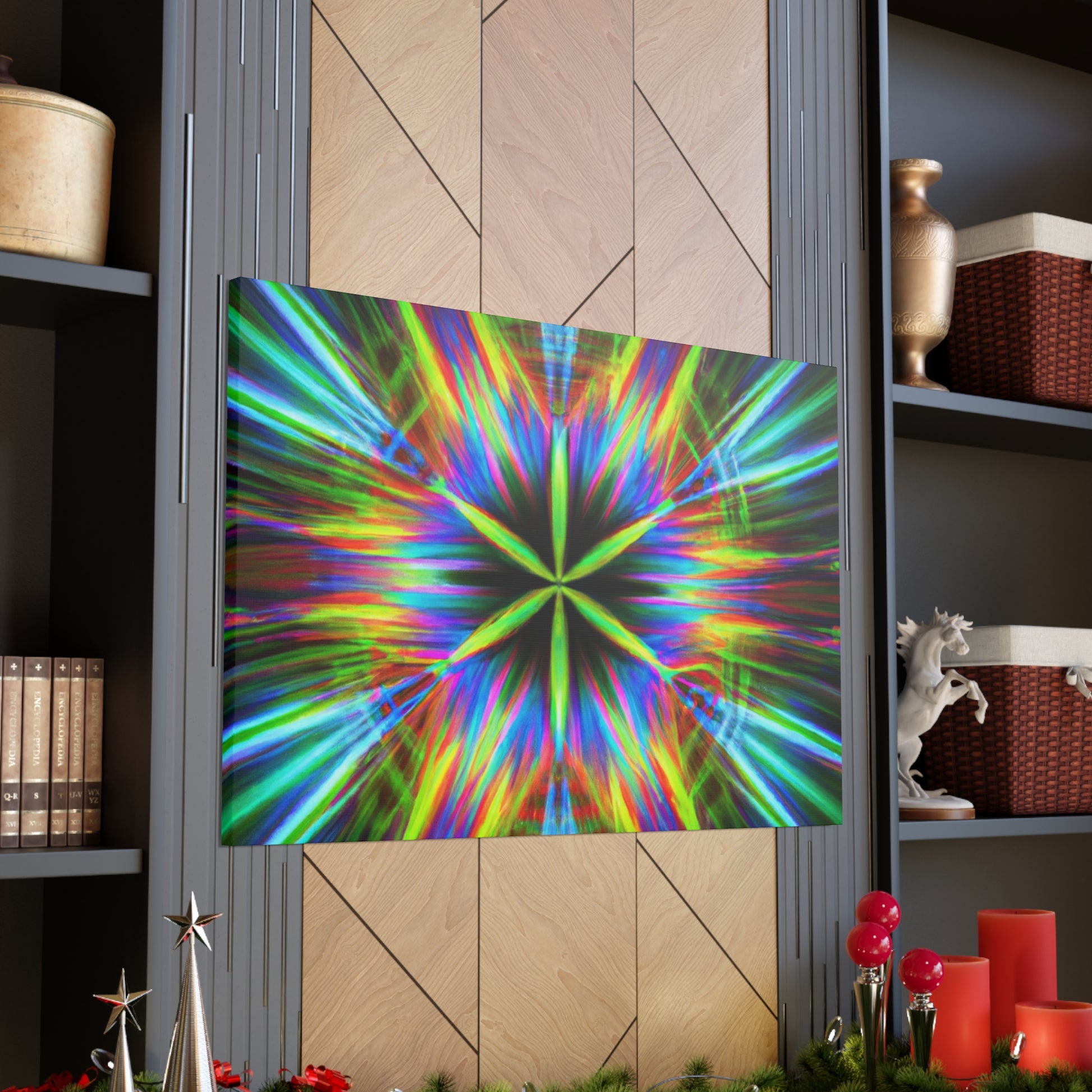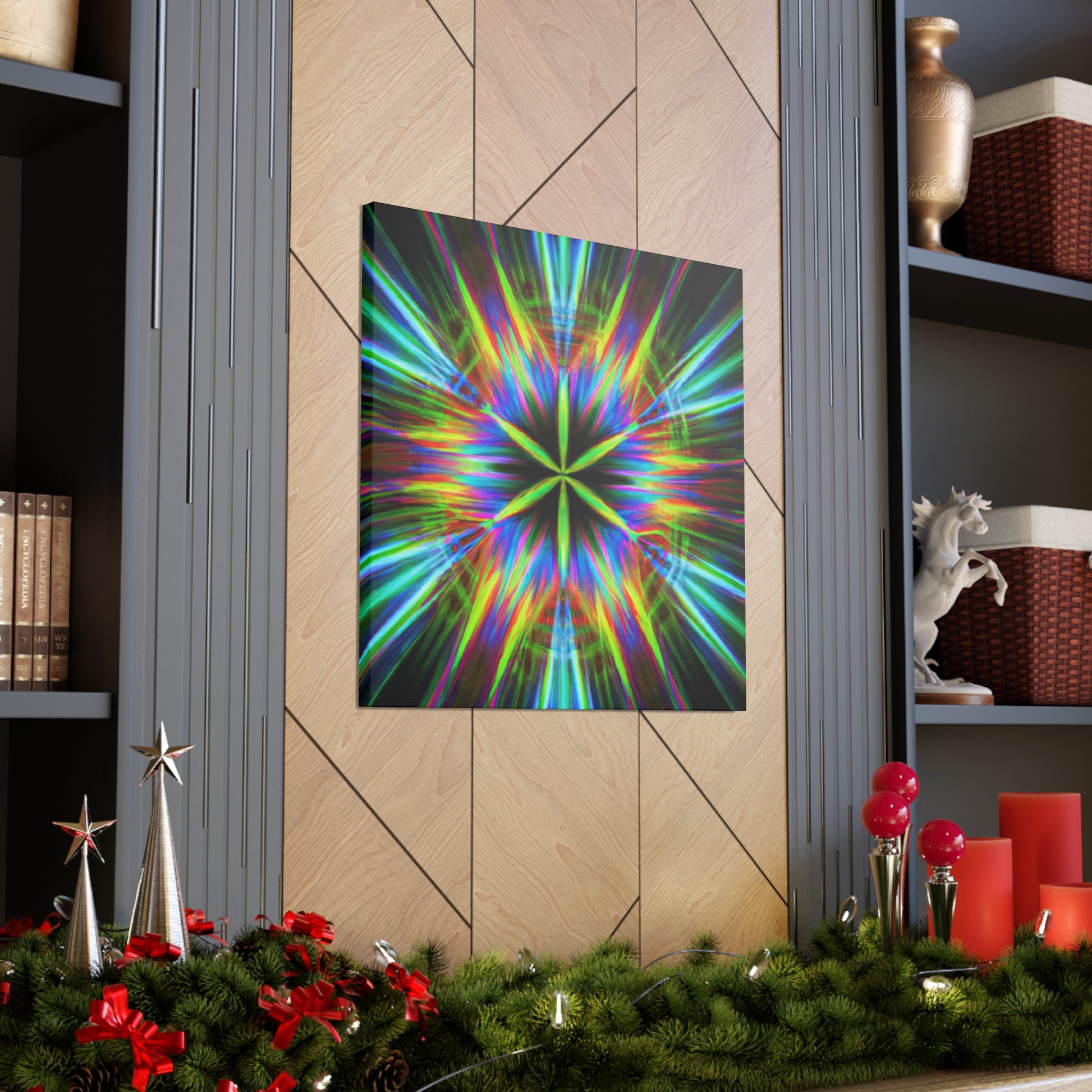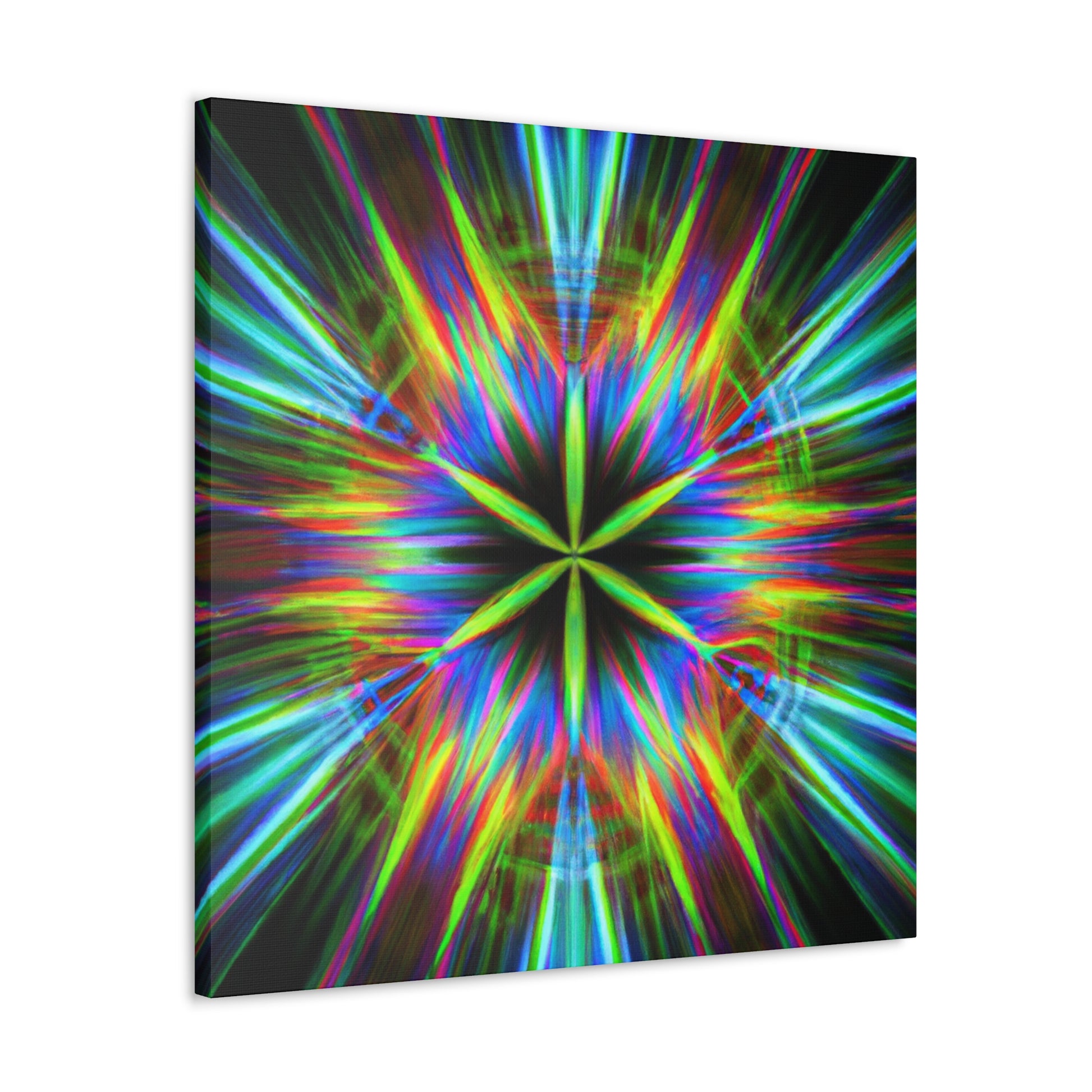 This abstract canvas piece features an eye-catching array of vibrant colors, 3D lines, hypnagogic kaleidoscope effect, and futuristic fractal design using trippy geometric palm leaves. Be mesmerized by this modern, digitally produced art, perfect for decorating any room or office with a standout style. #trippygeometric #palmleaves #kaleidoscope #abstractart #digitallyproduced #vibrantcolors #3Dlines #fractal #modernart #abstractcanvas #digitalart