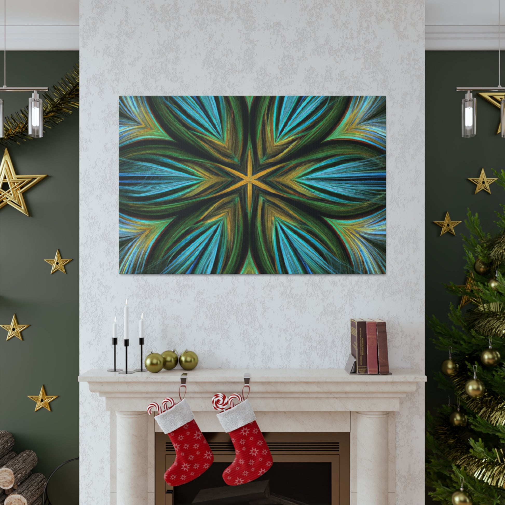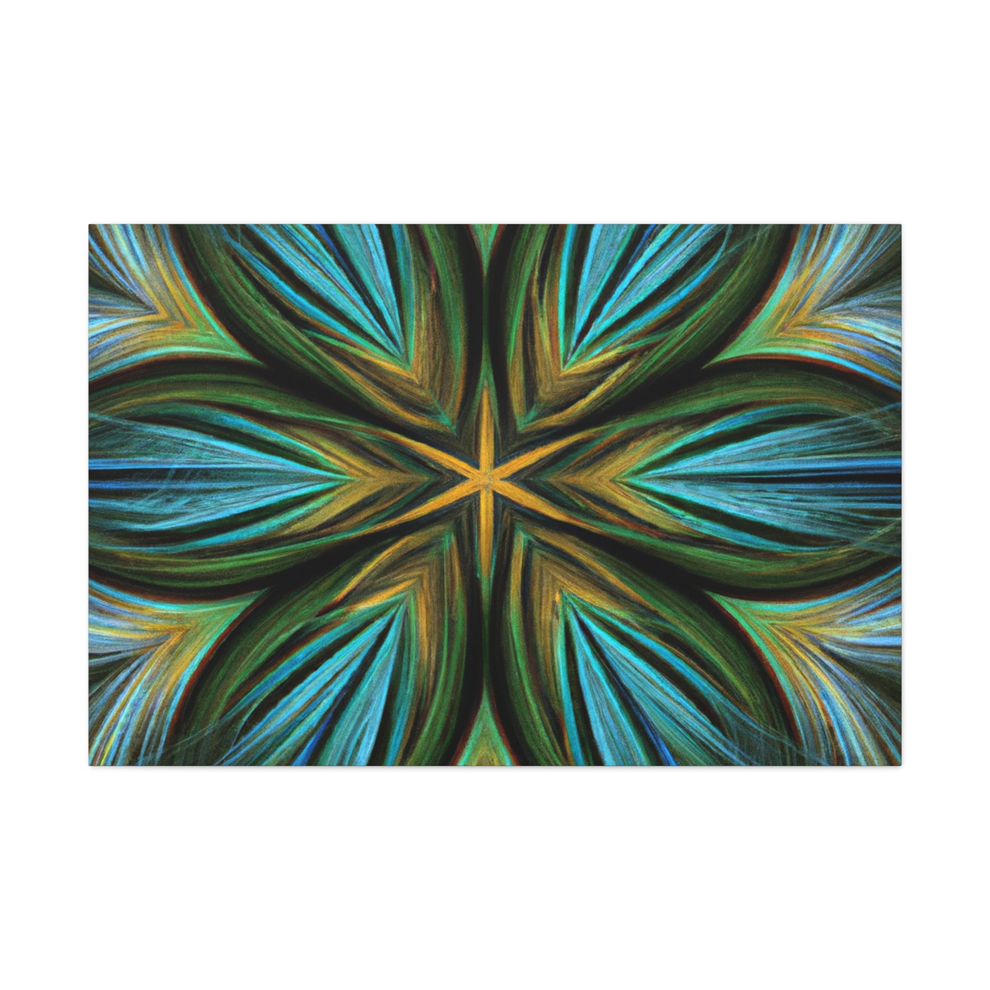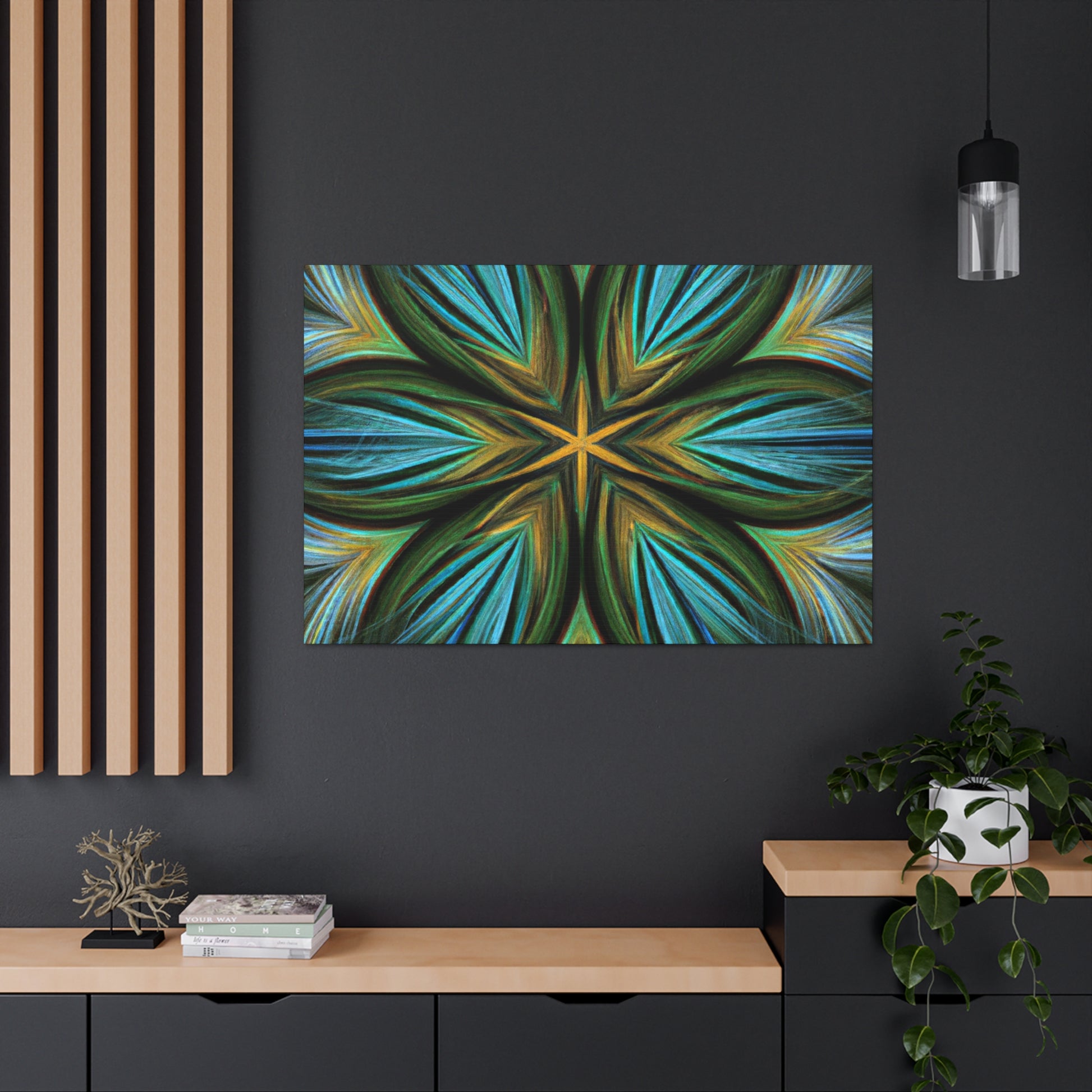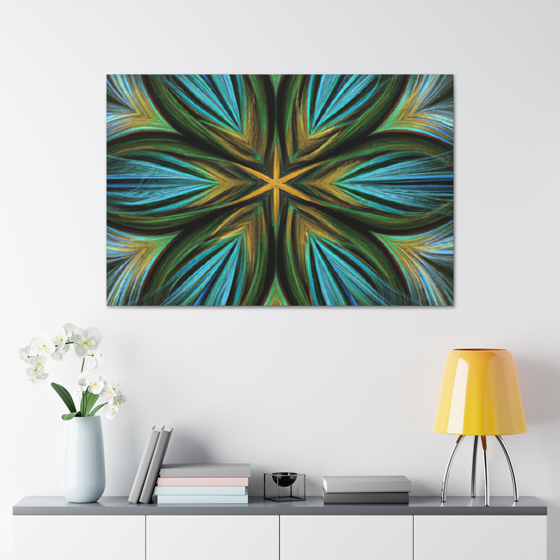 This vibrant abstract work of art will captivate any art lover! Featuring trippy geometric palm leaves, kaleidoscope, digital art, and 3D lines, it makes a unique statement in any space. Fractal elements and bright colors give a surreal picture that will be treasured for years. #abstractart #digitalart #3Dart #kaleidoscope #palmleaves #fractalart #vibrantcolors #geometricart #canvasart #surrealart
